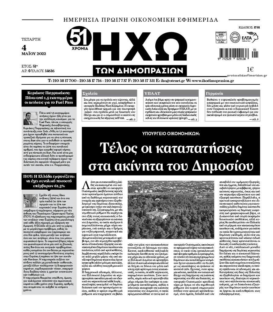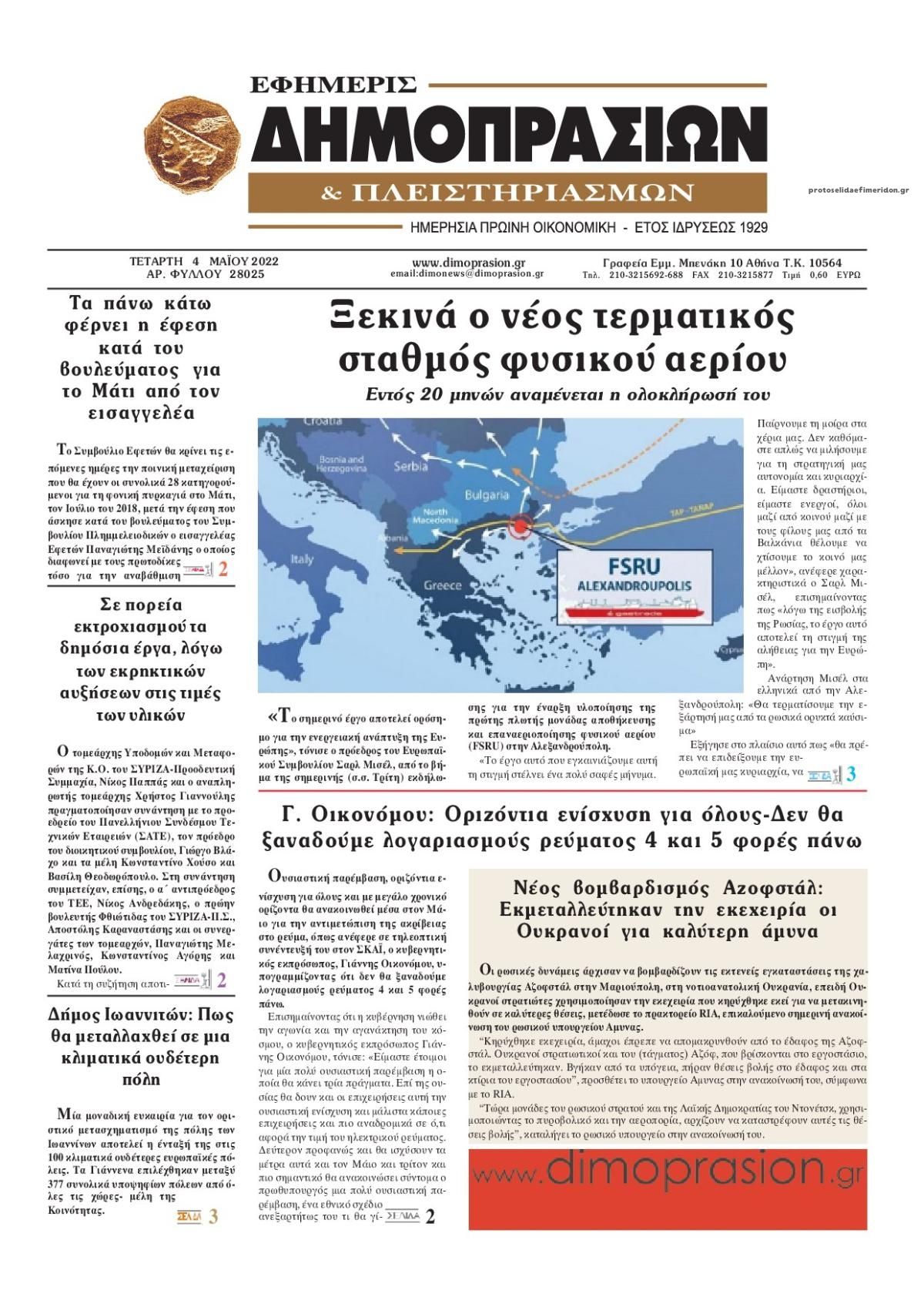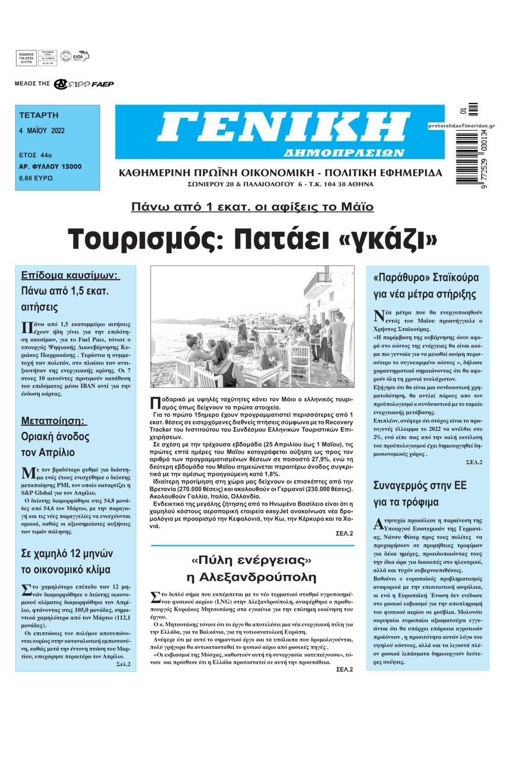 Οι οικονομικές εφημερίδες 4/5/2022 Σταύρος Ιωακείμ 06:55, Τετάρτη 04 Μαΐου 2022 Media Διαβάστε τα πρωτοσέλιδα από τις οικονομικές εφημερίδες… ΕΦΗΜΕΡΙΔΕΣ ΟΙΚΟΝΟΜΙΚΕΣ ΕΦΗΜΕΡΙΔΕΣ ΠΡΩΤΟΣΕΛΙΔΑ Μοιράσου το: Οι αθλητικές εφημερίδες 4/5/2022 Σεισμός «ταρακούνησε» την Αττική Οι πολιτικές εφημερίδες 4/5/2022 σχολίασε κι εσύ (0 σχόλια) Ακολουθήστε το enikos.gr στο Google News και μάθετε πρώτοι όλες τις ειδήσεις Δείτε όλες τις τελευταίες ειδήσεις από την Ελλάδα και τον Κόσμο στο enikos.gr Ειδήσεις Ροή Ειδήσεων 1 ώρα πριν LIVE από Λοριάν: Η ύψωση της ελληνικής σημαίας στην πρώτη φρεγάτα FDI Belharra ΚΙΜΩΝ 2 ώρες πριν Στην Ευελπίδων ο 22χρονος που καταγγέλλει τον Γιώργο Μαζωνάκη για ασελγείς πράξεις – «Έχουμε εμπιστοσύνη στη Δικαιοσύνη, καμία εκβίαση» λέει ο δικηγόρος του 42 λεπτά πριν Γαλλία: Η οργή των αγροτών – Αναμένεται η ομιλία του Μακρόν, τα τρακτέρ συγκεντρώνονται μαζικά στις Βρυξέλλες 4 ώρες πριν Νίκος Παππάς: Άφαντος παραμένει ο ευρωβουλευτής μετά την επίθεση στον Νίκο Γιαννόπουλο 4 ώρες πριν Συναγερμός και στην Ελλάδα για τη «σούπερ γρίπη»: Πόσο σοβαρή είναι και ποιοι θεωρούνται πιο ευάλωτοι – 3 ειδικοί μιλούν στο enikos.gr 5 ώρες πριν Τα 4 ζώδια που λαμβάνουν ένα ισχυρό σημάδι από το σύμπαν – «Αποκαλύπτεται κάτι που μπορεί να αλλάξει τη ζωή μας» 6 ώρες πριν Η σύζυγός του παραπονιέται για τα χρήματα που της δίνει για ψώνια κάθε μήνα – «Λέει ότι νιώθει φτωχή και της είπα να βρει δουλειά» 4 ώρες πριν Αν κάνετε συνεχώς αυτά τα 8 πράγματα με τα κατοικίδιά σας, σας λείπει η ανθρώπινη επαφή 1 ημέρα πριν 20 χρόνια τα Χριστούγεννα ξεκινούν στα Public με μεγάλη ποικιλία σε δώρα! 5 λεπτά πριν ΟΠΕΚΕΠΕ: Πότε αρχίζουν ξανά οι εργασίες της Εξεταστικής Επιτροπής τη νέα χρονιά 10 λεπτά πριν Σωκράτης Φάμελλος: Υπάρχουν πολιτικές ευθύνες για το πάρτι στα ΕΛΤΑ 16 λεπτά πριν ΟΠΕΚΕΠΕ: Στη φυλακή ο 54χρονος λογιστής για τις παράνομες επιδοτήσεις στα Γιαννιτσά 18 λεπτά πριν Ρωσία: Ελπίζουμε πως ο Τραμπ δεν θα κάνει «μοιραίο λάθος» με τη Βενεζουέλα 24 λεπτά πριν Αλεξανδρούπολη: Προθεσμία να απολογηθεί την Τρίτη πήρε η μητέρα του 3χρονου που πέθανε από ασιτία ENIKOS NETWORK 100 χρόνια ΠΙΣ: Ένας αιώνας προσφοράς στην Ιατρική και την κοινωνία Ένα ποτήρι την ημέρα από αυτόν τον χυμό μειώνει τη χοληστερίνη, τη φλεγμονή και την πίεση e-ΕΦΚΑ: Μέχρι πότε πρέπει να γίνει επιλογή ασφαλιστικής κατηγορίας για το 2026 – Τι πρέπει να γνωρίζετε ΕΚΤ: Σήμερα η συνεδρίαση της Ευρωπαϊκής Κεντρικής Τράπεζας για τα επιτόκια – Τι λένε οι αναλυτές Χαρτογραφώντας το «σημείο χωρίς επιστροφή»: Για πρώτη φορά αποκαλύπτεται με λεπτομέρεια το ακανθώδες όριο της ατμόσφαιρας τ... Η Google καταργεί τη λειτουργία «dark web report» – Πώς θα μπορούν οι χρήστες να διαγράφουν τα δεδομένα τους περισσότερα 08:00 , Πέμπτη 18 Δεκεμβρίου 2025 Την Κυριακή με τη Realnews: Δωροεπιταγή 10€ Δωροεπιταγή αξίας 10€ για αγορές άνω των 60€ από τα πολυκαταστήματα FactoryOutlet H προσφορά ι... 07:50 , Πέμπτη 18 Δεκεμβρίου 2025 «Το σόι σου»: Backstage στα γυρίσματα για το εορταστικό επεισόδιο «Το σόι σου» φορά τα γιορτινά του για τα Χριστούγεννα και η Όλγα Λαφαζάνη, με την κάμερα του «... 07:36 , Πέμπτη 18 Δεκεμβρίου 2025 Οι αθλητικές μεταδόσεις 18/12/2025 – Πού θα δείτε τον αγώνα της ΑΕΚ με την Κραϊόβα για το Conference League Τα ματς ΑΕΚ – Ουνιβερσιτάτεα Κραϊόβα για το Conference League και Παναθηναϊκός – Χάποελ Τελ Αβ... 05:48 , Πέμπτη 18 Δεκεμβρίου 2025 Οι οικονομικές εφημερίδες 18/12/2025 Διαβάστε τα πρωτοσέλιδα από τις οικονομικές εφημερίδες, σήμερα 18/12/2025