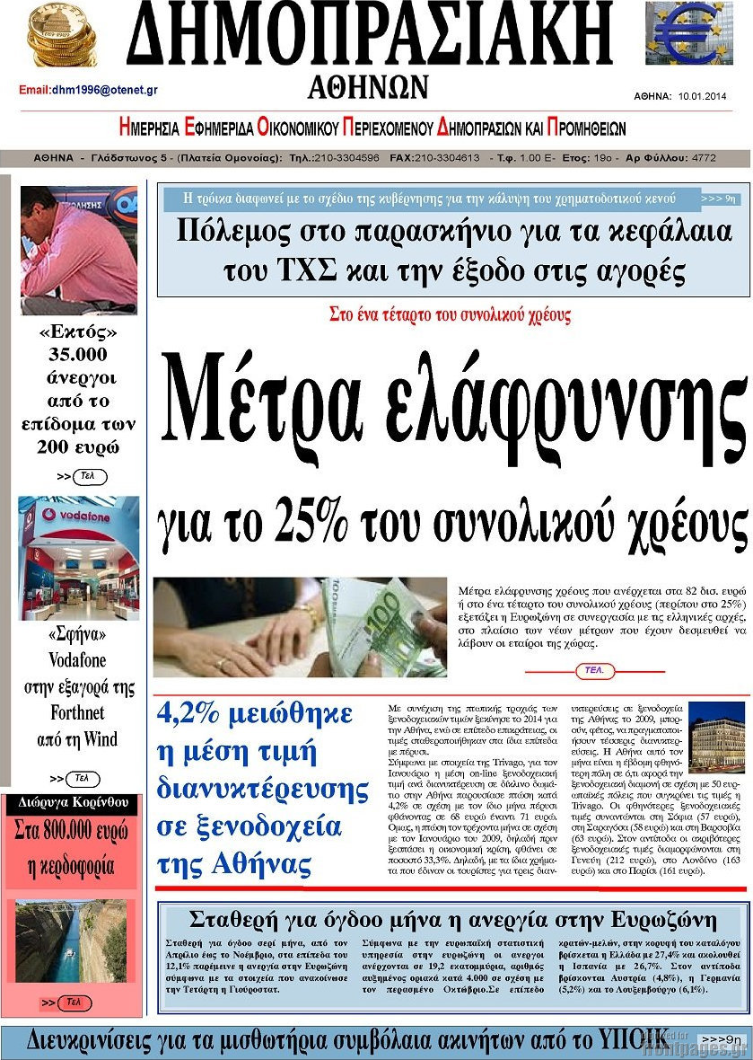 Οι oικονομικές εφημερίδες Enikos Newsroom 08:57, Παρασκευή 10 Ιανουαρίου 2014 Media Οι oικονομικές εφημερίδες Διαβάστε τα πρωτοσέλιδα των οικονομικών εφημερίδων: ΕΦΗΜΕΡΙΔΕΣ ΟΙΚΟΝΟΜΙΚΕΣ ΕΦΗΜΕΡΙΔΕΣ ΠΡΩΤΟΣΕΛΙΔΑ Μοιράσου το: σχολίασε κι εσύ (0 σχόλια) Ακολουθήστε το enikos.gr στο Google News και μάθετε πρώτοι όλες τις ειδήσεις Δείτε όλες τις τελευταίες ειδήσεις από την Ελλάδα και τον Κόσμο στο enikos.gr Ειδήσεις Ροή Ειδήσεων 19 λεπτά πριν Δολοφονία στη Νέα Πέραμο: Με 10 σφαίρες πισώπλατα εκτέλεσαν τον 27χρονο – Τον κράτησαν 6 μέρες όμηρο; 6 ώρες πριν Κυριάκος Μητσοτάκης: Πρόθεσή μας είναι μία γενναία, μία τολμηρή Συνταγματική Αναθεώρηση – Είναι καιρός για μεγάλες τομές 53 λεπτά πριν Κτηνοτρόφοι σε απόγνωση: Διαμαρτυρίες ότι δεν εφαρμόζεται στην πράξη η αναστολή πληρωμής φόρων και εισφορών παρά τη θανάτωση των ζώων τους 2 ώρες πριν Καραμανλής από Καλαμάτα: Να ακούμε τους πιο έμπειρους, αντί να τους διαγράφουμε κυριολεκτικά ή μεταφορικά 4 ώρες πριν Μαρινάκης για Αλεξοπούλου: «Απευθυνόταν στην αντιπολίτευση, όχι στους πολίτες» – Αντιδράσεις για «το τζάμπα πέθανε» 59 λεπτά πριν Τα 3 ζώδια που θα έχουν την τύχη με το μέρος τους έως τις 8 Φεβρουαρίου – «Αρπάξτε τις ευκαιρίες για το επόμενο βήμα στη ζωή σας» 6 ώρες πριν Γυναίκα αποκαλύπτει πώς έχασε 10 κιλά χωρίς στερήσεις – Το «σύστημα ανταμοιβής» που έκανε πιο εύκολη την απώλεια βάρους 5 ώρες πριν Γιατί βάζεις πολλά ξυπνητήρια για να σηκωθείς; Τα 8 χαρακτηριστικά που διαθέτουν οι άνθρωποι που δίνουν «μάχη» στο κρεβάτι 2 ώρες πριν Ο φλοιός της Γης αψηφά τους κανόνες και οι επιστήμονες μόλις ανακάλυψαν τον λόγο 3 λεπτά πριν Ιράκ: Δικαστικές έρευνες για πάνω από 1.300 κρατούμενους, μέλη του Ισλαμικού Κράτους 9 λεπτά πριν ΚΚΕ για συνταγματική αναθεώρηση: Θα καταθέσουμε τις δικές μας προτάσεις με κριτήριο την στήριξη των εργατικών λαϊκών δικαιωμάτων 13 λεπτά πριν Στο νοσοκομείο ο Κώστας Σόμμερ – «Προσέξτε την υγεία σας» 19 λεπτά πριν Δολοφονία στη Νέα Πέραμο: Με 10 σφαίρες πισώπλατα εκτέλεσαν τον 27χρονο – Τον κράτησαν 6 μέρες όμηρο; 23 λεπτά πριν Συνάντηση Τσιάρα με εκπροσώπους των αγροτικών μπλόκων της Καρδίτσας – Στόχος έως το καλοκαίρι να έχουν κλείσει βασικά ζητήματα ENIKOS NETWORK 5,2 εκατομμύρια Έλληνες έχουν κάνει προληπτικές εξετάσεις – Νέο πρόγραμμα «Προλαμβάνω» για τη νεφρική υγεία Ξαναπαίρνουμε το βάρος μετά τη διαλειμματική νηστεία; Τι αποκαλύπτει ειδικός του Harvard Λογαριασμοί ρεύματος Φεβρουαρίου 2026: Ανακοινώθηκαν τα πράσινα τιμολόγια – Δείτε αναλυτικά τις χρεώσεις ανά πάροχο ΔΥΠΑ: Νέο πρόγραμμα για την επιδοτούμενη απασχόληση και κατάρτιση ανέργων – Ποιοι μπορούν να κάνουν αίτηση Ευπάθεια στο moltbook ai αποκαλύπτει email, tokens σύνδεσης και api keys Αυτός είναι ο ρόλος της μικρής τρύπας στους νυχοκόπτες – «Είμαι ο μόνος που δεν το ήξερε;»» περισσότερα 16:30 , Δευτέρα 02 Φεβρουαρίου 2026 Οδύσσεια: Αναφορές ότι η Λουπίτα Νιόγκο θα υποδυθεί την «Ωραία Ελένη» – Έξαλλος ο Μασκ με τον Νόλαν Την έντονη αντίδραση του Έλον Μασκ προκάλεσαν δημοσιεύματα που κυκλοφορούν τις τελευταίες ώρες... 10:54 , Δευτέρα 02 Φεβρουαρίου 2026 Ακούστε το σχόλιο του Νίκου Χατζηνικολάου 2/2/2026 Ακούστε το σχόλιο του Νίκου Χατζηνικολάου στον ραδιοφωνικό σταθμό Realfm 97,8, τη Δευτέρα 2 Φε... 09:02 , Δευτέρα 02 Φεβρουαρίου 2026 Τα πάνω-κάτω στην ΕΡΤ λόγω Μουντιάλ Αλλαγή δεδομένων φέρνει το Παγκόσμιο Κύπελλο ποδοσφαίρου λόγω υψηλού κόστους. Το «Καλά θα πάει... 08:18 , Δευτέρα 02 Φεβρουαρίου 2026 Grammy 20