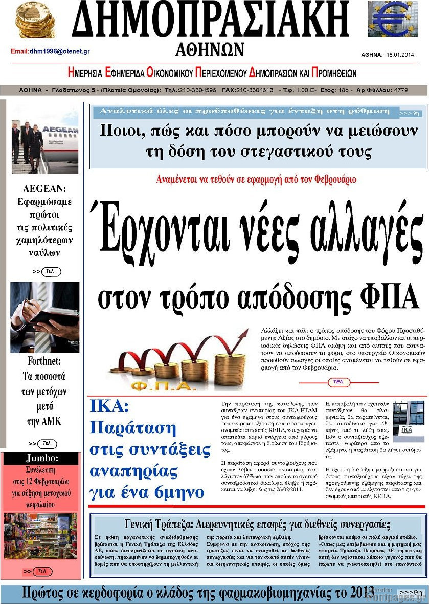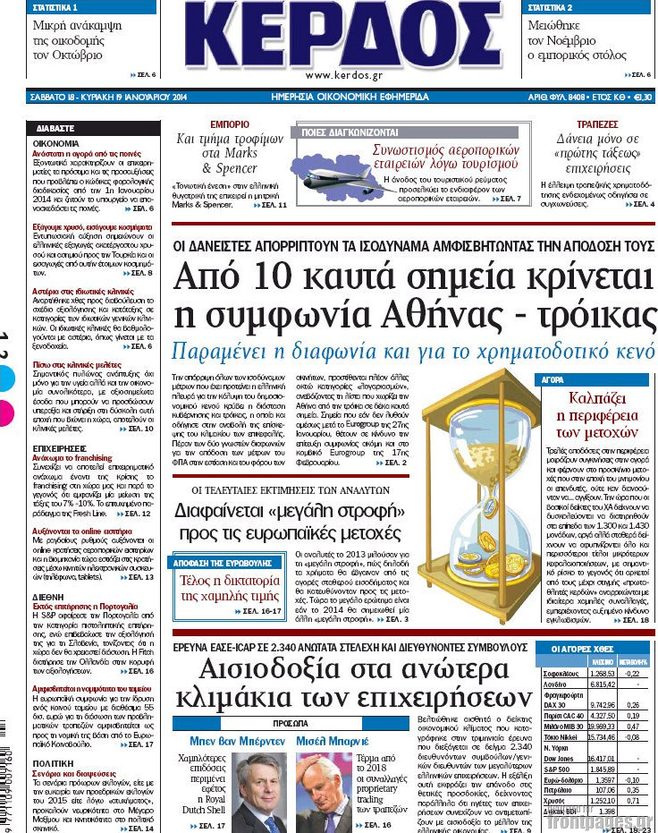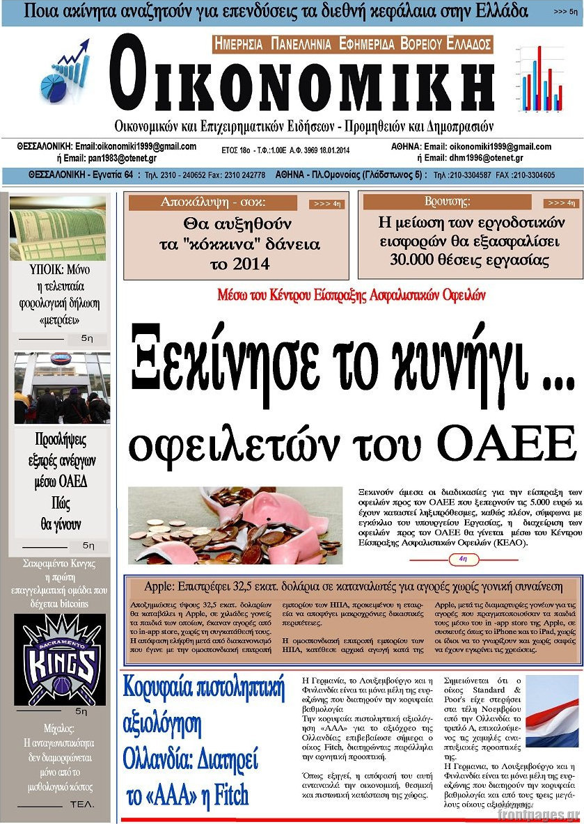 Οι οικονομικές εφημερίδες Enikos Newsroom 08:34, Σάββατο 18 Ιανουαρίου 2014 Media Οι οικονομικές εφημερίδες ΟΙΚΟΝΟΜΙΚΕΣ ΕΦΗΜΕΡΙΔΕΣ Μοιράσου το: σχολίασε κι εσύ (0 σχόλια) Ακολουθήστε το enikos.gr στο Google News και μάθετε πρώτοι όλες τις ειδήσεις Δείτε όλες τις τελευταίες ειδήσεις από την Ελλάδα και τον Κόσμο στο enikos.gr Ειδήσεις Ροή Ειδήσεων 41 λεπτά πριν Μητσοτάκης για αγρότες: Ελπίζω πως θα απομακρυνθούν σύντομα από τα μπλόκα 2 ώρες πριν Έρευνα MRB: Η πρόθεση ψήφου και τα σημαντικότερα προβλήματα – Οι «λέξεις» που εκφράζουν τους πολίτες 2 ώρες πριν Αλαλούμ με τις πληρωμές στους αγρότες: Δεν καταβλήθηκε η Βασική Ενίσχυση, αλλά έγινε παρακράτηση της εισφοράς στον ΕΛΓΑ – Τι απαντά η κυβέρνηση 2 ώρες πριν Κλέφτες άρπαξαν έναν… 12μετρο φουσκωτό Άγιο Βασίλη – «Αν κάποιος έχει πληροφορίες να επικοινωνήσει μαζί μας» 1 ώρα πριν Εξεταστική ΟΠΕΚΕΠΕ – Μυλωνάκης: «Ουδέποτε είχα πληροφόρηση ή ενημέρωσα οποιονδήποτε για επισυνδέσεις της δικογραφίας» 2 ώρες πριν Τα 4 ζώδια που ξαναβρίσκουν τον εαυτό τους – «Μπαίνετε επιτέλους στην ουσία των πραγμάτων» 3 ώρες πριν 20 χρόνια τα Χριστούγεννα ξεκινούν στα Public με μεγάλη ποικιλία σε δώρα! 1 ώρα πριν «Δεν είχα κλάψει από τότε που διαγνώστηκα με καρκίνο, ώσπου ένα τηλεφώνημα με έκανε να λυγίσω» – Η συγκλονιστική εξομολόγηση ενός άνδρα 30 λεπτά πριν Τα 7 σπάνια χαρακτηριστικά που κάνουν κάποιους ανθρώπους ακαταμάχητους 1 λεπτό πριν Μεγάλη Χριστουγεννιάτικη Αγορά στην πλατεία Κοτζιά: Ξύλινα σπιτάκια, καρουζέλ και μουσική – Όλο το πρόγραμμα 6 λεπτά πριν Εξεταστική για τον ΟΠΕΚΕΠΕ: Αντιπαράθεση για την ταυτότητα του «Φραπέ» 11 λεπτά πριν Έρευνα MRB: Οι πιο δημοφιλείς υπουργοί 18 λεπτά πριν Ακούστε την εκπομπή του Νίκου Χατζηνικολάου 17/12/2025 24 λεπτά πριν Μεξικό: Χάος στο Κογκρέσο με βουλευτίνες να «μαλλιοτραβιούνται» – Βίντεο από τη μαζική σύρραξη ENIKOS NETWORK Ανησυχητική αύξηση της υπέρτασης στα παιδιά – Πώς θα τα προστατέψουμε; Αδενώματα Υπόφυσης: Μια πάθηση καλοήθης, αλλά όχι αθώα Προϋπολογισμός: Στα 12,6 δισ. ευρώ το πρωτογενές πλεόνασμα το 11μηνο-Δείτε αναλυτικά τα στοιχεία Ελεύθεροι επαγγελματίες: Ποιοι κλάδοι δήλωσαν τους υψηλότερους ετήσιους τζίρους και ποιοι τους χαμηλότερους-Δείτε τα στοιχε... Σύγχρονος Νοστράδαμος: Προειδοποιεί για «μεγάλο γεγονός» τους επόμενους μήνες που θα συγκλονίσει τη Βρετανία και τον κόσμο Τεστ παρατηρητικότητας: Μπορείτε να βρείτε τις 3 διαφορές στις εικόνες με έναν πιγκουίνο σε 14 δευτερόλεπτα περισσότερα 12:12 , Τετάρτη 17 Δεκεμβρίου 2025 Ακούστε την εκπομπή του Νίκου Χατζηνικολάου 17/12/2025 Ακούστε την εκπομπή του Νίκου Χατζηνικολάου στον ραδιοφωνικό σταθμό RealFm 97,8, την Τετάρτη 1... 11:35 , Τετάρτη 17 Δεκεμβρίου 2025 Home Alone: Το σπίτι της ταινίας θα ανακαινιστεί – Επιστροφή στην αισθητική της δεκαετίας του ’90 Οι νέοι ιδιοκτήτες του πραγματικού σπιτιού που παρουσιάζεται στην κλασική ταινία του 1990 «Hom... 11:25 , Τετάρτη 17 Δεκεμβρίου 2025 Grand Hotel: Απόψε το τελευταίο επεισόδιο της χρονιάς – Όλα τα μυστικά μένουν εδώ Το τελευταίο επεισόδιο της χρονιάς της σειράς «Grand Hotel» θα προβληθεί απόψε στις 21:00. Ο Ά... 09:08 , Τετάρτη 17 Δεκεμβρίου 2025 Τηλεθέαση (16/12): Ανακατατάξεις στην πρωινή ψυχαγωγική ζώνη Ξεκάθαρη πρωτιά στην τηλεθέαση για την «Super Κατερίνα» στο δυναμικό κοινό με ποσοστό 18,5%, α... ΤΕΛΕΥΤΑΙΕΣ ΕΙΔΗΣΕΙΣ 1 λεπτό πριν Μεγάλη Χριστουγεννιάτικη Αγορά στην πλατεία Κοτζιά:... 6 λεπτά πριν Εξεταστική για τον ΟΠΕΚΕΠΕ: Αντιπαράθεση για την... 11 λεπτ