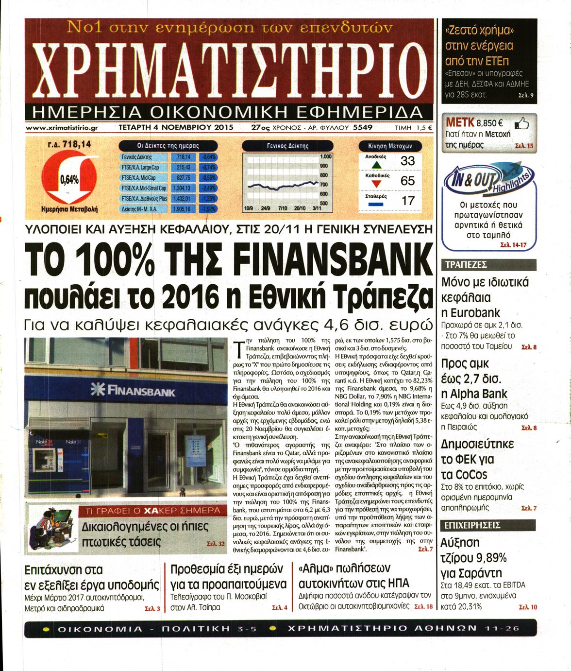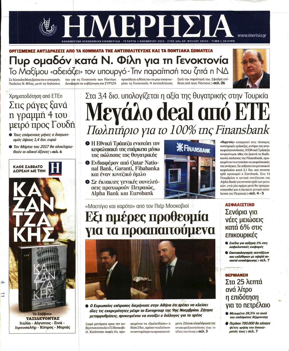 Oι οικονομικές εφημερίδες 4/11/2015 Enikos Newsroom 06:04, Τετάρτη 04 Νοεμβρίου 2015 Media Διαβάστε τα σημερινά πρωτοσέλιδα των οικονομικών εφημερίδων: ΟΙΚΟΝΟΜΙΚΕΣ ΕΦΗΜΕΡΙΔΕΣ ΠΡΩΤΟΣΕΛΙΔΑ Μοιράσου το: σχολίασε κι εσύ (0 σχόλια) Ακολουθήστε το enikos.gr στο Google News και μάθετε πρώτοι όλες τις ειδήσεις Δείτε όλες τις τελευταίες ειδήσεις από την Ελλάδα και τον Κόσμο στο enikos.gr Ειδήσεις Ροή Ειδήσεων 37 λεπτά πριν LIVE από Λοριάν: Η ύψωση της ελληνικής σημαίας στην πρώτη φρεγάτα FDI Belharra ΚΙΜΩΝ 49 λεπτά πριν Στην Ευελπίδων ο 22χρονος που καταγγέλλει τον Γιώργο Μαζωνάκη για ασελγείς πράξεις – «Έχουμε εμπιστοσύνη στη Δικαιοσύνη, καμία εκβίαση» λέει ο δικηγόρος του 3 ώρες πριν Νίκος Παππάς: Άφαντος παραμένει ο ευρωβουλευτής μετά την επίθεση στον Νίκο Γιαννόπουλο 2 ώρες πριν Βρυξέλλες: Ένταση με τους αγρότες – Πέταξαν πατάτες και κροτίδες 3 ώρες πριν Συναγερμός και στην Ελλάδα για τη «σούπερ γρίπη»: Πόσο σοβαρή είναι και ποιοι θεωρούνται πιο ευάλωτοι – 3 ειδικοί μιλούν στο enikos.gr 4 ώρες πριν Τα 4 ζώδια που λαμβάνουν ένα ισχυρό σημάδι από το σύμπαν – «Αποκαλύπτεται κάτι που μπορεί να αλλάξει τη ζωή μας» 5 ώρες πριν Η σύζυγός του παραπονιέται για τα χρήματα που της δίνει για ψώνια κάθε μήνα – «Λέει ότι νιώθει φτωχή και της είπα να βρει δουλειά» 3 ώρες πριν Αν κάνετε συνεχώς αυτά τα 8 πράγματα με τα κατοικίδιά σας, σας λείπει η ανθρώπινη επαφή 1 ημέρα πριν 20 χρόνια τα Χριστούγεννα ξεκινούν στα Public με μεγάλη ποικιλία σε δώρα! 2 λεπτά πριν Γιώργος Μαζωνάκης: «Δεν ζήτησα χρήματα, παρά μόνο ηθική δικαίωση» – Οι πρώτες δηλώσεις του 22χρονου μετά την κατάθεση της μήνυσης 6 λεπτά πριν Χριστουγεννιάτικο τραπέζι: Πόσο θα κοστίσει φέτος – Σε ποια είδη τραβούν… την ανηφόρα οι τιμές 15 λεπτά πριν Σκέρτσος για Κωνσταντοπούλου: «Είναι αδίστακτη, βαθιά κυνική και ουσιαστικά αδιάφορη απέναντι στην αλήθεια και τη δικαιοσύνη» 23 λεπτά πριν Χαρίτσης: «Ο κ. Μητσοτάκης έδωσε το πράσινο φως για το λουκέτο στα ΕΛΤΑ» 27 λεπτά πριν Κατερίνα Καινούργιου για Γιώργο Μαζωνάκη: «Θεωρώ φρικτό αυτό το τσίρκο που έχει συμβεί τις τελευταίες μέρες στα Μέσα» ENIKOS NETWORK Όμιλος ΙΑΤΡΟΠΟΛΙΣ: Πρωτοπόροι στη μοριακή απεικόνιση και στην πυρηνική ιατρική Τι περιλαμβάνει το σχέδιο της ΕΕ για την καρδιαγγειακή υγεία-Οι προτάσεις της Ελληνικής Καρδιολογικής Εταιρείας Χριστουγεννιάτικο τραπέζι: Πόσο θα κοστίσει φέτος – Σε ποια είδη τραβούν… την ανηφόρα οι τιμές Ενοίκια: Τι αλλάζει με τη νέα τροπολογία στην πληρωμή Χαρτογραφώντας το «σημείο χωρίς επιστροφή»: Για πρώτη φορά αποκαλύπτεται με λεπτομέρεια το ακανθώδες όριο της ατμόσφαιρας τ... Η Google καταργεί τη λειτουργία «dark web report» – Πώς θα μπορούν οι χρήστες να διαγράφουν τα δεδομένα τους περισσότερα 08:00 , Πέμπτη 18 Δεκεμβρίου 2025 Την Κυριακή με τη Realnews: Δωροεπιταγή 10€ Δωροεπιταγή αξίας 10€ για αγορές άνω των 60€ από τα πολυκαταστήματα FactoryOutlet H προσφορά ι... 07:50 , Πέμπτη 18 Δεκεμβρίου 2025 «Το σόι σου»: Backstage στα γυρίσματα για το εορταστικό επεισόδιο «Το σόι σου» φορά τα γιορτινά του για τα Χριστούγεννα και η Όλγα Λαφαζάνη, με την κάμερα του «... 07:36 , Πέμπτη 18 Δεκεμβρίου 2025 Οι αθλητικές μεταδόσεις 18/12/2025 – Πού θα δείτε τον αγώνα της ΑΕΚ με την Κραϊόβα για το Conference League Τα ματς ΑΕΚ – Ουνιβερσιτάτεα Κραϊόβα για το Conference League και Παναθηναϊκός – Χάποελ Τελ Αβ... 05:48 , Πέμπτη 18 Δεκεμβρίου 2025 Οι οικονομικές εφημερίδες 18/12/2025 Διαβάστε τα πρωτοσέλιδα από τις οικονομικές εφημερίδες, σήμερα 18/12/2025. ΤΕΛΕΥΤΑΙΕΣ ΕΙΔ
