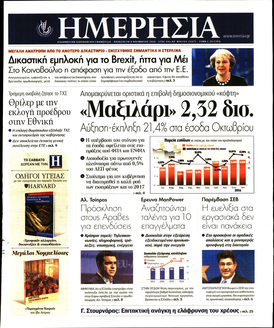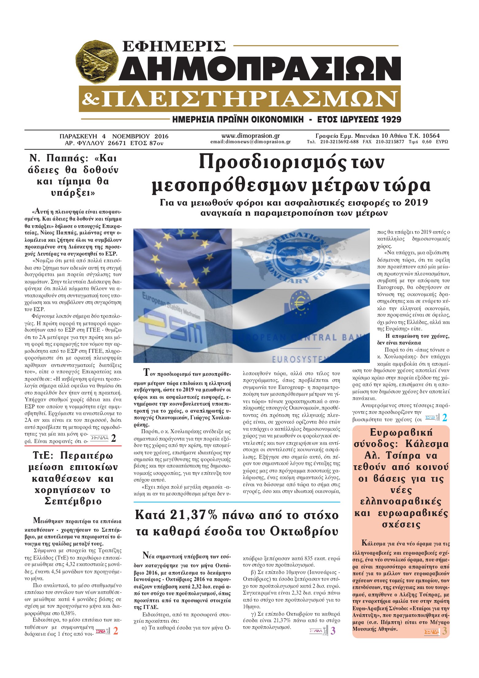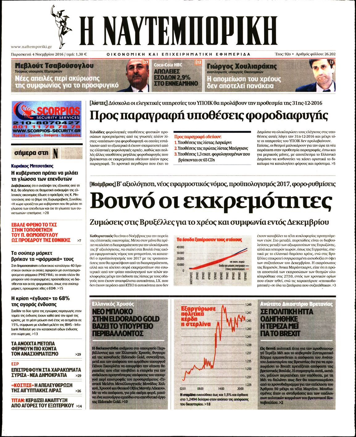 Οι οικονομικές εφημερίδες 4/11/2016 Enikos Newsroom 03:37, Παρασκευή 04 Νοεμβρίου 2016 Media Διαβάστε τα σημερινά πρωτοσέλιδα των οικονομικών εφημερίδων: ΟΙΚΟΝΟΜΙΚΕΣ ΕΦΗΜΕΡΙΔΕΣ ΠΡΩΤΟΣΕΛΙΔΑ Μοιράσου το: σχολίασε κι εσύ (0 σχόλια) Ακολουθήστε το enikos.gr στο Google News και μάθετε πρώτοι όλες τις ειδήσεις Δείτε όλες τις τελευταίες ειδήσεις από την Ελλάδα και τον Κόσμο στο enikos.gr Ειδήσεις Ροή Ειδήσεων 5 λεπτά πριν Ευρωπαϊκή Ένωση: Συμφωνία για δάνειο 90 δισ. ευρώ στην Ουκρανία τη διετία 2026-2027 5 ώρες πριν ΟΠΕΚΕΠΕ: Προφυλακιστέος ο φερόμενος αρχηγός και ο λογιστής της εγκληματικής οργάνωσης 6 ώρες πριν Αυξάνουν την πίεση προς την κυβέρνηση οι αγρότες: Κλείνουν παρακαμπτήριους και ανοίγουν διόδια – Τι θα γίνει τις γιορτές 6 ώρες πριν Φοινικούντα: Το Σάββατο απολογείται ο 30χρονος γιος γνωστού επιχειρηματία της Πλάκας που παραδόθηκε – Όσα είπε στους αστυνομικούς και ο ρόλος του στο έγκλημα 4 ώρες πριν ΑΕΚ – Κραϊόβα 3-2: Επική ανατροπή και πρόκριση στους «16» του Conference League η Ένωση 5 ώρες πριν Αρχαιολόγοι ανακάλυψαν ρωμαϊκά τεχνουργήματα από μια πόλη που δεν υπήρξε ποτέ – Τα τρία εντυπωσιακά κτίρια και ο αμφορέας με τις… σαρδέλες 6 ώρες πριν Ύπνος: Η απλή βραδινή ρουτίνα για να προστατεύσετε τα μαλλιά σας από το κρύο κατά τη διάρκεια του χειμώνα 7 ώρες πριν Manifesting: Πώς να συναντήσετε τον σύντροφο της ζωής σας, ανάλογα με τον μήνα γέννησής σας 2 ημέρες πριν 20 χρόνια τα Χριστούγεννα ξεκινούν στα Public με μεγάλη ποικιλία σε δώρα! 5 λεπτά πριν Ευρωπαϊκή Ένωση: Συμφωνία για δάνειο 90 δισ. ευρώ στην Ουκρανία τη διετία 2026-2027 29 λεπτά πριν Αιματηρή βομβιστική επίθεση στην Υεμένη: Τουλάχιστον τρεις νεκροί και 13 τραυματίες 32 λεπτά πριν Στη Φλόριντα σήμερα οι διαβουλεύσεις σχετικά με τα επόμενα στάδια για τη Λωρίδα της Γάζας 36 λεπτά πριν Σίσσυ Τουμάση: «Είμαι ασθενοφοβική πάρα πολύ και με πιάνει μια παράνοια μ’ αυτό» 1 ώρα πριν Ντόναλντ Τραμπ: Δεν χρειάζομαι την έγκριση του Κογκρέσου για να διατάξω στρατιωτικά πλήγματα στη Βενεζουέλα ENIKOS NETWORK Σε περίοδο αυξημένης δραστηριότητας η γρίπη στην Ελλάδα-Μέτρα προστασίας από τον ΕΟΔΥ Σκέφτεστε συνέχεια συζητήσεις που έχετε κάνει; Τι σημαίνει αυτό, σύμφωνα με ειδικό Στεγαστικό: Τι λέει η ΠΟΜΙΔΑ για τα νέα μέτρα που ανακοίνωσε ο Κυριάκος Μητσοτάκης Λαγκάρντ: Αισιόδοξη για την ανάπτυξη της Ευρωζώνης, αβέβαιη για τον πληθωρισμό Χαρτογραφώντας το «σημείο χωρίς επιστροφή»: Για πρώτη φορά αποκαλύπτεται με λεπτομέρεια το ακανθώδες όριο της ατμόσφαιρας τ... Η Google καταργεί τη λειτουργία «dark web report» – Πώς θα μπορούν οι χρήστες να διαγράφουν τα δεδομένα τους περισσότερα 02:50 , Παρασκευή 19 Δεκεμβρίου 2025 GNTM: «Κλείδωσαν» οι τέσσερις φιναλίστ – Μεγάλη ανατροπή στις τελευταίες αποχωρήσεις Για προτελευταία φορά εμφανίστηκαν στο πλατό του GNTM οι φιναλίστ του φετινού κύκλου, το βράδυ... 17:45 , Πέμπτη 18 Δεκεμβρίου 2025 ROUK ZOUK: Εορταστικό επεισόδιο με καλεσμένους τους πρωταγωνιστές του «Γιατί ρε πατέρα» Το Σάββατο 20 Δεκεμβρίου στις 21:00, η Ζέτα Μακρυπούλια υποδέχεται εκλεκτούς ηθοποιούς που όλο... 17:20 , Πέμπτη 18 Δεκεμβρίου 2025 Άγιος έρωτας: Η Χριστίνα εξομολογείται στον πατέρα Νικόλαο, απόψε στις 21:00 στον Alpha Η Νότα αποφασίζει να εκδικηθεί τον Πέτρο και τον Στέφανο, για χάρη του Λούη, όμως τα πράγματα ... 16:50 , Πέμπτη 18 Δεκεμβρίου 2025 Να μ’ αγαπάς: Ζωή και Φωτεινή συμφιλιώνονται ως μάνα με κόρη, απόψε στις 20:00 Η ταυτότητα του Άγγελου αποκαλύπτεται στο νέο επεισόδιο της σειράς “Να μ’ αγα
