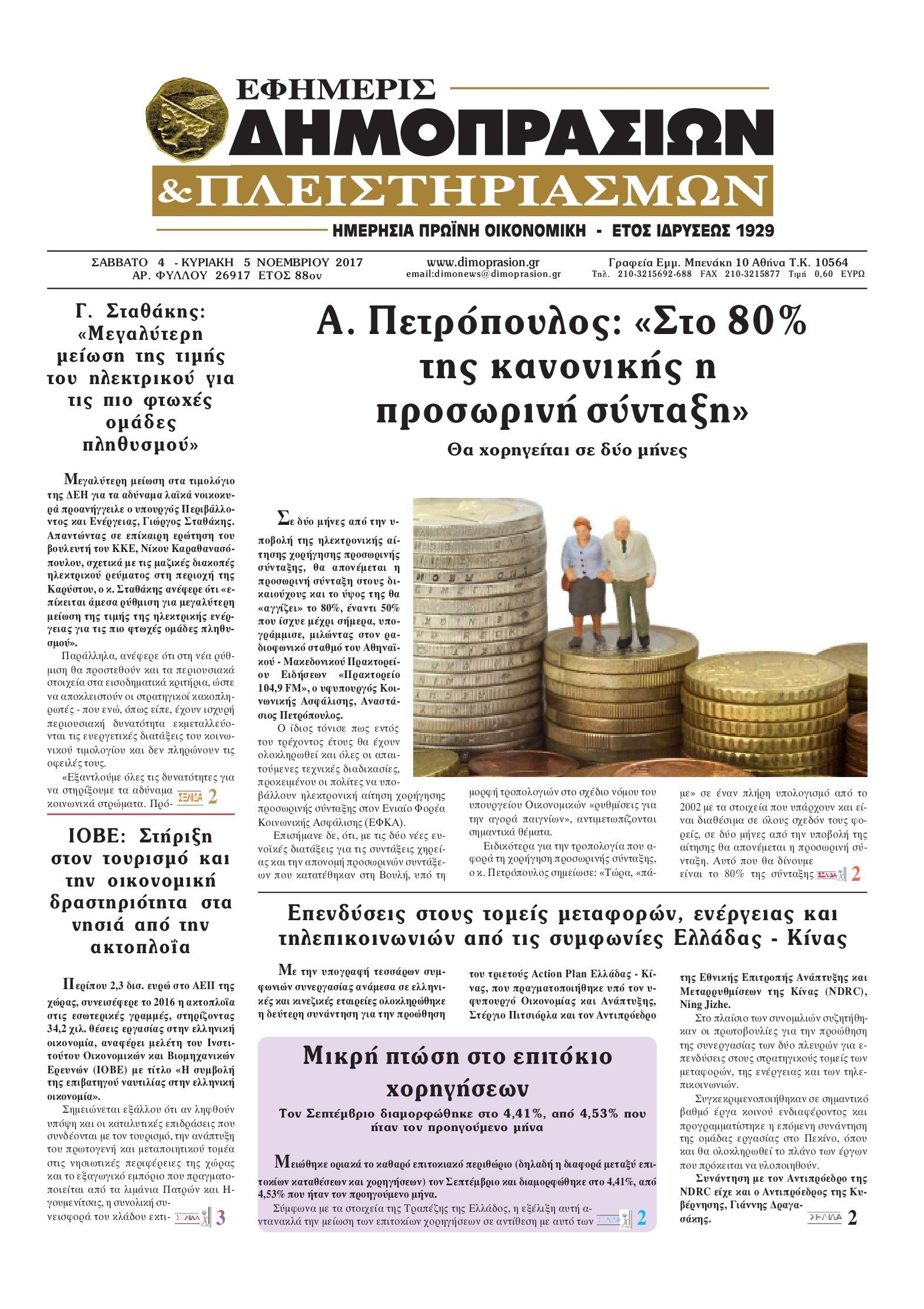 Οι οικονομικές εφημερίδες 4/11/2017 Enikos Newsroom 07:22, Δευτέρα 06 Νοεμβρίου 2017 Media Διαβάστε τα σημερινά πρωτοσέλιδα των οικονομικών εφημερίδων: ΟΙΚΟΝΟΜΙΚΕΣ ΕΦΗΜΕΡΙΔΕΣ ΠΡΩΤΟΣΕΛΙΔΑ Μοιράσου το: σχολίασε κι εσύ (0 σχόλια) Ακολουθήστε το enikos.gr στο Google News και μάθετε πρώτοι όλες τις ειδήσεις Δείτε όλες τις τελευταίες ειδήσεις από την Ελλάδα και τον Κόσμο στο enikos.gr Ειδήσεις Ροή Ειδήσεων 5 ώρες πριν Αυξάνουν την πίεση προς την κυβέρνηση οι αγρότες: Κλείνουν παρακαμπτήριους και ανοίγουν διόδια – Τι θα γίνει τις γιορτές 4 ώρες πριν ΟΠΕΚΕΠΕ: Προφυλακιστέος ο φερόμενος αρχηγός και ο λογιστής της εγκληματικής οργάνωσης 23 λεπτά πριν Ευρωπαϊκή Ένωση: Χωρίς συμφωνία, για την μακροπρόθεσμη χρηματοδότηση της Ουκρανίας, ολοκληρώθηκε η Σύνοδος Κορυφής στις Βρυξέλλες 3 ώρες πριν ΑΕΚ – Κραϊόβα 3-2: Επική ανατροπή και πρόκριση στους «16» του Conference League η Ένωση 5 ώρες πριν Φοινικούντα: Το Σάββατο απολογείται ο 30χρονος γιος γνωστού επιχειρηματία της Πλάκας που παραδόθηκε – Όσα είπε στους αστυνομικούς και ο ρόλος του στο έγκλημα 4 ώρες πριν Αρχαιολόγοι ανακάλυψαν ρωμαϊκά τεχνουργήματα από μια πόλη που δεν υπήρξε ποτέ – Τα τρία εντυπωσιακά κτίρια και ο αμφορέας με τις… σαρδέλες 5 ώρες πριν Ύπνος: Η απλή βραδινή ρουτίνα για να προστατεύσετε τα μαλλιά σας από το κρύο κατά τη διάρκεια του χειμώνα 6 ώρες πριν Manifesting: Πώς να συναντήσετε τον σύντροφο της ζωής σας, ανάλογα με τον μήνα γέννησής σας 2 ημέρες πριν 20 χρόνια τα Χριστούγεννα ξεκινούν στα Public με μεγάλη ποικιλία σε δώρα! 23 λεπτά πριν Ευρωπαϊκή Ένωση: Χωρίς συμφωνία, για την μακροπρόθεσμη χρηματοδότηση της Ουκρανίας, ολοκληρώθηκε η Σύνοδος Κορυφής στις Βρυξέλλες 38 λεπτά πριν GNTM: «Κλείδωσαν» οι τέσσερις φιναλίστ – Μεγάλη ανατροπή στις τελευταίες αποχωρήσεις 52 λεπτά πριν Γιώργος Μαζωνάκης: Αποθεώθηκε στην πρεμιέρα του στην «Ακτή Πειραιώς» λίγες ώρες μετά τις καταγγελίες – «Είμαι αληθινός», είπε με νόημα 1 ώρα πριν Πόλεμος στην Ουκρανία: Ρωσικά drones έπληξαν την Οδησσό – Μία νεκρή και ζημιές σε ενεργειακές υποδομές 1 ώρα πριν ΑΕΚ-Κραϊόβα: Τα highlights της μυθικής ανατροπής της «Ένωσης» ENIKOS NETWORK Σε περίοδο αυξημένης δραστηριότητας η γρίπη στην Ελλάδα-Μέτρα προστασίας από τον ΕΟΔΥ Σκέφτεστε συνέχεια συζητήσεις που έχετε κάνει; Τι σημαίνει αυτό, σύμφωνα με ειδικό Στεγαστικό: Τι λέει η ΠΟΜΙΔΑ για τα νέα μέτρα που ανακοίνωσε ο Κυριάκος Μητσοτάκης Λαγκάρντ: Αισιόδοξη για την ανάπτυξη της Ευρωζώνης, αβέβαιη για τον πληθωρισμό Χαρτογραφώντας το «σημείο χωρίς επιστροφή»: Για πρώτη φορά αποκαλύπτεται με λεπτομέρεια το ακανθώδες όριο της ατμόσφαιρας τ... Η Google καταργεί τη λειτουργία «dark web report» – Πώς θα μπορούν οι χρήστες να διαγράφουν τα δεδομένα τους περισσότερα 02:50 , Παρασκευή 19 Δεκεμβρίου 2025 GNTM: «Κλείδωσαν» οι τέσσερις φιναλίστ – Μεγάλη ανατροπή στις τελευταίες αποχωρήσεις Για προτελευταία φορά εμφανίστηκαν στο πλατό του GNTM οι φιναλίστ του φετινού κύκλου, το βράδυ... 17:45 , Πέμπτη 18 Δεκεμβρίου 2025 ROUK ZOUK: Εορταστικό επεισόδιο με καλεσμένους τους πρωταγωνιστές του «Γιατί ρε πατέρα» Το Σάββατο 20 Δεκεμβρίου στις 21:00, η Ζέτα Μακρυπούλια υποδέχεται εκλεκτούς ηθοποιούς που όλο... 17:20 , Πέμπτη 18 Δεκεμβρίου 2025 Άγιος έρωτας: Η Χριστίνα εξομολογείται στον πατέρα Νικόλαο, απόψε στις 21:00 στον Alpha Η Νότα αποφασίζει να εκδικηθεί τον Πέτρο και τον Στέφανο, για χάρη του Λούη, όμως τα πράγματα ... 16:50 , Πέμπτη 18 Δεκεμβρίου 2025 Να μ’ αγαπάς: Ζωή και Φωτεινή συμφιλ