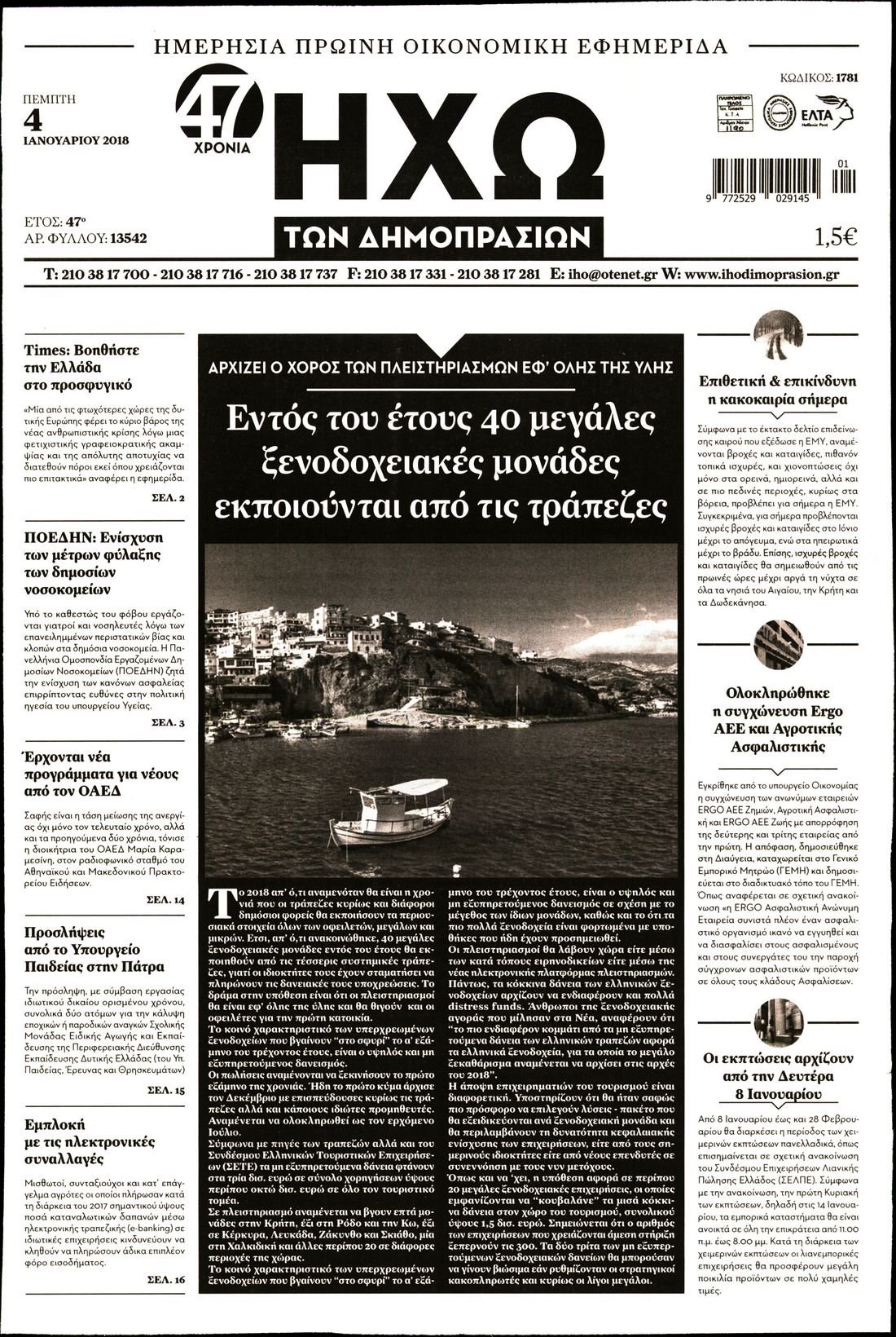 Οι οικονομικές εφημερίδες 4/1/2018 Enikos Newsroom 07:44, Πέμπτη 04 Ιανουαρίου 2018 Media Διαβάστε τα σημερινά πρωτοσέλιδα των οικονομικών εφημερίδων: ΟΙΚΟΝΟΜΙΚΕΣ ΕΦΗΜΕΡΙΔΕΣ ΠΡΩΤΟΣΕΛΙΔΑ Μοιράσου το: σχολίασε κι εσύ (0 σχόλια) Ακολουθήστε το enikos.gr στο Google News και μάθετε πρώτοι όλες τις ειδήσεις Δείτε όλες τις τελευταίες ειδήσεις από την Ελλάδα και τον Κόσμο στο enikos.gr Ειδήσεις Ροή Ειδήσεων 5 ώρες πριν Αγρότες: «Όχι στον διάλογο, μας εμπαίζει η κυβέρνηση» – Αποφάσισαν κλιμάκωση των κινητοποιήσεων, τι θα γίνει τα Χριστούγεννα 2 ώρες πριν Αθήνα: Εξαρθρώθηκε εγκληματική οργάνωση που διακινούσε ναρκωτικά σε μορφή σοκολάτας – Δύο τράπερ ανάμεσα στους 4 συλληφθέντες – ΒΙΝΤΕΟ 2 ώρες πριν Στη φυλακή ο «Έλληνας Εσκομπάρ» και τρεις συνεργοί του για το φορτίο με την κοκαΐνη – Τι υποστήριξε στην απολογία του 3 ώρες πριν Γιώργος Μαζωνάκης: «Έχει υποστεί ένα σωρό εκβιαστικές πρακτικές – Του είπαν ότι θα του βάλουν τον συγκεκριμένο άνθρωπο να τον καταγγείλει» 1 ώρα πριν Γεωργιάδης για Κωνσταντοπούλου: «Έχει καταφέρει να ξεπεράσει ακόμη και τον εαυτό της – Το ερώτημα είναι “γιατί τώρα;”» 5 ώρες πριν Τα 5 ζώδια που θα ευνοηθούν στα οικονομικά τους το 2026 – «Τραβούν το χρήμα σαν μαγνήτες» 2 ώρες πριν Γάμος: 11 ψυχρές αλλά ευγενικές φράσεις, που λέει ένας άνδρας όταν σκέφτεται τον χωρισμό 1 ώρα πριν Σφουγγάρισμα: Η συνήθεια που θα σας βοηθήσει να διατηρήσετε το σπίτι σας καθαρό και τακτοποιημένο 2 ημέρες πριν 20 χρόνια τα Χριστούγεννα ξεκινούν στα Public με μεγάλη ποικιλία σε δώρα! 3 λεπτά πριν Νίκος Παππάς στον ΑΝΤ1: «Δεν κρύβομαι – Μετά το συμβάν ακολούθησα κανονικά το πρόγραμμά μου» – ΒΙΝΤΕΟ 5 λεπτά πριν Αγρότες: Άνοιξε ο μεθοριακός σταθμός του Προμαχώνα για τα φορτηγά 15 λεπτά πριν Δημοσκόπηση Metron Analysis: Στις 10 μονάδες η διαφορά ΝΔ-ΠΑΣΟΚ, στην 3η θέση η Πλεύση Ελευθερίας – 8 στους 10 στηρίζουν τον αγώνα των αγροτών 20 λεπτά πριν Ολυμπιακός: Τι ζήτησε από τον Άγιο Βασίλη ο Χοσέ Λουίς Μεντιλίμπαρ 26 λεπτά πριν Manifesting: Πώς να συναντήσετε τον σύντροφο της ζωής σας, ανάλογα με τον μήνα γέννησής σας ENIKOS NETWORK Σε περίοδο αυξημένης δραστηριότητας η γρίπη στην Ελλάδα-Μέτρα προστασίας από τον ΕΟΔΥ Σκέφτεστε συνέχεια συζητήσεις που έχετε κάνει; Τι σημαίνει αυτό, σύμφωνα με ειδικό ΕΛΣΤΑΤ: Τι δείχνουν τα νέα στοιχεία για τον μόνιμο πληθυσμό στην Ελλάδα Servicers: Μικρή μείωση στα κόκκινα δάνεια που διαχειρίζονται – Αναλυτικά τα στοιχεία Χαρτογραφώντας το «σημείο χωρίς επιστροφή»: Για πρώτη φορά αποκαλύπτεται με λεπτομέρεια το ακανθώδες όριο της ατμόσφαιρας τ... Η Google καταργεί τη λειτουργία «dark web report» – Πώς θα μπορούν οι χρήστες να διαγράφουν τα δεδομένα τους περισσότερα 17:45 , Πέμπτη 18 Δεκεμβρίου 2025 ROUK ZOUK: Εορταστικό επεισόδιο με καλεσμένους τους πρωταγωνιστές του «Γιατί ρε πατέρα» Το Σάββατο 20 Δεκεμβρίου στις 21:00, η Ζέτα Μακρυπούλια υποδέχεται εκλεκτούς ηθοποιούς που όλο... 17:20 , Πέμπτη 18 Δεκεμβρίου 2025 Άγιος έρωτας: Η Χριστίνα εξομολογείται στον πατέρα Νικόλαο, απόψε στις 21:00 στον Alpha Η Νότα αποφασίζει να εκδικηθεί τον Πέτρο και τον Στέφανο, για χάρη του Λούη, όμως τα πράγματα ... 16:50 , Πέμπτη 18 Δεκεμβρίου 2025 Να μ’ αγαπάς: Ζωή και Φωτεινή συμφιλιώνονται ως μάνα με κόρη, απόψε στις 20:00 Η ταυτότητα του Άγγελου αποκαλύπτεται στο νέο επεισόδιο της σειράς “Να μ’ αγαπάς... 15:52 , Πέμπτη 18 Δεκεμβρίου 2025 Το Σπίτι Δίπλα Στο Ποτάμι: Το καθηλωτικό τελευταίο επεισόδιο για το 2025 απόψε στις 22:30 Καθηλώνει το σημερινό επεισόδιο 