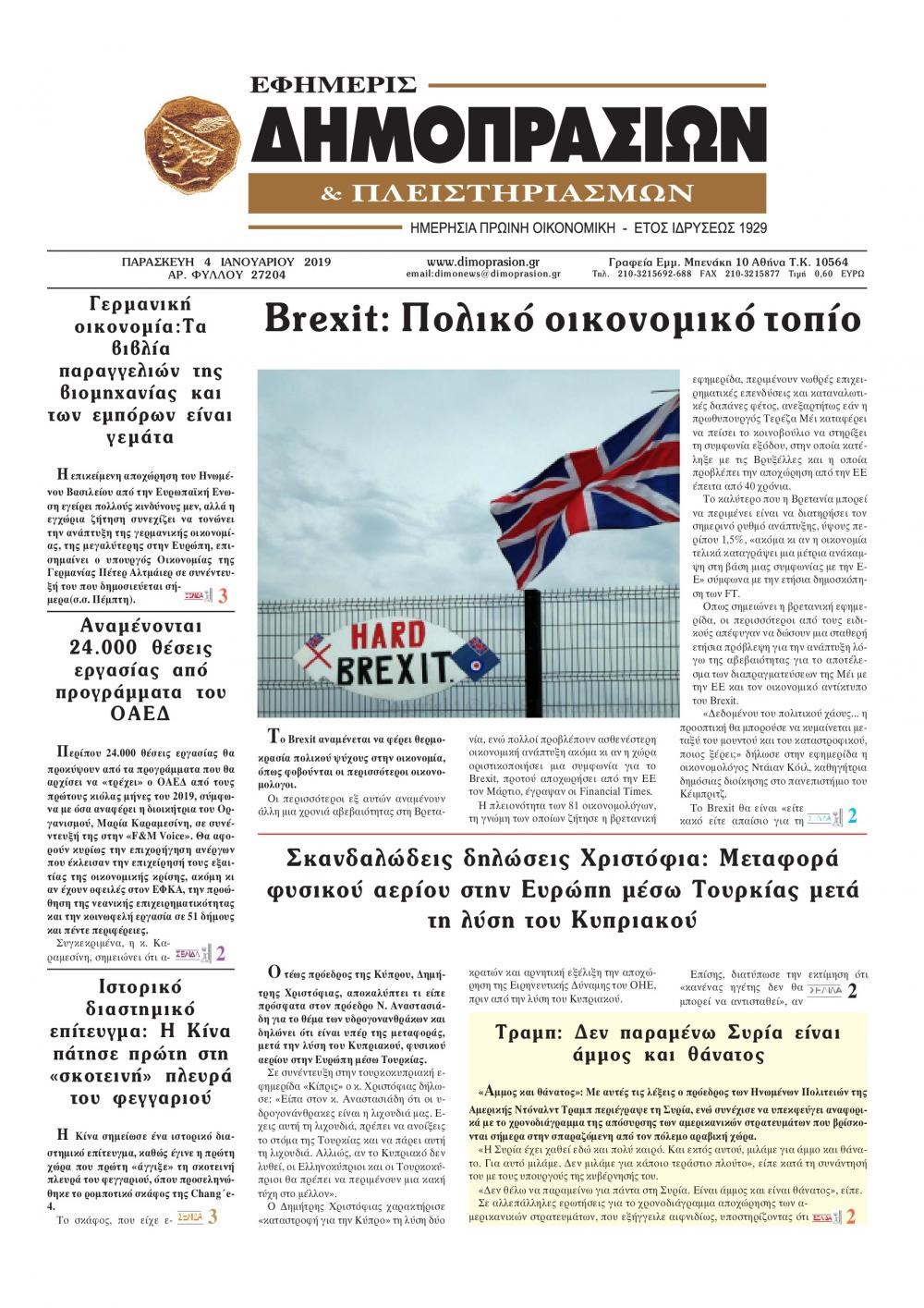 Οι οικονομικές εφημερίδες 4/1/2019 Κώστας Τεό 06:51, Παρασκευή 04 Ιανουαρίου 2019 Media Διαβάστε τα πρωτοσέλιδα των οικονομικών εφημερίδων: ΟΙΚΟΝΟΜΙΚΕΣ ΕΦΗΜΕΡΙΔΕΣ ΠΡΩΤΟΣΕΛΙΔΑ Μοιράσου το: σχολίασε κι εσύ (0 σχόλια) Ακολουθήστε το enikos.gr στο Google News και μάθετε πρώτοι όλες τις ειδήσεις Δείτε όλες τις τελευταίες ειδήσεις από την Ελλάδα και τον Κόσμο στο enikos.gr Ειδήσεις Ροή Ειδήσεων 3 ώρες πριν Πέθανε η Ελένη Γλύκατζη-Αρβελέρ 2 ώρες πριν Ελένη Γλύκατζη-Αρβελέρ: Όσα είχε πει στο Ενώπιος Ενωπίω και τον Νίκο Χατζηνικολάου το 2020 – «Γεννήθηκα και θα πεθάνω Αριστερή» 6 ώρες πριν Υπουργείο Πολιτισμού: Στο Βέλγιο τις επόμενες ημέρες εμπειρογνώμονες για τις φωτογραφίες των 200 εκτελεσθέντων της Καισαριανής 2 ώρες πριν ΠΑΣΟΚ: Εκτός της Κοινοβουλευτικής Ομάδας του κόμματος ο Παναγιώτης Παρασκευαΐδης 2 ώρες πριν Ρόμπερτ Ντιβάλ: Πέθανε σε ηλικία 95 ετών ο βραβευμένος με Όσκαρ ηθοποιός 34 λεπτά πριν Ύπνος: Τα δύο προειδοποιητικά σημάδια της άνοιας που μπορεί να εμφανιστούν τη νύχτα, σύμφωνα με ειδικούς 4 ώρες πριν Πώς να εξαφανίσετε τη μυρωδιά του κρεμμυδιού από τα χέρια σας, χωρίς να χρησιμοποιήσετε γάντια 2 ώρες πριν Αριθμολογία: Ποιος είναι ο αγγελικός σας αριθμός, ανάλογα με το έτος γέννησής σας 3 ώρες πριν Θα εκραγεί το υπερηφαίστειο του Yellowstone; – Τα παράξενα πράγματα που συμβαίνουν στο Εθνικό Πάρκο 4 λεπτά πριν Πολιτική Προστασία: Σε κατάσταση Έκτακτης Ανάγκης δύο δημοτικές κοινότητες της Νάξου λόγω έντονων καιρικών φαινομένων 7 λεπτά πριν Ιωάννα Μαλέσκου: «Έχω ξεκινήσει να βάζω όρια στη ζωή μου και έχει βελτιωθεί αισθητά» 18 λεπτά πριν «Porto Leone: Στη γειτονιά με τα κόκκινα φανάρια»: Η οικογένεια Βούλγαρη βυθίζεται στο πένθος 23 λεπτά πριν Κυριάκος Μητσοτάκης για τον θάνατο της Ελένης Γλύκατζη-Αρβελέρ: «Προσωπικά χάνω μία ξεχωριστή φίλη και πολύτιμη σύμβουλο» 28 λεπτά πριν Instant Win: Η νέα εμπειρία διασκέδασης βρίσκεται στα καταστήματα Allwyn – Κέρδη έως 500 ευρώ στη στιγμή σε χιλιάδες τυχερούς με δωρεάν συμμετοχή ENIKOS NETWORK Αϋπνία: Το κόλπο με τη βραστή μπανάνα που θα σας βοηθήσει να κοιμηθείτε μέσα σε 30 λεπτά ΙΣΑ: Επιστολή στον υπουργό Άμυνας για αναβολή στράτευσης νέων γιατρών λόγω ειδικότητας Καλαφάτης: «Θέλουμε η έρευνα να απαντά σε πραγματικά προβλήματα της κοινωνίας και των επιχειρήσεων» Τσάφος: Η Αθήνα έχει τη χαμηλότερη τιμή στο νερό σε σχέση με όλες τις άλλες πρωτεύουσες της ΕΕ Ευπάθεια στο moltbook ai αποκαλύπτει email, tokens σύνδεσης και api keys Αυτός είναι ο ρόλος της μικρής τρύπας στους νυχοκόπτες – «Είμαι ο μόνος που δεν το ήξερε;»» περισσότερα 22:16 , Δευτέρα 16 Φεβρουαρίου 2026 «Porto Leone: Στη γειτονιά με τα κόκκινα φανάρια»: Η οικογένεια Βούλγαρη βυθίζεται στο πένθος Ο κύκλος του αίματος για τις οικογένειες Καπετανάκου και Βούλγαρη δεν έχει κλείσει ακόμη και ο... 20:35 , Δευτέρα 16 Φεβρουαρίου 2026 MasterChef 10: Ποιοι θα είναι οι δύο υποψήφιοι προς αποχώρηση στο τέλος της βραδιάς; Στο επεισόδιο της Πέμπτης ο Παναγιώτης Καλημέρης ήταν αυτός που αποχώρησε από το MasterChef 10... 20:15 , Δευτέρα 16 Φεβρουαρίου 2026 Ελένη Γλύκατζη-Αρβελέρ: Όσα είχε πει στο Ενώπιος Ενωπίω και τον Νίκο Χατζηνικολάου το 2020 – «Γεννήθηκα και θα πεθάνω Αριστερή» Για τα παιδικά της χρόνια, την ένταξή της στην Αντίσταση καθώς και τα δύσκολα χρόνια της κατοχ... 20:15 , Δευτέρα 16 Φεβρουαρίου 2026 Άγιος έρωτας – Η Δώρα χάνει τον κόσμο κάτω απ’ τα πόδια της αντικρίζοντας ζωντανό τον Γεράσιμο Ο Χάρης είναι ελεύθερος πια να παντρευτεί την αγαπημ