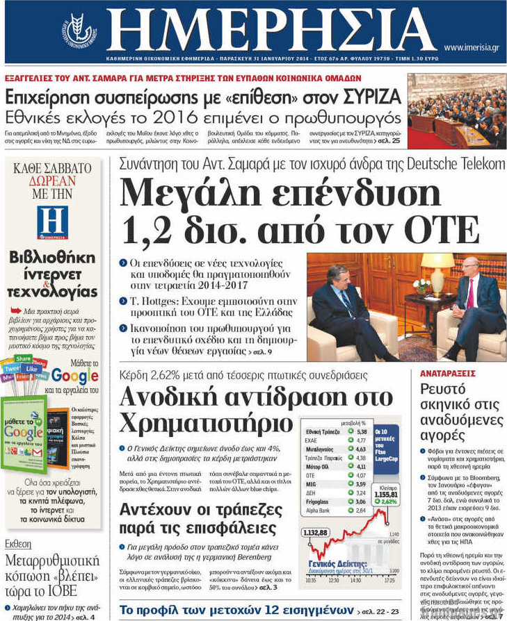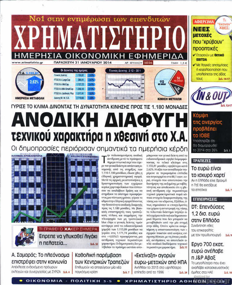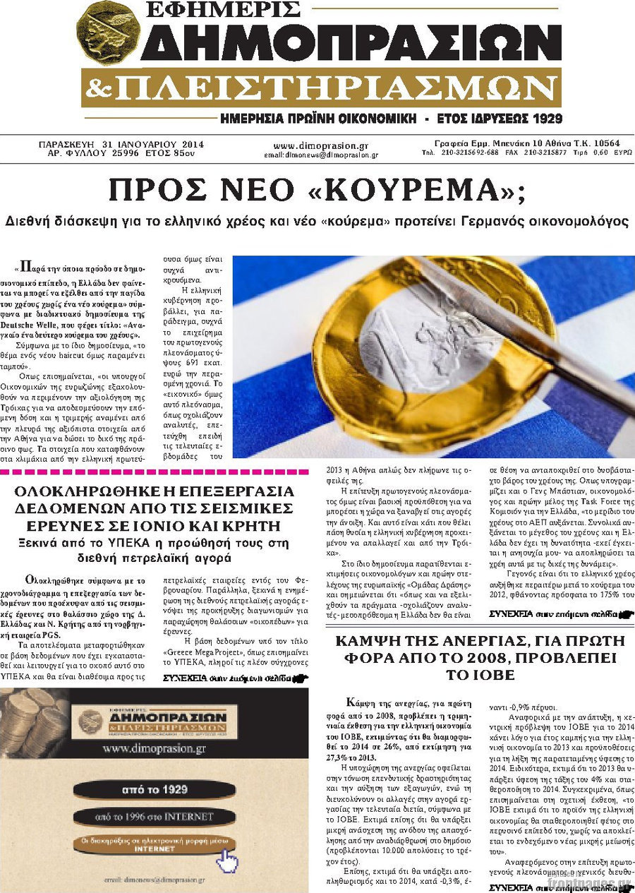 Οι oικονομικές εφημερίδες Enikos Newsroom 08:52, Παρασκευή 31 Ιανουαρίου 2014 Media Οι oικονομικές εφημερίδες Διαβάστε τα πρωτοσέλιδα των οικονομικών εφημερίδων: ΕΦΗΜΕΡΙΔΕΣ ΟΙΚΟΝΟΜΙΚΕΣ ΕΦΗΜΕΡΙΔΕΣ ΠΡΩΤΟΣΕΛΙΔΑ Μοιράσου το: σχολίασε κι εσύ (0 σχόλια) Ακολουθήστε το enikos.gr στο Google News και μάθετε πρώτοι όλες τις ειδήσεις Δείτε όλες τις τελευταίες ειδήσεις από την Ελλάδα και τον Κόσμο στο enikos.gr Ειδήσεις Ροή Ειδήσεων 3 ώρες πριν Αυξάνουν την πίεση προς την κυβέρνηση οι αγρότες: Κλείνουν παρακαμπτήριους και ανοίγουν διόδια – Τι θα γίνει τις γιορτές 2 ώρες πριν ΟΠΕΚΕΠΕ: Προφυλακιστέος ο φερόμενος αρχηγός και ο λογιστής της εγκληματικής οργάνωσης 3 ώρες πριν Φοινικούντα: Το Σάββατο απολογείται ο 30χρονος γιος γνωστού επιχειρηματία της Πλάκας που παραδόθηκε – Όσα είπε στους αστυνομικούς και ο ρόλος του στο έγκλημα 3 ώρες πριν Μπορεί ο Μαδούρο να αντέξει τον αποκλεισμό του Τραμπ; Τι θα χρειαστεί η Ουάσινγκτον για να τον ανατρέψει 4 ώρες πριν Πρίγκιπας Ουίλιαμ – Κέιτ: Η νέα οικογενειακή φωτογραφία για τις Χριστουγεννιάτικες κάρτες του 2025 4 ώρες πριν Ύπνος: Η απλή βραδινή ρουτίνα για να προστατεύσετε τα μαλλιά σας από το κρύο κατά τη διάρκεια του χειμώνα 5 ώρες πριν Manifesting: Πώς να συναντήσετε τον σύντροφο της ζωής σας, ανάλογα με τον μήνα γέννησής σας 2 ημέρες πριν 20 χρόνια τα Χριστούγεννα ξεκινούν στα Public με μεγάλη ποικιλία σε δώρα! 3 ώρες πριν Αρχαιολόγοι ανακάλυψαν ρωμαϊκά τεχνουργήματα από μια πόλη που δεν υπήρξε ποτέ – Τα τρία εντυπωσιακά κτίρια και ο αμφορέας με τις… σαρδέλες 2 λεπτά πριν Μάρκο Νίκολιτς: «Είμαι περήφανος για τους παίκτες μου, όποιος αντίπαλος και να έρθει θα προετοιμαστούμε» 11 λεπτά πριν ΟΗΕ: Την εκλογή του νέου ύπατου αρμοστή για τους Πρόσφυγες Μπαρχάμ Άχμεντ Σαλίχ χαιρέτησε ο Αντόνιο Γκουτέρες 15 λεπτά πριν Σύνοδος Κορυφής στις Βρυξέλλες: Ακόμη πιο κοντά σε διέξοδο για τη χρηματοδότηση της Ουκρανίας 23 λεπτά πριν ΟΗΕ: Iστορική επίσκεψη του Συμβουλίου Ασφαλείας στη Δαμασκό – Mήνυμα Ελλάδας για συμπερίληψη και λογοδοσία 30 λεπτά πριν Νέος πρέσβης της Μεγάλης Βρετανίας στις ΗΠΑ ο Κρίστιαν Τέρνερ ENIKOS NETWORK Σε περίοδο αυξημένης δραστηριότητας η γρίπη στην Ελλάδα-Μέτρα προστασίας από τον ΕΟΔΥ Σκέφτεστε συνέχεια συζητήσεις που έχετε κάνει; Τι σημαίνει αυτό, σύμφωνα με ειδικό Στεγαστικό: Τι λέει η ΠΟΜΙΔΑ για τα νέα μέτρα που ανακοίνωσε ο Κυριάκος Μητσοτάκης Λαγκάρντ: Αισιόδοξη για την ανάπτυξη της Ευρωζώνης, αβέβαιη για τον πληθωρισμό Χαρτογραφώντας το «σημείο χωρίς επιστροφή»: Για πρώτη φορά αποκαλύπτεται με λεπτομέρεια το ακανθώδες όριο της ατμόσφαιρας τ... Η Google καταργεί τη λειτουργία «dark web report» – Πώς θα μπορούν οι χρήστες να διαγράφουν τα δεδομένα τους περισσότερα 17:45 , Πέμπτη 18 Δεκεμβρίου 2025 ROUK ZOUK: Εορταστικό επεισόδιο με καλεσμένους τους πρωταγωνιστές του «Γιατί ρε πατέρα» Το Σάββατο 20 Δεκεμβρίου στις 21:00, η Ζέτα Μακρυπούλια υποδέχεται εκλεκτούς ηθοποιούς που όλο... 17:20 , Πέμπτη 18 Δεκεμβρίου 2025 Άγιος έρωτας: Η Χριστίνα εξομολογείται στον πατέρα Νικόλαο, απόψε στις 21:00 στον Alpha Η Νότα αποφασίζει να εκδικηθεί τον Πέτρο και τον Στέφανο, για χάρη του Λούη, όμως τα πράγματα ... 16:50 , Πέμπτη 18 Δεκεμβρίου 2025 Να μ’ αγαπάς: Ζωή και Φωτεινή συμφιλιώνονται ως μάνα με κόρη, απόψε στις 20:00 Η ταυτότητα του Άγγελου αποκαλύπτεται στο νέο επεισόδιο της σειράς “Να μ’ αγαπάς... 15:52 , Πέμπτη 18 Δεκεμβρίου 2025 Το Σπίτι Δίπλα Στο Ποτάμι: Το καθηλωτικό τελευταίο επεισόδιο για 