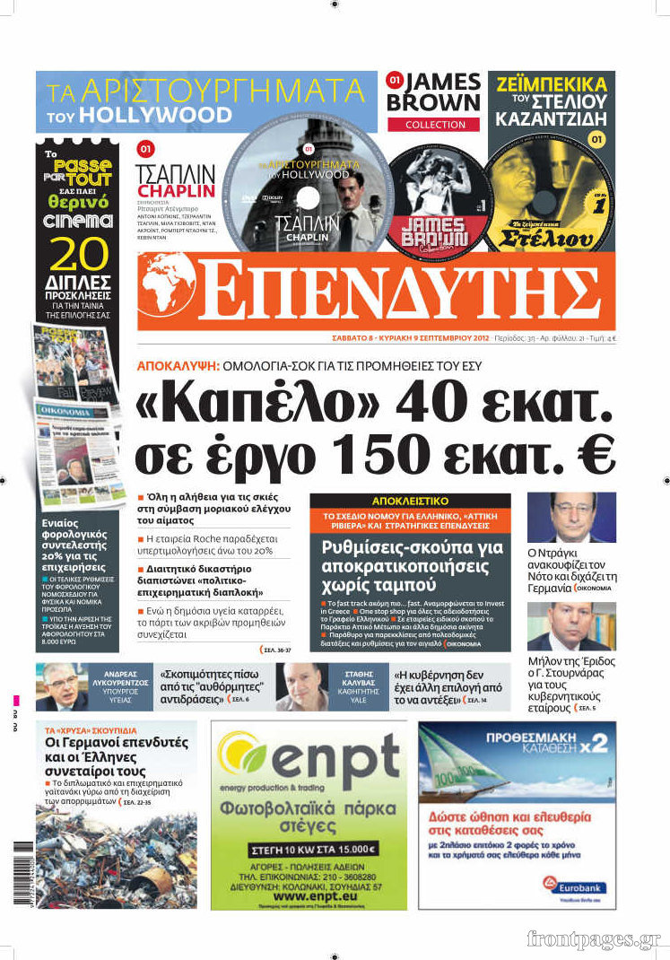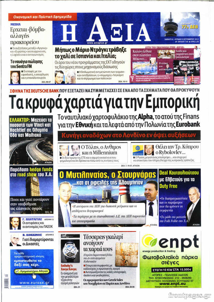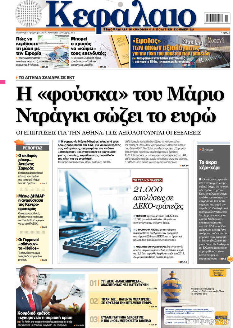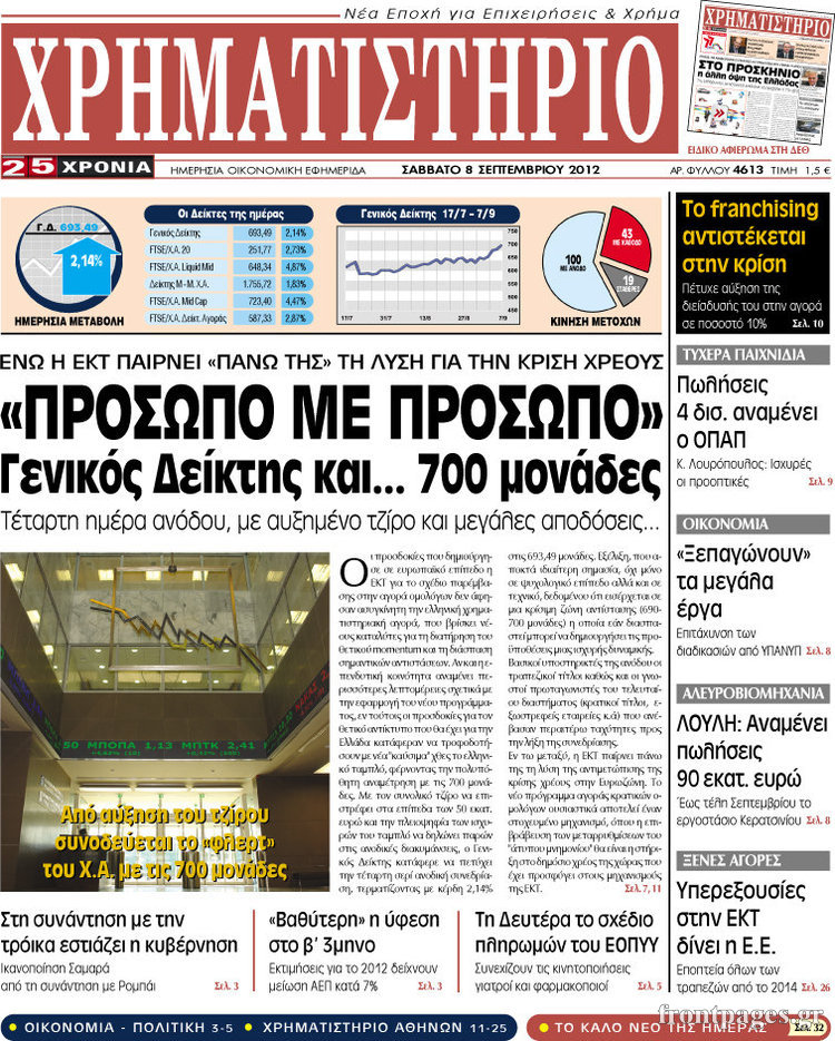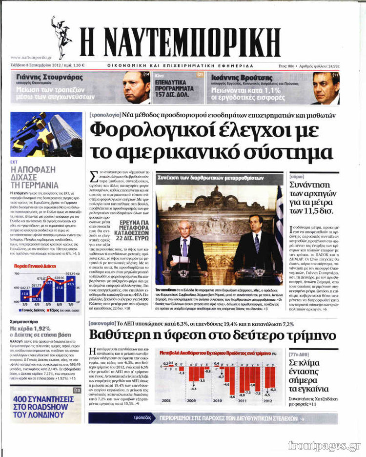 Διαβάστε τα πρωτοσέλιδα των οικονομικών εφημερίδων…