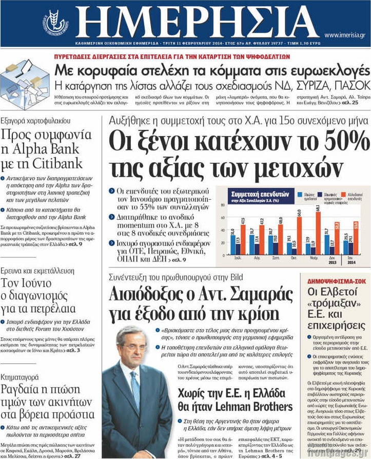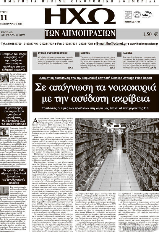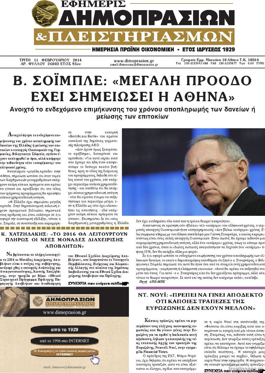 Οι oικονομικές εφημερίδες Enikos Newsroom 08:56, Τρίτη 11 Φεβρουαρίου 2014 Media Οι oικονομικές εφημερίδες Διαβάστε τα πρωτοσέλιδα των οικονομικών εφημερίδων: ΕΦΗΜΕΡΙΔΕΣ ΟΙΚΟΝΟΜΙΚΕΣ ΕΦΗΜΕΡΙΔΕΣ Μοιράσου το: σχολίασε κι εσύ (0 σχόλια) Ακολουθήστε το enikos.gr στο Google News και μάθετε πρώτοι όλες τις ειδήσεις Δείτε όλες τις τελευταίες ειδήσεις από την Ελλάδα και τον Κόσμο στο enikos.gr Ειδήσεις Ροή Ειδήσεων 6 ώρες πριν Μητσοτάκης: Αναγκαία η μεταρρύθμιση του πρωτογενούς τομέα – Τα 6 νέα μέτρα για το στεγαστικό και οι αναφορές σε «Ιθάκη» και «πολιτικούς του καναπέ» 5 ώρες πριν Δάνεια σε ελβετικό φράγκο: Τα βασικά σημεία της ρύθμισης – ανάσας για 40.000 δανειολήπτες – Αναλυτικός οδηγός με ερωτήσεις και απαντήσεις 4 ώρες πριν Κυψέλη: Εξιτήριο πήρε η 14χρονη μαθήτρια που μαχαιρώθηκε από την 16χρονη σε σχολείο – «Θέλω να βοηθήσω το παιδί, έχει μπλέξει με κακές παρέες» 4 ώρες πριν Τραμπ: Γιατί κατέθεσε τώρα την αγωγή κατά του BBC – Πώς η κίνησή του εξυπηρετεί το νέο δόγμα του για «αντίσταση» στην Ευρώπη, υπέρ των συντηρητικών 5 ώρες πριν ΟΠΕΚΕΠΕ – Παράνομες επιδοτήσεις: Ελεύθεροι με περιοριστικούς όρους και οι 7 κατηγορούμενοι που απολογήθηκαν σήμερα 4 ώρες πριν Ανακαλύφθηκε βυθισμένη πέτρινη κατασκευή ανοιχτά της Κριμαίας – Αποτελεί μέρος αρχαίας ελληνικής αποικίας 5 ώρες πριν Ύπνος: Αυτό μπορεί να είναι το χειρότερο λάθος για το βιολογικό ρολόι σας, σύμφωνα με ειδικό 6 ώρες πριν Αριθμολογία: Οι άνθρωποι που έχουν γεννηθεί αυτές τις 3 ημερομηνίες, προσελκύουν μεγάλη τύχη πριν από το τέλος του 2025 8 ώρες πριν Οι 7 συμπεριφορές που μαρτυρούν ότι ένας άνδρας επενδύει μακροπρόθεσμα σε μια σχέση 5 λεπτά πριν Παναθηναϊκός: Η έντονη επιθυμία του Ματίας Λεσόρ να επιστρέψει στα γήπεδα – «Μου λείπει πολύ το γ@@@@». 20 λεπτά πριν Νίκος Πλακιάς: Η Μαρία Καρυστιανού πλέον θα κρίνεται ως πολιτικός και όχι ως συγγενής 35 λεπτά πριν Ντόναλντ Τραμπ: Κάλυψε απόλυτα την προσωπάρχη του Λευκού Οίκου: «Ναι, έχω προσωπικότητα αλκοολικού» 50 λεπτά πριν ΗΠΑ: Στην αγορά δύο Boeing 747-8 προχωρά η Πολεμική Αεροπορία για την υποστήριξη του προεδρικού στόλου 1 ώρα πριν Ιταλία: Λεωφορείο έπεσε πάνω σε βιτρίνα καταστήματος στο Τορίνο – Τρεις τραυματίες ENIKOS NETWORK Αίτημα ΙΣΑ για την εξαίρεση των προσωπικών γιατρών από τις κατ’ οίκον επισκέψεις Η σκανδιναβική μέθοδος στον ύπνο που μπορεί να σώσει έναν γάμο Πιερρακάκης: Ο προϋπολογισμός συμβάλλει ουσιαστικά στην ενίσχυση της αγοραστικής δύναμης της πλειονότητας των εργαζομένων e-ΕΦΚΑ: Παρατείνεται η προθεσμία για την υποβολή ΑΠΔ – Ποιους αφορά Σύγχρονος Νοστράδαμος: Προειδοποιεί για «μεγάλο γεγονός» τους επόμενους μήνες που θα συγκλονίσει τη Βρετανία και τον κόσμο Τεστ παρατηρητικότητας: Μπορείτε να βρείτε τις 3 διαφορές στις εικόνες με έναν πιγκουίνο σε 14 δευτερόλεπτα περισσότερα 20:06 , Τρίτη 16 Δεκεμβρίου 2025 Ο ΣΚΑΙ καταγγέλλει τον ΕΚΚΟΜΕΔ Επιστολή με την οποία καταγράφει την έντονη διαμαρτυρία του προς τον διευθύνοντα σύμβουλο του... 17:40 , Τρίτη 16 Δεκεμβρίου 2025 Eurovision: Στις 4 Ιανουαρίου αποκαλύπτονται τα 28 τραγούδια του ελληνικού τελικού Η αγωνία τελειώνει, η γιορτή της Eurovision αρχίζει στην ΕΡΤ από τις πρώτες ημέρες της νέας χρ... 17:09 , Τρίτη 16 Δεκεμβρίου 2025 Alter Ego Media: Βαθύτατη θλίψη και ειλικρινή συλλυπητήρια για την απώλεια της Ειρήνης Μαρινάκη Τη βαθύτατη θλίψη και τα ειλικρινή συλλυπητήριά της εκφράζει η Alter Ego Media για τον θάνατο ... 13:00 , Τρίτη 16 Δεκεμβρίου 2025 «Στο Παρά Πέν