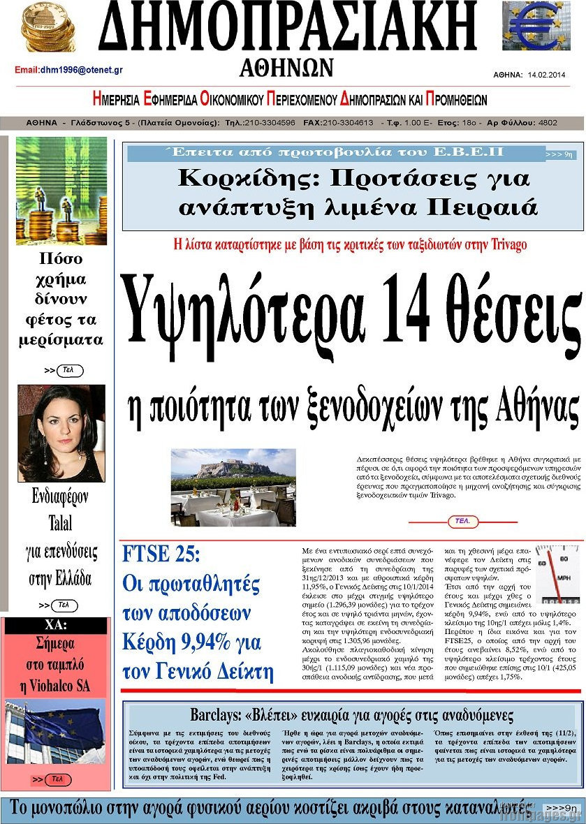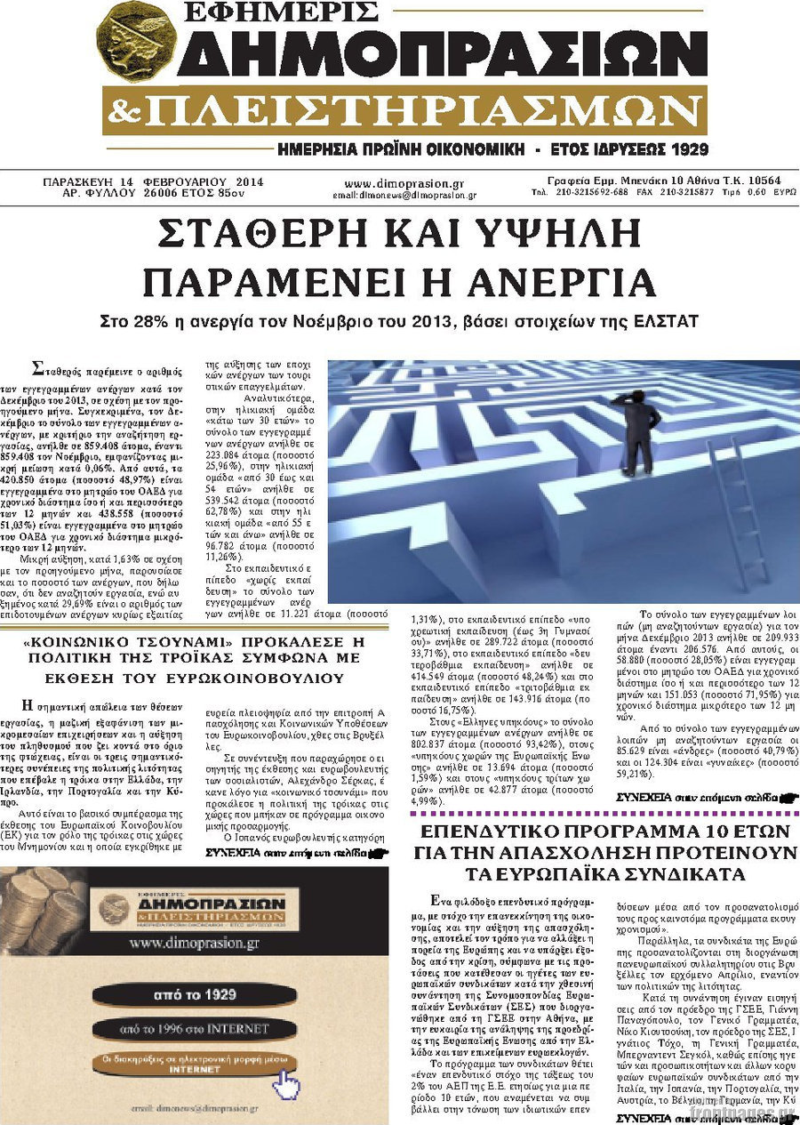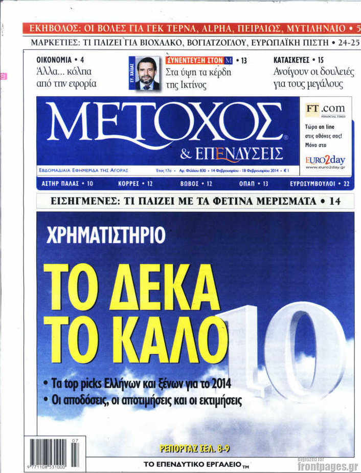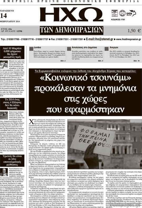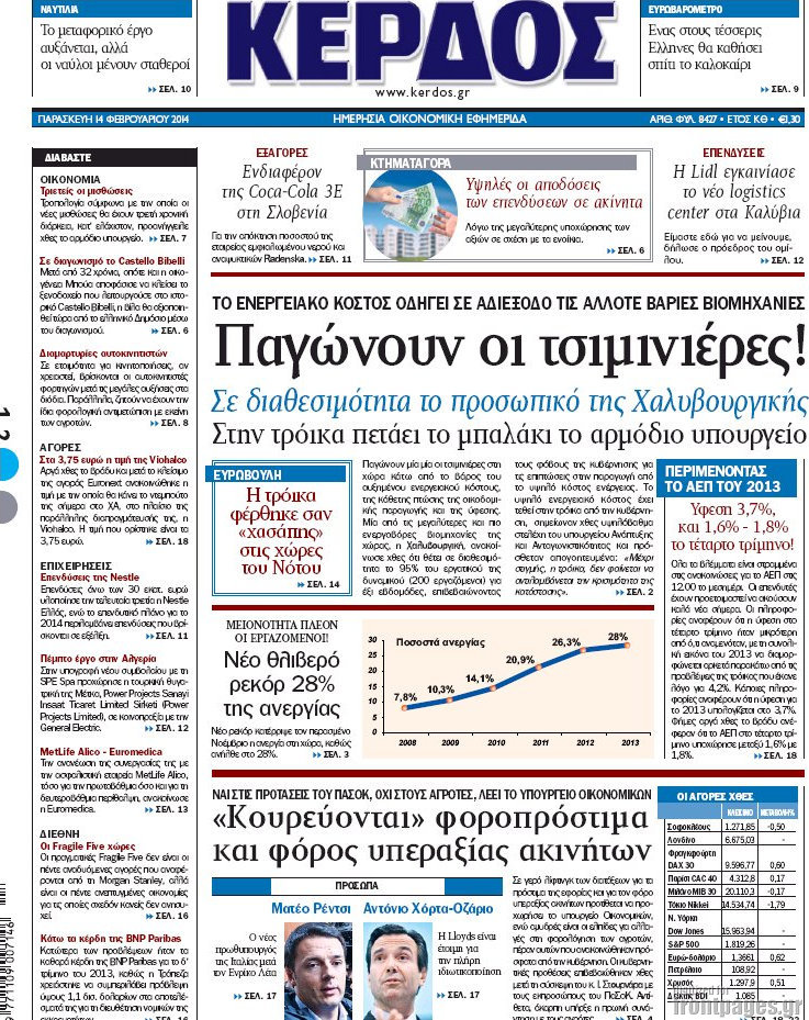 Οι oικονομικές εφημερίδες Enikos Newsroom 08:35, Παρασκευή 14 Φεβρουαρίου 2014 Media Οι oικονομικές εφημερίδες Διαβάστε τα πρωτοσέλιδα των οικονομικών εφημερίδων: ΕΦΗΜΕΡΙΔΕΣ ΟΙΚΟΝΟΜΙΚΕΣ ΕΦΗΜΕΡΙΔΕΣ ΠΡΩΤΟΣΕΛΙΔΑ Μοιράσου το: σχολίασε κι εσύ (0 σχόλια) Ακολουθήστε το enikos.gr στο Google News και μάθετε πρώτοι όλες τις ειδήσεις Δείτε όλες τις τελευταίες ειδήσεις από την Ελλάδα και τον Κόσμο στο enikos.gr Ειδήσεις Ροή Ειδήσεων 56 λεπτά πριν Μητσοτάκης για αγρότες: Ελπίζω πως θα απομακρυνθούν σύντομα από τα μπλόκα 3 ώρες πριν Έρευνα MRB: Η πρόθεση ψήφου και τα σημαντικότερα προβλήματα – Οι «λέξεις» που εκφράζουν τους πολίτες 2 ώρες πριν Αλαλούμ με τις πληρωμές στους αγρότες: Δεν καταβλήθηκε η Βασική Ενίσχυση, αλλά έγινε παρακράτηση της εισφοράς στον ΕΛΓΑ – Τι απαντά η κυβέρνηση 2 ώρες πριν Κλέφτες άρπαξαν έναν… 12μετρο φουσκωτό Άγιο Βασίλη – «Αν κάποιος έχει πληροφορίες να επικοινωνήσει μαζί μας» 2 ώρες πριν Εξεταστική ΟΠΕΚΕΠΕ – Μυλωνάκης: «Ουδέποτε είχα πληροφόρηση ή ενημέρωσα οποιονδήποτε για επισυνδέσεις της δικογραφίας» 2 ώρες πριν Τα 4 ζώδια που ξαναβρίσκουν τον εαυτό τους – «Μπαίνετε επιτέλους στην ουσία των πραγμάτων» 3 ώρες πριν 20 χρόνια τα Χριστούγεννα ξεκινούν στα Public με μεγάλη ποικιλία σε δώρα! 2 ώρες πριν «Δεν είχα κλάψει από τότε που διαγνώστηκα με καρκίνο, ώσπου ένα τηλεφώνημα με έκανε να λυγίσω» – Η συγκλονιστική εξομολόγηση ενός άνδρα 45 λεπτά πριν Τα 7 σπάνια χαρακτηριστικά που κάνουν κάποιους ανθρώπους ακαταμάχητους 1 λεπτό πριν Τα πολυκαταστήματα attica και το Σωματείο ΕΛΠΙΔΑ εγκαινιάζουν τις ανακαινισμένες παιδικές χαρές και ανακοινώνουν τη συνέχιση της σύμπραξής τους τα φετινά Χριστούγεννα 3 λεπτά πριν Μισέλ Ομπάμα: Εμφανώς αδυνατισμένη στην εκπομπή του Τζίμι Κίμελ – Οι φήμες για τη χρήση Ozempic και η «φιλία» της με τον Ρομπ Ράινερ 10 λεπτά πριν Μίρκα Παπακωνσταντίνου: «Δεν ήμουν αισιόδοξη για τα νούμερα – Είμαι ρεαλίστρια» 16 λεπτά πριν Μεγάλη Χριστουγεννιάτικη Αγορά στην πλατεία Κοτζιά: Ξύλινα σπιτάκια, καρουζέλ και μουσική – Όλο το πρόγραμμα 20 λεπτά πριν Εξεταστική για τον ΟΠΕΚΕΠΕ: Αντιπαράθεση για την ταυτότητα του «Φραπέ» ENIKOS NETWORK Ανησυχητική αύξηση της υπέρτασης στα παιδιά – Πώς θα τα προστατέψουμε; Αδενώματα Υπόφυσης: Μια πάθηση καλοήθης, αλλά όχι αθώα Προϋπολογισμός: Στα 12,6 δισ. ευρώ το πρωτογενές πλεόνασμα το 11μηνο-Δείτε αναλυτικά τα στοιχεία Ελεύθεροι επαγγελματίες: Ποιοι κλάδοι δήλωσαν τους υψηλότερους ετήσιους τζίρους και ποιοι τους χαμηλότερους-Δείτε τα στοιχε... Σύγχρονος Νοστράδαμος: Προειδοποιεί για «μεγάλο γεγονός» τους επόμενους μήνες που θα συγκλονίσει τη Βρετανία και τον κόσμο Τεστ παρατηρητικότητας: Μπορείτε να βρείτε τις 3 διαφορές στις εικόνες με έναν πιγκουίνο σε 14 δευτερόλεπτα περισσότερα 12:35 , Τετάρτη 17 Δεκεμβρίου 2025 Μίρκα Παπακωνσταντίνου: «Δεν ήμουν αισιόδοξη για τα νούμερα – Είμαι ρεαλίστρια» Στα γυρίσματα του εορταστικού επεισοδίου της αγαπημένης σειράς “Το Σόι Σου”, βρέθηκε η κάμερα ... 12:12 , Τετάρτη 17 Δεκεμβρίου 2025 Ακούστε την εκπομπή του Νίκου Χατζηνικολάου 17/12/2025 Ακούστε την εκπομπή του Νίκου Χατζηνικολάου στον ραδιοφωνικό σταθμό RealFm 97,8, την Τετάρτη 1... 11:35 , Τετάρτη 17 Δεκεμβρίου 2025 Home Alone: Το σπίτι της ταινίας θα ανακαινιστεί – Επιστροφή στην αισθητική της δεκαετίας του ’90 Οι νέοι ιδιοκτήτες του πραγματικού σπιτιού που παρουσιάζεται στην κλασική ταινία του 1990 «Hom... 11:25 , Τετάρτη 17 Δεκεμβρίου 2025 Grand Hotel: Απόψε το τ