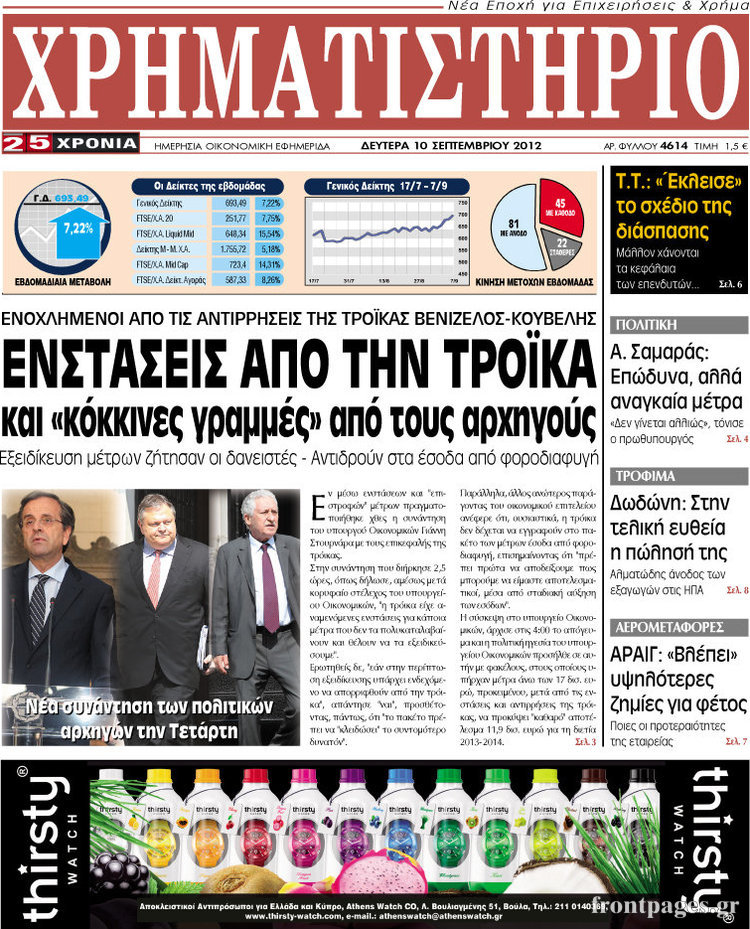 Δείτε τα πρωτοσέλιδα των οικονομικών εφημερίδων…