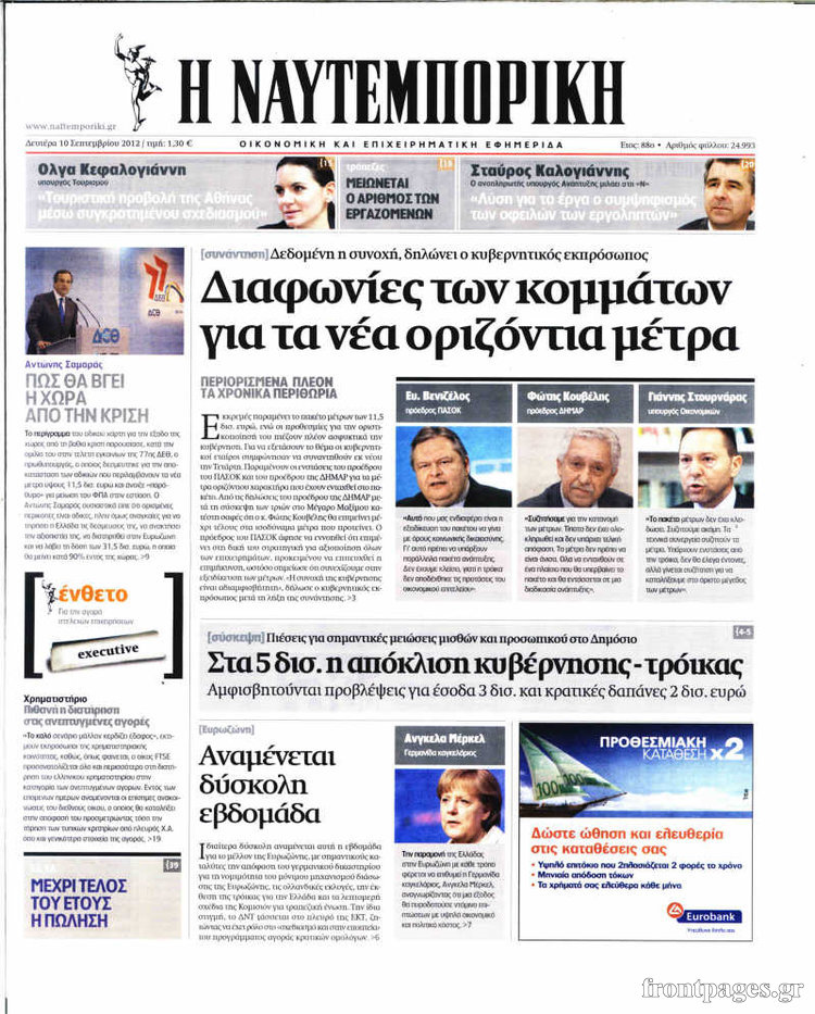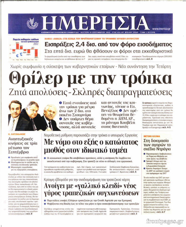 Δείτε τα πρωτοσέλιδα των οικονομικών εφημερίδων…