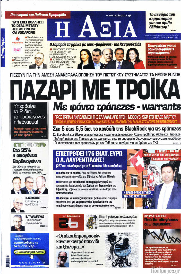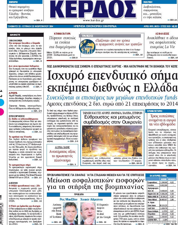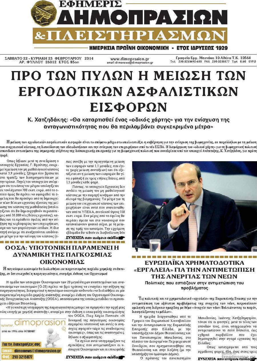 Οι oικονομικές εφημερίδες Enikos Newsroom 08:29, Σάββατο 22 Φεβρουαρίου 2014 Media Οι oικονομικές εφημερίδες Διαβάστε τα πρωτοσέλιδα των οικονομικών εφημερίδων: ΟΙΚΟΝΟΜΙΚΕΣ ΕΦΗΜΕΡΙΔΕΣ ΠΡΩΤΟΣΕΛΙΔΑ Μοιράσου το: σχολίασε κι εσύ (0 σχόλια) Ακολουθήστε το enikos.gr στο Google News και μάθετε πρώτοι όλες τις ειδήσεις Δείτε όλες τις τελευταίες ειδήσεις από την Ελλάδα και τον Κόσμο στο enikos.gr Ειδήσεις Ροή Ειδήσεων 2 ώρες πριν Σίδνεϊ: Βίντεο με ηλικιωμένο ζευγάρι που όρμησε για να σταματήσει τον έναν δράστη – Συγκλονιστικές μαρτυρίες για τους «ήρωες μέχρι τέλους» 20 λεπτά πριν Κατρίνης: «Ο μικρός μου γιος οδηγούσε χωρίς δίπλωμα, πράξη αδικαιολόγητη και παράνομη – Ο νόμος ισχύει για όλους» 3 ώρες πριν Κυψέλη: Υπό κατάληψη το σχολείο που η 16χρονη μαχαίρωσε συμμαθήτριά της – Την είχαν διώξει από προηγούμενο 16 λεπτά πριν Τσιάρας: Καλούμε τους αγρότες να έρθουν να συζητήσουμε για την επίλυση του θέματος 2 ώρες πριν «Το θαύμα των Χριστουγέννων»: Σκύλος που εξαφανίστηκε το 2021 βρέθηκε σε καταφύγιο ζώων σε απόσταση 3.200 χιλιομέτρων – ΒΙΝΤΕΟ 1 ώρα πριν Τέλος η μοναξιά για 3 ζώδια μετά τις 16 Δεκεμβρίου – «Ξαναβρίσκετε τον εαυτό σας» 5 ώρες πριν Οπτική ψευδαίσθηση: Μόνο 1 στους 10 ανθρώπους θα βρει το κόκκινο αυγό σε 7 δευτερόλεπτα 3 ώρες πριν Ανακαλύφθηκε περίτεχνη μαρμάρινη μπανιέρα που επαναχρησιμοποιήθηκε ως κρήνη 2 ώρες πριν Η πεθερά της την κατηγορεί πως δεν την ταΐζει σωστά – «Δεν παραπονιέται όμως στον γιο της» 4 λεπτά πριν Οι άνθρωποι που φαίνονται «τυχεροί» στη ζωή τους, συνήθως έχουν αυτές τις 8 αθόρυβες συνήθειες 4 λεπτά πριν Καινούργιου: «Με την εγκυμοσύνη προς το παρόν ξεχνάω, δεν βλέπω, δεν ακούω…» 9 λεπτά πριν ΕΕ: Η Κομισιόν παρουσιάζει σήμερα σχέδιο για την αντιμετώπιση της στεγαστικής κρίσης – Προτείνει πλαφόν στα Airbnb 14 λεπτά πριν Ντόναλντ Τραμπ Τζούνιορ: Αρραβωνιάστηκε για τρίτη φορά – «Εκλεκτή» της καρδιάς του η κοσμική Μπετίνα Άντερσον 16 λεπτά πριν Τσιάρας: Καλούμε τους αγρότες να έρθουν να συζητήσουμε για την επίλυση του θέματος ENIKOS NETWORK Οι ρίζες της άνοιας ίσως βρίσκονται στην παιδική ηλικία – Τι έδειξαν πρόσφατες μελέτες Όμιλος ΠΡΟΣΥΦΑΠΕ: Επιστρέφει στην κοινωνία τμήμα της υπεραξίας που παράγει Τα μυστικά για τις μεταβιβάσεις ακινήτων – Αναλυτικός οδηγός Προϋπολογισμός 2026: Η ομιλία Μητσοτάκη στη Βουλή- Τι θα πει για το αγροτικό, το στεγαστικό και το πακέτο μέτρων του 2026 Σύγχρονος Νοστράδαμος: Προειδοποιεί για «μεγάλο γεγονός» τους επόμενους μήνες που θα συγκλονίσει τη Βρετανία και τον κόσμο Τεστ παρατηρητικότητας: Μπορείτε να βρείτε τις 3 διαφορές στις εικόνες με έναν πιγκουίνο σε 14 δευτερόλεπτα περισσότερα 09:58 , Τρίτη 16 Δεκεμβρίου 2025 LIVE – Ακούστε την εκπομπή του Νίκου Χατζηνικολάου 16/12/2025 Ακούστε την εκπομπή του Νίκου Χατζηνικολάου, στον Realfm 97,8. Ακούστε LIVE εδώ 09:26 , Τρίτη 16 Δεκεμβρίου 2025 Τηλεθέαση (15/12): Τα νούμερα για την prime time – Ποιες σειρές ξεχώρισαν Ξεκάθαρη πρωτιά στην τηλεθέαση κατέκτησε η σειρά «Μια νύχτα μόνο», η οποία βρέθηκε στην κορυφή... 08:00 , Τρίτη 16 Δεκεμβρίου 2025 Την Κυριακή με τη Realnews: Δωροεπιταγή 10€ Δωροεπιταγή αξίας 10€ για αγορές άνω των 60€ από τα πολυκαταστήματα FactoryOutlet H προσφορά ι... 05:48 , Τρίτη 16 Δεκεμβρίου 2025 Οι οικονομικές εφημερίδες 16/12/2025 Διαβάστε τα πρωτοσέλιδα από τις οικονομικές εφημερίδες, σήμερα 16/12/2025. ΤΕΛΕΥΤΑΙΕΣ ΕΙΔΗΣΕΙΣ 4 λεπτά πριν Καινούργιου: «Με την εγκυμοσύνη προς το παρόν ξεχνάω,... 9 λεπτά πριν ΕΕ: Η Κομισιόν παρουσιάζει σήμε