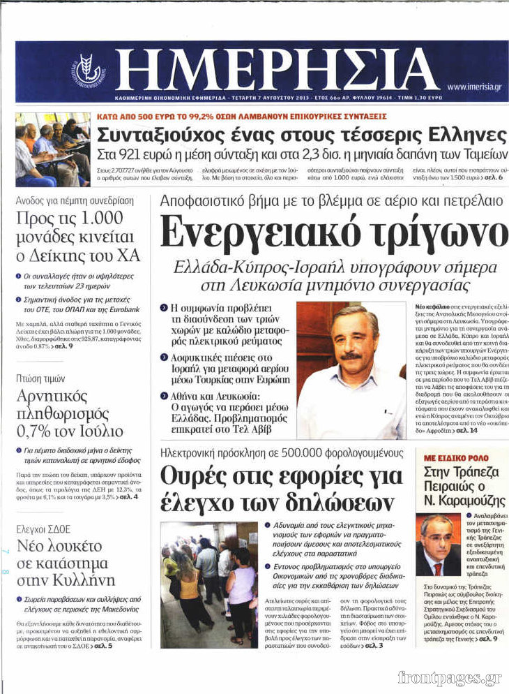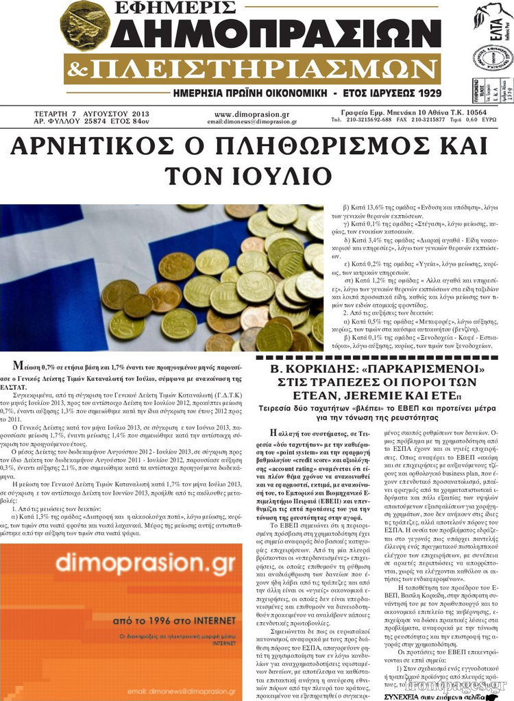 Οι οικονομικές εφημερίδες Enikos Newsroom 08:16, Τετάρτη 07 Αυγούστου 2013 Media Οι οικονομικές εφημερίδες ΕΦΗΜΕΡΙΔΕΣ ΟΙΚΟΝΟΜΙΚΕΣ ΕΦΗΜΕΡΙΔΕΣ Μοιράσου το: σχολίασε κι εσύ (0 σχόλια) Ακολουθήστε το enikos.gr στο Google News και μάθετε πρώτοι όλες τις ειδήσεις Δείτε όλες τις τελευταίες ειδήσεις από την Ελλάδα και τον Κόσμο στο enikos.gr Ειδήσεις Ροή Ειδήσεων 3 ώρες πριν Αυξάνουν την πίεση προς την κυβέρνηση οι αγρότες: Κλείνουν παρακαμπτήριους και ανοίγουν διόδια – Τι θα γίνει τις γιορτές 2 ώρες πριν ΟΠΕΚΕΠΕ: Προφυλακιστέος ο φερόμενος αρχηγός και ο λογιστής της εγκληματικής οργάνωσης 3 ώρες πριν Φοινικούντα: Το Σάββατο απολογείται ο 30χρονος γιος γνωστού επιχειρηματία της Πλάκας που παραδόθηκε – Όσα είπε στους αστυνομικούς και ο ρόλος του στο έγκλημα 3 ώρες πριν Μπορεί ο Μαδούρο να αντέξει τον αποκλεισμό του Τραμπ; Τι θα χρειαστεί η Ουάσινγκτον για να τον ανατρέψει 4 ώρες πριν Πρίγκιπας Ουίλιαμ – Κέιτ: Η νέα οικογενειακή φωτογραφία για τις Χριστουγεννιάτικες κάρτες του 2025 4 ώρες πριν Ύπνος: Η απλή βραδινή ρουτίνα για να προστατεύσετε τα μαλλιά σας από το κρύο κατά τη διάρκεια του χειμώνα 5 ώρες πριν Manifesting: Πώς να συναντήσετε τον σύντροφο της ζωής σας, ανάλογα με τον μήνα γέννησής σας 2 ημέρες πριν 20 χρόνια τα Χριστούγεννα ξεκινούν στα Public με μεγάλη ποικιλία σε δώρα! 3 ώρες πριν Αρχαιολόγοι ανακάλυψαν ρωμαϊκά τεχνουργήματα από μια πόλη που δεν υπήρξε ποτέ – Τα τρία εντυπωσιακά κτίρια και ο αμφορέας με τις… σαρδέλες 3 λεπτά πριν Μάρκο Νίκολιτς: «Είμαι περήφανος για τους παίκτες μου, όποιος αντίπαλος και να έρθει θα προετοιμαστούμε» 12 λεπτά πριν ΟΗΕ: Την εκλογή του νέου ύπατου αρμοστή για τους Πρόσφυγες Μπαρχάμ Άχμεντ Σαλίχ χαιρέτησε ο Αντόνιο Γκουτέρες 16 λεπτά πριν Σύνοδος Κορυφής στις Βρυξέλλες: Ακόμη πιο κοντά σε διέξοδο για τη χρηματοδότηση της Ουκρανίας 24 λεπτά πριν ΟΗΕ: Iστορική επίσκεψη του Συμβουλίου Ασφαλείας στη Δαμασκό – Mήνυμα Ελλάδας για συμπερίληψη και λογοδοσία 31 λεπτά πριν Νέος πρέσβης της Μεγάλης Βρετανίας στις ΗΠΑ ο Κρίστιαν Τέρνερ ENIKOS NETWORK Σε περίοδο αυξημένης δραστηριότητας η γρίπη στην Ελλάδα-Μέτρα προστασίας από τον ΕΟΔΥ Σκέφτεστε συνέχεια συζητήσεις που έχετε κάνει; Τι σημαίνει αυτό, σύμφωνα με ειδικό Στεγαστικό: Τι λέει η ΠΟΜΙΔΑ για τα νέα μέτρα που ανακοίνωσε ο Κυριάκος Μητσοτάκης Λαγκάρντ: Αισιόδοξη για την ανάπτυξη της Ευρωζώνης, αβέβαιη για τον πληθωρισμό Χαρτογραφώντας το «σημείο χωρίς επιστροφή»: Για πρώτη φορά αποκαλύπτεται με λεπτομέρεια το ακανθώδες όριο της ατμόσφαιρας τ... Η Google καταργεί τη λειτουργία «dark web report» – Πώς θα μπορούν οι χρήστες να διαγράφουν τα δεδομένα τους περισσότερα 17:45 , Πέμπτη 18 Δεκεμβρίου 2025 ROUK ZOUK: Εορταστικό επεισόδιο με καλεσμένους τους πρωταγωνιστές του «Γιατί ρε πατέρα» Το Σάββατο 20 Δεκεμβρίου στις 21:00, η Ζέτα Μακρυπούλια υποδέχεται εκλεκτούς ηθοποιούς που όλο... 17:20 , Πέμπτη 18 Δεκεμβρίου 2025 Άγιος έρωτας: Η Χριστίνα εξομολογείται στον πατέρα Νικόλαο, απόψε στις 21:00 στον Alpha Η Νότα αποφασίζει να εκδικηθεί τον Πέτρο και τον Στέφανο, για χάρη του Λούη, όμως τα πράγματα ... 16:50 , Πέμπτη 18 Δεκεμβρίου 2025 Να μ’ αγαπάς: Ζωή και Φωτεινή συμφιλιώνονται ως μάνα με κόρη, απόψε στις 20:00 Η ταυτότητα του Άγγελου αποκαλύπτεται στο νέο επεισόδιο της σειράς “Να μ’ αγαπάς... 15:52 , Πέμπτη 18 Δεκεμβρίου 2025 Το Σπίτι Δίπλα Στο Ποτάμι: Το καθηλωτικό τελευταίο επεισόδιο για το 2025 απόψε στις 22:30 Καθηλώνει το σημερινό επεισόδιο της σειράς “Το 