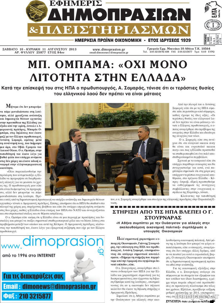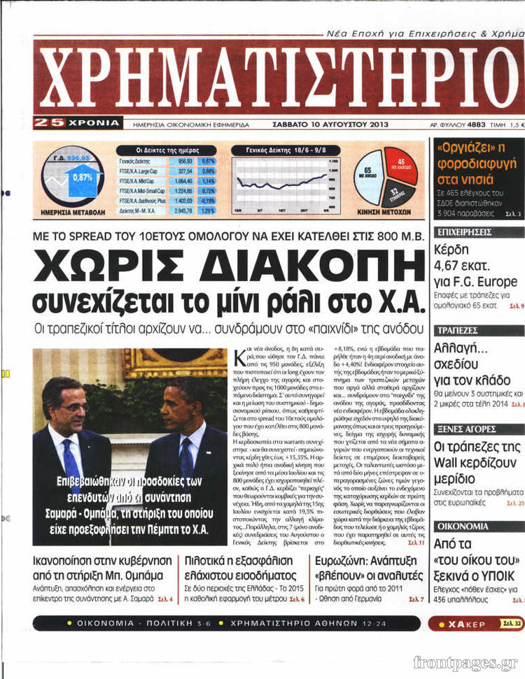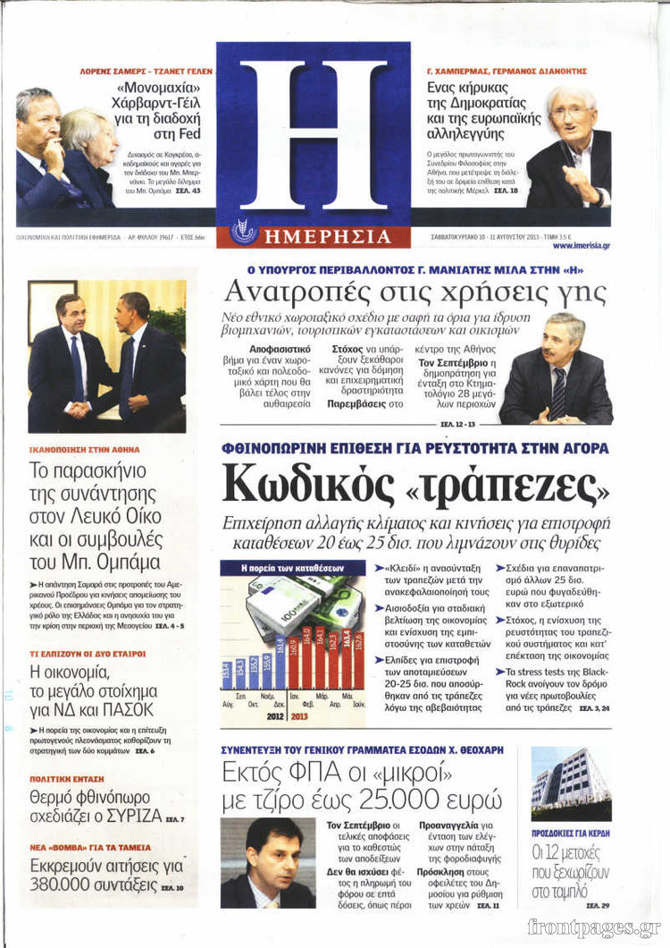 Oι οικονομικές εφημερίδες Enikos Newsroom 08:20, Σάββατο 10 Αυγούστου 2013 Media Oι οικονομικές εφημερίδες ΕΦΗΜΕΡΙΔΕΣ ΟΙΚΟΝΟΜΙΚΕΣ ΕΦΗΜΕΡΙΔΕΣ Μοιράσου το: σχολίασε κι εσύ (0 σχόλια) Ακολουθήστε το enikos.gr στο Google News και μάθετε πρώτοι όλες τις ειδήσεις Δείτε όλες τις τελευταίες ειδήσεις από την Ελλάδα και τον Κόσμο στο enikos.gr Ειδήσεις Ροή Ειδήσεων 7 λεπτά πριν Νίκος Παππάς: Το παρασκήνιο της αποπομπής του – Οι μπουνιές, τα μηνύματα μετά την επίθεση και η διαγραφή από τον ΣΥΡΙΖΑ 1 ώρα πριν Φοροδιαφυγή: Ποιοι φορολογούμενοι κινδυνεύουν να πληρώσουν «τσουχτερά» πρόστιμα 33 λεπτά πριν Φοινικούντα: Παραδόθηκε 30χρονος στην Καλαμάτα για τη διπλή δολοφονία 50 λεπτά πριν Αγρότες: Ανυποχώρητοι στα μπλόκα – Στις Σέρρες σήμερα η κρίσιμη συνεδρίαση της Πανελλαδικής Επιτροπής 1 ώρα πριν Τα επίσημα χρονοδιαγράμματα που η Τουρκία θα παραλάβει τα Eurofighter 2 ώρες πριν Καούρα: Το μπαχαρικό που είναι «εξίσου αποτελεσματικό» με την ομεπραζόλη, σύμφωνα με ειδικούς 3 ώρες πριν Τα ζώδια σήμερα, Πέμπτη 18 Δεκεμβρίου: Λέοντες, η καρδιά σας θέλει να εκφραστεί 2 ώρες πριν Οπτική ψευδαίσθηση: Μόνο οι πιο έξυπνοι άνθρωποι θα βρουν 7 ξωτικά 15 δευτερόλεπτα 23 ώρες πριν 20 χρόνια τα Χριστούγεννα ξεκινούν στα Public με μεγάλη ποικιλία σε δώρα! 5 λεπτά πριν Δώρο Χριστουγέννων: Έως αύριο η καταβολή του – Πώς υπολογίζεται και τι πρέπει να κάνουν οι εργαζόμενοι που δεν θα το λάβουν 7 λεπτά πριν Νίκος Παππάς: Το παρασκήνιο της αποπομπής του – Οι μπουνιές, τα μηνύματα μετά την επίθεση και η διαγραφή από τον ΣΥΡΙΖΑ 10 λεπτά πριν Κίνηση: «Κόκκινος» ο Κηφισός, μποτιλιάρισμα στο κέντρο της Αθήνας – Καθυστερήσεις 25′ στην Αττική Οδό 16 λεπτά πριν Αλμπέρτο Εσκενάζυ: Το μεσημέρι το «τελευταίο αντίο» στο αποτεφρωτήριο της Ριτσώνας – Η απόφαση της οικογένειάς του 20 λεπτά πριν Τραγωδία στη Θεσσαλονίκη: Νεκρή η 57χρονη που παρασύρθηκε από αυτοκίνητο στον Εύοσμο ENIKOS NETWORK Ουρική αρθρίτιδα: Μεγάλη μελέτη αποκαλύπτει τι μπορεί να προκαλεί τη νόσο Τι σημαίνει όταν ο σκύλος σας σάς φέρνει τυχαία αντικείμενα, σύμφωνα με εκπαιδεύτρια Οφειλές προς το Δημόσιο: «Φρένο» στα σενάρια για νέα ρύθμιση – Τι απαντά το υπουργείο Εθνικής Οικονομίας και Οικονομικών Φοροδιαφυγή: Ποιοι φορολογούμενοι κινδυνεύουν να πληρώσουν «τσουχτερά» πρόστιμα Χαρτογραφώντας το «σημείο χωρίς επιστροφή»: Για πρώτη φορά αποκαλύπτεται με λεπτομέρεια το ακανθώδες όριο της ατμόσφαιρας τ... Η Google καταργεί τη λειτουργία «dark web report» – Πώς θα μπορούν οι χρήστες να διαγράφουν τα δεδομένα τους περισσότερα 08:00 , Πέμπτη 18 Δεκεμβρίου 2025 Την Κυριακή με τη Realnews: Δωροεπιταγή 10€ Δωροεπιταγή αξίας 10€ για αγορές άνω των 60€ από τα πολυκαταστήματα FactoryOutlet H προσφορά ι... 07:50 , Πέμπτη 18 Δεκεμβρίου 2025 «Το σόι σου»: Backstage στα γυρίσματα για το εορταστικό επεισόδιο «Το σόι σου» φορά τα γιορτινά του για τα Χριστούγεννα και η Όλγα Λαφαζάνη, με την κάμερα του «... 07:36 , Πέμπτη 18 Δεκεμβρίου 2025 Οι αθλητικές μεταδόσεις 18/12/2025 – Πού θα δείτε τον αγώνα της ΑΕΚ με την Κραϊόβα για το Conference League Τα ματς ΑΕΚ – Ουνιβερσιτάτεα Κραϊόβα για το Conference League και Παναθηναϊκός – Χάποελ Τελ Αβ... 05:48 , Πέμπτη 18 Δεκεμβρίου 2025 Οι οικονομικές εφημερίδες 18/12/2025 Διαβάστε τα πρωτοσέλιδα από τις οικονομικές εφημερίδες, σήμερα 18/12/2025. ΤΕΛΕΥΤΑΙΕΣ ΕΙΔΗΣΕΙΣ 5 λεπτά πριν Δώρο Χριστουγέννων: Έως αύριο η καταβολή του – Πώς... 7 λεπτά πριν Νίκος Παππάς: Το παρασκήνιο της αποπομπής του – Οι... 10 λεπτά πριν Κίνηση: «Κόκκινος» ο Κηφισό