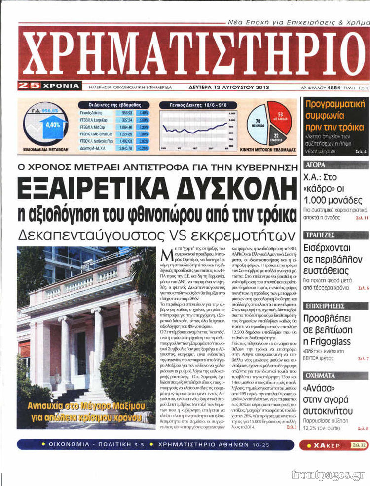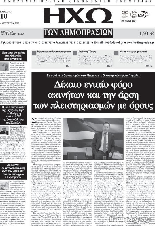 Oι οικονομικές εφημερίδες Enikos Newsroom 09:24, Δευτέρα 12 Αυγούστου 2013 Media Oι οικονομικές εφημερίδες ΕΦΗΜΕΡΙΔΕΣ ΟΙΚΟΝΟΜΙΚΕΣ ΕΦΗΜΕΡΙΔΕΣ Μοιράσου το: σχολίασε κι εσύ (0 σχόλια) Ακολουθήστε το enikos.gr στο Google News και μάθετε πρώτοι όλες τις ειδήσεις Δείτε όλες τις τελευταίες ειδήσεις από την Ελλάδα και τον Κόσμο στο enikos.gr Ειδήσεις Ροή Ειδήσεων 56 λεπτά πριν Δημοσκόπηση Metron Analysis: Στις 10 μονάδες η διαφορά ΝΔ-ΠΑΣΟΚ, στην 3η θέση η Πλεύση Ελευθερίας – 8 στους 10 στηρίζουν τον αγώνα των αγροτών 5 ώρες πριν Αγρότες: «Όχι στον διάλογο, μας εμπαίζει η κυβέρνηση» – Αποφάσισαν κλιμάκωση των κινητοποιήσεων, τι θα γίνει τα Χριστούγεννα 44 λεπτά πριν Νίκος Παππάς στον ΑΝΤ1: «Δεν κρύβομαι – Μετά το συμβάν ακολούθησα κανονικά το πρόγραμμά μου» – ΒΙΝΤΕΟ 2 ώρες πριν Αθήνα: Εξαρθρώθηκε εγκληματική οργάνωση που διακινούσε ναρκωτικά σε μορφή σοκολάτας – Δύο τράπερ ανάμεσα στους 4 συλληφθέντες – ΒΙΝΤΕΟ 37 λεπτά πριν Διαμαντής Καραναστάσης: Οδηγούσε υπό την επήρεια αλκοόλ – Του αφαιρέθηκε το δίπλωμα και του επιβλήθηκε πρόστιμο 350 ευρώ 1 ώρα πριν Manifesting: Πώς να συναντήσετε τον σύντροφο της ζωής σας, ανάλογα με τον μήνα γέννησής σας 3 ώρες πριν Γάμος: 11 ψυχρές αλλά ευγενικές φράσεις, που λέει ένας άνδρας όταν σκέφτεται τον χωρισμό 2 ώρες πριν Σφουγγάρισμα: Η συνήθεια που θα σας βοηθήσει να διατηρήσετε το σπίτι σας καθαρό και τακτοποιημένο 2 ημέρες πριν 20 χρόνια τα Χριστούγεννα ξεκινούν στα Public με μεγάλη ποικιλία σε δώρα! 8 λεπτά πριν Ύπνος: Η απλή βραδινή ρουτίνα για να προστατεύσετε τα μαλλιά σας από το κρύο κατά τη διάρκεια του χειμώνα 15 λεπτά πριν Κατερίνα Καινούργιου: «Δεν θα αφήσω κανέναν να χαλάσει τη ζαχαρένια μου στην ομορφότερη περίοδο της ζωής μου» 22 λεπτά πριν Θεσσαλονίκη: Προθεσμία για την επόμενη εβδομάδα έλαβαν οι συλληφθέντες για το κύκλωμα trafficking – Οι οίκοι ανοχής, τα «φρουτάκια» και οι ρόλοι 29 λεπτά πριν Πρίγκιπας Ουίλιαμ – Κέιτ: Η νέα οικογενειακή φωτογραφία για τις Χριστουγεννιάτικες κάρτες του 2025 37 λεπτά πριν Διαμαντής Καραναστάσης: Οδηγούσε υπό την επήρεια αλκοόλ – Του αφαιρέθηκε το δίπλωμα και του επιβλήθηκε πρόστιμο 350 ευρώ ENIKOS NETWORK Σε περίοδο αυξημένης δραστηριότητας η γρίπη στην Ελλάδα-Μέτρα προστασίας από τον ΕΟΔΥ Σκέφτεστε συνέχεια συζητήσεις που έχετε κάνει; Τι σημαίνει αυτό, σύμφωνα με ειδικό ΕΛΤΑ: Αυτό είναι το νέο σχέδιο μετασχηματισμού του Οργανισμού- Τι δήλωσαν Πιερρακάκης και Παπαστεργίου ΕΛΣΤΑΤ: Τι δείχνουν τα νέα στοιχεία για τον μόνιμο πληθυσμό στην Ελλάδα Χαρτογραφώντας το «σημείο χωρίς επιστροφή»: Για πρώτη φορά αποκαλύπτεται με λεπτομέρεια το ακανθώδες όριο της ατμόσφαιρας τ... Η Google καταργεί τη λειτουργία «dark web report» – Πώς θα μπορούν οι χρήστες να διαγράφουν τα δεδομένα τους περισσότερα 17:45 , Πέμπτη 18 Δεκεμβρίου 2025 ROUK ZOUK: Εορταστικό επεισόδιο με καλεσμένους τους πρωταγωνιστές του «Γιατί ρε πατέρα» Το Σάββατο 20 Δεκεμβρίου στις 21:00, η Ζέτα Μακρυπούλια υποδέχεται εκλεκτούς ηθοποιούς που όλο... 17:20 , Πέμπτη 18 Δεκεμβρίου 2025 Άγιος έρωτας: Η Χριστίνα εξομολογείται στον πατέρα Νικόλαο, απόψε στις 21:00 στον Alpha Η Νότα αποφασίζει να εκδικηθεί τον Πέτρο και τον Στέφανο, για χάρη του Λούη, όμως τα πράγματα ... 16:50 , Πέμπτη 18 Δεκεμβρίου 2025 Να μ’ αγαπάς: Ζωή και Φωτεινή συμφιλιώνονται ως μάνα με κόρη, απόψε στις 20:00 Η ταυτότητα του Άγγελου αποκαλύπτεται στο νέο επεισόδιο της σειράς “Να μ’ αγαπάς... 15:52 , Πέμπτη 18 Δεκεμβρίου 2025 Το Σπίτι Δίπλα Στο Ποτάμι: Το καθηλωτ