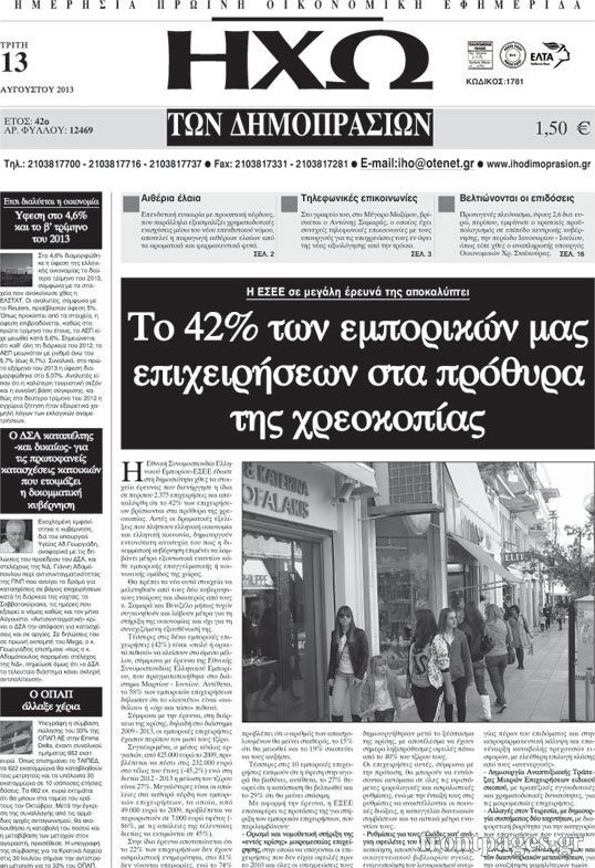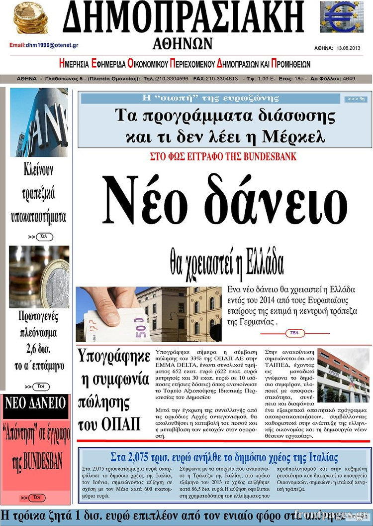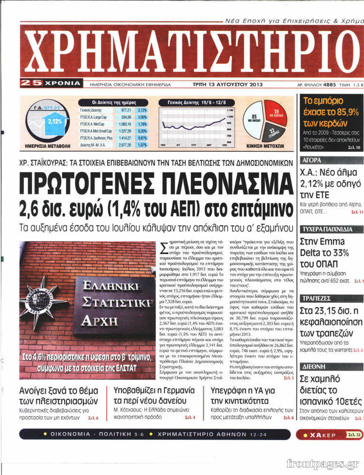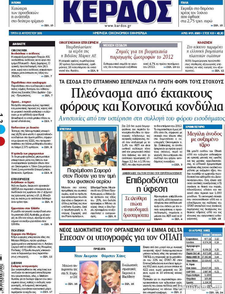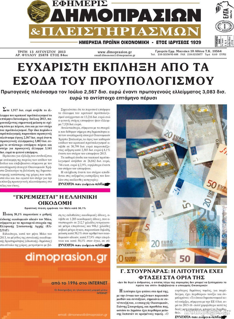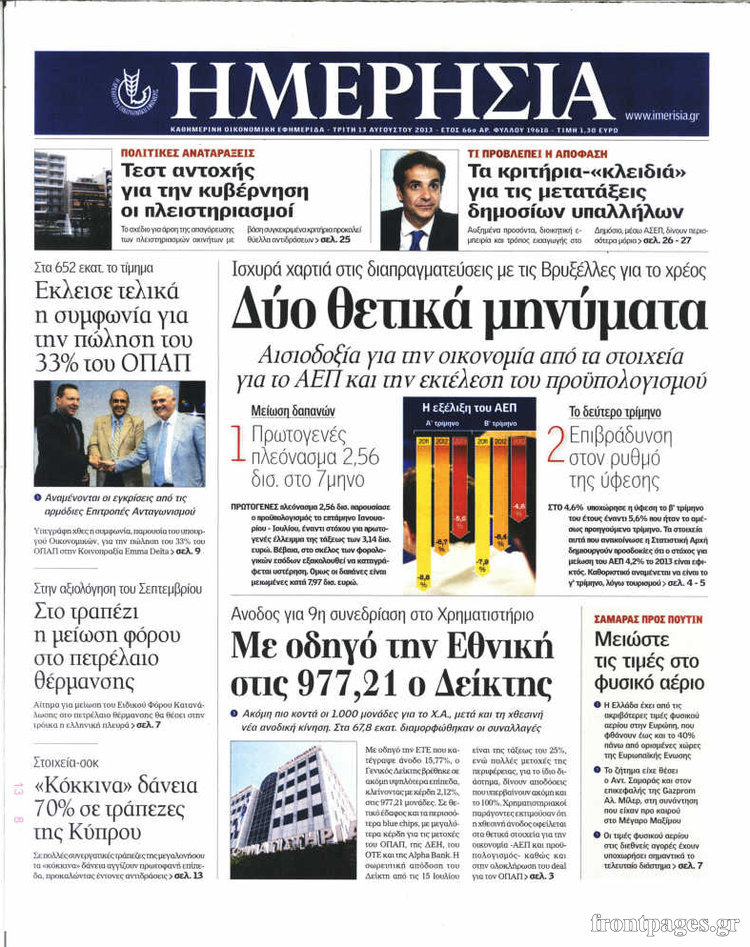 Oι οικονομικές εφημερίδες Enikos Newsroom 09:42, Τρίτη 13 Αυγούστου 2013 Media Oι οικονομικές εφημερίδες ΕΦΗΜΕΡΙΔΕΣ ΟΙΚΟΝΟΜΙΚΕΣ ΕΦΗΜΕΡΙΔΕΣ Μοιράσου το: σχολίασε κι εσύ (0 σχόλια) Ακολουθήστε το enikos.gr στο Google News και μάθετε πρώτοι όλες τις ειδήσεις Δείτε όλες τις τελευταίες ειδήσεις από την Ελλάδα και τον Κόσμο στο enikos.gr Ειδήσεις Ροή Ειδήσεων 1 ώρα πριν Ρομπ και Μισέλ Ράινερ: Φωτογραφίες από τη στιγμή που οι αρχές συλλαμβάνουν τον γιο τους – Ο «μεγάλος καβγάς» πριν από την τραγωδία 49 λεπτά πριν Προϋπολογισμός 2026: Σήμερα η ομιλία Μητσοτάκη στη Βουλή – Μέτρα για νέους, μεσαία τάξη και στεγαστικό 2 ώρες πριν Χριστούγεννα: Τι περιμένουν οι έμποροι για να «ζεσταθεί» η αγορά 2 ώρες πριν Κρίσιμη ημέρα για τους αγρότες: Σήμερα θα δώσουν την απάντησή τους στην κυβέρνηση μετά το νέο κάλεσμα για διάλογο 2 ώρες πριν Οι Τούρκοι θέλουν να παρακολουθούν την Αθήνα από την Σμύρνη με Drones – Δείτε βίντεο 3 ώρες πριν Οπτική ψευδαίσθηση: Μόνο 1 στους 10 ανθρώπους θα βρει το κόκκινο αυγό σε 7 δευτερόλεπτα 3 ώρες πριν Υψηλή χοληστερίνη: Γιατρός αποκαλύπτει δύο τρόπους για να την μειώσετε χωρίς φαρμακευτική αγωγή 4 ώρες πριν Τα ζώδια σήμερα, Τρίτη 16 Δεκεμβρίου: Ιχθύες, δεν χρειάζεται να έχετε όλες τις απαντήσεις 1 ώρα πριν Ανακαλύφθηκε περίτεχνη μαρμάρινη μπανιέρα που επαναχρησιμοποιήθηκε ως κρήνη 3 λεπτά πριν «Το θαύμα των Χριστουγέννων»: Σκύλος που εξαφανίστηκε το 2021 βρέθηκε σε καταφύγιο ζώων σε απόσταση 3.200 χιλιομέτρων – ΒΙΝΤΕΟ 8 λεπτά πριν Ευγενία Σαμαρά – Οδυσσέας Παπασπηλιόπουλος: Τίτλοι τέλους 13 λεπτά πριν Η πεθερά της την κατηγορεί πως δεν την ταΐζει σωστά – «Δεν παραπονιέται όμως στον γιο της» 17 λεπτά πριν Δολοφονία στο Νέο Ψυχικό: «Δεν είχαμε κόντρα με τον τοπογράφο» λέει ο μεσίτης της Μυκόνου 23 λεπτά πριν Σίδνεϊ: Βίντεο με ηλικιωμένο ζευγάρι που όρμησε για να σταματήσει τον έναν δράστη – Συγκλονιστικές μαρτυρίες για τους «ήρωες μέχρι τέλους» ENIKOS NETWORK Η Νο1 άσκηση για σμιλεμένους γλουτούς – Την κάνετε στο σπίτι και διαρκεί 1 λεπτό 54χρονη που νόμιζε ότι είχε ιγμορίτιδα έλαβε διάγνωση για σπάνιο καρκίνο – Η συγκλονιστική μαρτυρία της Φορολογικές δηλώσεις 2026: Στις 16 Μαρτίου αρχίζει η υποβολή – Νέες κατηγορίες στις προσυμπληρωμένες Χριστούγεννα: Τι περιμένουν οι έμποροι για να «ζεσταθεί» η αγορά Σύγχρονος Νοστράδαμος: Προειδοποιεί για «μεγάλο γεγονός» τους επόμενους μήνες που θα συγκλονίσει τη Βρετανία και τον κόσμο Τεστ παρατηρητικότητας: Μπορείτε να βρείτε τις 3 διαφορές στις εικόνες με έναν πιγκουίνο σε 14 δευτερόλεπτα περισσότερα 08:00 , Τρίτη 16 Δεκεμβρίου 2025 Την Κυριακή με τη Realnews: Δωροεπιταγή 10€ Δωροεπιταγή αξίας 10€ για αγορές άνω των 60€ από τα πολυκαταστήματα FactoryOutlet H προσφορά ι... 05:48 , Τρίτη 16 Δεκεμβρίου 2025 Οι οικονομικές εφημερίδες 16/12/2025 Διαβάστε τα πρωτοσέλιδα από τις οικονομικές εφημερίδες, σήμερα 16/12/2025. 05:43 , Τρίτη 16 Δεκεμβρίου 2025 Οι αθλητικές εφημερίδες 16/12/2025 Διαβάστε τα πρωτοσέλιδα από τις αθλητικές εφημερίδες, σήμερα 16/12/2025. 05:38 , Τρίτη 16 Δεκεμβρίου 2025 Οι πολιτικές εφημερίδες 16/12/2025 Διαβάστε τα πρωτοσέλιδα από τις πολιτικές εφημερίδες, σήμερα 16/12/2025. ΤΕΛΕΥΤΑΙΕΣ ΕΙΔΗΣΕΙΣ 8 λεπτά πριν Ευγενία Σαμαρά – Οδυσσέας Παπασπηλιόπουλος: Τίτλοι... 13 λεπτά πριν Η πεθερά της την κατηγορεί πως δεν την ταΐζει σωστά... 17 λεπτά πριν Δολοφονία στο Νέο Ψυχικό: «Δεν είχαμε κόντρα με τον... 23 λεπτά πριν Σίδνεϊ: Βίντεο με ηλικιωμένο ζευγάρι που όρμησε για να... 27 λεπτά πριν Μετρό Θεσσαλον