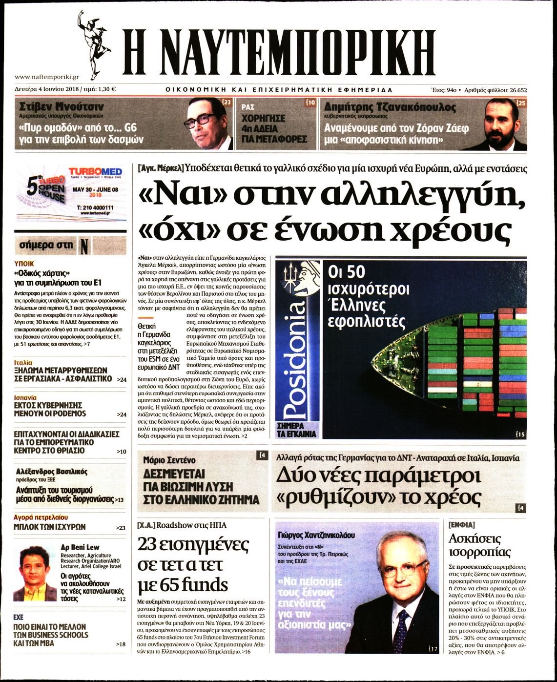 Οι οικονομικές εφημερίδες 4/6/2018 Κώστας Τεό 06:46, Δευτέρα 04 Ιουνίου 2018 Media Διαβάστε τα σημερινά πρωτοσέλιδα των οικονομικών εφημερίδων: ΟΙΚΟΝΟΜΙΚΕΣ ΕΦΗΜΕΡΙΔΕΣ ΠΡΩΤΟΣΕΛΙΔΑ Μοιράσου το: σχολίασε κι εσύ (0 σχόλια) Ακολουθήστε το enikos.gr στο Google News και μάθετε πρώτοι όλες τις ειδήσεις Δείτε όλες τις τελευταίες ειδήσεις από την Ελλάδα και τον Κόσμο στο enikos.gr Ειδήσεις Ροή Ειδήσεων 4 ώρες πριν Αγρότες: «Όχι στον διάλογο, μας εμπαίζει η κυβέρνηση» – Αποφάσισαν κλιμάκωση των κινητοποιήσεων, τι θα γίνει τα Χριστούγεννα 48 λεπτά πριν Αθήνα: Εξαρθρώθηκε εγκληματική οργάνωση που διακινούσε ναρκωτικά σε μορφή σοκολάτας – Δύο τράπερ ανάμεσα στους 4 συλληφθέντες – ΒΙΝΤΕΟ 57 λεπτά πριν Στη φυλακή ο «Έλληνας Εσκομπάρ» και τρεις συνεργοί του για το φορτίο με την κοκαΐνη – Τι υποστήριξε στην απολογία του 2 ώρες πριν Γιώργος Μαζωνάκης: «Έχει υποστεί ένα σωρό εκβιαστικές πρακτικές – Του είπαν ότι θα του βάλουν τον συγκεκριμένο άνθρωπο να τον καταγγείλει» 34 λεπτά πριν Γεωργιάδης για Κωνσταντοπούλου: «Έχει καταφέρει να ξεπεράσει ακόμη και τον εαυτό της – Το ερώτημα είναι “γιατί τώρα;”» 5 ώρες πριν Τα 5 ζώδια που θα ευνοηθούν στα οικονομικά τους το 2026 – «Τραβούν το χρήμα σαν μαγνήτες» 2 ώρες πριν Γάμος: 11 ψυχρές αλλά ευγενικές φράσεις, που λέει ένας άνδρας όταν σκέφτεται τον χωρισμό 43 λεπτά πριν Σφουγγάρισμα: Η συνήθεια που θα σας βοηθήσει να διατηρήσετε το σπίτι σας καθαρό και τακτοποιημένο 1 ημέρα πριν 20 χρόνια τα Χριστούγεννα ξεκινούν στα Public με μεγάλη ποικιλία σε δώρα! 3 λεπτά πριν ΗΠΑ: Νέες φωτογραφίες από τον φάκελο Επστάιν έδωσαν στην δημοσιότητα οι Δημοκρατικοί 9 λεπτά πριν ΕΦΕΤ: Συμβουλές για ασφαλή κατανάλωση τροφίμων κατά την εορταστική περίοδο των Χριστουγέννων 17 λεπτά πριν Φάμελλος: Η κινητοποίηση των αγροτών είναι για το συμφέρον όλων των κοινωνικών ομάδων – Πρέπει να φύγετε το συντομότερο 22 λεπτά πριν Primeira Liga: 8ος πιο ακριβός παίκτης στην Πορτογαλία ο Παυλίδης με αξία 35 εκατ. ευρώ – 27ος ο Ιωαννίδης, 45ος ο Βαγιαννίδης 27 λεπτά πριν Λένα Μαντά: «Με τον πατέρα μου δεν έχω ούτε μία καλή ανάμνηση» ENIKOS NETWORK Σκέφτεστε συνέχεια συζητήσεις που έχετε κάνει; Τι σημαίνει αυτό, σύμφωνα με ειδικό Ξεκίνησε η «επέλαση» της γρίπης στην Ελλάδα-Ποιοι κινδυνεύουν Servicers: Μικρή μείωση στα κόκκινα δάνεια που διαχειρίζονται – Αναλυτικά τα στοιχεία ΑΑΔΕ: “Αλλάζει πρόσωπο” το Φορολογικό Μητρώο για πολίτες και επιχειρήσεις – Όλες οι λεπτομέρειες Χαρτογραφώντας το «σημείο χωρίς επιστροφή»: Για πρώτη φορά αποκαλύπτεται με λεπτομέρεια το ακανθώδες όριο της ατμόσφαιρας τ... Η Google καταργεί τη λειτουργία «dark web report» – Πώς θα μπορούν οι χρήστες να διαγράφουν τα δεδομένα τους περισσότερα 17:45 , Πέμπτη 18 Δεκεμβρίου 2025 ROUK ZOUK: Εορταστικό επεισόδιο με καλεσμένους τους πρωταγωνιστές του «Γιατί ρε πατέρα» Το Σάββατο 20 Δεκεμβρίου στις 21:00, η Ζέτα Μακρυπούλια υποδέχεται εκλεκτούς ηθοποιούς που όλο... 17:20 , Πέμπτη 18 Δεκεμβρίου 2025 Άγιος έρωτας: Η Χριστίνα εξομολογείται στον πατέρα Νικόλαο, απόψε στις 21:00 στον Alpha Η Νότα αποφασίζει να εκδικηθεί τον Πέτρο και τον Στέφανο, για χάρη του Λούη, όμως τα πράγματα ... 16:50 , Πέμπτη 18 Δεκεμβρίου 2025 Να μ’ αγαπάς: Ζωή και Φωτεινή συμφιλιώνονται ως μάνα με κόρη, απόψε στις 20:00 Η ταυτότητα του Άγγελου αποκαλύπτεται στο νέο επεισόδιο της σειράς “Να μ’ αγαπάς... 15:52 , Πέμπτη 18 Δεκεμβρίου 2025 Το Σπίτι Δίπλα Στο Ποτάμι: Το καθηλωτικό τελευταίο επεισόδιο για το 2025 απόψε στι