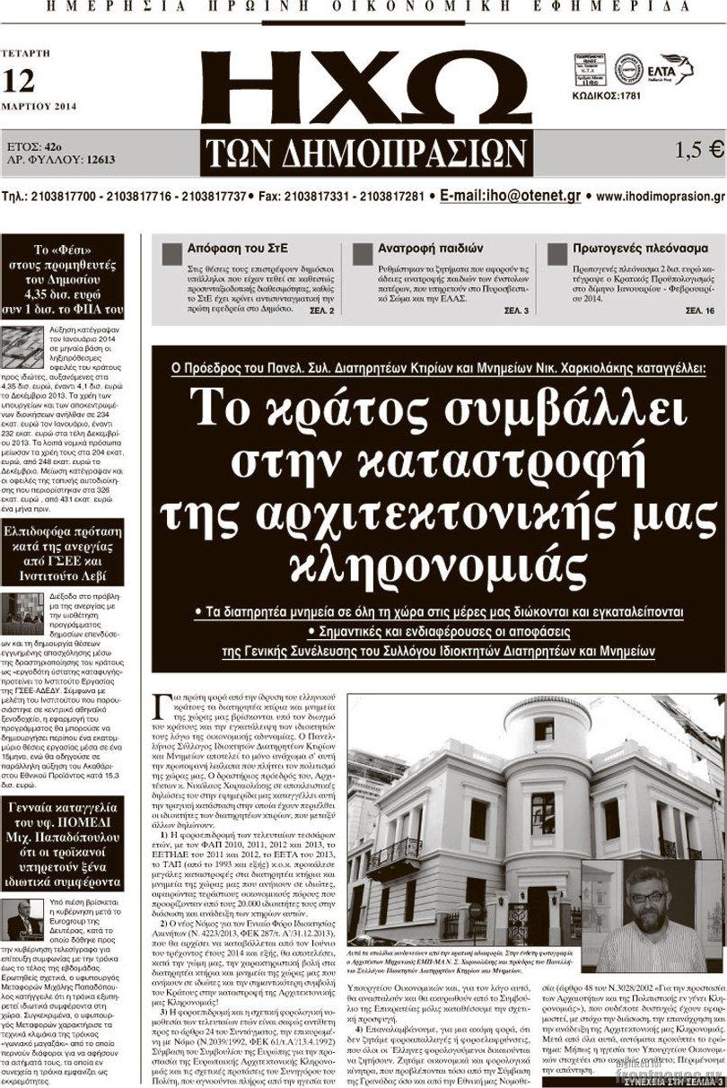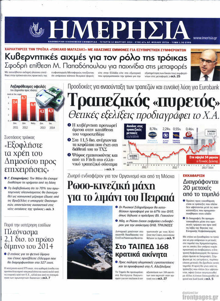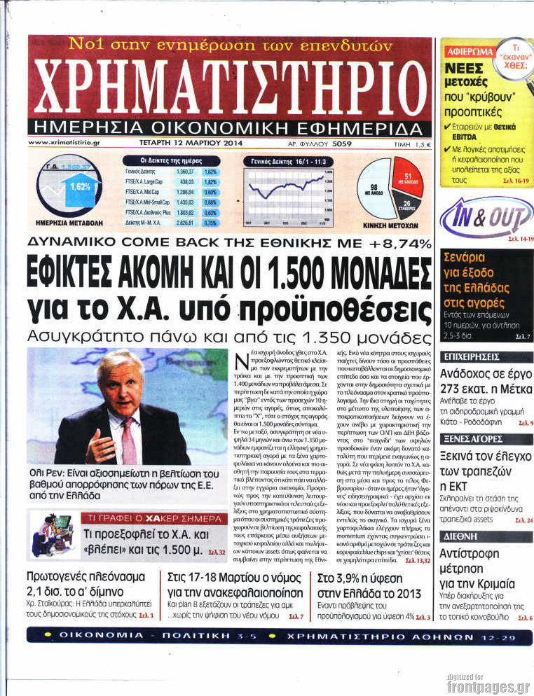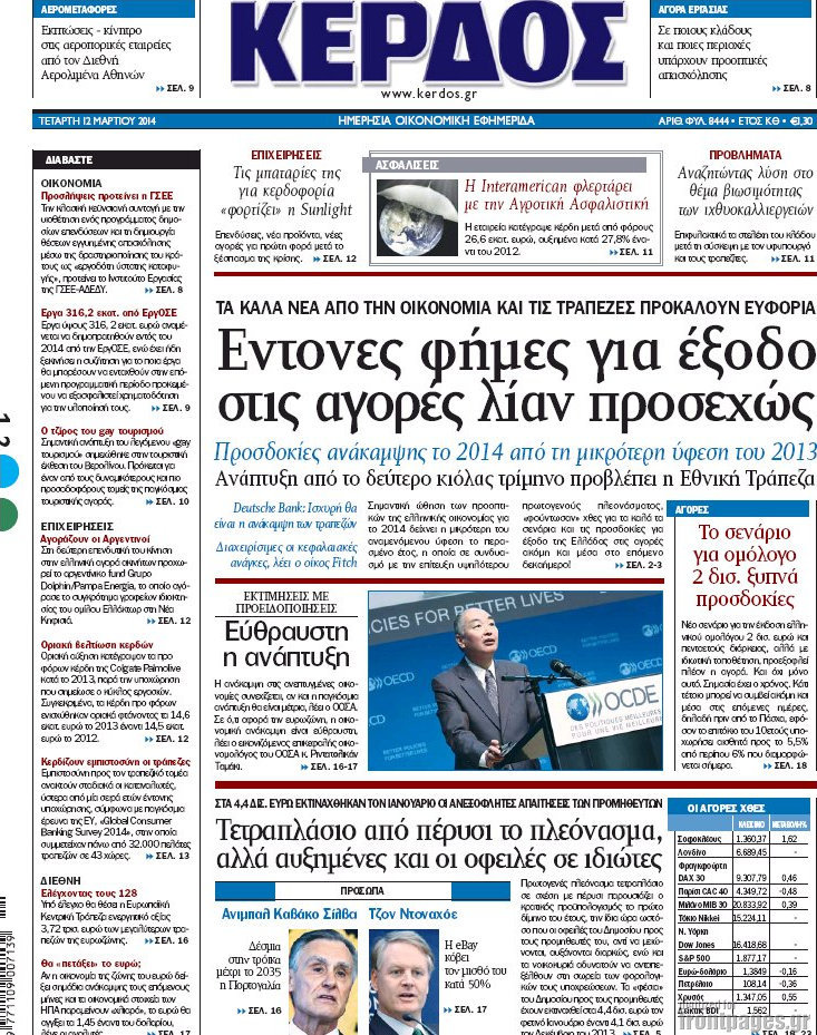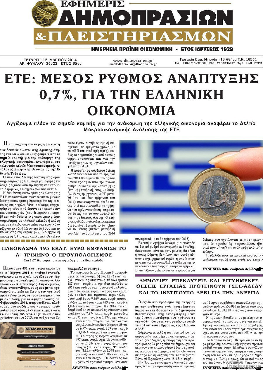 Οι oικονομικές εφημερίδες Enikos Newsroom 09:29, Τετάρτη 12 Μαρτίου 2014 Media Οι oικονομικές εφημερίδες Διαβάστε τα πρωτοσέλιδα των οικονομικών εφημερίδων: ΟΙΚΟΝΟΜΙΚΕΣ ΕΦΗΜΕΡΙΔΕΣ ΠΡΩΤΟΣΕΛΙΔΑ Μοιράσου το: σχολίασε κι εσύ (0 σχόλια) Ακολουθήστε το enikos.gr στο Google News και μάθετε πρώτοι όλες τις ειδήσεις Δείτε όλες τις τελευταίες ειδήσεις από την Ελλάδα και τον Κόσμο στο enikos.gr Ειδήσεις Ροή Ειδήσεων 5 ώρες πριν «Βιολάντα»: Αυτά είναι τα κρίσιμα σχέδια των εγκαταστάσεων που κατέθεσε η επιχείρηση στις αρμόδιες υπηρεσίες – Αποκάλυψη enikos.gr 2 ώρες πριν Αρχεία Επστάιν: Σάλος με τις αποκαλύψεις για τους φίλους του καταδικασμένου χρηματιστή – Οι Ρωσίδες, ο Γκέιτς, τα ΣΜΝ, τα ελικόπτερα και ο Μασκ 2 ώρες πριν Τροχαίο δυστύχημα στη Ρουμανία: Θρήνος στις κηδείες των 2 φιλάθλων του ΠΑΟΚ – Το Σάββατο η εξόδιος ακολουθία για τους 3 νέους από την Αλεξάνδρεια Ημαθίας 2 ώρες πριν Βιολάντα: Διευρυμένη εισαγγελική έρευνα για τα αίτια της τραγωδίας στα Τρίκαλα – Οι αποκαλύψεις για το αδήλωτο υπόγειο, οι καταθέσεις-«φωτιά» και το νέο βίντεο 6 ώρες πριν Νίκος Κούρκουλος: Η συνέντευξη στο «Ενώπιος Ενωπίω» και τον Νίκο Χατζηνικολάου το 1994 – Τι είχε πει για τα παιδικά του χρόνια, το θέατρο και την προσωπική του ζωή 4 ώρες πριν Αριθμολογία: Οι 3 πιο ανιδιοτελείς ημερομηνίες γέννησης – «Είναι οι πιο γενναιόδωροι και δοτικοί άνθρωποι» 3 ώρες πριν Ύπνος: Η μέθοδος αναπνοής που «διώχνει τις αρνητικές σκέψεις», σύμφωνα με ειδικούς 2 ώρες πριν Στο φως η πρώτη αραμαϊκή επιγραφή ενός ξεχασμένου ελληνιστικού βασιλείου – Για μοναδική ανακάλυψη που ξαναγράφει την ιστορία μιλούν οι αρχαιολόγοι 9 ώρες πριν Allwyn: Η νέα εποχή του ΟΠΑΠ – Νέο brand, περισσότερη διασκέδαση και σύγχρονες εμπειρίες ψυχαγωγίας για τους πελάτες 15 λεπτά πριν Έργκιν Άταμαν: «Κάναμε ντροπιαστικά λάθη στα τελευταία δύο λεπτά» – «Εξαιρετικός ο Σλούκας» 32 λεπτά πριν Βιλερμπάν – Παναθηναϊκός 78-79: Επιστροφή στις νίκες με πρωταγωνιστή τον Σλούκα – Όλα τα αποτελέσματα και η βαθμολογία 55 λεπτά πριν Σε δημόσια ηλεκτρονική διαβούλευση το νομοσχέδιο για την επιστολική ψήφο των αποδήμων 1 ώρα πριν Προς κατάργηση το όριο των 100ml για υγρά στο αεροπλάνο – Πού έχουν αυξηθεί τα όρια και τι ισχύει για το «Ελ. Βενιζέλος» 2 ώρες πριν Κίμπερλι Γκίλφοϊλ: «Η Ελλάδα δεν είναι παθητικός θεατής στο ενεργειακό μέλλον της Ευρώπης, είναι πρωταγωνιστής» ENIKOS NETWORK Τα 8 πράγματα που κάνουν οι πιο ευτυχισμένοι άνθρωποι για να νιώθουν πάντα νέοι Πώς επηρεάζει η ηλικία την υγεία της εγκυμοσύνης; ΗΠΑ: Πέφτει κατακόρυφα η τιμή του χρυσού και του ασημιού, μετά την επιλογή του Κέβιν Γουόρς για την ηγεσία της Fed Τράπεζα της Ελλάδας: Αύξηση πάνω από 80 δισ. ευρώ στις καταθέσεις νοικοκυριών από το 2019 – Σε υψηλό 15ετίας τον Δεκέμβριο Google Search: Αναβαθμίζει τις δυνατότητες AI με Gemini 3 και Follow-up ερωτήσεις Κουίζ: Πόσο καλός είσαι στην ελληνική μυθολογία; Δοκίμασε τις γνώσεις σου και κάνε το 3 στα 3 περισσότερα 21:42 , Παρασκευή 30 Ιανουαρίου 2026 Το σόι σου: Η Λυδία ψάχνει απεγνωσμένα για δουλειά Ένα ακόμη σπαρταριστό επεισόδιο της πολυαγαπημένης σειράς “Το σόι σου” έρχεται την... 19:40 , Παρασκευή 30 Ιανουαρίου 2026 Η Εταιρεία Ελλήνων Σκηνοθετών τιμά τον Σμαραγδή και τον «Καποδίστρια» του «Του αξίζουν συγχαρητήρια…». Οι Έλληνες σκηνοθέτες συγχαίρουν τον Γιάννη Σμαραγδή για το... 19:03 , Παρασκευή 30 Ιανουαρίου 2026 Νίκος Κούρκουλος: Η συνέντευξη στο «Ενώπιος Ενωπίω» και τον Νίκο Χατζηνικολάου το 1