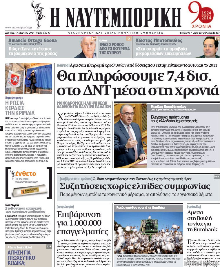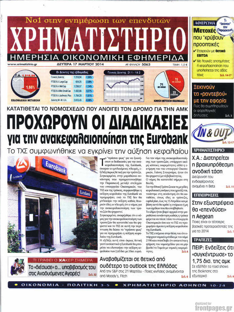 Οι oικονομικές εφημερίδες Enikos Newsroom 09:00, Δευτέρα 17 Μαρτίου 2014 Media Οι oικονομικές εφημερίδες Διαβάστε τα πρωτοσέλιδα των οικονομικών εφημερίδων: ΟΙΚΟΝΟΜΙΚΕΣ ΕΦΗΜΕΡΙΔΕΣ ΠΡΩΤΟΣΕΛΙΔΑ Μοιράσου το: σχολίασε κι εσύ (0 σχόλια) Ακολουθήστε το enikos.gr στο Google News και μάθετε πρώτοι όλες τις ειδήσεις Δείτε όλες τις τελευταίες ειδήσεις από την Ελλάδα και τον Κόσμο στο enikos.gr Ειδήσεις Ροή Ειδήσεων 58 λεπτά πριν Μητσοτάκης για αγρότες: Ελπίζω πως θα απομακρυνθούν σύντομα από τα μπλόκα 3 ώρες πριν Έρευνα MRB: Η πρόθεση ψήφου και τα σημαντικότερα προβλήματα – Οι «λέξεις» που εκφράζουν τους πολίτες 2 ώρες πριν Αλαλούμ με τις πληρωμές στους αγρότες: Δεν καταβλήθηκε η Βασική Ενίσχυση, αλλά έγινε παρακράτηση της εισφοράς στον ΕΛΓΑ – Τι απαντά η κυβέρνηση 2 ώρες πριν Κλέφτες άρπαξαν έναν… 12μετρο φουσκωτό Άγιο Βασίλη – «Αν κάποιος έχει πληροφορίες να επικοινωνήσει μαζί μας» 2 ώρες πριν Εξεταστική ΟΠΕΚΕΠΕ – Μυλωνάκης: «Ουδέποτε είχα πληροφόρηση ή ενημέρωσα οποιονδήποτε για επισυνδέσεις της δικογραφίας» 2 ώρες πριν Τα 4 ζώδια που ξαναβρίσκουν τον εαυτό τους – «Μπαίνετε επιτέλους στην ουσία των πραγμάτων» 3 ώρες πριν 20 χρόνια τα Χριστούγεννα ξεκινούν στα Public με μεγάλη ποικιλία σε δώρα! 2 ώρες πριν «Δεν είχα κλάψει από τότε που διαγνώστηκα με καρκίνο, ώσπου ένα τηλεφώνημα με έκανε να λυγίσω» – Η συγκλονιστική εξομολόγηση ενός άνδρα 47 λεπτά πριν Τα 7 σπάνια χαρακτηριστικά που κάνουν κάποιους ανθρώπους ακαταμάχητους 32 δευτερόλεπτα πριν Αγρότες: Επ’ αόριστον μπλόκο στον σταθμό στον Προμαχώνα για τα φορτηγά – Κλείνει το ρεύμα εισόδου στα Μάλγαρα 4 λεπτά πριν Τα πολυκαταστήματα attica και το Σωματείο ΕΛΠΙΔΑ εγκαινιάζουν τις ανακαινισμένες παιδικές χαρές και ανακοινώνουν τη συνέχιση της σύμπραξής τους τα φετινά Χριστούγεννα 6 λεπτά πριν Μισέλ Ομπάμα: Εμφανώς αδυνατισμένη στην εκπομπή του Τζίμι Κίμελ – Οι φήμες για τη χρήση Ozempic και η «φιλία» της με τον Ρομπ Ράινερ 12 λεπτά πριν Μίρκα Παπακωνσταντίνου: «Δεν ήμουν αισιόδοξη για τα νούμερα – Είμαι ρεαλίστρια» 19 λεπτά πριν Μεγάλη Χριστουγεννιάτικη Αγορά στην πλατεία Κοτζιά: Ξύλινα σπιτάκια, καρουζέλ και μουσική – Όλο το πρόγραμμα ENIKOS NETWORK Ανησυχητική αύξηση της υπέρτασης στα παιδιά – Πώς θα τα προστατέψουμε; Αδενώματα Υπόφυσης: Μια πάθηση καλοήθης, αλλά όχι αθώα Προϋπολογισμός: Στα 12,6 δισ. ευρώ το πρωτογενές πλεόνασμα το 11μηνο-Δείτε αναλυτικά τα στοιχεία Ελεύθεροι επαγγελματίες: Ποιοι κλάδοι δήλωσαν τους υψηλότερους ετήσιους τζίρους και ποιοι τους χαμηλότερους-Δείτε τα στοιχε... Σύγχρονος Νοστράδαμος: Προειδοποιεί για «μεγάλο γεγονός» τους επόμενους μήνες που θα συγκλονίσει τη Βρετανία και τον κόσμο Τεστ παρατηρητικότητας: Μπορείτε να βρείτε τις 3 διαφορές στις εικόνες με έναν πιγκουίνο σε 14 δευτερόλεπτα περισσότερα 12:35 , Τετάρτη 17 Δεκεμβρίου 2025 Μίρκα Παπακωνσταντίνου: «Δεν ήμουν αισιόδοξη για τα νούμερα – Είμαι ρεαλίστρια» Στα γυρίσματα του εορταστικού επεισοδίου της αγαπημένης σειράς “Το Σόι Σου”, βρέθηκε η κάμερα ... 12:12 , Τετάρτη 17 Δεκεμβρίου 2025 Ακούστε την εκπομπή του Νίκου Χατζηνικολάου 17/12/2025 Ακούστε την εκπομπή του Νίκου Χατζηνικολάου στον ραδιοφωνικό σταθμό RealFm 97,8, την Τετάρτη 1... 11:35 , Τετάρτη 17 Δεκεμβρίου 2025 Home Alone: Το σπίτι της ταινίας θα ανακαινιστεί – Επιστροφή στην αισθητική της δεκαετίας του ’90 Οι νέοι ιδιοκτήτες του πραγματικού σπιτιού που παρουσιάζεται στην κλασική ταινία του 1990 «Hom... 11:25 , Τετάρτη 17 Δε
