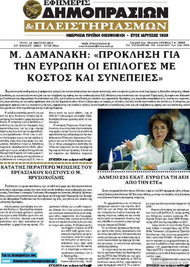 Οι oικονομικές εφημερίδες Enikos Newsroom 08:50, Τρίτη 18 Μαρτίου 2014 Media Οι oικονομικές εφημερίδες Διαβάστε τα πρωτοσέλιδα των οικονομικών εφημερίδων: ΕΦΗΜΕΡΙΔΕΣ ΠΟΛΙΤΙΚΕΣ ΕΦΗΜΕΡΙΔΕΣ ΠΡΩΤΟΣΕΛΙΔΑ Μοιράσου το: σχολίασε κι εσύ (0 σχόλια) Ακολουθήστε το enikos.gr στο Google News και μάθετε πρώτοι όλες τις ειδήσεις Δείτε όλες τις τελευταίες ειδήσεις από την Ελλάδα και τον Κόσμο στο enikos.gr Ειδήσεις Ροή Ειδήσεων 2 ώρες πριν Ζελένσκι: Μόνο οι ΗΠΑ και ο Τραμπ μπορούν να πιέσουν τη Ρωσία να βάλει τέλος στον πόλεμο 2 ώρες πριν Φοινικούντα: Προφυλακιστέος ο 30χρονος για συνέργεια στη διπλή δολοφονία – Και άλλα πρόσωπα στο «μικροσκόπιο» 3 ώρες πριν Κυριάκος Μητσοτάκης: Στην Ιερουσαλήμ την Τρίτη ο Πρωθυπουργός για την τριμερή Ελλάδας, Κύπρου, Ισραήλ – Θα συναντηθεί και με τον Αμπάς 6 ώρες πριν Πώς δρούσε το κύκλωμα που διακινούσε ναρκωτικά σε σχολεία – Υπέβαλαν σε βασανιστήρια όσους δεν τηρούσαν τους «κανόνες πειθαρχίας» 3 ώρες πριν Πάπας Λέων: Όταν έχει αϋπνίες επενδύει παραγωγικά τον χρόνο του – Ποιο παιχνίδι παίζει στο κινητό 2 ώρες πριν Αριθμολογία: Ο αριθμός του φύλακα αγγέλου σας, με βάση τον μήνα γέννησής σας – «Έτσι σας στέλνει σημάδια το σύμπαν» 3 ώρες πριν Πώς να απαλλαγείτε από τη μυρωδιά του τηγανητού φαγητού: Το μυστικό βρίσκεται στην κουζίνα σας 4 ώρες πριν Μήπως οι γιορτές σας δεν είναι τόσο τέλειες; 7 χριστουγεννιάτικες συνήθειες που μαρτυρούν ότι μια οικογένεια είναι δυσλειτουργική 14 ώρες πριν Enerwave: Το νέο «ρεύμα» στη λιανική ενέργειας που αλλάζει την εμπειρία του καταναλωτή 11 λεπτά πριν Χριστούγεννα στα μπλόκα οι αγρότες: Άνοιξαν στα διόδια και μοίρασαν προϊόντα στους πολίτες – Νέα σύσκεψη την Κυριακή στη Νίκαια 21 λεπτά πριν Ολυμπιακός – Κηφισιά 1-1: Δεύτερη σερί ισοπαλία για τους Ερυθρόλευκους – Υπό… αμφισβήτηση η κορυφή της Super League 32 λεπτά πριν Κύκλωμα διακίνησης ναρκωτικών σε σχολεία: Τηλεφωνούσαν στους ανηλίκους την ώρα του μαθήματος – Οι διάλογοι-σοκ, τα «ψευδώνυμα» και τα βασανιστήρια 40 λεπτά πριν Χαβιέρ Μιλέι: Ο πρόεδρος της Αργεντινής χαιρετίζει την «πίεση των ΗΠΑ» στη Βενεζουέλα 48 λεπτά πριν Ξένια Τσίρκοβα: Έμαθε από την τηλεόραση ότι είναι η μεγάλη νικήτρια του GNTM – Η αντίδρασή της – ΒΙΝΤΕΟ ENIKOS NETWORK Οι γυναίκες αποκαλύπτουν το πιο ελκυστικό πράγμα που μπορεί να κάνει ένας άνδρας Ομορφιά και αντιγήρανση: Ειδικοί μιλούν για συσκευές περιποίησης του δέρματος Ακύρωση ΑΦΜ για απάτες – Ποιους βάζει στο στόχαστρο η ΑΑΔΕ Ρεύμα: Πώς μπορείτε να αλλάξετε πάροχο γρήγορα και εύκολα – Τα βήματα της διαδικασίας Χαρτογραφώντας το «σημείο χωρίς επιστροφή»: Για πρώτη φορά αποκαλύπτεται με λεπτομέρεια το ακανθώδες όριο της ατμόσφαιρας τ... Η Google καταργεί τη λειτουργία «dark web report» – Πώς θα μπορούν οι χρήστες να διαγράφουν τα δεδομένα τους περισσότερα 20:30 , Σάββατο 20 Δεκεμβρίου 2025 Αυτή την Κυριακή με τη Realnews: Instyle, μαζί Drive και Realnews Geopolitics Αυτή την Κυριακή με τη Realnews: Instyle, μαζί Drive και Realnews Geopolitics Instyle Η Άννα Ρ... 20:28 , Σάββατο 20 Δεκεμβρίου 2025 Ο ΑΝΤ1 γεμίζει τις γιορτές με μουσική – Ποιους καλλιτέχνες θα απολαύσουμε Φέτος στον ΑΝΤ1 γιορτάζουμε τις νύχτες μας παρέα με αγαπημένους καλλιτέχνες και μεγάλες μουσι... 18:19 , Σάββατο 20 Δεκεμβρίου 2025 HOTΕΛ ΕΛVIRA: Η Ελβίρα μαθαίνει πως ο Χάρι μένει κρυφά στο ξενοδοχείο του Παντελή Συνεχίζονται οι εκλογές για πρόεδρο, στο νέο επεισόδιο της κωμικής σειράς του MEGA, HOTΕΛ ΕΛVI... 14:04 , Σάββατο 20 Δεκεμβρίου 2025 Η Realnews αυτής της Κυριακής (21/12/2025) 
