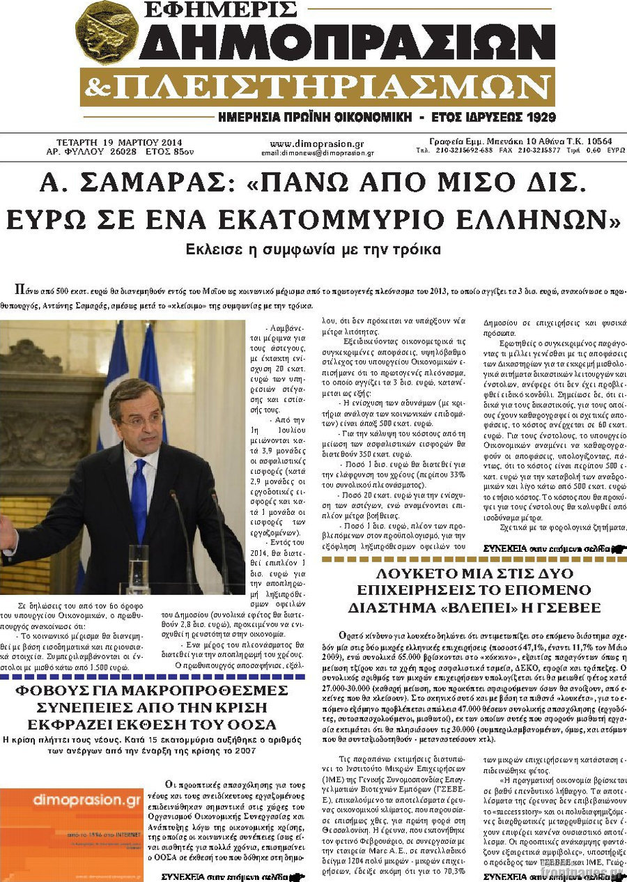 Οι oικονομικές εφημερίδες Enikos Newsroom 09:26, Τετάρτη 19 Μαρτίου 2014 Media Οι oικονομικές εφημερίδες Διαβάστε τα πρωτοσέλιδα των οικονομικών εφημερίδων: ΕΦΗΜΕΡΙΔΕΣ ΟΙΚΟΝΟΜΙΚΕΣ ΕΦΗΜΕΡΙΔΕΣ ΠΡΩΤΟΣΕΛΙΔΑ Μοιράσου το: σχολίασε κι εσύ (0 σχόλια) Ακολουθήστε το enikos.gr στο Google News και μάθετε πρώτοι όλες τις ειδήσεις Δείτε όλες τις τελευταίες ειδήσεις από την Ελλάδα και τον Κόσμο στο enikos.gr Ειδήσεις Ροή Ειδήσεων 2 ώρες πριν Αυξάνουν την πίεση προς την κυβέρνηση οι αγρότες: Κλείνουν παρακαμπτήριους και ανοίγουν διόδια – Τι θα γίνει τις γιορτές 48 λεπτά πριν ΟΠΕΚΕΠΕ: Προφυλακιστέος ο φερόμενος αρχηγός και ο λογιστής της εγκληματικής οργάνωσης 2 ώρες πριν Φοινικούντα: Το Σάββατο απολογείται ο 30χρονος γιος γνωστού επιχειρηματία της Πλάκας που παραδόθηκε – Όσα είπε στους αστυνομικούς και ο ρόλος του στο έγκλημα 1 ώρα πριν Μπορεί ο Μαδούρο να αντέξει τον αποκλεισμό του Τραμπ; Τι θα χρειαστεί η Ουάσινγκτον για να τον ανατρέψει 3 ώρες πριν Πρίγκιπας Ουίλιαμ – Κέιτ: Η νέα οικογενειακή φωτογραφία για τις Χριστουγεννιάτικες κάρτες του 2025 3 ώρες πριν Ύπνος: Η απλή βραδινή ρουτίνα για να προστατεύσετε τα μαλλιά σας από το κρύο κατά τη διάρκεια του χειμώνα 4 ώρες πριν Manifesting: Πώς να συναντήσετε τον σύντροφο της ζωής σας, ανάλογα με τον μήνα γέννησής σας 2 ημέρες πριν 20 χρόνια τα Χριστούγεννα ξεκινούν στα Public με μεγάλη ποικιλία σε δώρα! 2 ώρες πριν Αρχαιολόγοι ανακάλυψαν ρωμαϊκά τεχνουργήματα από μια πόλη που δεν υπήρξε ποτέ – Τα τρία εντυπωσιακά κτίρια και ο αμφορέας με τις… σαρδέλες 28 λεπτά πριν ΑΕΚ – Κραϊόβα 3-2: Επική ανατροπή και πρόκριση στους «16» του Conference League η Ένωση 48 λεπτά πριν ΟΠΕΚΕΠΕ: Προφυλακιστέος ο φερόμενος αρχηγός και ο λογιστής της εγκληματικής οργάνωσης 58 λεπτά πριν Αθηνά Μαξίμου: Η τρυφερή ανάρτηση για τα γενέθλια του Αιμίλιου Χειλάκη – «Είναι η εκλεκτική συγγένειά μου, η επιλογή και η ευθύνη μου» 1 ώρα πριν Παναθηναϊκός – Χάποελ Τελ Αβίβ 93-82: Με… φόρα από την Κωνσταντινούπολη 1 ώρα πριν Μπορεί ο Μαδούρο να αντέξει τον αποκλεισμό του Τραμπ; Τι θα χρειαστεί η Ουάσινγκτον για να τον ανατρέψει ENIKOS NETWORK Σε περίοδο αυξημένης δραστηριότητας η γρίπη στην Ελλάδα-Μέτρα προστασίας από τον ΕΟΔΥ Σκέφτεστε συνέχεια συζητήσεις που έχετε κάνει; Τι σημαίνει αυτό, σύμφωνα με ειδικό Στεγαστικό: Τι λέει η ΠΟΜΙΔΑ για τα νέα μέτρα που ανακοίνωσε ο Κυριάκος Μητσοτάκης Λαγκάρντ: Αισιόδοξη για την ανάπτυξη της Ευρωζώνης, αβέβαιη για τον πληθωρισμό Χαρτογραφώντας το «σημείο χωρίς επιστροφή»: Για πρώτη φορά αποκαλύπτεται με λεπτομέρεια το ακανθώδες όριο της ατμόσφαιρας τ... Η Google καταργεί τη λειτουργία «dark web report» – Πώς θα μπορούν οι χρήστες να διαγράφουν τα δεδομένα τους περισσότερα 17:45 , Πέμπτη 18 Δεκεμβρίου 2025 ROUK ZOUK: Εορταστικό επεισόδιο με καλεσμένους τους πρωταγωνιστές του «Γιατί ρε πατέρα» Το Σάββατο 20 Δεκεμβρίου στις 21:00, η Ζέτα Μακρυπούλια υποδέχεται εκλεκτούς ηθοποιούς που όλο... 17:20 , Πέμπτη 18 Δεκεμβρίου 2025 Άγιος έρωτας: Η Χριστίνα εξομολογείται στον πατέρα Νικόλαο, απόψε στις 21:00 στον Alpha Η Νότα αποφασίζει να εκδικηθεί τον Πέτρο και τον Στέφανο, για χάρη του Λούη, όμως τα πράγματα ... 16:50 , Πέμπτη 18 Δεκεμβρίου 2025 Να μ’ αγαπάς: Ζωή και Φωτεινή συμφιλιώνονται ως μάνα με κόρη, απόψε στις 20:00 Η ταυτότητα του Άγγελου αποκαλύπτεται στο νέο επεισόδιο της σειράς “Να μ’ αγαπάς... 15:52 , Πέμπτη 18 Δεκεμβρίου 2025 Το Σπίτι Δίπλα Στο Ποτάμι: Το καθηλωτικό τελευταίο επεισόδιο για το 2025 απόψε στις 22