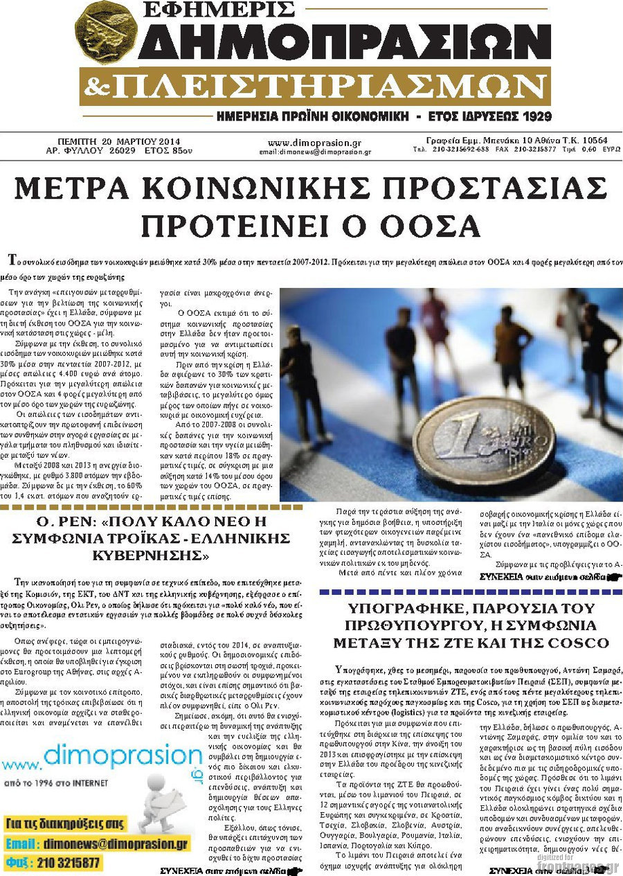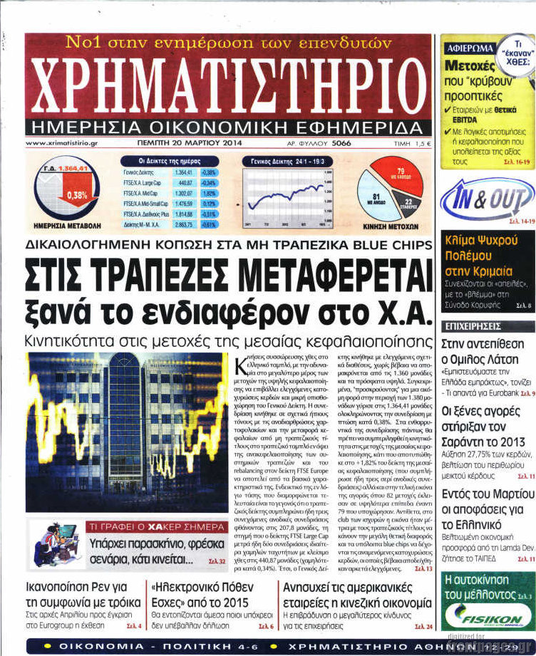 Οι oικονομικές εφημερίδες Enikos Newsroom 08:48, Πέμπτη 20 Μαρτίου 2014 Media Οι oικονομικές εφημερίδες Διαβάστε τα πρωτοσέλιδα των οικονομικών εφημερίδων: ΕΦΗΜΕΡΙΔΕΣ ΟΙΚΟΝΟΜΙΚΕΣ ΕΦΗΜΕΡΙΔΕΣ ΠΡΩΤΟΣΕΛΙΔΑ Μοιράσου το: σχολίασε κι εσύ (0 σχόλια) Ακολουθήστε το enikos.gr στο Google News και μάθετε πρώτοι όλες τις ειδήσεις Δείτε όλες τις τελευταίες ειδήσεις από την Ελλάδα και τον Κόσμο στο enikos.gr Ειδήσεις Ροή Ειδήσεων 4 ώρες πριν Αυξάνουν την πίεση προς την κυβέρνηση οι αγρότες: Κλείνουν παρακαμπτήριους και ανοίγουν διόδια – Τι θα γίνει τις γιορτές 3 ώρες πριν ΟΠΕΚΕΠΕ: Προφυλακιστέος ο φερόμενος αρχηγός και ο λογιστής της εγκληματικής οργάνωσης 4 ώρες πριν Φοινικούντα: Το Σάββατο απολογείται ο 30χρονος γιος γνωστού επιχειρηματία της Πλάκας που παραδόθηκε – Όσα είπε στους αστυνομικούς και ο ρόλος του στο έγκλημα 4 ώρες πριν Μπορεί ο Μαδούρο να αντέξει τον αποκλεισμό του Τραμπ; Τι θα χρειαστεί η Ουάσινγκτον για να τον ανατρέψει 3 ώρες πριν ΑΕΚ – Κραϊόβα 3-2: Επική ανατροπή και πρόκριση στους «16» του Conference League η Ένωση 4 ώρες πριν Αρχαιολόγοι ανακάλυψαν ρωμαϊκά τεχνουργήματα από μια πόλη που δεν υπήρξε ποτέ – Τα τρία εντυπωσιακά κτίρια και ο αμφορέας με τις… σαρδέλες 5 ώρες πριν Ύπνος: Η απλή βραδινή ρουτίνα για να προστατεύσετε τα μαλλιά σας από το κρύο κατά τη διάρκεια του χειμώνα 6 ώρες πριν Manifesting: Πώς να συναντήσετε τον σύντροφο της ζωής σας, ανάλογα με τον μήνα γέννησής σας 2 ημέρες πριν 20 χρόνια τα Χριστούγεννα ξεκινούν στα Public με μεγάλη ποικιλία σε δώρα! 10 λεπτά πριν GNTM: «Κλείδωσαν» οι τέσσερις φιναλίστ – Μεγάλη ανατροπή στις τελευταίες αποχωρήσεις 25 λεπτά πριν Γιώργος Μαζωνάκης: Αποθεώθηκε στην πρεμιέρα του στην «Ακτή Πειραιώς» λίγες ώρες μετά τις καταγγελίες – «Είμαι αληθινός», είπε με νόημα 40 λεπτά πριν Πόλεμος στην Ουκρανία: Ρωσικά drones έπληξαν την Οδησσό – Μία νεκρή και ζημιές σε ενεργειακές υποδομές 47 λεπτά πριν ΑΕΚ-Κραϊόβα: Τα highlights της μυθικής ανατροπής της «Ένωσης» 1 ώρα πριν Μιχάλης Χρυσοχοΐδης από την Κωνσταντινούπολη: Κοινές επιχειρήσεις Ελλάδας – Τουρκίας ενάντια στο οργανωμένο έγκλημα ENIKOS NETWORK Σε περίοδο αυξημένης δραστηριότητας η γρίπη στην Ελλάδα-Μέτρα προστασίας από τον ΕΟΔΥ Σκέφτεστε συνέχεια συζητήσεις που έχετε κάνει; Τι σημαίνει αυτό, σύμφωνα με ειδικό Στεγαστικό: Τι λέει η ΠΟΜΙΔΑ για τα νέα μέτρα που ανακοίνωσε ο Κυριάκος Μητσοτάκης Λαγκάρντ: Αισιόδοξη για την ανάπτυξη της Ευρωζώνης, αβέβαιη για τον πληθωρισμό Χαρτογραφώντας το «σημείο χωρίς επιστροφή»: Για πρώτη φορά αποκαλύπτεται με λεπτομέρεια το ακανθώδες όριο της ατμόσφαιρας τ... Η Google καταργεί τη λειτουργία «dark web report» – Πώς θα μπορούν οι χρήστες να διαγράφουν τα δεδομένα τους περισσότερα 02:50 , Παρασκευή 19 Δεκεμβρίου 2025 GNTM: «Κλείδωσαν» οι τέσσερις φιναλίστ – Μεγάλη ανατροπή στις τελευταίες αποχωρήσεις Για προτελευταία φορά εμφανίστηκαν στο πλατό του GNTM οι φιναλίστ του φετινού κύκλου, το βράδυ... 17:45 , Πέμπτη 18 Δεκεμβρίου 2025 ROUK ZOUK: Εορταστικό επεισόδιο με καλεσμένους τους πρωταγωνιστές του «Γιατί ρε πατέρα» Το Σάββατο 20 Δεκεμβρίου στις 21:00, η Ζέτα Μακρυπούλια υποδέχεται εκλεκτούς ηθοποιούς που όλο... 17:20 , Πέμπτη 18 Δεκεμβρίου 2025 Άγιος έρωτας: Η Χριστίνα εξομολογείται στον πατέρα Νικόλαο, απόψε στις 21:00 στον Alpha Η Νότα αποφασίζει να εκδικηθεί τον Πέτρο και τον Στέφανο, για χάρη του Λούη, όμως τα πράγματα ... 16:50 , Πέμπτη 18 Δεκεμβρίου 2025 Να μ’ αγαπάς: Ζωή και Φωτεινή συμφιλιώνονται ως μάνα με 