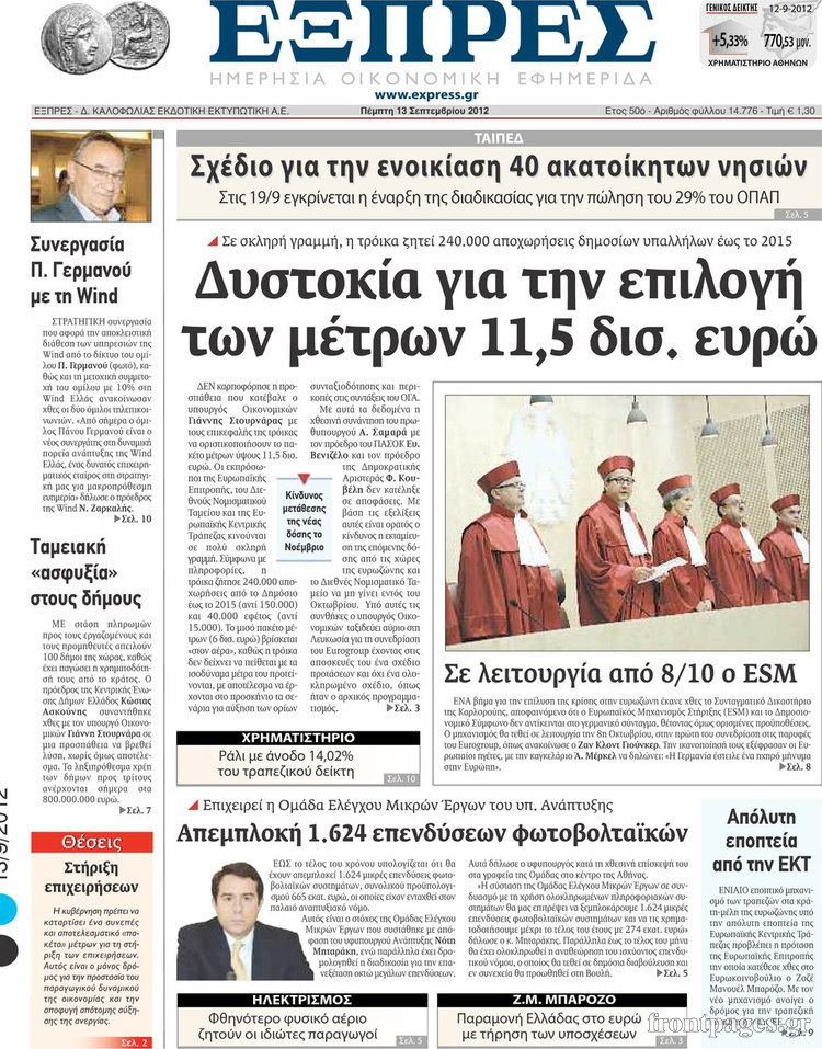 Διαβάστε τα πρωτοσέλιδα των οικονομικών εφημερίδων…