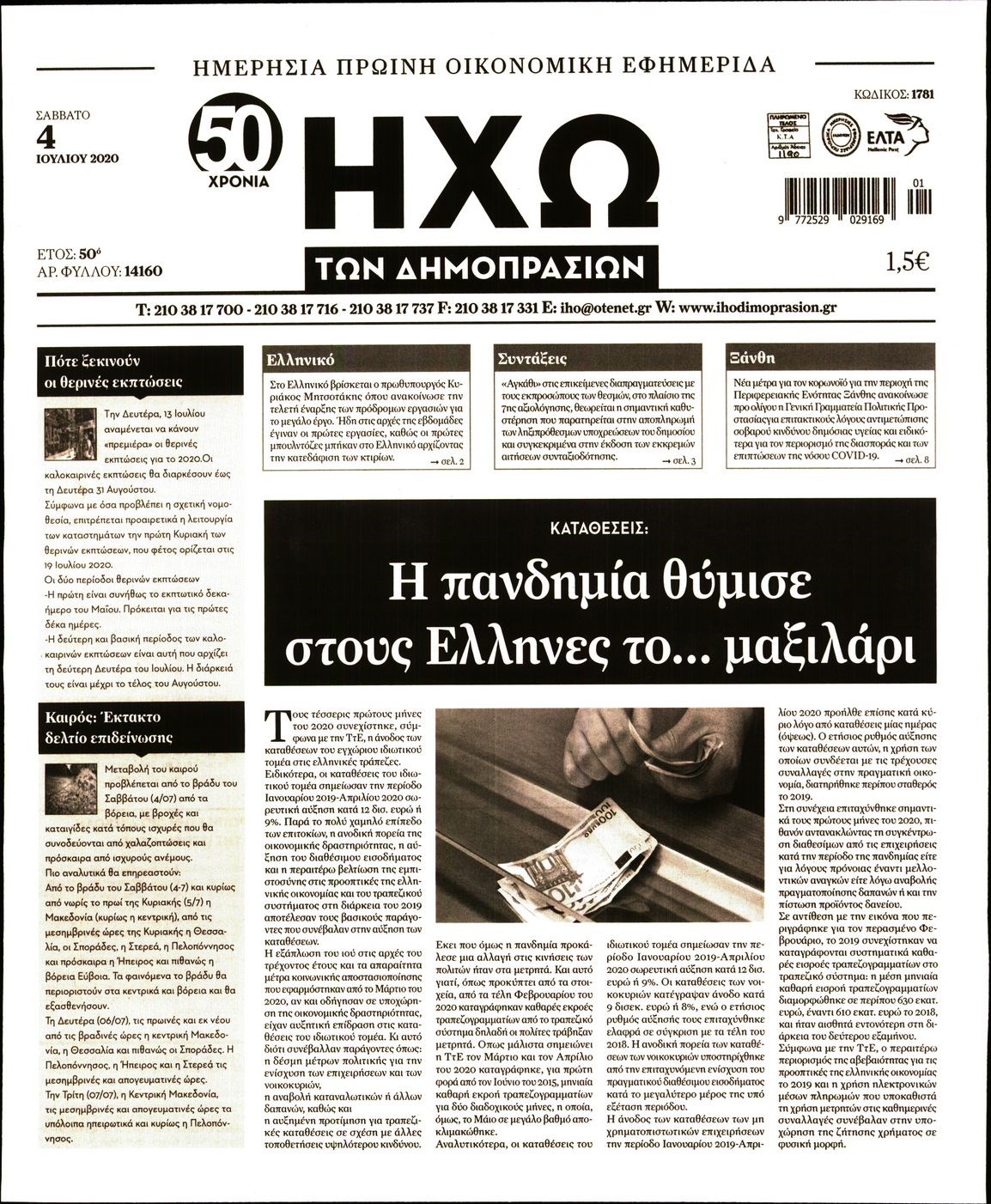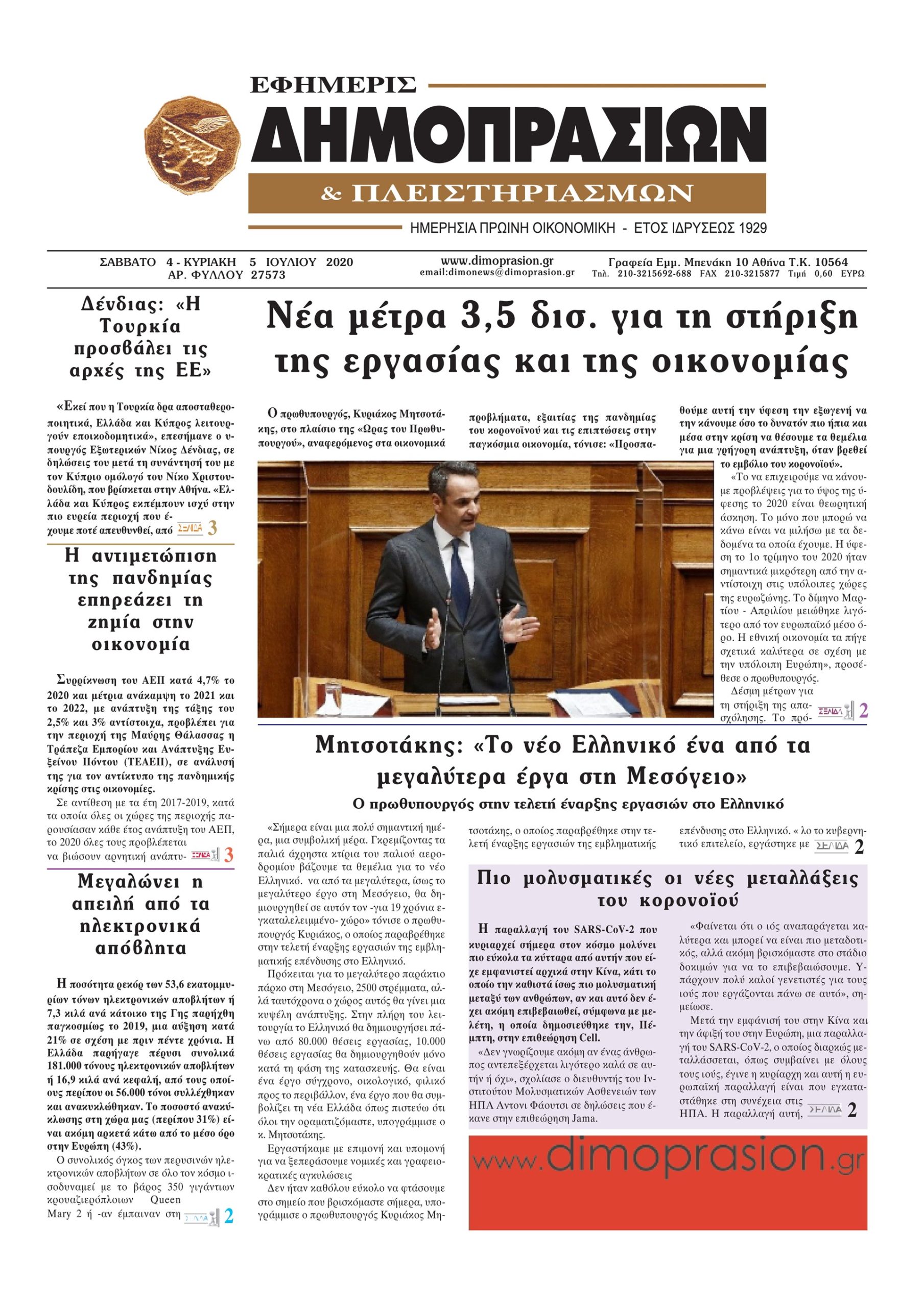 Οι οικονομικές εφημερίδες 4/7/2020 Διονύσης Νίκκας 08:19, Σάββατο 04 Ιουλίου 2020 Media Διαβάστε τα πρωτοσέλιδα των οικονομικών εφημερίδων… ΟΙΚΟΝΟΜΙΚΕΣ ΕΦΗΜΕΡΙΔΕΣ ΠΡΩΤΟΣΕΛΙΔΑ Μοιράσου το: σχολίασε κι εσύ (0 σχόλια) Ακολουθήστε το enikos.gr στο Google News και μάθετε πρώτοι όλες τις ειδήσεις Δείτε όλες τις τελευταίες ειδήσεις από την Ελλάδα και τον Κόσμο στο enikos.gr Ειδήσεις Ροή Ειδήσεων 41 λεπτά πριν Υπόθεση Έπσταϊν: Το Υπουργείο Δικαιοσύνης δημοσιοποίησε μια σειρά από εξαιρετικά επεξεργασμένα αρχεία – «Λείπουν τα πιο σημαντικά έγγραφα», λένε οι Δημοκρατικοί 2 ώρες πριν Σαρωτικοί οι έλεγχοι στους δρόμους ενόψει εορτών – Μπλόκα της τροχαίας σε κεντρικές αρτηρίες της Αττικής 52 λεπτά πριν ΟΝΕΧ – MEGATUGS: Ξεκίνησε η ναυπήγηση ρυμουλκών στην Ελλάδα – Προθάλαμος πολεμικών πλοίων – Δείτε φωτογραφίες και βίντεο 44 λεπτά πριν Καιρός: Αλλαγή σκηνικού σήμερα με βροχές και πτώση της θερμοκρασίας – Οι προβλέψεις των μετεωρολόγων για τα Χριστούγεννα 10 ώρες πριν Χριστούγεννα στα μπλόκα: Επιμένουν στις κινητοποιήσεις τους οι αγρότες – Ανοίγουν τα διόδια το Σαββατοκύριακο 2 ώρες πριν Αυγά: Πόσα μπορείτε να τρώτε την ημέρα με ασφάλεια για μέγιστη πρόσληψη πρωτεΐνης 3 ώρες πριν Τα ζώδια σήμερα, Σάββατο 20 Δεκεμβρίου: Παρθένοι, το σύμπαν σας δίνει το κλειδί 2 ώρες πριν Οπτική ψευδαίσθηση: Μόνο αν είσαι ο Σέρλοκ Χολμς θα βρεις τον αριθμό «87» σε 7 δευτερόλεπτα 21 λεπτά πριν Αρχαιολόγοι ανακάλυψαν σε χωράφι απεικόνιση 600 ετών ενός Αγίου – Τα στοιχεία που δείχνουν ότι μαρτύρησε 5 λεπτά πριν MyHealth App: Τα στοιχεία για τον Προσωπικό Βοηθό Υγείας Πολίτη – Τι ερωτήματα έγιναν μέσα σε 7 ημέρες 13 λεπτά πριν Τρομεροί γονείς: Η Μαρία Καβογιάννη εισβάλλει στο σπίτι της οικογένειας Στεφανίδη 21 λεπτά πριν Αρχαιολόγοι ανακάλυψαν σε χωράφι απεικόνιση 600 ετών ενός Αγίου – Τα στοιχεία που δείχνουν ότι μαρτύρησε 29 λεπτά πριν Mega χριστουγεννιάτικη φορολοταρία: «Κλείδωσε» η ημερομηνία για την κλήρωση – Ερωτήσεις και απαντήσεις 36 λεπτά πριν ΗΠΑ: Τέσσερις μετανάστες πέθαναν σε κέντρα κράτησης – Αύξηση θανάτων σε επίπεδο ρεκόρ το 2025 ENIKOS NETWORK Το τεστ των 10 δευτερολέπτων που μπορεί να προβλέψει το προσδόκιμο ζωής σας – Τι λέει ειδικός του Cleveland Επιλέξτε καρέκλα για να μάθετε ποια είναι τα κρυφά χαρακτηριστικά σας – Τι αποκάλυψε για εσάς αυτό το τεστ προσωπικότητας; Mega χριστουγεννιάτικη φορολοταρία: «Κλείδωσε» η ημερομηνία για την κλήρωση – Ερωτήσεις και απαντήσεις Αναστολή μέτρων αναγκαστικής εκτέλεσης για κτηνοτρόφους που πλήττονται από την ευλογιά των αιγοπροβάτων Χαρτογραφώντας το «σημείο χωρίς επιστροφή»: Για πρώτη φορά αποκαλύπτεται με λεπτομέρεια το ακανθώδες όριο της ατμόσφαιρας τ... Η Google καταργεί τη λειτουργία «dark web report» – Πώς θα μπορούν οι χρήστες να διαγράφουν τα δεδομένα τους περισσότερα 08:14 , Σάββατο 20 Δεκεμβρίου 2025 Τρομεροί γονείς: Η Μαρία Καβογιάννη εισβάλλει στο σπίτι της οικογένειας Στεφανίδη Όσα θα δούμε στο νέο διπλό επεισόδιο της σειράς «Τρομεροί γονείς», σήμερα Σάββατο 20 Δεκεμβρίο... 05:48 , Σάββατο 20 Δεκεμβρίου 2025 Οι οικονομικές εφημερίδες 20/12/2025 Διαβάστε τα πρωτοσέλιδα από τις οικονομικές εφημερίδες, σήμερα 20/12/2025. 05:43 , Σάββατο 20 Δεκεμβρίου 2025 Οι αθλητικές εφημερίδες 20/12/2025 Διαβάστε τα πρωτοσέλιδα από τις αθλητικές εφημερίδες, σήμερα 20/12/2025. 05:38 , Σάββατο 20 Δεκεμβρίου 2025 Οι πολιτικές εφημερίδες 20/12/2025 Διαβάστε τα πρωτοσέλιδα από τις πολιτικές εφημερίδες, σήμερα 20/12/2025. ΤΕΛΕΥΤΑΙΕ