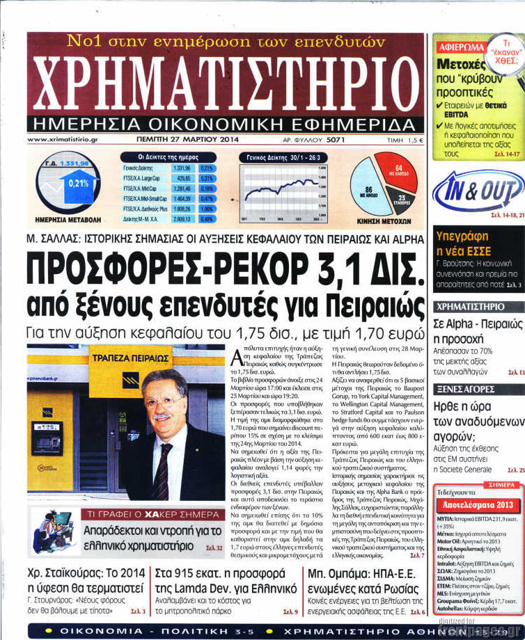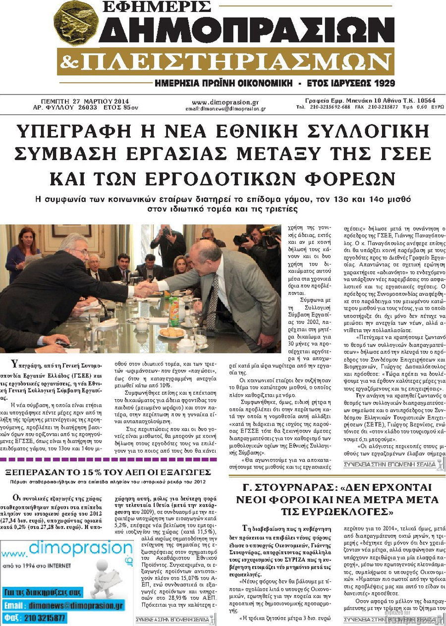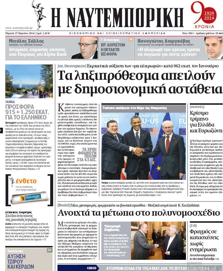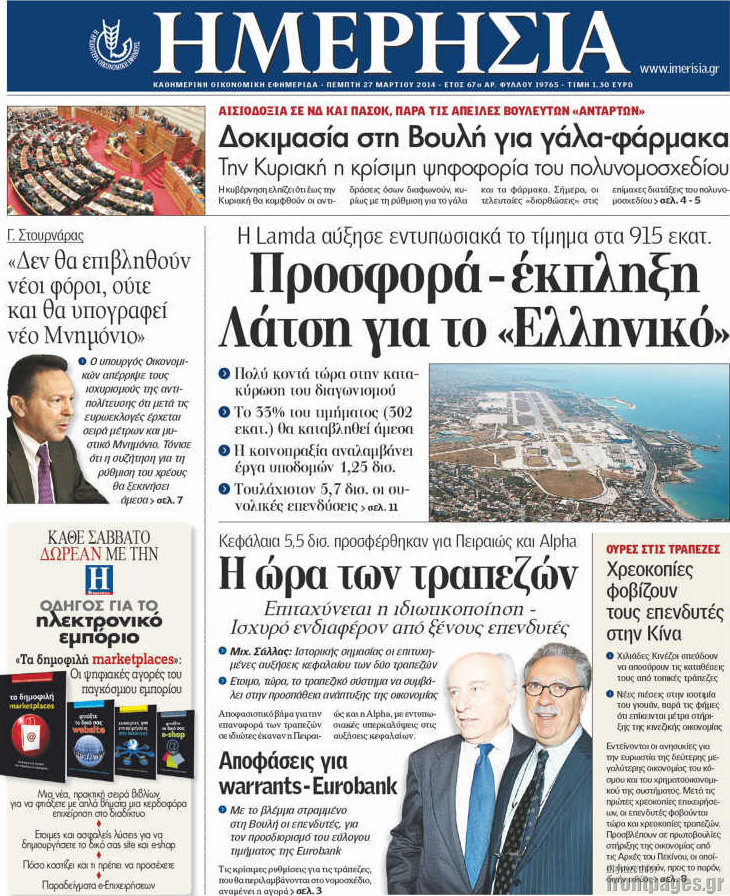 Οι oικονομικές εφημερίδες Enikos Newsroom 08:58, Πέμπτη 27 Μαρτίου 2014 Media Οι oικονομικές εφημερίδες Διαβάστε τα πρωτοσέλιδα των οικονομικών εφημερίδων: ΕΦΗΜΕΡΙΔΕΣ ΟΙΚΟΝΟΜΙΚΕΣ ΕΦΗΜΕΡΙΔΕΣ ΠΡΩΤΟΣΕΛΙΔΑ Μοιράσου το: σχολίασε κι εσύ (0 σχόλια) Ακολουθήστε το enikos.gr στο Google News και μάθετε πρώτοι όλες τις ειδήσεις Δείτε όλες τις τελευταίες ειδήσεις από την Ελλάδα και τον Κόσμο στο enikos.gr Ειδήσεις Ροή Ειδήσεων 3 ώρες πριν Χριστούγεννα στα μπλόκα: Επιμένουν στις κινητοποιήσεις τους οι αγρότες – Ανοίγουν τα διόδια το Σαββατοκύριακο 3 ώρες πριν Ουκρανία: Η άνευ προηγουμένου επίθεση σε ρωσικό τάνκερ στη Μεσόγειο και το μήνυμα προς στον Πούτιν – Το «μακρύ χέρι» του Κιέβου 3 ώρες πριν Πούτιν: Τα μηνύματα σε Ευρώπη και ΝΑΤΟ από το μαραθώνιο «σόου» του – Η απαίτηση για «σεβασμό» και η ειρήνη «με τους όρους» της Μόσχας 3 ώρες πριν Τραμπ: Δεν αποκλείει την πιθανότητα ενός πολέμου στη Βενεζουέλα – «Ο Μαδούρο ξέρει καλύτερα από τον καθένα τι ακριβώς θέλω» 4 ώρες πριν Συνεχίζει να προκαλεί ο Μίτσκοσκι: «Για μένα το όνομα Μακεδονία είναι ιερό» 3 ώρες πριν Ανακαλύφθηκαν αρχαία χρυσά νομίσματα 2.200 ετών που απεικονίζουν τον θεό Απόλλωνα – Η άγνωστη σύνδεση με τον Φίλιππο Β΄ της Μακεδονίας 4 ώρες πριν Ύπνος: Μια κρυφή κατάσταση του εγκεφάλου πριν από τον ύπνο μπορεί να είναι το “κλειδί” για υψηλή ευφυΐα και δημιουργικότητα 5 ώρες πριν Αριθμολογία: Οι άνθρωποι που έχουν γεννηθεί αυτές τις 4 ημερομηνίες, συχνά παρεξηγούνται – «Η καλοσύνη τους κρύβει τεράστια δύναμη» 6 ώρες πριν Ξεχάστε το καθάρισμα το Σαββατοκύριακο: Ο «κανόνας των 20 λεπτών» που θα σας λύσει τα χέρια 13 λεπτά πριν Euroleague: Επέστρεψε στις νίκες ο Ολυμπιακός, πήρε την ματσάρα της χρονιάς η Μπάρτσα – Τα αποτελέσματα και η βαθμολογία 27 λεπτά πριν Συρία: Μαζικά πλήγματα των ΗΠΑ σε θέσεις του Ισλαμικού Κράτους – Χέγκσεθ: «Δεν είναι αρχή πολέμου, είναι μια δήλωση εκδίκησης» για το θάνατο των στρατιωτών μας 40 λεπτά πριν Ουκρανία: Ολοκληρώθηκαν οι συνομιλίες με τους Αμερικανούς κι Ευρωπαίους διαπραγματευτές 55 λεπτά πριν Μπαρτσελόνα – Μπασκόνια 134-124: Οι «μπλαουγκράνα» πήραν το ματς της χρονιάς ύστερα από τρεις παρατάσεις 1 ώρα πριν Φαίη Σκορδά: «Παλιότερα τα κομπλιμέντα τα προσπερνούσα, τώρα τα έχω ανάγκη» ENIKOS NETWORK Το ΕΚΑΒ τιμήθηκε από την Ακαδημία Αθηνών για τα 40 χρόνια προσφοράς του Έχετε πραγματικά μεγάλη καρδιά; 10 χαρακτηριστικά όσων έχουν καλοσύνη Αναστολή μέτρων αναγκαστικής εκτέλεσης για κτηνοτρόφους που πλήττονται από την ευλογιά των αιγοπροβάτων Πλήρης επάρκεια προϊόντων στις λαϊκές της Αττικής, παρά τις αγροτικές κινητοποιήσεις – Τι απαντούν οι πωλητές Χαρτογραφώντας το «σημείο χωρίς επιστροφή»: Για πρώτη φορά αποκαλύπτεται με λεπτομέρεια το ακανθώδες όριο της ατμόσφαιρας τ... Η Google καταργεί τη λειτουργία «dark web report» – Πώς θα μπορούν οι χρήστες να διαγράφουν τα δεδομένα τους περισσότερα 22:42 , Παρασκευή 19 Δεκεμβρίου 2025 Γιώργος Γιαννόπουλος για “Το σόι σου”: “Είναι ευτυχία και ευλογία αυτή η σειρά” «Είναι ευτυχία και ευλογία η συγκυρία αυτής της σειράς», θα πει ο Γιώργος Γιαννόπουλος -ο αγαπ... 20:37 , Παρασκευή 19 Δεκεμβρίου 2025 Don’t Forget The Lyrics: Η Έλλη Κοκκίνου υποδέχεται 4 παίκτες που θα κάνουν τα πάντα για να μη χάσουν ούτε… μισή λέξη από τους στίχους Το «Don’t Forget The Lyrics» επιστρέφει απόψε, Παρασκευή 19 Δεκεμβρίου, στις 21:00 με νέο επει... 19:31 , Παρασκευή 19 Δεκεμβρίου 2025 GNTM: Απόψε ο μεγάλος τελικός για τους 4 φιναλίστ Έπε