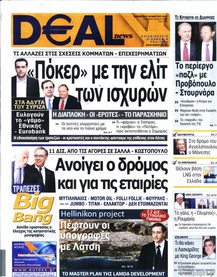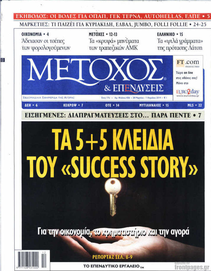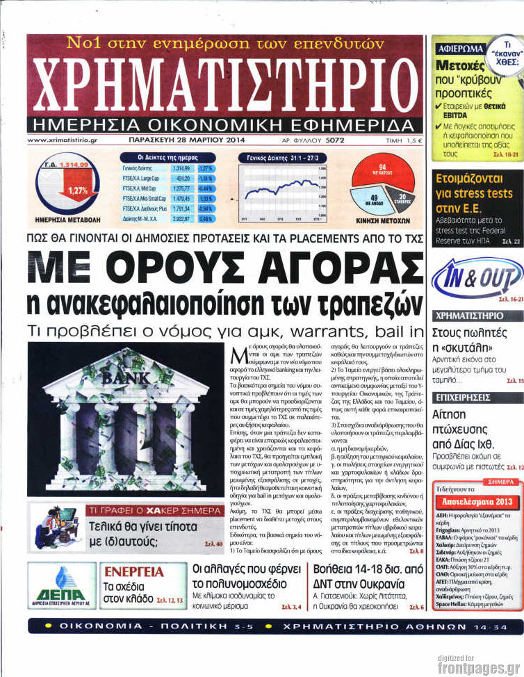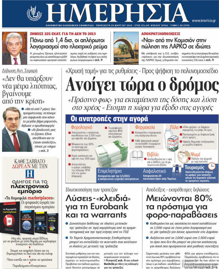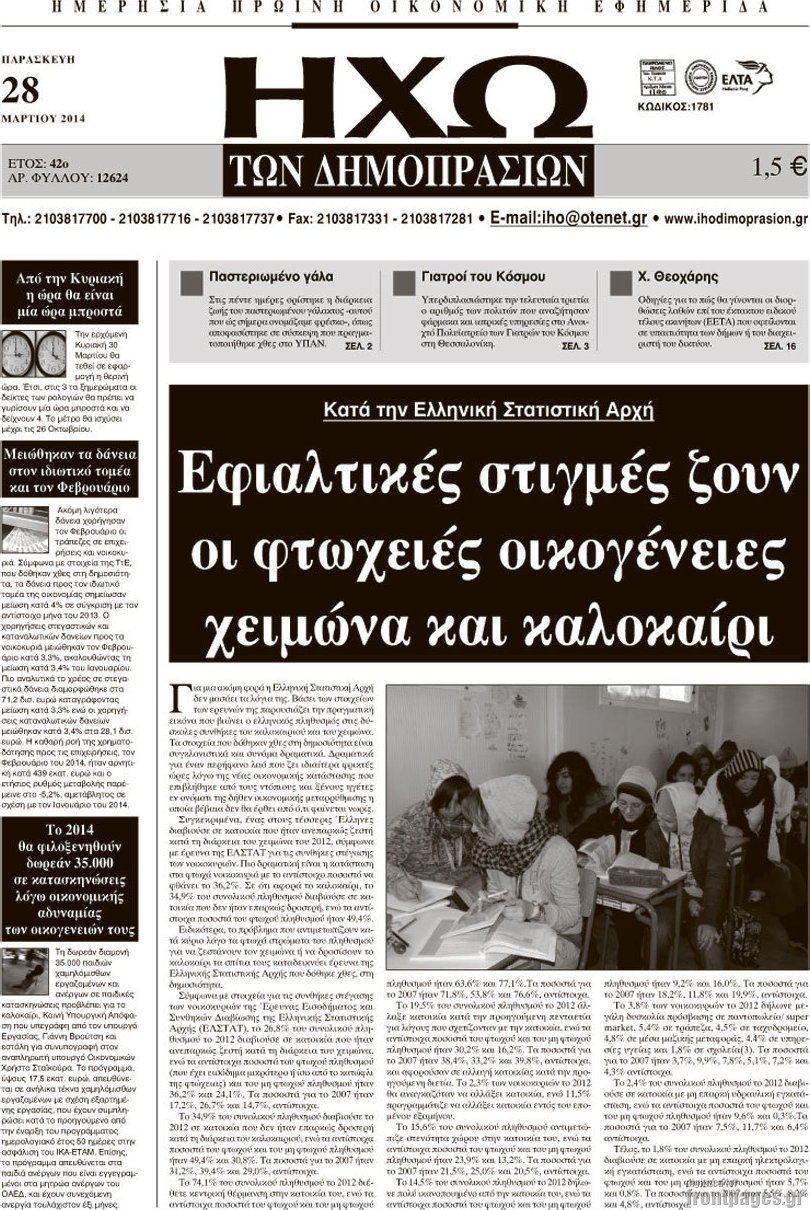 Οι oικονομικές εφημερίδες Enikos Newsroom 08:46, Παρασκευή 28 Μαρτίου 2014 Media Οι oικονομικές εφημερίδες Διαβάστε τα πρωτοσέλιδα των οικονομικών εφημερίδων: ΕΦΗΜΕΡΙΔΕΣ ΟΙΚΟΝΟΜΙΚΕΣ ΕΦΗΜΕΡΙΔΕΣ ΠΡΩΤΟΣΕΛΙΔΑ Μοιράσου το: σχολίασε κι εσύ (0 σχόλια) Ακολουθήστε το enikos.gr στο Google News και μάθετε πρώτοι όλες τις ειδήσεις Δείτε όλες τις τελευταίες ειδήσεις από την Ελλάδα και τον Κόσμο στο enikos.gr Ειδήσεις Ροή Ειδήσεων 8 ώρες πριν Μητσοτάκης: Αναγκαία η μεταρρύθμιση του πρωτογενούς τομέα – Τα 6 νέα μέτρα για το στεγαστικό και οι αναφορές σε «Ιθάκη» και «πολιτικούς του καναπέ» 7 ώρες πριν Δάνεια σε ελβετικό φράγκο: Τα βασικά σημεία της ρύθμισης – ανάσας για 40.000 δανειολήπτες – Αναλυτικός οδηγός με ερωτήσεις και απαντήσεις 7 ώρες πριν Κυψέλη: Εξιτήριο πήρε η 14χρονη μαθήτρια που μαχαιρώθηκε από την 16χρονη σε σχολείο – «Θέλω να βοηθήσω το παιδί, έχει μπλέξει με κακές παρέες» 7 ώρες πριν Τραμπ: Γιατί κατέθεσε τώρα την αγωγή κατά του BBC – Πώς η κίνησή του εξυπηρετεί το νέο δόγμα του για «αντίσταση» στην Ευρώπη, υπέρ των συντηρητικών 8 ώρες πριν ΟΠΕΚΕΠΕ – Παράνομες επιδοτήσεις: Ελεύθεροι με περιοριστικούς όρους και οι 7 κατηγορούμενοι που απολογήθηκαν σήμερα 7 ώρες πριν Ανακαλύφθηκε βυθισμένη πέτρινη κατασκευή ανοιχτά της Κριμαίας – Αποτελεί μέρος αρχαίας ελληνικής αποικίας 8 ώρες πριν Ύπνος: Αυτό μπορεί να είναι το χειρότερο λάθος για το βιολογικό ρολόι σας, σύμφωνα με ειδικό 9 ώρες πριν Αριθμολογία: Οι άνθρωποι που έχουν γεννηθεί αυτές τις 3 ημερομηνίες, προσελκύουν μεγάλη τύχη πριν από το τέλος του 2025 11 ώρες πριν Οι 7 συμπεριφορές που μαρτυρούν ότι ένας άνδρας επενδύει μακροπρόθεσμα σε μια σχέση 1 δευτερόλεπτο πριν Οι πολιτικές εφημερίδες 17/12/2025 8 λεπτά πριν Τα ζώδια σήμερα, Τετάρτη 17 Δεκεμβρίου: Κριοί, η αυτοπεποίθησή σας ενισχύεται 16 λεπτά πριν Εφημερεύοντα φαρμακεία σε Αθήνα και Θεσσαλονίκη (17/12) 22 λεπτά πριν Κόστα Ρίκα: Το Κογκρέσο απέρριψε το αίτημα για άρση της ασυλίας του προέδρου Τσάβες 30 λεπτά πριν Κολομβία: Νεκροί τέσσερις αστυνομικοί σε βομβιστικές επιθέσεις ανταρτών ENIKOS NETWORK Αίτημα ΙΣΑ για την εξαίρεση των προσωπικών γιατρών από τις κατ’ οίκον επισκέψεις Η σκανδιναβική μέθοδος στον ύπνο που μπορεί να σώσει έναν γάμο Πιερρακάκης: Ο προϋπολογισμός συμβάλλει ουσιαστικά στην ενίσχυση της αγοραστικής δύναμης της πλειονότητας των εργαζομένων e-ΕΦΚΑ: Παρατείνεται η προθεσμία για την υποβολή ΑΠΔ – Ποιους αφορά Σύγχρονος Νοστράδαμος: Προειδοποιεί για «μεγάλο γεγονός» τους επόμενους μήνες που θα συγκλονίσει τη Βρετανία και τον κόσμο Τεστ παρατηρητικότητας: Μπορείτε να βρείτε τις 3 διαφορές στις εικόνες με έναν πιγκουίνο σε 14 δευτερόλεπτα περισσότερα 05:38 , Τετάρτη 17 Δεκεμβρίου 2025 Οι πολιτικές εφημερίδες 17/12/2025 Διαβάστε τα πρωτοσέλιδα από τις πολιτικές εφημερίδες, σήμερα 17/12/2025. 20:06 , Τρίτη 16 Δεκεμβρίου 2025 Ο ΣΚΑΙ καταγγέλλει τον ΕΚΚΟΜΕΔ Επιστολή με την οποία καταγράφει την έντονη διαμαρτυρία του προς τον διευθύνοντα σύμβουλο του... 17:40 , Τρίτη 16 Δεκεμβρίου 2025 Eurovision: Στις 4 Ιανουαρίου αποκαλύπτονται τα 28 τραγούδια του ελληνικού τελικού Η αγωνία τελειώνει, η γιορτή της Eurovision αρχίζει στην ΕΡΤ από τις πρώτες ημέρες της νέας χρ... 17:09 , Τρίτη 16 Δεκεμβρίου 2025 Alter Ego Media: Βαθύτατη θλίψη και ειλικρινή συλλυπητήρια για την απώλεια της Ειρήνης Μαρινάκη Τη βαθύτατη θλίψη και τα ειλικρινή συλλυπητήριά της εκφράζει η Alter Ego Media για τον θάνατο ... ΤΕΛΕΥΤΑΙΕΣ ΕΙΔΗΣΕΙΣ 8 λεπτά πριν Τα ζώδι
