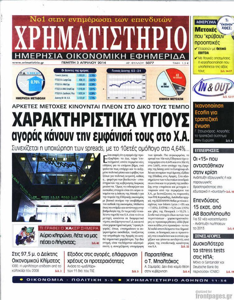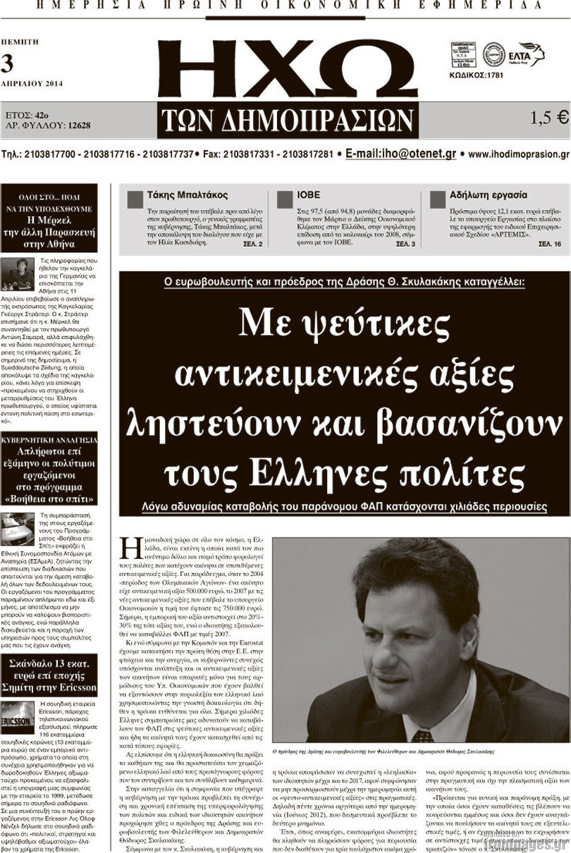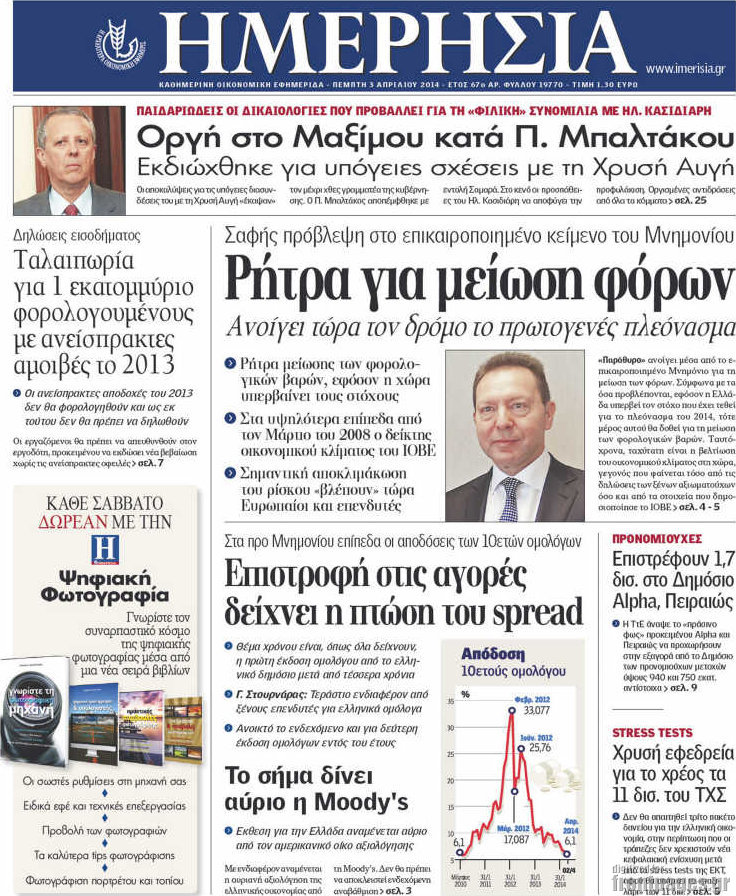 Οι oικονομικές εφημερίδες Enikos Newsroom 08:59, Πέμπτη 03 Απριλίου 2014 Media Οι oικονομικές εφημερίδες Διαβάστε τα πρωτοσέλιδα των οικονομικών εφημερίδων: ΕΦΗΜΕΡΙΔΕΣ ΟΙΚΟΝΟΜΙΚΕΣ ΕΦΗΜΕΡΙΔΕΣ ΠΡΩΤΟΣΕΛΙΔΑ Μοιράσου το: σχολίασε κι εσύ (0 σχόλια) Ακολουθήστε το enikos.gr στο Google News και μάθετε πρώτοι όλες τις ειδήσεις Δείτε όλες τις τελευταίες ειδήσεις από την Ελλάδα και τον Κόσμο στο enikos.gr Ειδήσεις Ροή Ειδήσεων 39 λεπτά πριν Νίκος Παππάς: Το παρασκήνιο της αποπομπής του – Οι μπουνιές, τα μηνύματα μετά την επίθεση και η διαγραφή από τον ΣΥΡΙΖΑ 2 ώρες πριν Φοροδιαφυγή: Ποιοι φορολογούμενοι κινδυνεύουν να πληρώσουν «τσουχτερά» πρόστιμα 1 ώρα πριν Φοινικούντα: Παραδόθηκε 30χρονος στην Καλαμάτα για τη διπλή δολοφονία 1 ώρα πριν Αγρότες: Ανυποχώρητοι στα μπλόκα – Στις Σέρρες σήμερα η κρίσιμη συνεδρίαση της Πανελλαδικής Επιτροπής 2 ώρες πριν Τα επίσημα χρονοδιαγράμματα που η Τουρκία θα παραλάβει τα Eurofighter 3 ώρες πριν Καούρα: Το μπαχαρικό που είναι «εξίσου αποτελεσματικό» με την ομεπραζόλη, σύμφωνα με ειδικούς 4 ώρες πριν Τα ζώδια σήμερα, Πέμπτη 18 Δεκεμβρίου: Λέοντες, η καρδιά σας θέλει να εκφραστεί 3 ώρες πριν Οπτική ψευδαίσθηση: Μόνο οι πιο έξυπνοι άνθρωποι θα βρουν 7 ξωτικά 15 δευτερόλεπτα 24 ώρες πριν 20 χρόνια τα Χριστούγεννα ξεκινούν στα Public με μεγάλη ποικιλία σε δώρα! 1 λεπτό πριν Η σύζυγός του παραπονιέται για τα χρήματα που της δίνει για ψώνια κάθε μήνα – «Λέει ότι νιώθει φτωχή και της είπα να βρει δουλειά» 10 λεπτά πριν Άστατος ο καιρός τα Χριστούγεννα: Βαρομετρικό χαμηλό από τον κόλπο της Σύρτης «ξεκλειδώνει» κακοκαιρίες – Πώς θα εξελιχθεί έως την Πρωτοχρονιά 14 λεπτά πριν Γρίπη: Η υπουργός Υγείας της Γαλλίας καλεί τους πολίτες να ξαναφορέσουν τις μάσκες τους 22 λεπτά πριν Μαρία Αλιφέρη: «Καλή σου ξεκούραση ακριβέ μου φίλε και αδελφέ» – Η συγκινητική ανάρτηση για τον Αλμπέρτο Εσκενάζυ 26 λεπτά πριν Οφειλές προς το Δημόσιο: Τι απαντά το υπουργείο στα σενάρια για νέα ρύθμιση ENIKOS NETWORK 5 ασκήσεις που εξαφανίζουν το «σωσίβιο» πιο γρήγορα από τους κοιλιακούς μετά τα 50 «Έκανα χρόνια μανικιούρ με τζελ μέχρι που κινδύνευσαν να πέσουν» – Πώς ήταν το σημάδι στο νύχι που την προειδοποίησε Οφειλές προς το Δημόσιο: «Φρένο» στα σενάρια για νέα ρύθμιση – Τι απαντά το υπουργείο Εθνικής Οικονομίας και Οικονομικών Φοροδιαφυγή: Ποιοι φορολογούμενοι κινδυνεύουν να πληρώσουν «τσουχτερά» πρόστιμα Χαρτογραφώντας το «σημείο χωρίς επιστροφή»: Για πρώτη φορά αποκαλύπτεται με λεπτομέρεια το ακανθώδες όριο της ατμόσφαιρας τ... Η Google καταργεί τη λειτουργία «dark web report» – Πώς θα μπορούν οι χρήστες να διαγράφουν τα δεδομένα τους περισσότερα 08:00 , Πέμπτη 18 Δεκεμβρίου 2025 Την Κυριακή με τη Realnews: Δωροεπιταγή 10€ Δωροεπιταγή αξίας 10€ για αγορές άνω των 60€ από τα πολυκαταστήματα FactoryOutlet H προσφορά ι... 07:50 , Πέμπτη 18 Δεκεμβρίου 2025 «Το σόι σου»: Backstage στα γυρίσματα για το εορταστικό επεισόδιο «Το σόι σου» φορά τα γιορτινά του για τα Χριστούγεννα και η Όλγα Λαφαζάνη, με την κάμερα του «... 07:36 , Πέμπτη 18 Δεκεμβρίου 2025 Οι αθλητικές μεταδόσεις 18/12/2025 – Πού θα δείτε τον αγώνα της ΑΕΚ με την Κραϊόβα για το Conference League Τα ματς ΑΕΚ – Ουνιβερσιτάτεα Κραϊόβα για το Conference League και Παναθηναϊκός – Χάποελ Τελ Αβ... 05:48 , Πέμπτη 18 Δεκεμβρίου 2025 Οι οικονομικές εφημερίδες 18/12/2025 Διαβάστε τα πρωτοσέλιδα από τις οικονομικές εφημερίδες, σήμερα 18/12/2025. ΤΕΛΕΥΤΑΙΕΣ ΕΙΔΗΣΕΙΣ 10 λεπτά πριν Άστατος ο καιρός τα Χριστούγεννα: Βαρομετρικό χα
