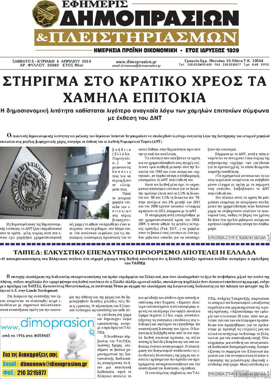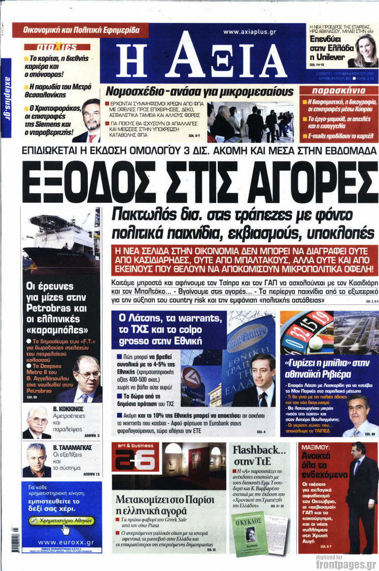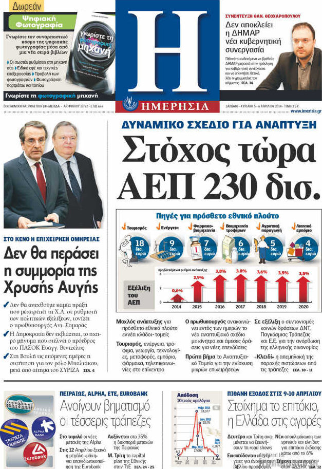 Οι oικονομικές εφημερίδες Enikos Newsroom 09:30, Σάββατο 05 Απριλίου 2014 Media Οι oικονομικές εφημερίδες Διαβάστε τα πρωτοσέλιδα των οικονομικών εφημερίδων: ΕΦΗΜΕΡΙΔΕΣ ΟΙΚΟΝΟΜΙΚΕΣ ΕΦΗΜΕΡΙΔΕΣ ΠΡΩΤΟΣΕΛΙΔΑ Μοιράσου το: σχολίασε κι εσύ (0 σχόλια) Ακολουθήστε το enikos.gr στο Google News και μάθετε πρώτοι όλες τις ειδήσεις Δείτε όλες τις τελευταίες ειδήσεις από την Ελλάδα και τον Κόσμο στο enikos.gr Ειδήσεις Ροή Ειδήσεων 33 λεπτά πριν Live streaming – Ο Μάκης Βορίδης στο στούντιο του Realfm 97,8 σε μια εφ’ όλης της ύλης συνέντευξη στον Νίκο Χατζηνικολάου 59 λεπτά πριν Κατρίνης: «Ο μικρός μου γιος οδηγούσε χωρίς δίπλωμα, πράξη αδικαιολόγητη και παράνομη – Ο νόμος ισχύει για όλους» 48 λεπτά πριν ΕΕ: Η Κομισιόν παρουσιάζει σήμερα σχέδιο για την αντιμετώπιση της στεγαστικής κρίσης – Προτείνει πλαφόν στα Airbnb 1 ώρα πριν Κυβέρνηση: Αγώνας για γιορτές χωρίς μπλόκα – Τι συζητά και τι απορρίπτει το Μαξίμου 18 λεπτά πριν Βίντεο: Κατέρρευσε άγαλμα στη Βραζιλία λόγω ισχυρών ανέμων – Καρέ καρέ η δραματική πτώση του 2 ώρες πριν Τέλος η μοναξιά για 3 ζώδια μετά τις 16 Δεκεμβρίου – «Ξαναβρίσκετε τον εαυτό σας» 4 ώρες πριν Ανακαλύφθηκε περίτεχνη μαρμάρινη μπανιέρα που επαναχρησιμοποιήθηκε ως κρήνη 3 ώρες πριν Η πεθερά της την κατηγορεί πως δεν την ταΐζει σωστά – «Δεν παραπονιέται όμως στον γιο της» 43 λεπτά πριν Οι άνθρωποι που φαίνονται «τυχεροί» στη ζωή τους, συνήθως έχουν αυτές τις 8 αθόρυβες συνήθειες 3 λεπτά πριν WSJ: Η Ευρώπη προετοιμάζει τους πολίτες της για πόλεμο με τη Ρωσία – Η «γκρίζα ζώνη» της Μόσχας και το τέλος του εφησυχασμού 8 λεπτά πριν Χάος σε σχολείο της Γλυφάδας: Βάζουν φωτιά σε αίθουσες και πετάνε θρανία από σκάλες – ΒΙΝΤΕΟ 13 λεπτά πριν ΔΥΠΑ: Από αύριο η προπληρωμή επιδομάτων, παροχών και Δώρου Χριστουγέννων 18 λεπτά πριν Βίντεο: Κατέρρευσε άγαλμα στη Βραζιλία λόγω ισχυρών ανέμων – Καρέ καρέ η δραματική πτώση του 23 λεπτά πριν Αγρότες στα τελωνεία: Μπλόκο σε δύο φάσεις στους Ευζώνους – Πολύωροι αποκλεισμοί σε Νίκη, Προμαχώνα και Εξοχή ENIKOS NETWORK Οι ρίζες της άνοιας ίσως βρίσκονται στην παιδική ηλικία – Τι έδειξαν πρόσφατες μελέτες Όμιλος ΠΡΟΣΥΦΑΠΕ: Επιστρέφει στην κοινωνία τμήμα της υπεραξίας που παράγει Βουλή: Σήμερα η ψήφιση του προϋπολογισμού με τα νέα μέτρα για τη στέγη – Ποιοι είναι οι δημοσιονομικοί και αναπτυξιακοί στ... Επιδόματα της ΔΥΠΑ και Δώρο Χριστουγέννων: Από αύριο η προπληρωμή τους Σύγχρονος Νοστράδαμος: Προειδοποιεί για «μεγάλο γεγονός» τους επόμενους μήνες που θα συγκλονίσει τη Βρετανία και τον κόσμο Τεστ παρατηρητικότητας: Μπορείτε να βρείτε τις 3 διαφορές στις εικόνες με έναν πιγκουίνο σε 14 δευτερόλεπτα περισσότερα 09:58 , Τρίτη 16 Δεκεμβρίου 2025 LIVE – Ακούστε την εκπομπή του Νίκου Χατζηνικολάου 16/12/2025 Ακούστε την εκπομπή του Νίκου Χατζηνικολάου, στον Realfm 97,8. Ακούστε LIVE εδώ 09:26 , Τρίτη 16 Δεκεμβρίου 2025 Τηλεθέαση (15/12): Τα νούμερα για την prime time – Ποιες σειρές ξεχώρισαν Ξεκάθαρη πρωτιά στην τηλεθέαση κατέκτησε η σειρά «Μια νύχτα μόνο», η οποία βρέθηκε στην κορυφή... 08:00 , Τρίτη 16 Δεκεμβρίου 2025 Την Κυριακή με τη Realnews: Δωροεπιταγή 10€ Δωροεπιταγή αξίας 10€ για αγορές άνω των 60€ από τα πολυκαταστήματα FactoryOutlet H προσφορά ι... 05:48 , Τρίτη 16 Δεκεμβρίου 2025 Οι οικονομικές εφημερίδες 16/12/2025 Διαβάστε τα πρωτοσέλιδα από τις οικονομικές εφημερίδες, σήμερα 16/12/2025. ΤΕΛΕΥΤΑΙΕΣ ΕΙΔΗΣΕΙΣ 3 λεπτά πριν WSJ: Η Ευρώπη προετοιμάζει τους πολίτες της για πόλεμο... 8 λεπτά πριν Χάος σε σχολείο της Γλυφάδας: Β