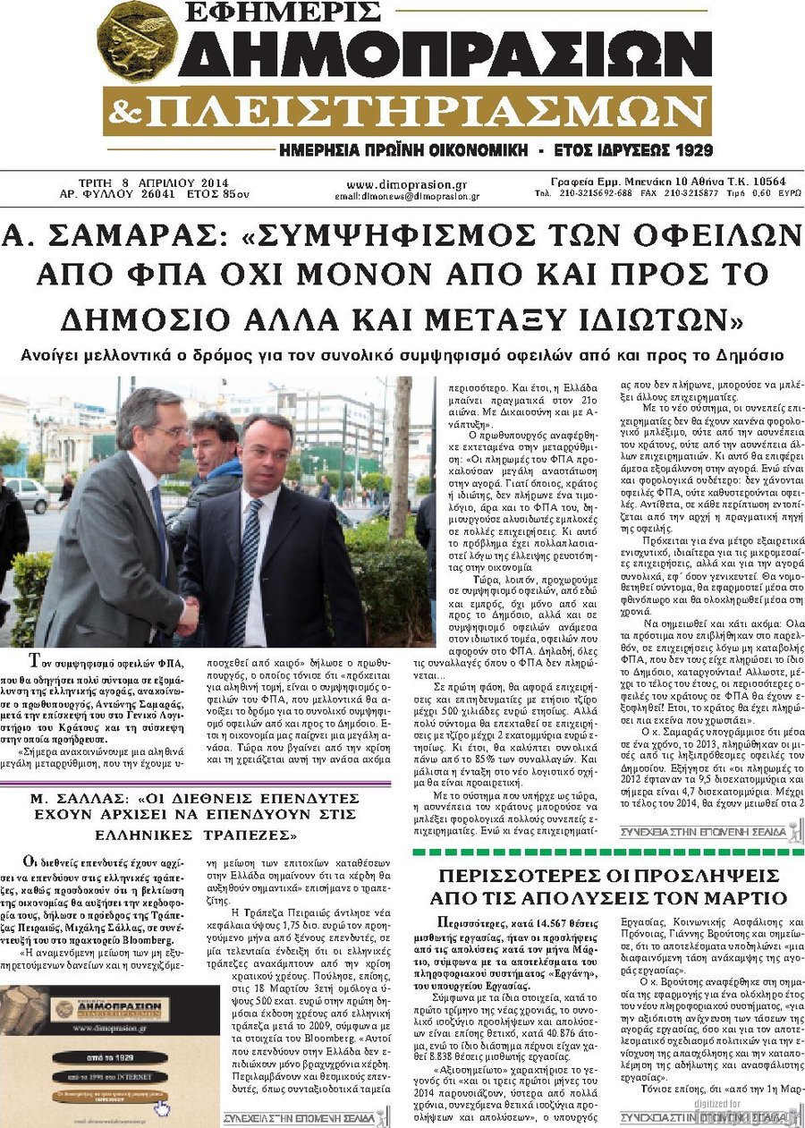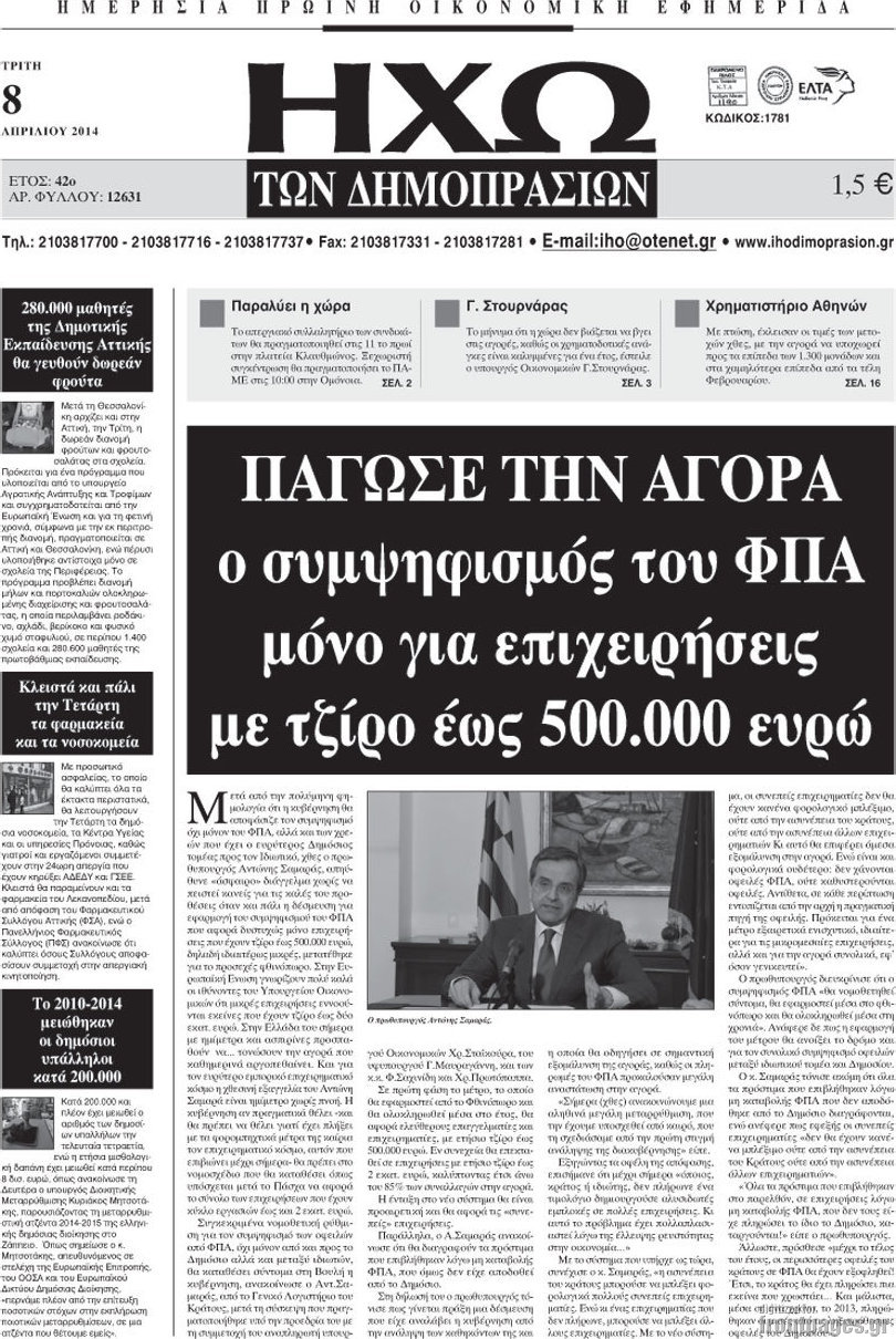 Οι oικονομικές εφημερίδες Enikos Newsroom 09:48, Τρίτη 08 Απριλίου 2014 Media Οι oικονομικές εφημερίδες Διαβάστε τα πρωτοσέλιδα των οικονομικών εφημερίδων: ΕΦΗΜΕΡΙΔΕΣ ΟΙΚΟΝΟΜΙΚΕΣ ΕΦΗΜΕΡΙΔΕΣ Μοιράσου το: σχολίασε κι εσύ (0 σχόλια) Ακολουθήστε το enikos.gr στο Google News και μάθετε πρώτοι όλες τις ειδήσεις Δείτε όλες τις τελευταίες ειδήσεις από την Ελλάδα και τον Κόσμο στο enikos.gr Ειδήσεις Ροή Ειδήσεων 18 λεπτά πριν ΣΥΡΙΖΑ: Διέγραψε τον ευρωβουλευτή Νίκο Παππά μετά την μήνυση δημοσιογράφου για ξυλοδαρμό 1 ώρα πριν Πώς στήθηκε η επιχείρηση «Ίπαλλος» που οδήγησε στη σύλληψη του «Έλληνα Εσκομπάρ» – «Ο πόλεμος ενάντια στους εμπόρους ναρκωτικών θα συνεχιστεί» 1 ώρα πριν Δίκη Χρυσής Αυγής: Την ενοχή και των 42 κατηγορουμένων ζητά η εισαγγελέας 1 ώρα πριν Κυψέλη: Στη φυλακή η 16χρονη που μαχαίρωσε συμμαθήτριά της 4 ώρες πριν Αμοργός: «Θα προσπαθήσω να το κάνω κάθε μέρα» – Ποιος είναι ο αγρότης που έστησε μόνος του το πρώτο μπλόκο στο νησί 1 ώρα πριν Τα 3 ζώδια που θα δουν τη ζωή τους να αλλάζει ριζικά το 2026 – «Όλα γίνονται καλύτερα σταδιακά» 6 ώρες πριν «Δεν είχα κλάψει από τότε που διαγνώστηκα με καρκίνο, ώσπου ένα τηλεφώνημα με έκανε να λυγίσω» – Η συγκλονιστική εξομολόγηση ενός άνδρα 2 ώρες πριν Ο σπάνιος σεισμός που έλυσε τα χέρια των επιστημόνων – Αποκάλυψε ακριβώς όσα αναζητούσαν 8 ώρες πριν 20 χρόνια τα Χριστούγεννα ξεκινούν στα Public με μεγάλη ποικιλία σε δώρα! 1 λεπτό πριν Μαργαρίτα Θεοδωράκη για Γιώργο Χατζιδάκι: Προσβλητικό το εξώδικο – Ο Μίκης έγραψε «απαγορεύεται το απαγορεύεται» 7 λεπτά πριν Ρόδος: Ανήλικος που βρισκόταν σε σχολική εκδρομή μεταφέρθηκε μεθυσμένος στο νοσοκομείο – 2 συλλήψεις 13 λεπτά πριν Γέννησε η Ευάννα Ζουμπούρογλου: «Είμαστε και οι δύο πολύ καλά – Είναι η πιο όμορφη όλου του κόσμου» 18 λεπτά πριν ΣΥΡΙΖΑ: Διέγραψε τον ευρωβουλευτή Νίκο Παππά μετά την μήνυση δημοσιογράφου για ξυλοδαρμό 20 λεπτά πριν Απολαυστικό «Ρουκ…Σουτ» με παίκτες του Παναθηναϊκού AKTOR – ΒΙΝΤΕΟ ENIKOS NETWORK Γιατί αναζητούμε τα Χριστούγεννα όλο και νωρίτερα; Ποιοι οι ψυχολογικοί και οι συναισθηματικοί λόγοι Σοβαροί κίνδυνοι από τη λάθος χορήγηση φαρμάκου για τις αιμορραγίες-Συστάσεις προς τους γιατρούς Δάνεια σε ελβετικό φράγκο: Αύριο η κατάθεση της τροπολογίας στη Βουλή – Όλες οι λεπτομέρειες Επίδομα παιδιού: Πότε θα δοθεί η τελευταία δόση για το 2025 από τον ΟΠΕΚΑ και τι πρέπει να γνωρίζετε Χαρτογραφώντας το «σημείο χωρίς επιστροφή»: Για πρώτη φορά αποκαλύπτεται με λεπτομέρεια το ακανθώδες όριο της ατμόσφαιρας τ... Η Google καταργεί τη λειτουργία «dark web report» – Πώς θα μπορούν οι χρήστες να διαγράφουν τα δεδομένα τους περισσότερα 12:35 , Τετάρτη 17 Δεκεμβρίου 2025 Μίρκα Παπακωνσταντίνου: «Δεν ήμουν αισιόδοξη για τα νούμερα – Είμαι ρεαλίστρια» Στα γυρίσματα του εορταστικού επεισοδίου της αγαπημένης σειράς “Το Σόι Σου”, βρέθηκε η κάμερα ... 12:12 , Τετάρτη 17 Δεκεμβρίου 2025 Ακούστε την εκπομπή του Νίκου Χατζηνικολάου 17/12/2025 Ακούστε την εκπομπή του Νίκου Χατζηνικολάου στον ραδιοφωνικό σταθμό RealFm 97,8, την Τετάρτη 1... 11:35 , Τετάρτη 17 Δεκεμβρίου 2025 Home Alone: Το σπίτι της ταινίας θα ανακαινιστεί – Επιστροφή στην αισθητική της δεκαετίας του ’90 Οι νέοι ιδιοκτήτες του πραγματικού σπιτιού που παρουσιάζεται στην κλασική ταινία του 1990 «Hom... 11:25 , Τετάρτη 17 Δεκεμβρίου 2025 Grand Hotel: Απόψε το τελευταίο επεισόδιο της χρονιάς – Όλα τα μυστικά μένουν εδώ Το τελευταίο επεισόδιο της χρονιάς της σειράς «Grand Hotel» θα προβλη
