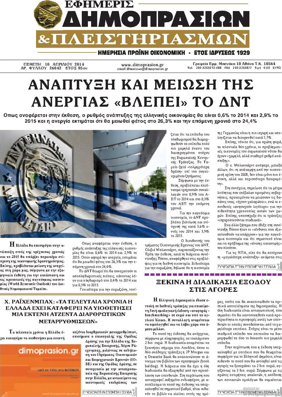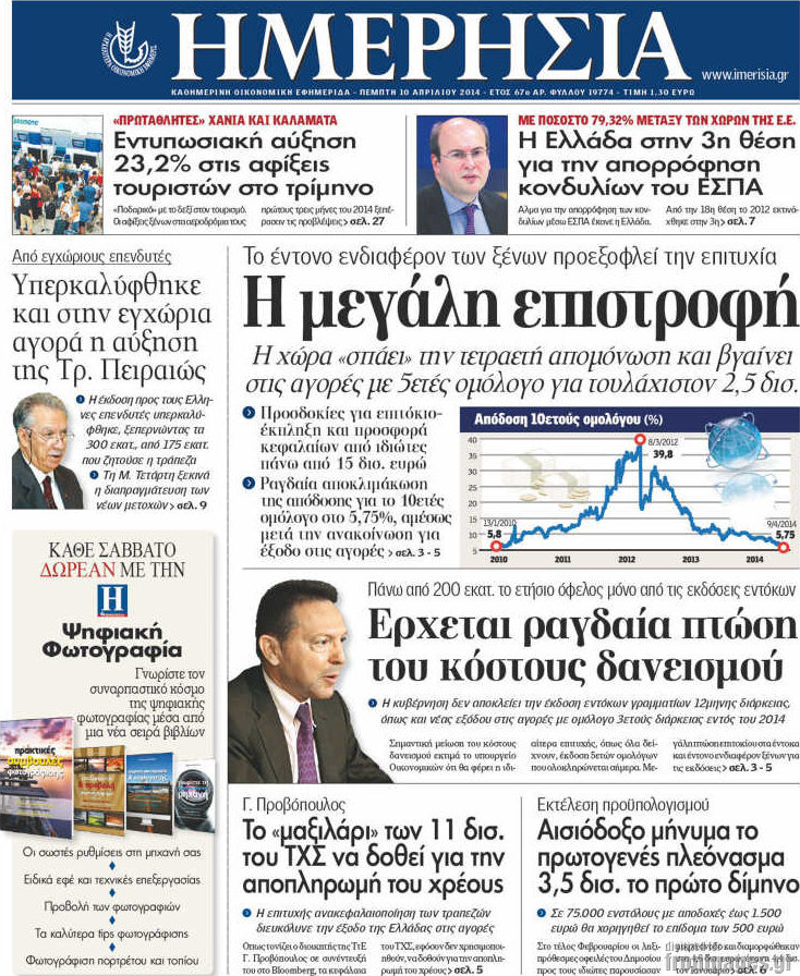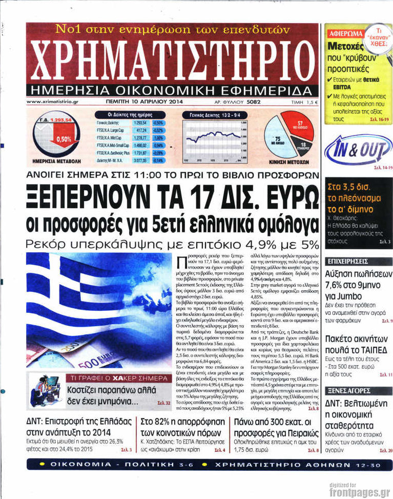 Οι oικονομικές εφημερίδες Enikos Newsroom 08:57, Πέμπτη 10 Απριλίου 2014 Media Οι oικονομικές εφημερίδες Διαβάστε τα πρωτοσέλιδα των οικονομικών εφημερίδων: ΕΦΗΜΕΡΙΔΕΣ ΟΙΚΟΝΟΜΙΚΕΣ ΕΦΗΜΕΡΙΔΕΣ ΠΡΩΤΟΣΕΛΙΔΑ Μοιράσου το: σχολίασε κι εσύ (0 σχόλια) Ακολουθήστε το enikos.gr στο Google News και μάθετε πρώτοι όλες τις ειδήσεις Δείτε όλες τις τελευταίες ειδήσεις από την Ελλάδα και τον Κόσμο στο enikos.gr Ειδήσεις Ροή Ειδήσεων 5 ώρες πριν Αυξάνουν την πίεση προς την κυβέρνηση οι αγρότες: Κλείνουν παρακαμπτήριους και ανοίγουν διόδια – Τι θα γίνει τις γιορτές 4 ώρες πριν ΟΠΕΚΕΠΕ: Προφυλακιστέος ο φερόμενος αρχηγός και ο λογιστής της εγκληματικής οργάνωσης 5 ώρες πριν Φοινικούντα: Το Σάββατο απολογείται ο 30χρονος γιος γνωστού επιχειρηματία της Πλάκας που παραδόθηκε – Όσα είπε στους αστυνομικούς και ο ρόλος του στο έγκλημα 4 ώρες πριν Μπορεί ο Μαδούρο να αντέξει τον αποκλεισμό του Τραμπ; Τι θα χρειαστεί η Ουάσινγκτον για να τον ανατρέψει 3 ώρες πριν ΑΕΚ – Κραϊόβα 3-2: Επική ανατροπή και πρόκριση στους «16» του Conference League η Ένωση 4 ώρες πριν Αρχαιολόγοι ανακάλυψαν ρωμαϊκά τεχνουργήματα από μια πόλη που δεν υπήρξε ποτέ – Τα τρία εντυπωσιακά κτίρια και ο αμφορέας με τις… σαρδέλες 5 ώρες πριν Ύπνος: Η απλή βραδινή ρουτίνα για να προστατεύσετε τα μαλλιά σας από το κρύο κατά τη διάρκεια του χειμώνα 6 ώρες πριν Manifesting: Πώς να συναντήσετε τον σύντροφο της ζωής σας, ανάλογα με τον μήνα γέννησής σας 2 ημέρες πριν 20 χρόνια τα Χριστούγεννα ξεκινούν στα Public με μεγάλη ποικιλία σε δώρα! 18 λεπτά πριν Ευρωπαϊκή Ένωση: Χωρίς συμφωνία, για την μακροπρόθεσμη χρηματοδότηση της Ουκρανίας, ολοκληρώθηκε η Σύνοδος Κορυφής στις Βρυξέλλες 33 λεπτά πριν GNTM: «Κλείδωσαν» οι τέσσερις φιναλίστ – Μεγάλη ανατροπή στις τελευταίες αποχωρήσεις 47 λεπτά πριν Γιώργος Μαζωνάκης: Αποθεώθηκε στην πρεμιέρα του στην «Ακτή Πειραιώς» λίγες ώρες μετά τις καταγγελίες – «Είμαι αληθινός», είπε με νόημα 1 ώρα πριν Πόλεμος στην Ουκρανία: Ρωσικά drones έπληξαν την Οδησσό – Μία νεκρή και ζημιές σε ενεργειακές υποδομές 1 ώρα πριν ΑΕΚ-Κραϊόβα: Τα highlights της μυθικής ανατροπής της «Ένωσης» ENIKOS NETWORK Σε περίοδο αυξημένης δραστηριότητας η γρίπη στην Ελλάδα-Μέτρα προστασίας από τον ΕΟΔΥ Σκέφτεστε συνέχεια συζητήσεις που έχετε κάνει; Τι σημαίνει αυτό, σύμφωνα με ειδικό Στεγαστικό: Τι λέει η ΠΟΜΙΔΑ για τα νέα μέτρα που ανακοίνωσε ο Κυριάκος Μητσοτάκης Λαγκάρντ: Αισιόδοξη για την ανάπτυξη της Ευρωζώνης, αβέβαιη για τον πληθωρισμό Χαρτογραφώντας το «σημείο χωρίς επιστροφή»: Για πρώτη φορά αποκαλύπτεται με λεπτομέρεια το ακανθώδες όριο της ατμόσφαιρας τ... Η Google καταργεί τη λειτουργία «dark web report» – Πώς θα μπορούν οι χρήστες να διαγράφουν τα δεδομένα τους περισσότερα 02:50 , Παρασκευή 19 Δεκεμβρίου 2025 GNTM: «Κλείδωσαν» οι τέσσερις φιναλίστ – Μεγάλη ανατροπή στις τελευταίες αποχωρήσεις Για προτελευταία φορά εμφανίστηκαν στο πλατό του GNTM οι φιναλίστ του φετινού κύκλου, το βράδυ... 17:45 , Πέμπτη 18 Δεκεμβρίου 2025 ROUK ZOUK: Εορταστικό επεισόδιο με καλεσμένους τους πρωταγωνιστές του «Γιατί ρε πατέρα» Το Σάββατο 20 Δεκεμβρίου στις 21:00, η Ζέτα Μακρυπούλια υποδέχεται εκλεκτούς ηθοποιούς που όλο... 17:20 , Πέμπτη 18 Δεκεμβρίου 2025 Άγιος έρωτας: Η Χριστίνα εξομολογείται στον πατέρα Νικόλαο, απόψε στις 21:00 στον Alpha Η Νότα αποφασίζει να εκδικηθεί τον Πέτρο και τον Στέφανο, για χάρη του Λούη, όμως τα πράγματα ... 16:50 , Πέμπτη 18 Δεκεμβρίου 2025 Να μ’ αγαπάς: Ζωή και Φωτεινή συμφιλιώνονται 