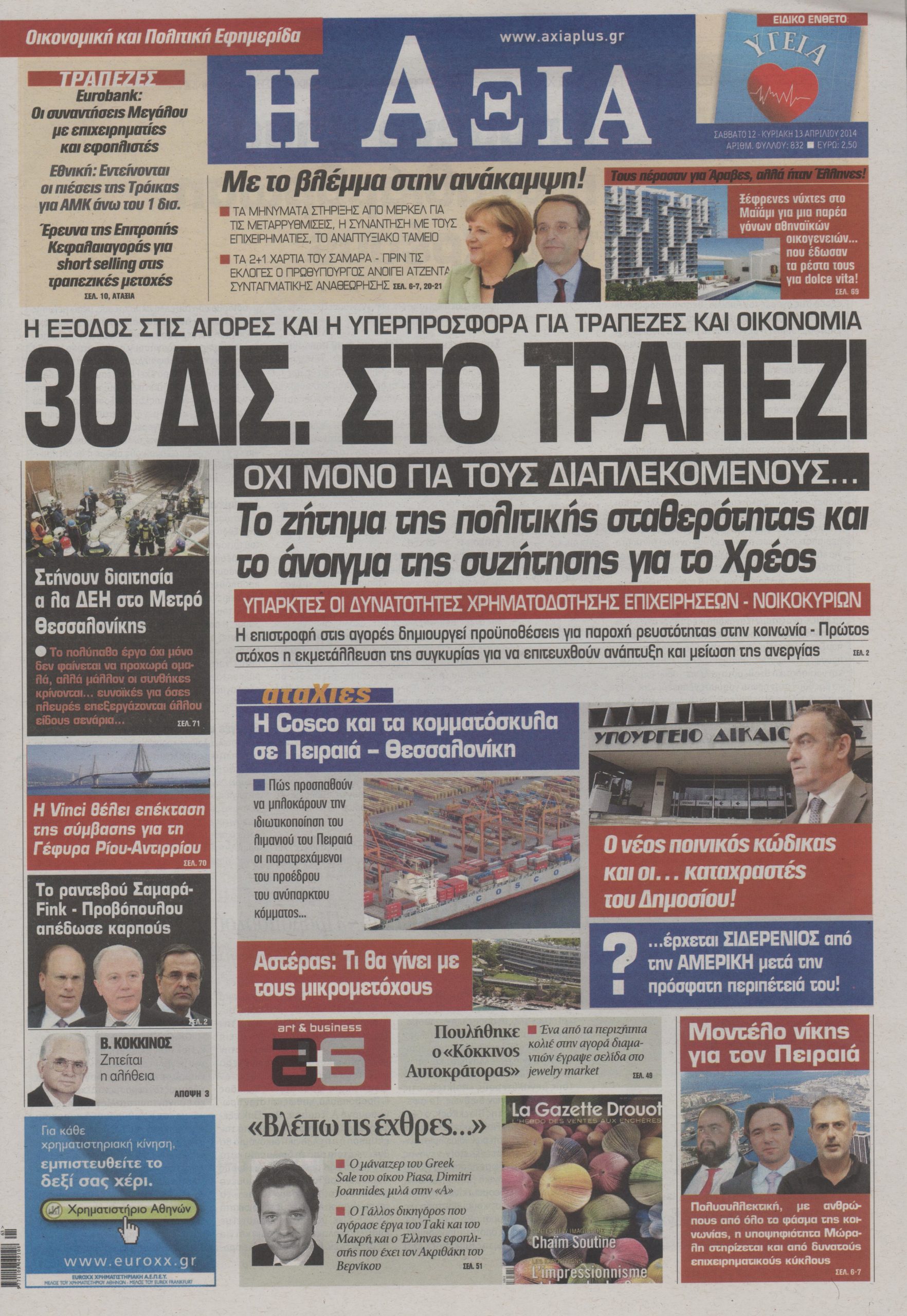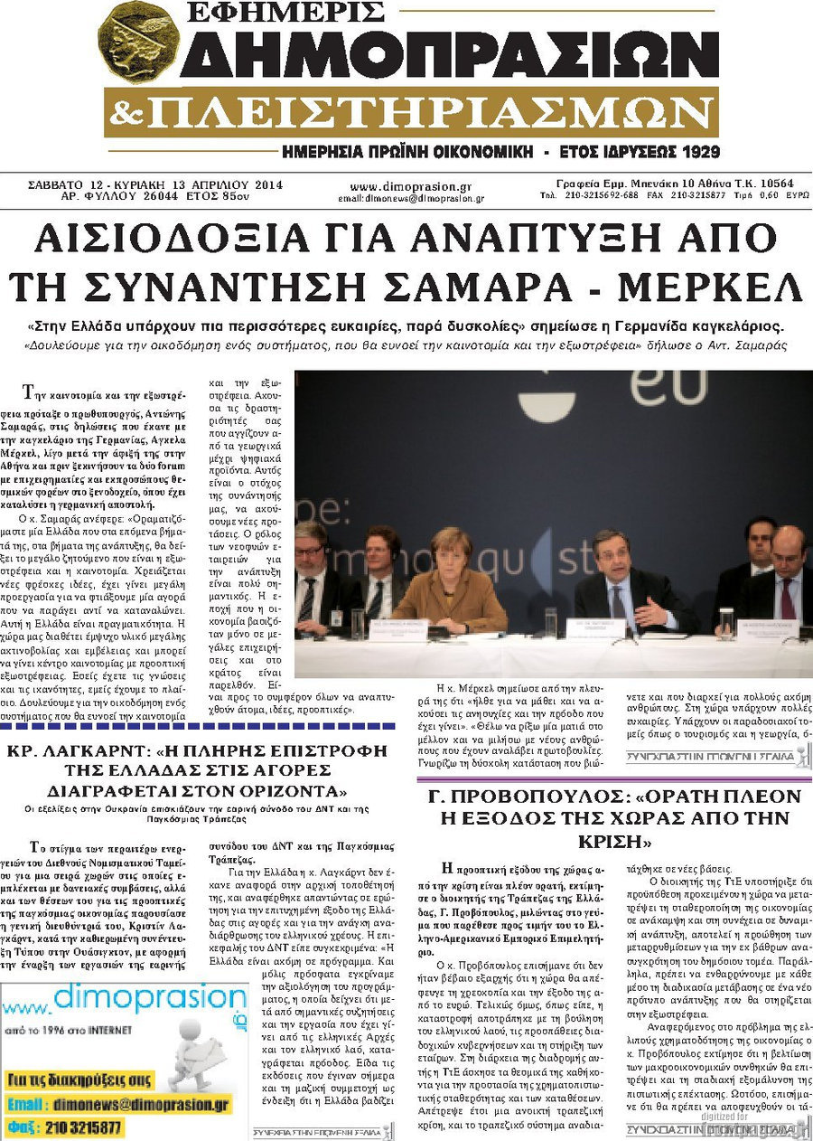Οι οικονομικές εφημερίδες Enikos Newsroom 08:03, Σάββατο 12 Απριλίου 2014 Media Οι οικονομικές εφημερίδες ΤΟ ΑΡΘΡΟ ΑΝΑΝΕΩΝΕΤΑΙ ΟΙΚΟΝΟΜΙΚΕΣ ΕΦΗΜΕΡΙΔΕΣ Μοιράσου το: σχολίασε κι εσύ (0 σχόλια) Ακολουθήστε το enikos.gr στο Google News και μάθετε πρώτοι όλες τις ειδήσεις Δείτε όλες τις τελευταίες ειδήσεις από την Ελλάδα και τον Κόσμο στο enikos.gr Ειδήσεις Ροή Ειδήσεων 3 ώρες πριν Νίκος Παππάς: «Είχα λάθος αντίδραση στη δική του δράση-πρόκληση – Δεν θα αναλύσω σε τι κατάσταση ήταν ο δημοσιογράφος» 48 λεπτά πριν Νίκος Γιαννόπουλος για Νίκο Παππά: «Είναι επικίνδυνος, θα του κάνω ασφαλιστικά» – ΒΙΝΤΕΟ 2 ώρες πριν Αλεξανδρούπολη: Πολυοργανική ανεπάρκεια λόγω υποσιτισμού η αιτία θανάτου του 3χρονου αγοριού 2 ώρες πριν Δημοσκόπηση Pulse: Η διαφορά ΝΔ-ΠΑΣΟΚ – Με ποια κριτήρια θα ψηφίσουν οι πολίτες στις επόμενες εκλογές 3 ώρες πριν Συγκλονιστικό βίντεο: Τρόμος για τουρίστες που σώθηκαν την τελευταία στιγμή από λεωφορείο που κατρακυλούσε σε φαράγγι 1 ώρα πριν Ύπνος: Ειδικός εξηγεί τον πραγματικό λόγο που ξυπνάτε στις 4 τα ξημερώματα – Ο ρόλος των ορμονών και του κιρκάδιου ρυθμού 2 ώρες πριν Αριθμολογία: Οι άνθρωποι που έχουν γεννηθεί αυτές τις 4 ημερομηνίες, είναι τρυφεροί και αγαπούν ανιδιοτελώς 3 ώρες πριν Καθρέφτες μπάνιου: Το απλό κόλπο με την οδοντόκρεμα για να μην θολώνουν 14 ώρες πριν 20 χρόνια τα Χριστούγεννα ξεκινούν στα Public με μεγάλη ποικιλία σε δώρα! 3 λεπτά πριν Μυστήριο με τεράστιες κυκλικές πέτρες 200 κιλών – Ανακαλύφθηκαν τυχαία κατά τη διάρκεια οδικών έργων και κανείς δεν ξέρει από πού προέρχονται 6 λεπτά πριν Τάκης Ζαχαράτος και Έλενα Παπαρίζου μαζί στη σκηνή – Πότε κάνουν πρεμιέρα; 13 λεπτά πριν Κυψέλη: Χωρίς την οικογένειά της δίπλα της απολογήθηκε η 16χρονη – «Της είχε επιτεθεί κάποιος για να την βιάσει, φοβήθηκε και κυκλοφορούσε με μαχαίρι» 19 λεπτά πριν «Αγριεύουν» οι αγρότες: «Δεν συντρέχει λόγος συνάντησης με τον πρωθυπουργό» – Ώρα αποφάσεων στη σύσκεψη της Πέμπτης 24 λεπτά πριν Χρίστος Αντωνιάδης: «Όποιος δεν έχει κάνει δίδυμα, δεν δικαιούται διά να ομιλεί» ENIKOS NETWORK Αϋπνία: Το κόλπο που θα σας βοηθήσει να κοιμηθείτε απόψε – Είναι απλό και έχει αποτέλεσμα 2,6 εκατομμύρια πολίτες έχουν ήδη εμβολιαστεί κατά της γρίπης ΚΕΠΕ: Οι 3 διακριτές συμβολές των ΜμΕ και της μεταποίησης στην ελληνική οικονομία Χειμερινές εκπτώσεις: Πότε αρχίζουν και τι πρέπει να προσέξουν οι καταναλωτές Χαρτογραφώντας το «σημείο χωρίς επιστροφή»: Για πρώτη φορά αποκαλύπτεται με λεπτομέρεια το ακανθώδες όριο της ατμόσφαιρας τ... Η Google καταργεί τη λειτουργία «dark web report» – Πώς θα μπορούν οι χρήστες να διαγράφουν τα δεδομένα τους περισσότερα 22:24 , Τετάρτη 17 Δεκεμβρίου 2025 Το Σπίτι Δίπλα Στο Ποτάμι: Σε κίνδυνο η υγεία του Απόστολου – Τι θα δούμε απόψε “Το Σπίτι Δίπλα στο Ποτάμι” ξετυλίγει το νήμα της ζωής των πέντε αδελφών με καταισ... 21:14 , Τετάρτη 17 Δεκεμβρίου 2025 Παιχνίδια Εκδίκησης: Θα καταφέρει ο Χρήστος να κλονίσει την εμπιστοσύνη της Μάγιας απέναντι στον Άγη; Τα «Παιχνίδια Εκδίκησης» έρχονται απόψε στις 22:30, στον Αντ1, με το τελευταίο επεισόδιο της χ... 20:57 , Τετάρτη 17 Δεκεμβρίου 2025 Άγιος Έρωτας: Η Χλόη καταθέτει εναντίον του πατέρα της και ο Χάρης αποκαλύπτει στον Κλεάνθη ότι δεν είναι ο βιολογικός του πατέρας. Γεμάτο αποκαλύψεις είναι το νέο επεισόδιο της σειράς “Άγιος Έρωτας” απόψε στις 21:... 20:15 , Τετάρτη 17 Δεκεμβρίου 2025 Η ανακοίνωση της ΕΣΗΕΑ για την επίθεση του Ευρωβουλευτή Νίκου Παππά κατά τ