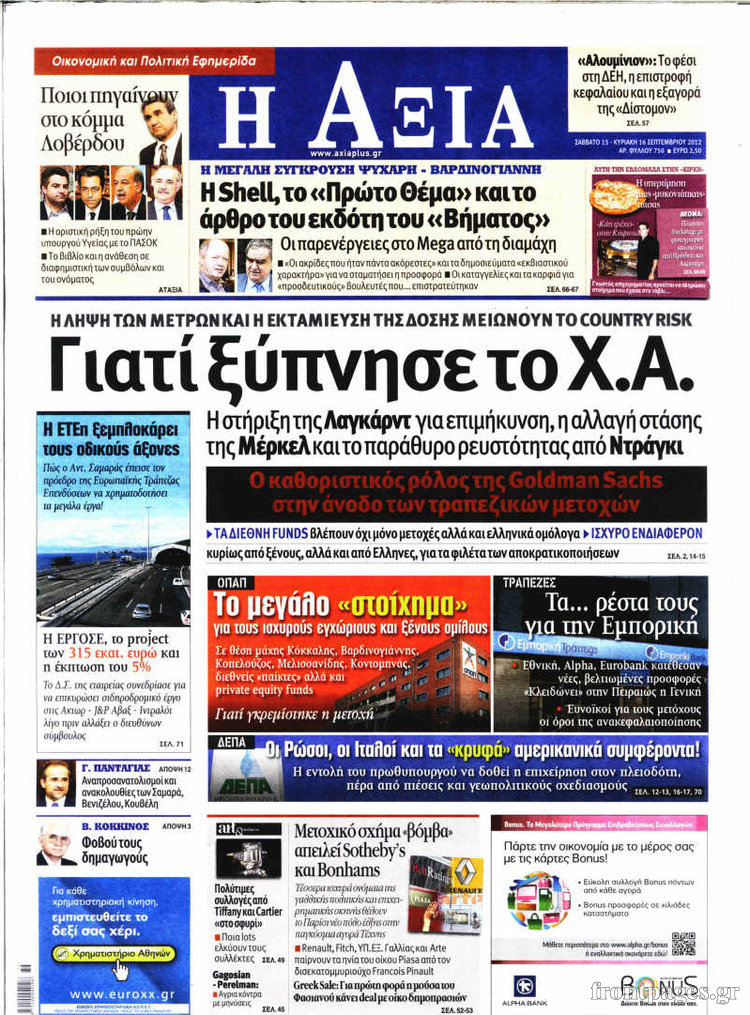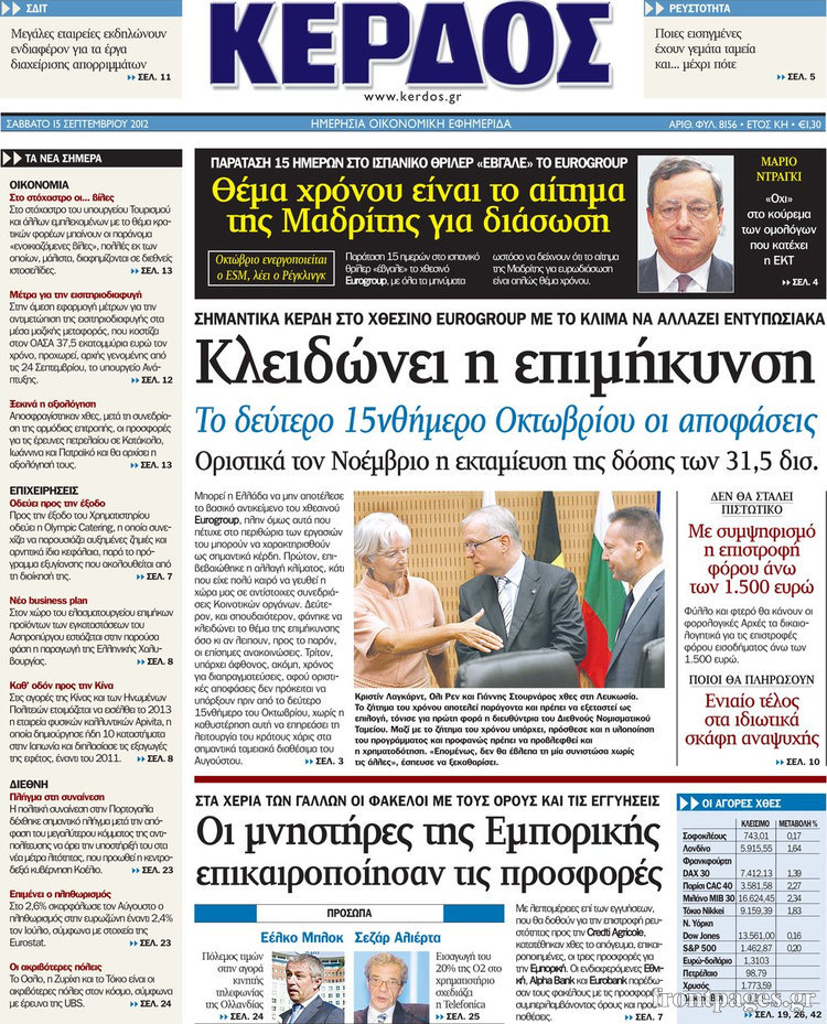 Δείτε τα πρωτοσέλιδα των οικονομικών εφημερίδων…