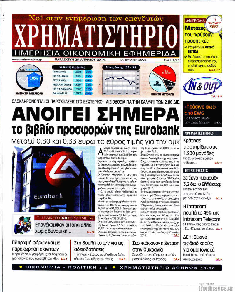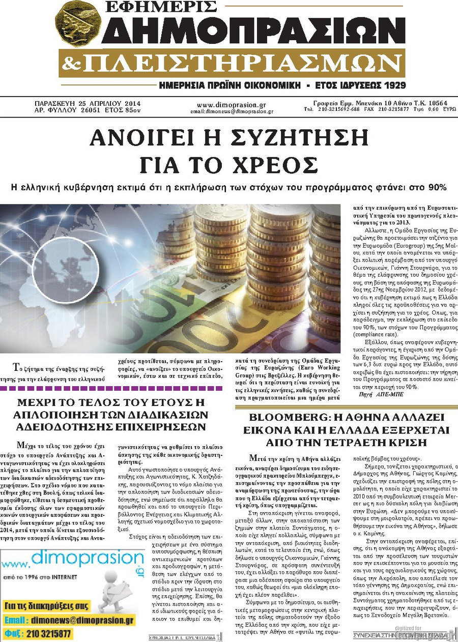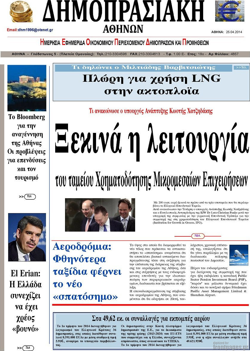 Οι oικονομικές εφημερίδες Enikos Newsroom 08:51, Παρασκευή 25 Απριλίου 2014 Media Οι oικονομικές εφημερίδες Διαβάστε τα πρωτοσέλιδα των οικονομικών εφημερίδων: ΕΦΗΜΕΡΙΔΕΣ ΟΙΚΟΝΟΜΙΚΕΣ ΕΦΗΜΕΡΙΔΕΣ ΠΡΩΤΟΣΕΛΙΔΑ Μοιράσου το: σχολίασε κι εσύ (0 σχόλια) Ακολουθήστε το enikos.gr στο Google News και μάθετε πρώτοι όλες τις ειδήσεις Δείτε όλες τις τελευταίες ειδήσεις από την Ελλάδα και τον Κόσμο στο enikos.gr Ειδήσεις Ροή Ειδήσεων 3 ώρες πριν Εκτός ευρωομάδας ΣΥΡΙΖΑ ο Νίκος Παππάς μετά την επίθεση στον δημοσιογράφο Νίκο Γιαννόπουλο – Η μήνυση και οι νέες δηλώσεις 4 ώρες πριν «Αγριεύουν» οι αγρότες: «Δεν συντρέχει λόγος συνάντησης με τον πρωθυπουργό» – Ώρα αποφάσεων στη σύσκεψη της Πέμπτης 4 ώρες πριν Κυψέλη: Χωρίς την οικογένειά της δίπλα της απολογήθηκε η 16χρονη – «Της είχε επιτεθεί κάποιος για να την βιάσει, φοβήθηκε και κυκλοφορούσε με μαχαίρι» 3 ώρες πριν Politico: Το πρόβλημα της Ευρώπης δεν είναι το Βέλγιο αλλά ο Ντόναλντ Τραμπ 5 ώρες πριν Αλεξανδρούπολη: Πολυοργανική ανεπάρκεια λόγω υποσιτισμού η αιτία θανάτου του 3χρονου αγοριού 3 ώρες πριν Μυστήριο με τεράστιες κυκλικές πέτρες 200 κιλών – Ανακαλύφθηκαν τυχαία κατά τη διάρκεια οδικών έργων και κανείς δεν ξέρει από πού προέρχονται 4 ώρες πριν Ύπνος: Ειδικός εξηγεί τον πραγματικό λόγο που ξυπνάτε στις 4 τα ξημερώματα – Ο ρόλος των ορμονών και του κιρκάδιου ρυθμού 5 ώρες πριν Αριθμολογία: Οι άνθρωποι που έχουν γεννηθεί αυτές τις 4 ημερομηνίες, είναι τρυφεροί και αγαπούν ανιδιοτελώς 17 ώρες πριν 20 χρόνια τα Χριστούγεννα ξεκινούν στα Public με μεγάλη ποικιλία σε δώρα! 9 λεπτά πριν Ρωσία: Ουκρανικές δυνάμεις έπληξαν πλοίο στο λιμάνι του Ροστόφ – Αναφορές για θύματα 25 λεπτά πριν Βρυξέλλες: Νυχτερινό… μπλόκο αγροτών μπροστά από το κτίριο της Ευρωπαϊκής Επιτροπής – Πάνω από 100 τρακτέρ απέκλεισαν την λεωφόρο 40 λεπτά πριν Euroleague: Απρόσμενη ήττα για την Μονακό του Βασίλη Σπανούλη – Η βαθμολογία μετά το τέλος της 16ης αγωνιστικής 55 λεπτά πριν Μουντιάλ 2026: Η νέα ταξιδιωτική απαγόρευση του Ντόναλντ Τραμπ πλήττει (και) τους οπαδούς Σενεγάλης – Ακτής Ελεφαντοστού 1 ώρα πριν Κυριάκος Μητσοτάκης: Στις Βρυξέλλες για την Σύνοδο Κορυφής ΕΕ και Δυτικών Βαλκανίων – Δείτε φωτογραφίες ENIKOS NETWORK Αϋπνία: Το κόλπο που θα σας βοηθήσει να κοιμηθείτε απόψε – Είναι απλό και έχει αποτέλεσμα 2,6 εκατομμύρια πολίτες έχουν ήδη εμβολιαστεί κατά της γρίπης ΕΛΣΤΑΤ: Τι δείχνουν τα νέα στοιχεία για τις ηλεκτρονικές παραγγελίες των επιχειρήσεων ΚΕΠΕ: Οι 3 διακριτές συμβολές των ΜμΕ και της μεταποίησης στην ελληνική οικονομία Χαρτογραφώντας το «σημείο χωρίς επιστροφή»: Για πρώτη φορά αποκαλύπτεται με λεπτομέρεια το ακανθώδες όριο της ατμόσφαιρας τ... Η Google καταργεί τη λειτουργία «dark web report» – Πώς θα μπορούν οι χρήστες να διαγράφουν τα δεδομένα τους περισσότερα 22:24 , Τετάρτη 17 Δεκεμβρίου 2025 Το Σπίτι Δίπλα Στο Ποτάμι: Σε κίνδυνο η υγεία του Απόστολου – Τι θα δούμε απόψε “Το Σπίτι Δίπλα στο Ποτάμι” ξετυλίγει το νήμα της ζωής των πέντε αδελφών με καταισ... 21:14 , Τετάρτη 17 Δεκεμβρίου 2025 Παιχνίδια Εκδίκησης: Θα καταφέρει ο Χρήστος να κλονίσει την εμπιστοσύνη της Μάγιας απέναντι στον Άγη; Τα «Παιχνίδια Εκδίκησης» έρχονται απόψε στις 22:30, στον Αντ1, με το τελευταίο επεισόδιο της χ... 20:57 , Τετάρτη 17 Δεκεμβρίου 2025 Άγιος Έρωτας: Η Χλόη καταθέτει εναντίον του πατέρα της και ο Χάρης αποκαλύπτει στον Κλεάνθη ότι δεν είναι ο βιολογικός του πατέρας. Γεμάτο αποκαλύψεις είναι το νέο επεισό
