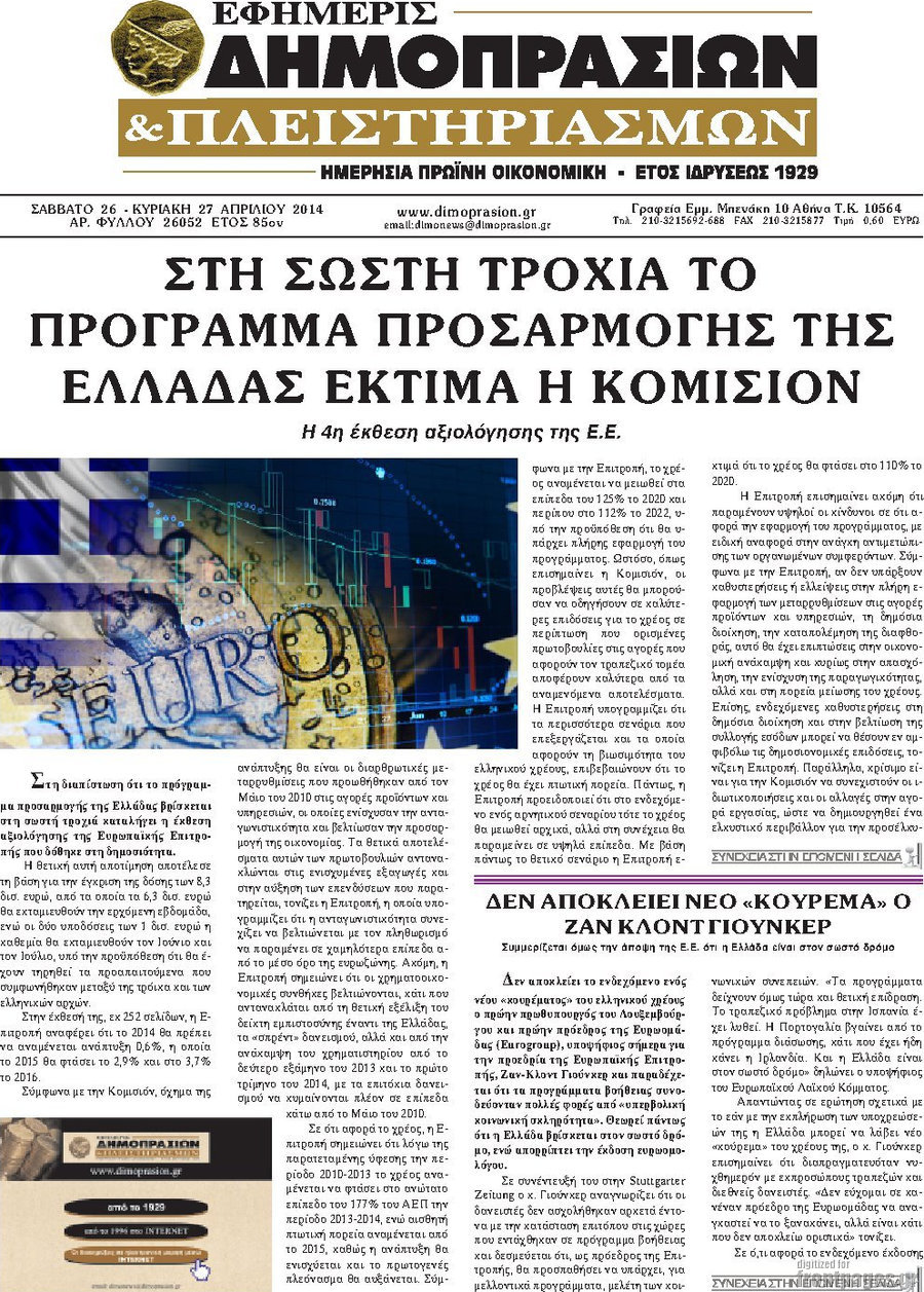 Οι οικονομικές εφημερίδες Enikos Newsroom 07:54, Σάββατο 26 Απριλίου 2014 Media Οι οικονομικές εφημερίδες Διαβάστε τα πρωτοσέλιδα των οικονομικών εφημερίδων: ΟΙΚΟΝΟΜΙΚΕΣ ΕΦΗΜΕΡΙΔΕΣ ΠΡΩΤΟΣΕΛΙΔΑ Μοιράσου το: σχολίασε κι εσύ (0 σχόλια) Ακολουθήστε το enikos.gr στο Google News και μάθετε πρώτοι όλες τις ειδήσεις Δείτε όλες τις τελευταίες ειδήσεις από την Ελλάδα και τον Κόσμο στο enikos.gr Ειδήσεις Ροή Ειδήσεων 2 ώρες πριν ΣΥΡΙΖΑ: Διαγράφεται ο ευρωβουλευτής Νίκος Παππάς μετά την μήνυση δημοσιογράφου για ξυλοδαρμό 49 λεπτά πριν Τουρκία: Επιδιώκει την επιστροφή των S-400 στη Ρωσία – Οι αμερικανικές πιέσεις 60 λεπτά πριν ΟΠΕΚΕΠΕ: Ελεύθερες με όρους η σύζυγος και η αδελφή του φερόμενου αρχηγού – Τι υποστήριξαν 3 ώρες πριν Πώς στήθηκε η επιχείρηση «Ίπαλλος» που οδήγησε στη σύλληψη του «Έλληνα Εσκομπάρ» – «Ο πόλεμος ενάντια στους εμπόρους ναρκωτικών θα συνεχιστεί» 3 ώρες πριν Κυψέλη: Στη φυλακή η 16χρονη που μαχαίρωσε συμμαθήτριά της 3 ώρες πριν Τα 3 ζώδια που θα δουν τη ζωή τους να αλλάζει ριζικά το 2026 – «Όλα γίνονται καλύτερα σταδιακά» 8 ώρες πριν «Δεν είχα κλάψει από τότε που διαγνώστηκα με καρκίνο, ώσπου ένα τηλεφώνημα με έκανε να λυγίσω» – Η συγκλονιστική εξομολόγηση ενός άνδρα 4 ώρες πριν Ο σπάνιος σεισμός που έλυσε τα χέρια των επιστημόνων – Αποκάλυψε ακριβώς όσα αναζητούσαν 10 ώρες πριν 20 χρόνια τα Χριστούγεννα ξεκινούν στα Public με μεγάλη ποικιλία σε δώρα! 7 λεπτά πριν Οι άνθρωποι που θυμούνται τα όνειρά τους, συνήθως μοιράζονται αυτά τα 6 σπάνια χαρακτηριστικά 10 λεπτά πριν ΑΑΔΕ: Καταβλήθηκε η τέταρτη δόση επιστροφής ΕΦΚ αγροτικού πετρελαίου – Οδηγίες για τη διόρθωση παραστατικών 15 λεπτά πριν Μητσοτάκης: Το γούρι με τα αρχικά του για το 2026 που έδωσε στους βουλευτές της ΝΔ – ΦΩΤΟ 20 λεπτά πριν Καβάλα – Παναθηναϊκός 1-2: Ο Ταμπόρδα έστειλε τους Πράσινους απευθείας στα προημιτελικά του Κυπέλλου Ελλάδας 24 λεπτά πριν Δημήτρης Ήμελλος: Η συγκινητική ανάρτηση της αδελφής του, για τον ένα χρόνο από τον θάνατό του – «Πήγες στον Θεό για να μας θυμίσεις…» ENIKOS NETWORK 2,6 εκατομμύρια πολίτες έχουν ήδη εμβολιαστεί κατά της γρίπης Σοβαροί κίνδυνοι από τη λάθος χορήγηση φαρμάκου για τις αιμορραγίες-Συστάσεις προς τους γιατρούς Υπουργείο Εργασίας: Ο οδικός χάρτης για την ενίσχυση του πλαισίου των Συλλογικών Διαπραγματεύσεων – Οι 5 άξονες του σχεδίου... Έρχεται νέα ενίσχυση 17.500 ευρώ από τη ΔΥΠΑ για ανέργους- Όλες οι λεπτομέρειες Χαρτογραφώντας το «σημείο χωρίς επιστροφή»: Για πρώτη φορά αποκαλύπτεται με λεπτομέρεια το ακανθώδες όριο της ατμόσφαιρας τ... Η Google καταργεί τη λειτουργία «dark web report» – Πώς θα μπορούν οι χρήστες να διαγράφουν τα δεδομένα τους περισσότερα 12:35 , Τετάρτη 17 Δεκεμβρίου 2025 Μίρκα Παπακωνσταντίνου: «Δεν ήμουν αισιόδοξη για τα νούμερα – Είμαι ρεαλίστρια» Στα γυρίσματα του εορταστικού επεισοδίου της αγαπημένης σειράς “Το Σόι Σου”, βρέθηκε η κάμερα ... 12:12 , Τετάρτη 17 Δεκεμβρίου 2025 Ακούστε την εκπομπή του Νίκου Χατζηνικολάου 17/12/2025 Ακούστε την εκπομπή του Νίκου Χατζηνικολάου στον ραδιοφωνικό σταθμό RealFm 97,8, την Τετάρτη 1... 11:35 , Τετάρτη 17 Δεκεμβρίου 2025 Home Alone: Το σπίτι της ταινίας θα ανακαινιστεί – Επιστροφή στην αισθητική της δεκαετίας του ’90 Οι νέοι ιδιοκτήτες του πραγματικού σπιτιού που παρουσιάζεται στην κλασική ταινία του 1990 «Hom... 11:25 , Τετάρτη 17 Δεκεμβρίου 2025 Grand Hotel: Απόψε το τελευταίο επεισόδιο της χρονιάς – Όλα τα μυστικά μένουν εδώ Το τελευταίο επεισόδιο της χρονιάς τη