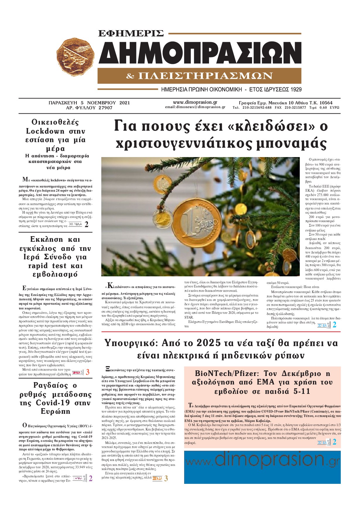 Οι οικονομικές εφημερίδες 5/11/2021 Διονύσης Νίκκας 06:50, Παρασκευή 05 Νοεμβρίου 2021 Media Διαβάστε τα πρωτοσέλιδα από τις οικονομικές εφημερίδες… ΟΙΚΟΝΟΜΙΚΕΣ ΕΦΗΜΕΡΙΔΕΣ Μοιράσου το: σχολίασε κι εσύ (0 σχόλια) Ακολουθήστε το enikos.gr στο Google News και μάθετε πρώτοι όλες τις ειδήσεις Δείτε όλες τις τελευταίες ειδήσεις από την Ελλάδα και τον Κόσμο στο enikos.gr Ειδήσεις Ροή Ειδήσεων 2 ώρες πριν LIVE από Λοριάν: Η ύψωση της ελληνικής σημαίας στην πρώτη φρεγάτα FDI Belharra ΚΙΜΩΝ 2 ώρες πριν Στην Ευελπίδων ο 22χρονος που καταγγέλλει τον Γιώργο Μαζωνάκη για ασελγείς πράξεις – «Έχουμε εμπιστοσύνη στη Δικαιοσύνη, καμία εκβίαση» λέει ο δικηγόρος του 1 ώρα πριν Γαλλία: Η οργή των αγροτών – Αναμένεται η ομιλία του Μακρόν, τα τρακτέρ συγκεντρώνονται μαζικά στις Βρυξέλλες 4 ώρες πριν Συναγερμός και στην Ελλάδα για τη «σούπερ γρίπη»: Πόσο σοβαρή είναι και ποιοι θεωρούνται πιο ευάλωτοι – 3 ειδικοί μιλούν στο enikos.gr 1 ώρα πριν Χριστουγεννιάτικο τραπέζι: Πόσο θα κοστίσει φέτος – Σε ποια είδη τραβούν… την ανηφόρα οι τιμές 5 ώρες πριν Τα 4 ζώδια που λαμβάνουν ένα ισχυρό σημάδι από το σύμπαν – «Αποκαλύπτεται κάτι που μπορεί να αλλάξει τη ζωή μας» 6 ώρες πριν Η σύζυγός του παραπονιέται για τα χρήματα που της δίνει για ψώνια κάθε μήνα – «Λέει ότι νιώθει φτωχή και της είπα να βρει δουλειά» 4 ώρες πριν Αν κάνετε συνεχώς αυτά τα 8 πράγματα με τα κατοικίδιά σας, σας λείπει η ανθρώπινη επαφή 1 ημέρα πριν 20 χρόνια τα Χριστούγεννα ξεκινούν στα Public με μεγάλη ποικιλία σε δώρα! 2 λεπτά πριν Δίκη Βαλυράκη: Καταθέτει ο βασικός αυτόπτης μάρτυρας – «Δέχτηκα πιέσεις να μη μιλήσω, πήγα να ψωνίσω και αυτοκίνητο με χτύπησε στο πόδι» 7 λεπτά πριν Αυτό που κρύβεται κάτω από τη Γροιλανδία θα μπορούσε να ανατρέψει όσα γνωρίζουμε για την άνοδο της στάθμης των θαλασσών 12 λεπτά πριν Parthenis x Papazó & Akylas powered by ΣΚΡΑΤΣ: Το πιο καλαίσθητο act του MadWalk 2025 17 λεπτά πριν Πηγές ΣΥΡΙΖΑ: Η ΝΔ απαξιώνει την Εξεταστική και επιμένει στη συγκάλυψη – Ο επικαιροποιημένος κατάλογος προτεινόμενων μαρτύρων 22 λεπτά πριν Debate Οικονόμου – Σπυρόπουλου στον Realfm 97,8 για τον ΟΠΕΚΕΠΕ, τις αγροτικές κινητοποιήσεις και τον πρωτογενή τομέα ENIKOS NETWORK 100 χρόνια ΠΙΣ: Ένας αιώνας προσφοράς στην Ιατρική και την κοινωνία Ένα ποτήρι την ημέρα από αυτόν τον χυμό μειώνει τη χοληστερίνη, τη φλεγμονή και την πίεση ΑΑΔΕ: Έρχεται το… ΔΕΟΣ – Όλες οι λεπτομέρειες για τον ενιαίο ελεγκτικό μηχανισμό για το οικονομικό έγκλημα e-ΕΦΚΑ: Μέχρι πότε πρέπει να γίνει επιλογή ασφαλιστικής κατηγορίας για το 2026 – Τι πρέπει να γνωρίζετε Χαρτογραφώντας το «σημείο χωρίς επιστροφή»: Για πρώτη φορά αποκαλύπτεται με λεπτομέρεια το ακανθώδες όριο της ατμόσφαιρας τ... Η Google καταργεί τη λειτουργία «dark web report» – Πώς θα μπορούν οι χρήστες να διαγράφουν τα δεδομένα τους περισσότερα 08:00 , Πέμπτη 18 Δεκεμβρίου 2025 Την Κυριακή με τη Realnews: Δωροεπιταγή 10€ Δωροεπιταγή αξίας 10€ για αγορές άνω των 60€ από τα πολυκαταστήματα FactoryOutlet H προσφορά ι... 07:50 , Πέμπτη 18 Δεκεμβρίου 2025 «Το σόι σου»: Backstage στα γυρίσματα για το εορταστικό επεισόδιο «Το σόι σου» φορά τα γιορτινά του για τα Χριστούγεννα και η Όλγα Λαφαζάνη, με την κάμερα του «... 07:36 , Πέμπτη 18 Δεκεμβρίου 2025 Οι αθλητικές μεταδόσεις 18/12/2025 – Πού θα δείτε τον αγώνα της ΑΕΚ με την Κραϊόβα για το Conference League Τα ματς ΑΕΚ – Ουνιβερσιτάτεα Κραϊόβα για το Conference League και Παναθηναϊκός – Χάποελ Τελ Αβ... 05:48 , Πέμπτη 18 Δεκεμβρίου 2025 Οι οικονομικές εφημερίδες 18/12/2025 Διαβάστε τ
