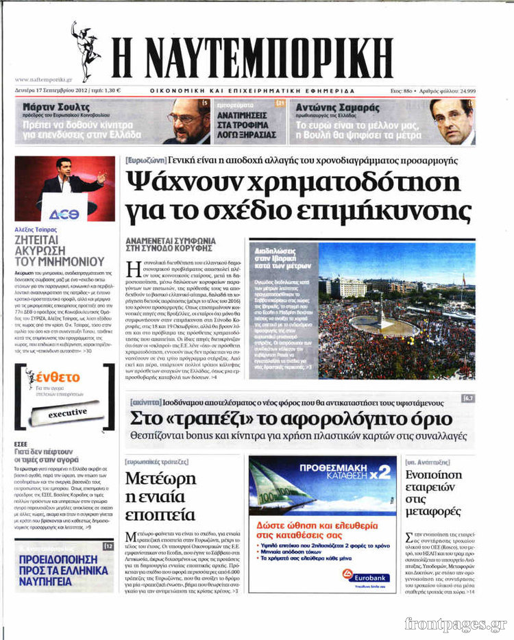 Διαβάστε τα πρωτοσέλιδα των οικονομικών εφημερίδων