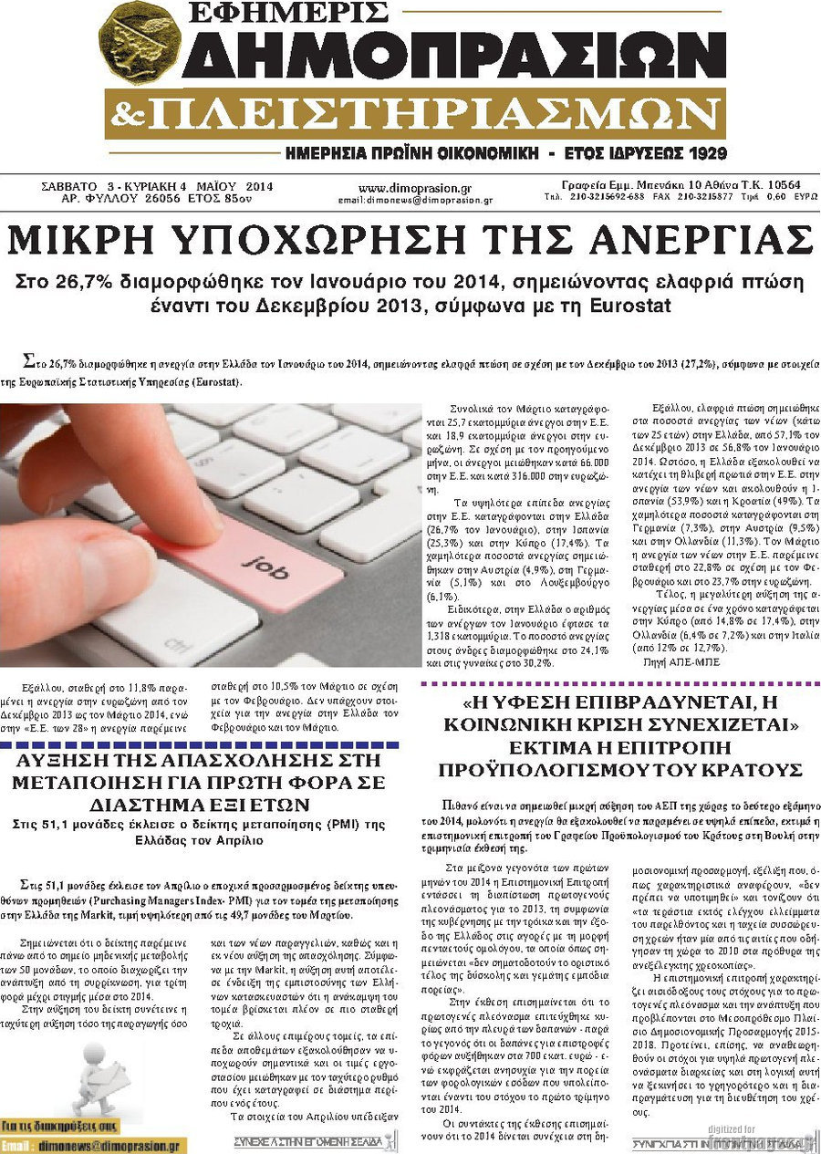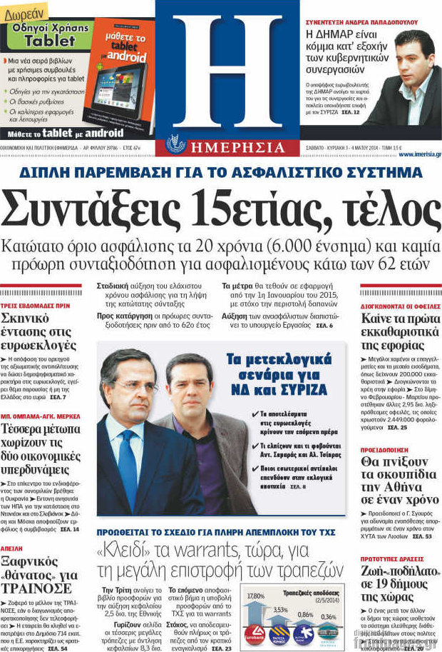 Οι οικονομικές εφημερίδες Enikos Newsroom 09:49, Σάββατο 03 Μαΐου 2014 Media Οι οικονομικές εφημερίδες Διαβάστε τα πρωτοσέλιδα των οικονομικών εφημερίδων: ΟΙΚΟΝΟΜΙΚΕΣ ΕΦΗΜΕΡΙΔΕΣ ΠΡΩΤΟΣΕΛΙΔΑ Μοιράσου το: σχολίασε κι εσύ (0 σχόλια) Ακολουθήστε το enikos.gr στο Google News και μάθετε πρώτοι όλες τις ειδήσεις Δείτε όλες τις τελευταίες ειδήσεις από την Ελλάδα και τον Κόσμο στο enikos.gr Ειδήσεις Ροή Ειδήσεων 54 λεπτά πριν Αυξάνουν την πίεση προς την κυβέρνηση οι αγρότες: Κλείνουν παρακαμπτήριους και ανοίγουν διόδια – Τι θα γίνει τις γιορτές 44 λεπτά πριν Φοινικούντα: Το Σάββατο απολογείται ο 30χρονος γιος γνωστού επιχειρηματία της Πλάκας που παραδόθηκε – Όσα είπε στους αστυνομικούς και ο ρόλος του στο έγκλημα 26 λεπτά πριν Μπορεί ο Μαδούρο να αντέξει τον αποκλεισμό του Τραμπ; Τι θα χρειαστεί η Ουάσινγκτον για να τον ανατρέψει 2 ώρες πριν Δημοσκόπηση Metron Analysis: Στις 10 μονάδες η διαφορά ΝΔ-ΠΑΣΟΚ, στην 3η θέση η Πλεύση Ελευθερίας – 8 στους 10 στηρίζουν τον αγώνα των αγροτών 2 ώρες πριν Πρίγκιπας Ουίλιαμ – Κέιτ: Η νέα οικογενειακή φωτογραφία για τις Χριστουγεννιάτικες κάρτες του 2025 2 ώρες πριν Ύπνος: Η απλή βραδινή ρουτίνα για να προστατεύσετε τα μαλλιά σας από το κρύο κατά τη διάρκεια του χειμώνα 3 ώρες πριν Manifesting: Πώς να συναντήσετε τον σύντροφο της ζωής σας, ανάλογα με τον μήνα γέννησής σας 2 ημέρες πριν 20 χρόνια τα Χριστούγεννα ξεκινούν στα Public με μεγάλη ποικιλία σε δώρα! 30 λεπτά πριν Αρχαιολόγοι ανακάλυψαν ρωμαϊκά τεχνουργήματα από μια πόλη που δεν υπήρξε ποτέ – Τα τρία εντυπωσιακά κτίρια και ο αμφορέας με τις… σαρδέλες 11 λεπτά πριν Παναθηναϊκός – Χάποελ Τελ Αβίβ 93-82: Με… φόρα από την Κωνσταντινούπολη 26 λεπτά πριν Μπορεί ο Μαδούρο να αντέξει τον αποκλεισμό του Τραμπ; Τι θα χρειαστεί η Ουάσινγκτον για να τον ανατρέψει 30 λεπτά πριν Αρχαιολόγοι ανακάλυψαν ρωμαϊκά τεχνουργήματα από μια πόλη που δεν υπήρξε ποτέ – Τα τρία εντυπωσιακά κτίρια και ο αμφορέας με τις… σαρδέλες 32 λεπτά πριν Στο ΟΑΚΑ για το «Παναθηναϊκός – Χάποελ» η Κίμπερλι Γκίλφοϊλ – ΦΩΤΟ 39 λεπτά πριν Ούρσουλα φον ντερ Λάιεν: Μετατίθεται για τον Ιανουάριο η υπογραφή της εμπορικής συμφωνίας «ΕΕ-MERCOSUR» ENIKOS NETWORK Σε περίοδο αυξημένης δραστηριότητας η γρίπη στην Ελλάδα-Μέτρα προστασίας από τον ΕΟΔΥ Σκέφτεστε συνέχεια συζητήσεις που έχετε κάνει; Τι σημαίνει αυτό, σύμφωνα με ειδικό Στεγαστικό: Τι λέει η ΠΟΜΙΔΑ για τα νέα μέτρα που ανακοίνωσε ο Κυριάκος Μητσοτάκης Λαγκάρντ: Αισιόδοξη για την ανάπτυξη της Ευρωζώνης, αβέβαιη για τον πληθωρισμό Χαρτογραφώντας το «σημείο χωρίς επιστροφή»: Για πρώτη φορά αποκαλύπτεται με λεπτομέρεια το ακανθώδες όριο της ατμόσφαιρας τ... Η Google καταργεί τη λειτουργία «dark web report» – Πώς θα μπορούν οι χρήστες να διαγράφουν τα δεδομένα τους περισσότερα 17:45 , Πέμπτη 18 Δεκεμβρίου 2025 ROUK ZOUK: Εορταστικό επεισόδιο με καλεσμένους τους πρωταγωνιστές του «Γιατί ρε πατέρα» Το Σάββατο 20 Δεκεμβρίου στις 21:00, η Ζέτα Μακρυπούλια υποδέχεται εκλεκτούς ηθοποιούς που όλο... 17:20 , Πέμπτη 18 Δεκεμβρίου 2025 Άγιος έρωτας: Η Χριστίνα εξομολογείται στον πατέρα Νικόλαο, απόψε στις 21:00 στον Alpha Η Νότα αποφασίζει να εκδικηθεί τον Πέτρο και τον Στέφανο, για χάρη του Λούη, όμως τα πράγματα ... 16:50 , Πέμπτη 18 Δεκεμβρίου 2025 Να μ’ αγαπάς: Ζωή και Φωτεινή συμφιλιώνονται ως μάνα με κόρη, απόψε στις 20:00 Η ταυτότητα του Άγγελου αποκαλύπτεται στο νέο επεισόδιο της σειράς “Να μ’ αγαπάς... 15:52 , Πέμπτη 18 Δεκεμβρίου 2025 Το Σπίτι Δίπλα Στο Ποτάμι: Το 