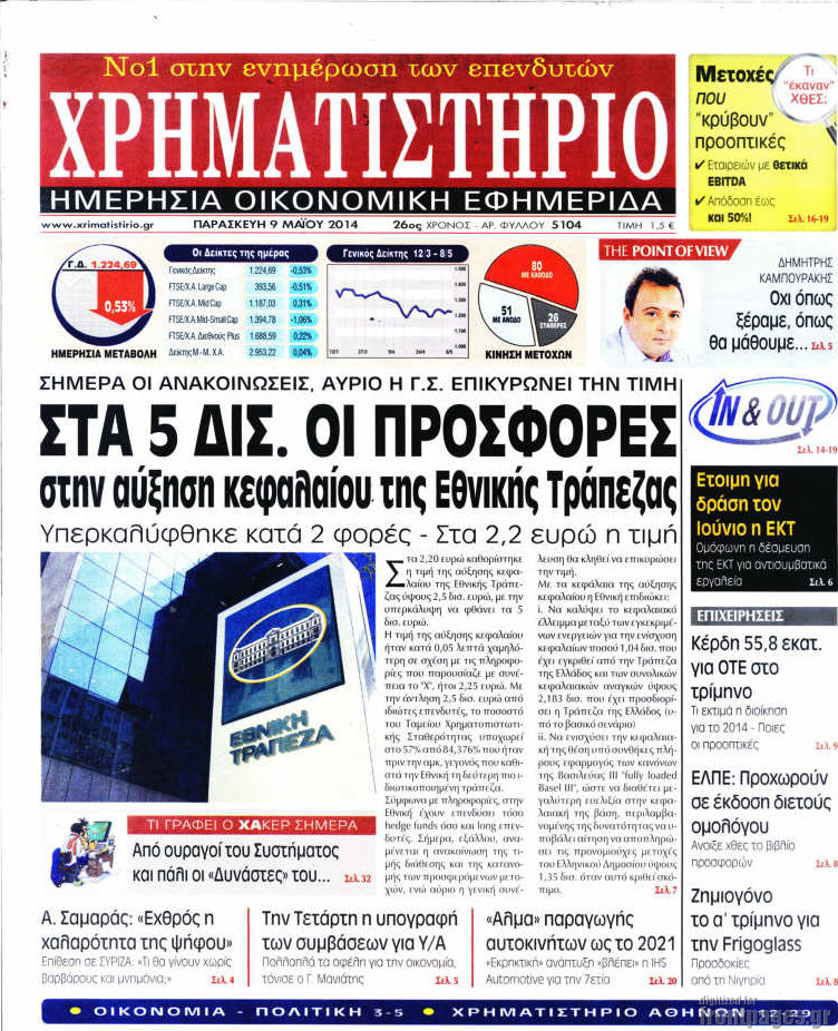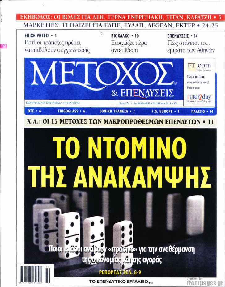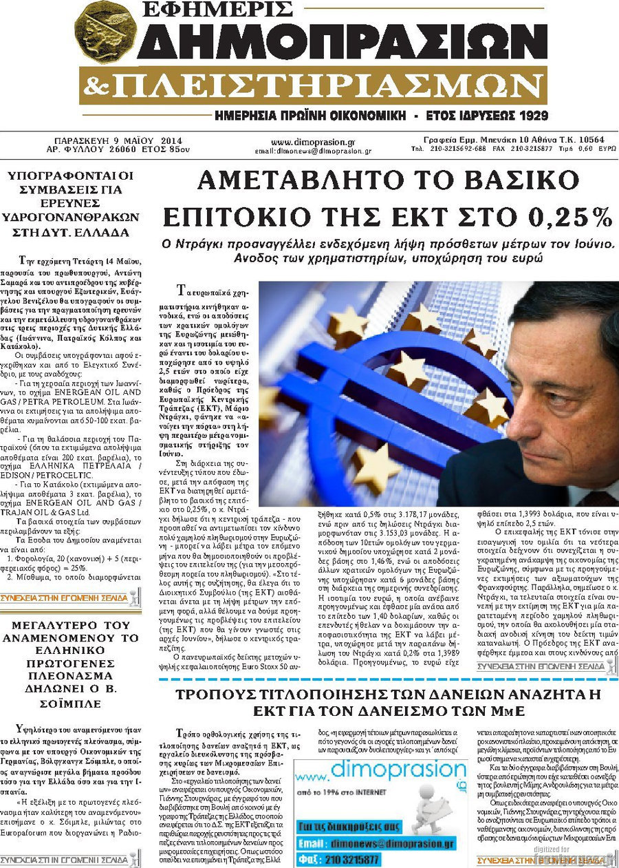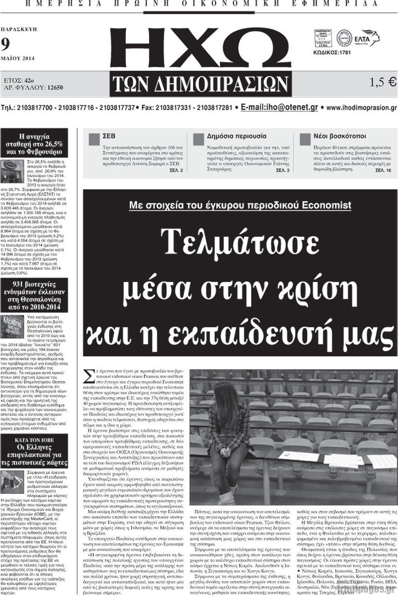 Οι oικονομικές εφημερίδες Enikos Newsroom 08:58, Παρασκευή 09 Μαΐου 2014 Media Οι oικονομικές εφημερίδες Διαβάστε τα πρωτοσέλιδα των οικονομικών εφημερίδων: ΕΦΗΜΕΡΙΔΕΣ ΟΙΚΟΝΟΜΙΚΕΣ ΕΦΗΜΕΡΙΔΕΣ ΠΡΩΤΟΣΕΛΙΔΑ Μοιράσου το: σχολίασε κι εσύ (0 σχόλια) Ακολουθήστε το enikos.gr στο Google News και μάθετε πρώτοι όλες τις ειδήσεις Δείτε όλες τις τελευταίες ειδήσεις από την Ελλάδα και τον Κόσμο στο enikos.gr Ειδήσεις Ροή Ειδήσεων 5 λεπτά πριν Φοροδιαφυγή: Ποιοι φορολογούμενοι κινδυνεύουν να πληρώσουν «τσουχτερά» πρόστιμα 8 ώρες πριν Εκτός ευρωομάδας ΣΥΡΙΖΑ ο Νίκος Παππάς μετά την επίθεση στον δημοσιογράφο Νίκο Γιαννόπουλο – Η μήνυση και οι νέες δηλώσεις 9 ώρες πριν «Αγριεύουν» οι αγρότες: «Δεν συντρέχει λόγος συνάντησης με τον πρωθυπουργό» – Ώρα αποφάσεων στη σύσκεψη της Πέμπτης 9 ώρες πριν Κυψέλη: Χωρίς την οικογένειά της δίπλα της απολογήθηκε η 16χρονη – «Της είχε επιτεθεί κάποιος για να την βιάσει, φοβήθηκε και κυκλοφορούσε με μαχαίρι» 8 ώρες πριν Politico: Το πρόβλημα της Ευρώπης δεν είναι το Βέλγιο αλλά ο Ντόναλντ Τραμπ 1 ώρα πριν Καούρα: Το μπαχαρικό που είναι «εξίσου αποτελεσματικό» με την ομεπραζόλη, σύμφωνα με ειδικούς 2 ώρες πριν Τα ζώδια σήμερα, Πέμπτη 18 Δεκεμβρίου: Λέοντες, η καρδιά σας θέλει να εκφραστεί 8 ώρες πριν Μυστήριο με τεράστιες κυκλικές πέτρες 200 κιλών – Ανακαλύφθηκαν τυχαία κατά τη διάρκεια οδικών έργων και κανείς δεν ξέρει από πού προέρχονται 22 ώρες πριν 20 χρόνια τα Χριστούγεννα ξεκινούν στα Public με μεγάλη ποικιλία σε δώρα! 2 λεπτά πριν Καιρός: Ηλιοφάνεια σήμερα με παροδικές νεφώσεις – Αναλυτική πρόγνωση ανά περιοχή 5 λεπτά πριν Φοροδιαφυγή: Ποιοι φορολογούμενοι κινδυνεύουν να πληρώσουν «τσουχτερά» πρόστιμα 17 λεπτά πριν Εορτολόγιο: Ποιοι γιορτάζουν σήμερα 18 Δεκεμβρίου 28 λεπτά πριν Επιχειρήσεις: Έρχονται νέα μέτρα φορολογικών ελαφρύνσεων – Τα σχέδια για την προκαταβολή φόρου και το τέλος επιτηδεύματος 36 λεπτά πριν ΗΠΑ: Οριστική άρση κυρώσεων κατά της Συρίας – Ανοίγει ο δρόμος για επενδύσεις ENIKOS NETWORK Μπορείτε να εντοπίσετε το ποντικάκι που κρύβεται πίσω από όλα τα μανιτάρια; Μόνο όσοι έχουν τα μάτια γερακιού μπορούν να λύ... Το «λουλούδι σκαντζόχοιρος» που μπορεί να ενισχύσει το ανοσοποιητικό, να μειώσει τη φλεγμονή και να ρυθμίσει το σάκχαρο Φοροδιαφυγή: Ποιοι φορολογούμενοι κινδυνεύουν να πληρώσουν «τσουχτερά» πρόστιμα ΕΛΣΤΑΤ: Τι δείχνουν τα νέα στοιχεία για τις ηλεκτρονικές παραγγελίες των επιχειρήσεων Χαρτογραφώντας το «σημείο χωρίς επιστροφή»: Για πρώτη φορά αποκαλύπτεται με λεπτομέρεια το ακανθώδες όριο της ατμόσφαιρας τ... Η Google καταργεί τη λειτουργία «dark web report» – Πώς θα μπορούν οι χρήστες να διαγράφουν τα δεδομένα τους περισσότερα 05:48 , Πέμπτη 18 Δεκεμβρίου 2025 Οι οικονομικές εφημερίδες 18/12/2025 Διαβάστε τα πρωτοσέλιδα από τις οικονομικές εφημερίδες, σήμερα 18/12/2025. 05:43 , Πέμπτη 18 Δεκεμβρίου 2025 Οι αθλητικές εφημερίδες 18/12/2025 Διαβάστε τα πρωτοσέλιδα από τις αθλητικές εφημερίδες, σήμερα 18/12/2025. 05:38 , Πέμπτη 18 Δεκεμβρίου 2025 Οι πολιτικές εφημερίδες 18/12/2025 Διαβάστε τα πρωτοσέλιδα από τις πολιτικές εφημερίδες, σήμερα 18/12/2025. 05:22 , Πέμπτη 18 Δεκεμβρίου 2025 Το Ποντίκι σήμερα Πέμπτη 18/12/2025 Διαβάστε το πρωτοσέλιδο της εφημερίδας «Το Ποντίκι» σήμερα 18/12/2025. ΤΕΛΕΥΤΑΙΕΣ ΕΙΔΗΣΕΙΣ 2 λεπτά πριν Καιρός: Ηλιοφάνεια σήμερα με παροδικές νεφώσεις –... 5 λεπτά πριν Φοροδιαφυγή: Ποιοι φορολογούμενοι κινδυνεύουν να... 17 λεπτά πριν Εορτολόγιο: Ποιοι γιορτάζουν σήμερα 18 Δεκεμβρίου