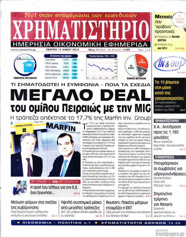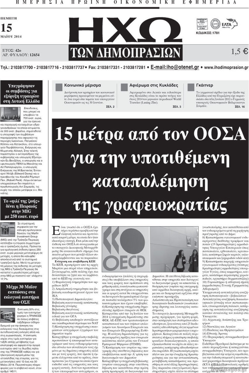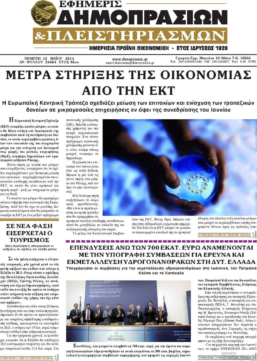 Οι oικονομικές εφημερίδες Enikos Newsroom 08:50, Πέμπτη 15 Μαΐου 2014 Media Οι oικονομικές εφημερίδες Διαβάστε τα πρωτοσέλιδα των οικονομικών εφημερίδων: ΕΦΗΜΕΡΙΔΕΣ ΟΙΚΟΝΟΜΙΚΕΣ ΕΦΗΜΕΡΙΔΕΣ ΠΡΩΤΟΣΕΛΙΔΑ Μοιράσου το: σχολίασε κι εσύ (0 σχόλια) Ακολουθήστε το enikos.gr στο Google News και μάθετε πρώτοι όλες τις ειδήσεις Δείτε όλες τις τελευταίες ειδήσεις από την Ελλάδα και τον Κόσμο στο enikos.gr Ειδήσεις Ροή Ειδήσεων 8 ώρες πριν Μητσοτάκης: Αναγκαία η μεταρρύθμιση του πρωτογενούς τομέα – Τα 6 νέα μέτρα για το στεγαστικό και οι αναφορές σε «Ιθάκη» και «πολιτικούς του καναπέ» 8 ώρες πριν Δάνεια σε ελβετικό φράγκο: Τα βασικά σημεία της ρύθμισης – ανάσας για 40.000 δανειολήπτες – Αναλυτικός οδηγός με ερωτήσεις και απαντήσεις 7 ώρες πριν Κυψέλη: Εξιτήριο πήρε η 14χρονη μαθήτρια που μαχαιρώθηκε από την 16χρονη σε σχολείο – «Θέλω να βοηθήσω το παιδί, έχει μπλέξει με κακές παρέες» 7 ώρες πριν Τραμπ: Γιατί κατέθεσε τώρα την αγωγή κατά του BBC – Πώς η κίνησή του εξυπηρετεί το νέο δόγμα του για «αντίσταση» στην Ευρώπη, υπέρ των συντηρητικών 8 ώρες πριν ΟΠΕΚΕΠΕ – Παράνομες επιδοτήσεις: Ελεύθεροι με περιοριστικούς όρους και οι 7 κατηγορούμενοι που απολογήθηκαν σήμερα 7 ώρες πριν Ανακαλύφθηκε βυθισμένη πέτρινη κατασκευή ανοιχτά της Κριμαίας – Αποτελεί μέρος αρχαίας ελληνικής αποικίας 8 ώρες πριν Ύπνος: Αυτό μπορεί να είναι το χειρότερο λάθος για το βιολογικό ρολόι σας, σύμφωνα με ειδικό 9 ώρες πριν Αριθμολογία: Οι άνθρωποι που έχουν γεννηθεί αυτές τις 3 ημερομηνίες, προσελκύουν μεγάλη τύχη πριν από το τέλος του 2025 11 ώρες πριν Οι 7 συμπεριφορές που μαρτυρούν ότι ένας άνδρας επενδύει μακροπρόθεσμα σε μια σχέση 20 δευτερόλεπτα πριν Υγεία του εντέρου: Προσθέστε 1 superfood στα scrambled eggs για καλύτερη πέψη και ευεξία 7 λεπτά πριν Σαν σήμερα 17 Δεκεμβρίου: Τα σημαντικότερα γεγονότα της ημέρας 13 λεπτά πριν Οι οικονομικές εφημερίδες 17/12/2025 18 λεπτά πριν Οι αθλητικές εφημερίδες 17/12/2025 23 λεπτά πριν Οι πολιτικές εφημερίδες 17/12/2025 ENIKOS NETWORK Αίτημα ΙΣΑ για την εξαίρεση των προσωπικών γιατρών από τις κατ’ οίκον επισκέψεις Η σκανδιναβική μέθοδος στον ύπνο που μπορεί να σώσει έναν γάμο Πιερρακάκης: Ο προϋπολογισμός συμβάλλει ουσιαστικά στην ενίσχυση της αγοραστικής δύναμης της πλειονότητας των εργαζομένων e-ΕΦΚΑ: Παρατείνεται η προθεσμία για την υποβολή ΑΠΔ – Ποιους αφορά Σύγχρονος Νοστράδαμος: Προειδοποιεί για «μεγάλο γεγονός» τους επόμενους μήνες που θα συγκλονίσει τη Βρετανία και τον κόσμο Τεστ παρατηρητικότητας: Μπορείτε να βρείτε τις 3 διαφορές στις εικόνες με έναν πιγκουίνο σε 14 δευτερόλεπτα περισσότερα 05:48 , Τετάρτη 17 Δεκεμβρίου 2025 Οι οικονομικές εφημερίδες 17/12/2025 Διαβάστε τα πρωτοσέλιδα από τις οικονομικές εφημερίδες, σήμερα 17/12/2025. 05:43 , Τετάρτη 17 Δεκεμβρίου 2025 Οι αθλητικές εφημερίδες 17/12/2025 Διαβάστε τα πρωτοσέλιδα από τις αθλητικές εφημερίδες, σήμερα 17/12/2025. 05:38 , Τετάρτη 17 Δεκεμβρίου 2025 Οι πολιτικές εφημερίδες 17/12/2025 Διαβάστε τα πρωτοσέλιδα από τις πολιτικές εφημερίδες, σήμερα 17/12/2025. 20:06 , Τρίτη 16 Δεκεμβρίου 2025 Ο ΣΚΑΙ καταγγέλλει τον ΕΚΚΟΜΕΔ Επιστολή με την οποία καταγράφει την έντονη διαμαρτυρία του προς τον διευθύνοντα σύμβουλο του... ΤΕΛΕΥΤΑΙΕΣ ΕΙΔΗΣΕΙΣ 7 λεπτά πριν Σαν σήμερα 17 Δεκεμβρίου: Τα σημαντικότερα γεγονότα... 13 λεπτά πριν Οι οικονομικές εφημερίδες 17/12/2025 18 λεπτά πριν Οι αθλητικές εφημερίδες 17/12/2025 23 λεπτά πριν Οι πολιτικές εφημερίδες 17/12/2025 31 λεπτά πριν Τα ζώδια σήμερα, Τετάρτη 17 Δεκεμβρίου: Κ