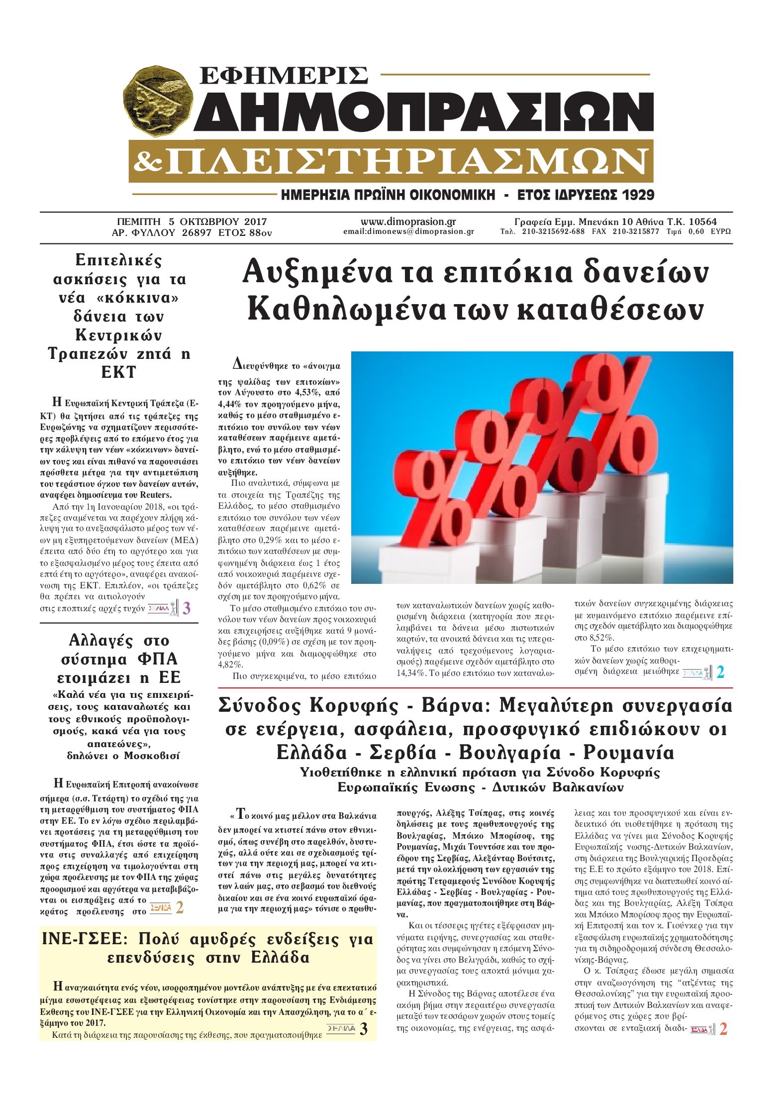 Oι οικονομικές εφημερίδες 5/10/2017 Enikos Newsroom 07:14, Πέμπτη 05 Οκτωβρίου 2017 Media Διαβάστε τα σημερινά πρωτοσέλιδα των οικονομικών εφημερίδων: ΟΙΚΟΝΟΜΙΚΕΣ ΕΦΗΜΕΡΙΔΕΣ ΠΡΩΤΟΣΕΛΙΔΑ Μοιράσου το: σχολίασε κι εσύ (0 σχόλια) Ακολουθήστε το enikos.gr στο Google News και μάθετε πρώτοι όλες τις ειδήσεις Δείτε όλες τις τελευταίες ειδήσεις από την Ελλάδα και τον Κόσμο στο enikos.gr Ειδήσεις Ροή Ειδήσεων 3 λεπτά πριν Φοροδιαφυγή: Ποιοι φορολογούμενοι κινδυνεύουν να πληρώσουν «τσουχτερά» πρόστιμα 8 ώρες πριν Εκτός ευρωομάδας ΣΥΡΙΖΑ ο Νίκος Παππάς μετά την επίθεση στον δημοσιογράφο Νίκο Γιαννόπουλο – Η μήνυση και οι νέες δηλώσεις 9 ώρες πριν «Αγριεύουν» οι αγρότες: «Δεν συντρέχει λόγος συνάντησης με τον πρωθυπουργό» – Ώρα αποφάσεων στη σύσκεψη της Πέμπτης 9 ώρες πριν Κυψέλη: Χωρίς την οικογένειά της δίπλα της απολογήθηκε η 16χρονη – «Της είχε επιτεθεί κάποιος για να την βιάσει, φοβήθηκε και κυκλοφορούσε με μαχαίρι» 8 ώρες πριν Politico: Το πρόβλημα της Ευρώπης δεν είναι το Βέλγιο αλλά ο Ντόναλντ Τραμπ 1 ώρα πριν Καούρα: Το μπαχαρικό που είναι «εξίσου αποτελεσματικό» με την ομεπραζόλη, σύμφωνα με ειδικούς 2 ώρες πριν Τα ζώδια σήμερα, Πέμπτη 18 Δεκεμβρίου: Λέοντες, η καρδιά σας θέλει να εκφραστεί 8 ώρες πριν Μυστήριο με τεράστιες κυκλικές πέτρες 200 κιλών – Ανακαλύφθηκαν τυχαία κατά τη διάρκεια οδικών έργων και κανείς δεν ξέρει από πού προέρχονται 22 ώρες πριν 20 χρόνια τα Χριστούγεννα ξεκινούν στα Public με μεγάλη ποικιλία σε δώρα! 24 δευτερόλεπτα πριν Καιρός: Ηλιοφάνεια σήμερα με παροδικές νεφώσεις – Αναλυτική πρόγνωση ανά περιοχή 3 λεπτά πριν Φοροδιαφυγή: Ποιοι φορολογούμενοι κινδυνεύουν να πληρώσουν «τσουχτερά» πρόστιμα 15 λεπτά πριν Εορτολόγιο: Ποιοι γιορτάζουν σήμερα 18 Δεκεμβρίου 27 λεπτά πριν Επιχειρήσεις: Έρχονται νέα μέτρα φορολογικών ελαφρύνσεων – Τα σχέδια για την προκαταβολή φόρου και το τέλος επιτηδεύματος 34 λεπτά πριν ΗΠΑ: Οριστική άρση κυρώσεων κατά της Συρίας – Ανοίγει ο δρόμος για επενδύσεις ENIKOS NETWORK Μπορείτε να εντοπίσετε το ποντικάκι που κρύβεται πίσω από όλα τα μανιτάρια; Μόνο όσοι έχουν τα μάτια γερακιού μπορούν να λύ... Το «λουλούδι σκαντζόχοιρος» που μπορεί να ενισχύσει το ανοσοποιητικό, να μειώσει τη φλεγμονή και να ρυθμίσει το σάκχαρο Φοροδιαφυγή: Ποιοι φορολογούμενοι κινδυνεύουν να πληρώσουν «τσουχτερά» πρόστιμα ΕΛΣΤΑΤ: Τι δείχνουν τα νέα στοιχεία για τις ηλεκτρονικές παραγγελίες των επιχειρήσεων Χαρτογραφώντας το «σημείο χωρίς επιστροφή»: Για πρώτη φορά αποκαλύπτεται με λεπτομέρεια το ακανθώδες όριο της ατμόσφαιρας τ... Η Google καταργεί τη λειτουργία «dark web report» – Πώς θα μπορούν οι χρήστες να διαγράφουν τα δεδομένα τους περισσότερα 05:48 , Πέμπτη 18 Δεκεμβρίου 2025 Οι οικονομικές εφημερίδες 18/12/2025 Διαβάστε τα πρωτοσέλιδα από τις οικονομικές εφημερίδες, σήμερα 18/12/2025. 05:43 , Πέμπτη 18 Δεκεμβρίου 2025 Οι αθλητικές εφημερίδες 18/12/2025 Διαβάστε τα πρωτοσέλιδα από τις αθλητικές εφημερίδες, σήμερα 18/12/2025. 05:38 , Πέμπτη 18 Δεκεμβρίου 2025 Οι πολιτικές εφημερίδες 18/12/2025 Διαβάστε τα πρωτοσέλιδα από τις πολιτικές εφημερίδες, σήμερα 18/12/2025. 05:22 , Πέμπτη 18 Δεκεμβρίου 2025 Το Ποντίκι σήμερα Πέμπτη 18/12/2025 Διαβάστε το πρωτοσέλιδο της εφημερίδας «Το Ποντίκι» σήμερα 18/12/2025. ΤΕΛΕΥΤΑΙΕΣ ΕΙΔΗΣΕΙΣ 24 δευτερόλεπτα πριν Καιρός: Ηλιοφάνεια σήμερα με παροδικές νεφώσεις –... 3 λεπτά πριν Φοροδιαφυγή: Ποιοι φορολογούμενοι κινδυνεύουν να... 15 λεπτά πριν Εορτολόγιο: Ποιοι γιορτάζουν σήμερα 18 Δεκεμβρίου 27 λεπ