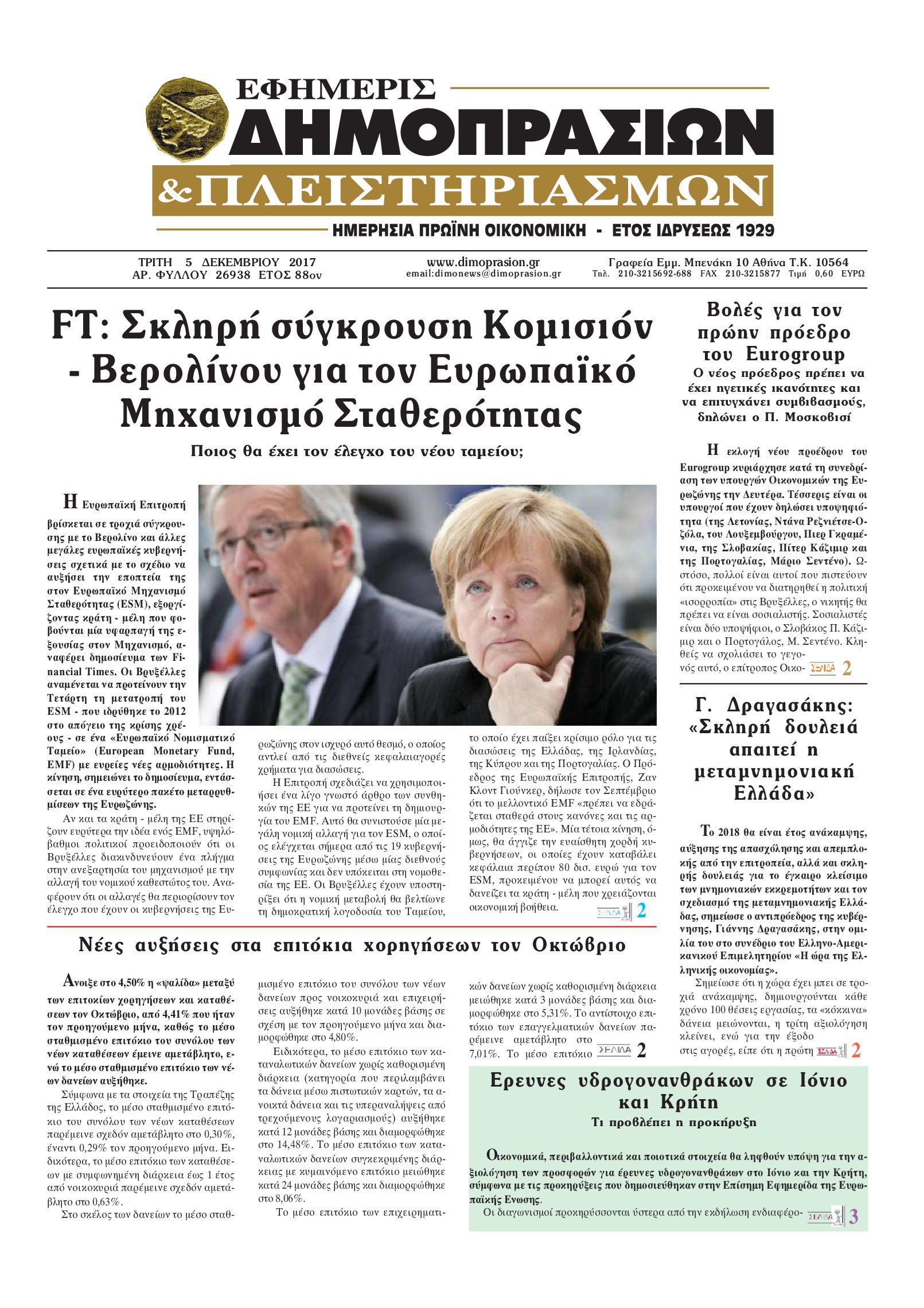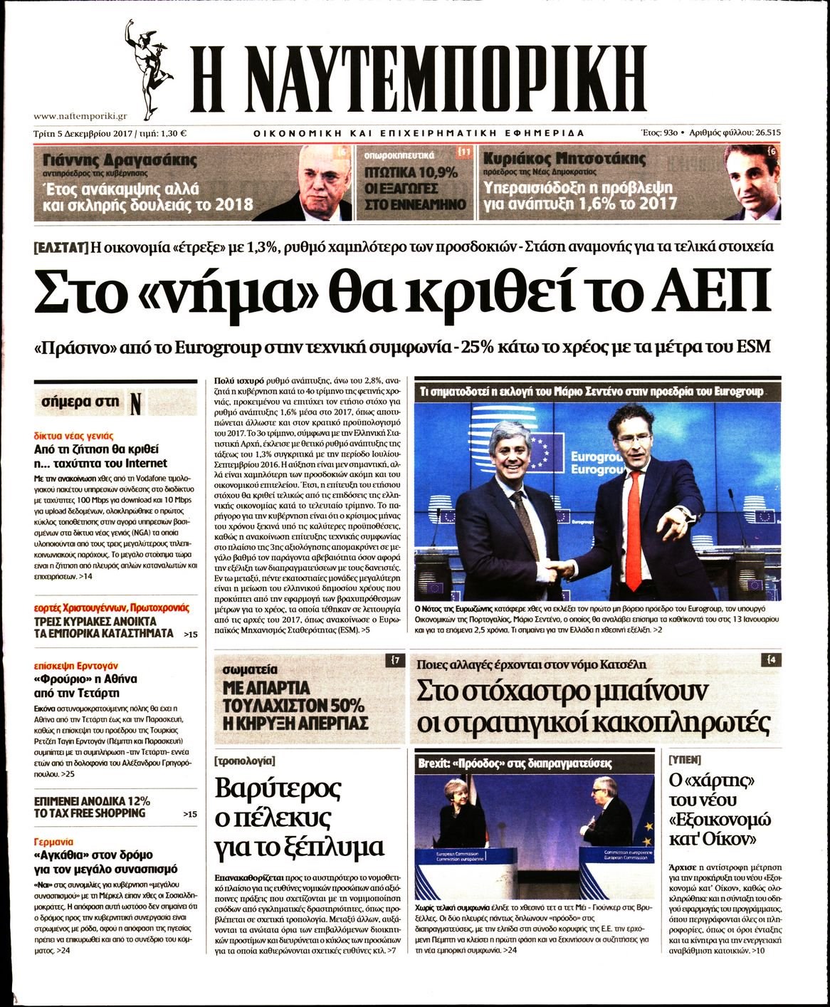 Οι οικονομικές εφημερίδες 5/12/2017 Κώστας Τεό 07:08, Τρίτη 05 Δεκεμβρίου 2017 Media Διαβάστε τα σημερινά πρωτοσέλιδα των οικονομικών εφημερίδων: ΟΙΚΟΝΟΜΙΚΕΣ ΕΦΗΜΕΡΙΔΕΣ ΠΡΩΤΟΣΕΛΙΔΑ Μοιράσου το: σχολίασε κι εσύ (0 σχόλια) Ακολουθήστε το enikos.gr στο Google News και μάθετε πρώτοι όλες τις ειδήσεις Δείτε όλες τις τελευταίες ειδήσεις από την Ελλάδα και τον Κόσμο στο enikos.gr Ειδήσεις Ροή Ειδήσεων 4 ώρες πριν Αυξάνουν την πίεση προς την κυβέρνηση οι αγρότες: Κλείνουν παρακαμπτήριους και ανοίγουν διόδια – Τι θα γίνει τις γιορτές 3 ώρες πριν ΟΠΕΚΕΠΕ: Προφυλακιστέος ο φερόμενος αρχηγός και ο λογιστής της εγκληματικής οργάνωσης 4 ώρες πριν Φοινικούντα: Το Σάββατο απολογείται ο 30χρονος γιος γνωστού επιχειρηματία της Πλάκας που παραδόθηκε – Όσα είπε στους αστυνομικούς και ο ρόλος του στο έγκλημα 3 ώρες πριν Μπορεί ο Μαδούρο να αντέξει τον αποκλεισμό του Τραμπ; Τι θα χρειαστεί η Ουάσινγκτον για να τον ανατρέψει 2 ώρες πριν ΑΕΚ – Κραϊόβα 3-2: Επική ανατροπή και πρόκριση στους «16» του Conference League η Ένωση 4 ώρες πριν Αρχαιολόγοι ανακάλυψαν ρωμαϊκά τεχνουργήματα από μια πόλη που δεν υπήρξε ποτέ – Τα τρία εντυπωσιακά κτίρια και ο αμφορέας με τις… σαρδέλες 5 ώρες πριν Ύπνος: Η απλή βραδινή ρουτίνα για να προστατεύσετε τα μαλλιά σας από το κρύο κατά τη διάρκεια του χειμώνα 6 ώρες πριν Manifesting: Πώς να συναντήσετε τον σύντροφο της ζωής σας, ανάλογα με τον μήνα γέννησής σας 2 ημέρες πριν 20 χρόνια τα Χριστούγεννα ξεκινούν στα Public με μεγάλη ποικιλία σε δώρα! 14 λεπτά πριν Πόλεμος στην Ουκρανία: Ρωσικά drones έπληξαν την Οδησσό – Μία νεκρή και ζημιές σε ενεργειακές υποδομές 21 λεπτά πριν ΑΕΚ-Κραϊόβα: Τα highlights της μυθικής ανατροπής της «Ένωσης» 36 λεπτά πριν Μιχάλης Χρυσοχοΐδης από την Κωνσταντινούπολη: Κοινές επιχειρήσεις Ελλάδας – Τουρκίας ενάντια στο οργανωμένο έγκλημα 59 λεπτά πριν Μάρκο Νίκολιτς: «Είμαι περήφανος για τους παίκτες μου, όποιος αντίπαλος και να έρθει θα προετοιμαστούμε» 1 ώρα πριν ΟΗΕ: Την εκλογή του νέου ύπατου αρμοστή για τους Πρόσφυγες Μπαρχάμ Άχμεντ Σαλίχ χαιρέτησε ο Αντόνιο Γκουτέρες ENIKOS NETWORK Σε περίοδο αυξημένης δραστηριότητας η γρίπη στην Ελλάδα-Μέτρα προστασίας από τον ΕΟΔΥ Σκέφτεστε συνέχεια συζητήσεις που έχετε κάνει; Τι σημαίνει αυτό, σύμφωνα με ειδικό Στεγαστικό: Τι λέει η ΠΟΜΙΔΑ για τα νέα μέτρα που ανακοίνωσε ο Κυριάκος Μητσοτάκης Λαγκάρντ: Αισιόδοξη για την ανάπτυξη της Ευρωζώνης, αβέβαιη για τον πληθωρισμό Χαρτογραφώντας το «σημείο χωρίς επιστροφή»: Για πρώτη φορά αποκαλύπτεται με λεπτομέρεια το ακανθώδες όριο της ατμόσφαιρας τ... Η Google καταργεί τη λειτουργία «dark web report» – Πώς θα μπορούν οι χρήστες να διαγράφουν τα δεδομένα τους περισσότερα 17:45 , Πέμπτη 18 Δεκεμβρίου 2025 ROUK ZOUK: Εορταστικό επεισόδιο με καλεσμένους τους πρωταγωνιστές του «Γιατί ρε πατέρα» Το Σάββατο 20 Δεκεμβρίου στις 21:00, η Ζέτα Μακρυπούλια υποδέχεται εκλεκτούς ηθοποιούς που όλο... 17:20 , Πέμπτη 18 Δεκεμβρίου 2025 Άγιος έρωτας: Η Χριστίνα εξομολογείται στον πατέρα Νικόλαο, απόψε στις 21:00 στον Alpha Η Νότα αποφασίζει να εκδικηθεί τον Πέτρο και τον Στέφανο, για χάρη του Λούη, όμως τα πράγματα ... 16:50 , Πέμπτη 18 Δεκεμβρίου 2025 Να μ’ αγαπάς: Ζωή και Φωτεινή συμφιλιώνονται ως μάνα με κόρη, απόψε στις 20:00 Η ταυτότητα του Άγγελου αποκαλύπτεται στο νέο επεισόδιο της σειράς “Να μ’ αγαπάς... 15:52 , Πέμπτη 18 Δεκεμβρίου 2025 Το Σπίτι Δίπλα Στο Ποτάμι: Το καθηλωτικό τελευταίο επεισόδιο για το 2025 απόψε στις 22:30 Καθηλώνει το σημε