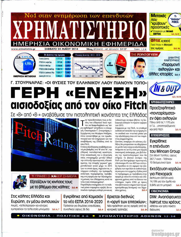 Οι οικονομικές εφημερίδες Enikos Newsroom 07:53, Σάββατο 24 Μαΐου 2014 Media Οι οικονομικές εφημερίδες Διαβάστε τα πρωτοσέλιδα των οικονομικών εφημερίδων: Διαβάστε επίσης: Οι πολιτικές εφημερίδες Οι αθλητικές μεταδόσεις της ημέρας Την Κυριακή οι κάλπες ανοίγουν στο STAR ΟΙΚΟΝΟΜΙΚΕΣ ΕΦΗΜΕΡΙΔΕΣ ΠΡΩΤΟΣΕΛΙΔΑ Μοιράσου το: σχολίασε κι εσύ (0 σχόλια) Ακολουθήστε το enikos.gr στο Google News και μάθετε πρώτοι όλες τις ειδήσεις Δείτε όλες τις τελευταίες ειδήσεις από την Ελλάδα και τον Κόσμο στο enikos.gr Ειδήσεις Ροή Ειδήσεων 2 ώρες πριν Με εκτροπές η έξοδος των εκδρομέων για τις γιορτές – Τι ισχύει με τα μπλόκα των αγροτών, άνοιξαν 2 λωρίδες προς Αθήνα στα Μάλγαρα 10 λεπτά πριν Οδηγοί ψάχνουν διέξοδο στους χωματόδρομους στην Αθηνών – Λαμίας – Δείτε βίντεο 2 ώρες πριν Μπλόκα της Τροχαίας: «Λερναία Ύδρα» τα γκρουπ στο Viber που προειδοποιούν για ελέγχους – Το «γκρίζο» νομικό τοπίο και οι νόμιμες εφαρμογές 3 ώρες πριν Ιλίσια: Έπεσε ασανσέρ σε σούπερ μάρκετ – Σοβαρά τραυματισμένος ο συντηρητής 60 λεπτά πριν Έπσταϊν: Οι νέες αποκαλύψεις που «καίνε» τον πρώην πρίγκιπα Άντριου – Το email από το Μπαλμόραλ στη Μάξγουελ για να βρει «ακατάλληλους φίλους» 6 ώρες πριν Αυτά τα 4 ζώδια έχουν πολλά να περιμένουν μετά τη σημερινή ημέρα – «Έρχονται υπέροχα νέα» 5 ώρες πριν Αν πίνετε τον καφέ σας σκέτο, πιθανότατα διαθέτετε αυτά τα 7 ισχυρά χαρακτηριστικά 1 ώρα πριν Μυστήριο στο Διάστημα: Επιστήμονες εντόπισαν ένα «πρωτοφανές φαινόμενο» γύρω από το «Μάτι του Σάουρον», μόλις 25 έτη φωτός από τη Γη 7 ώρες πριν Η Coca-Cola και ο Ελληνικός Ερυθρός Σταυρός μαζί αυτά τα Χριστούγεννα: Μια μεγάλη αγκαλιά για τους συνανθρώπους μας που έχουν ανάγκη 3 λεπτά πριν Πατρίκιος Κωστής: Η συγκινητική αναφορά στον Γεράσιμο Μιχελή – «Δυστυχώς είμαι κατά το ήμισυ στο reunion του “Παρά Πέντε”» 10 λεπτά πριν Οδηγοί ψάχνουν διέξοδο στους χωματόδρομους στην Αθηνών – Λαμίας – Δείτε βίντεο 14 λεπτά πριν Καλύβια: Είχε χάσει 30 κιλά το «πιστόλι» του Έντικ για να μην αναγνωρίζεται – Πώς εντόπισε τον 35χρονο το ελληνικό FBI 20 λεπτά πριν Τα 4 ζώδια που θα λάβουν όλα όσα ζητήσουν από το σύμπαν το 2026 -«Οι ευχές σας γίνονται πραγματικότητα» 24 λεπτά πριν CNN: Το νέο φαραωνικό σχέδιο του Τραμπ μπορεί να καταστίσει πανίσχυρο το Ναυτικό των ΗΠΑ – Ή να το βυθίσει ENIKOS NETWORK Συγκίνηση στα εγκαίνια του ανακαινισμένου Κέντρου Υγείας στο Αμύνταιο ΕΦΕΤ: Οδηγίες για το τραπέζι των Χριστουγέννων – Τι πρέπει να προσέξουν οι καταναλωτές Ακρίβεια: Μεγάλη η «ψαλίδα» από το χωράφι στο ράφι – Σημαντικές ανατιμήσεις σε βασικά αγαθά Έρευνα της Deloitte αποκαλύπτει πως η οικονομική αβεβαιότητα οδηγεί σε πιο στοχευμένη κατανάλωση Ο Google Assistant θα παραμείνει λίγο περισσότερο για ορισμένους χρήστες Android Τεστ προσωπικότητας: Το βάζο που θα επιλέξετε αποκαλύπτει πώς λύνετε προβλήματα στη ζωή σας περισσότερα 14:03 , Τρίτη 23 Δεκεμβρίου 2025 Έξοδος εκδρομέων για τα Χριστούγεννα: Στείλε βίντεο ή φωτογραφίες στο enikos.gr – Αποθήκευσε τον αριθμό 6944 05 05 05 Πολλοί έχουν επιλέξει να περάσουν τις γιορτές εκτός πόλης, ωστόσο και φέτος η μαζική έξοδος απ... 10:34 , Τρίτη 23 Δεκεμβρίου 2025 Την Κυριακή με τη Realnews: Ό,τι και αν αγοράσεις, σκανάρεις και κερδίζεις! Την Κυριακή με τη Realnews: Ό,τι και αν αγοράσεις, σκανάρεις και κερδίζεις! Με το PADU app, το... 07:01 , Τρίτη 23 Δεκεμβρίου 2025 Την Κυριακή με τη Realnews: Δωροεπιταγή 10€ Την Κυριακή με τη Realnews: Δωροεπιταγή 10€ Δωροεπιταγή αξίας 10€ για αγορές άνω των 60€ από τ... 20:16 , Δευτ