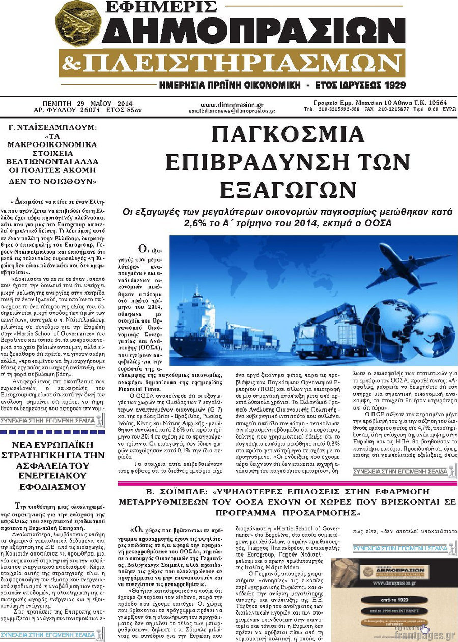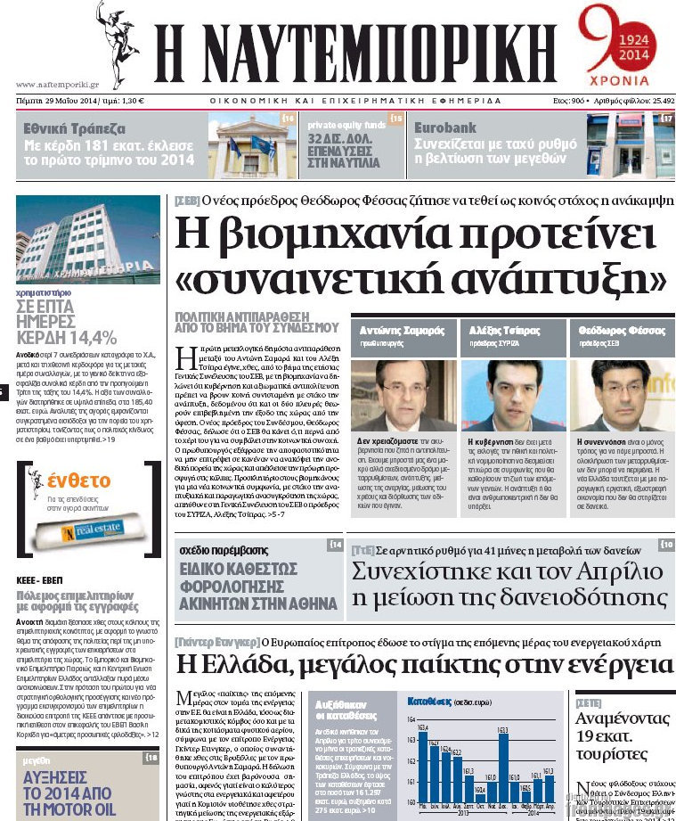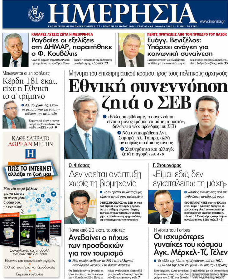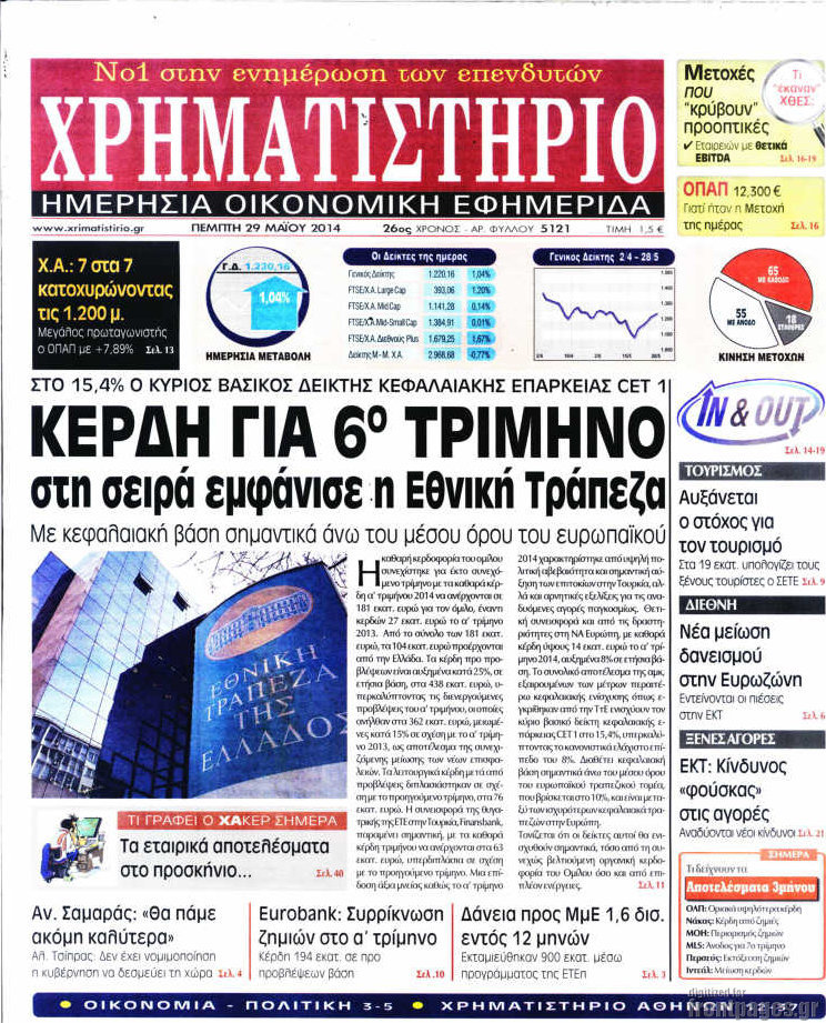Οι οικονομικές εφημερίδες Enikos Newsroom 07:35, Πέμπτη 29 Μαΐου 2014 Media Οι οικονομικές εφημερίδες Διαβάστε τα πρωτοσέλιδα των οικονομικών εφημερίδων. ΟΙΚΟΝΟΜΙΚΕΣ ΕΦΗΜΕΡΙΔΕΣ ΠΡΩΤΟΣΕΛΙΔΑ Μοιράσου το: σχολίασε κι εσύ (0 σχόλια) Ακολουθήστε το enikos.gr στο Google News και μάθετε πρώτοι όλες τις ειδήσεις Δείτε όλες τις τελευταίες ειδήσεις από την Ελλάδα και τον Κόσμο στο enikos.gr Ειδήσεις Ροή Ειδήσεων 2 ώρες πριν Live-Μετ’ εμποδίων η έξοδος: Ουρές χιλιομέτρων στη Ριτσώνα, εναλλακτικές από χωματόδρομους αναζητούν οι οδηγοί – Μποτιλιάρισμα και εντός της Αττικής 4 ώρες πριν Μπλόκα της Τροχαίας: «Λερναία Ύδρα» τα γκρουπ στο Viber που προειδοποιούν για ελέγχους – Το «γκρίζο» νομικό τοπίο και οι νόμιμες εφαρμογές 2 ώρες πριν Καλύβια: Είχε χάσει 30 κιλά το «πιστόλι» του Έντικ για να μην αναγνωρίζεται – Πώς εντόπισε τον 35χρονο το ελληνικό FBI 2 ώρες πριν Αλεξανδρούπολη: Προφυλακίστηκε η μητέρα του 3χρονου που πέθανε από ασιτία – Τι λέει η δικηγόρος της 3 ώρες πριν Έπσταϊν: Οι νέες αποκαλύψεις που «καίνε» τον πρώην πρίγκιπα Άντριου – Το email από το Μπαλμόραλ στη Μάξγουελ για να βρει «ακατάλληλους φίλους» 2 ώρες πριν Τα 4 ζώδια που θα λάβουν όλα όσα ζητήσουν από το σύμπαν το 2026 -«Οι ευχές σας γίνονται πραγματικότητα» 7 ώρες πριν Αν πίνετε τον καφέ σας σκέτο, πιθανότατα διαθέτετε αυτά τα 7 ισχυρά χαρακτηριστικά 3 ώρες πριν Μυστήριο στο Διάστημα: Επιστήμονες εντόπισαν ένα «πρωτοφανές φαινόμενο» γύρω από το «Μάτι του Σάουρον», μόλις 25 έτη φωτός από τη Γη 9 ώρες πριν Η Coca-Cola και ο Ελληνικός Ερυθρός Σταυρός μαζί αυτά τα Χριστούγεννα: Μια μεγάλη αγκαλιά για τους συνανθρώπους μας που έχουν ανάγκη 6 λεπτά πριν Θεσσαλονίκη: Συνελήφθη 14χρονος με αυτοσχέδιο μαχαίρι 20 εκατοστών έξω από σχολείο 12 λεπτά πριν Στο Παρά Πέντε – 20 Χρόνια Μετά: Απόψε στις 21:00 στο Mega το αναμενόμενο Reunion 18 λεπτά πριν Διευθυντής Τσέρνομπιλ: Η σαρκοφάγος πάνω από τον κατεστραμμένο αντιδραστήρα δεν θα αντέξει άμεσο ρωσικό πλήγμα 23 λεπτά πριν Hellenic Train: Ενισχύονται τα δρομολόγια ενόψει εορτών στον Οδοντωτό 28 λεπτά πριν Ίλιον: Χειροπέδες σε 12χρονο και 13χρονο που οδηγούσαν κλεμμένη μηχανή – Στη θέα των αστυνομικών την εγκατέλειψαν και προσπάθησαν να διαφύγουν ENIKOS NETWORK Συγκίνηση στα εγκαίνια του ανακαινισμένου Κέντρου Υγείας στο Αμύνταιο ΕΦΕΤ: Οδηγίες για το τραπέζι των Χριστουγέννων – Τι πρέπει να προσέξουν οι καταναλωτές Αθήνα: Τσουχτερά πρόστιμα για κάπνισμα και αλκοόλ σε εστιατόρια, καφέ μπαρ, αναψυκτήρια και κέντρα διασκέδασης Ρεβεγιόν στις μεγάλες πίστες: Πόσο κοστίζει ένα τραπέζι σε Αθήνα και Θεσσαλονίκη – Αναλυτικά οι τιμές και οι διαθεσιμότητες Ο Google Assistant θα παραμείνει λίγο περισσότερο για ορισμένους χρήστες Android Τεστ προσωπικότητας: Το βάζο που θα επιλέξετε αποκαλύπτει πώς λύνετε προβλήματα στη ζωή σας περισσότερα 17:59 , Τρίτη 23 Δεκεμβρίου 2025 Στο Παρά Πέντε – 20 Χρόνια Μετά: Απόψε στις 21:00 στο Mega το αναμενόμενο Reunion Το πλέον αναμενόμενο και νοσταλγικό Reunion της ελληνικής τηλεόρασης, το «Στο Παρά Πέντε – 20 ... 17:38 , Τρίτη 23 Δεκεμβρίου 2025 Άγιος έρωτας: Ο σεισμός σπέρνει το θάνατο στη Στέρνα Μετά τον καταστροφικό σεισμό που χτυπά τη Στέρνα, τίποτα δεν θα είναι πια το ίδιο στη σειρά ... 14:03 , Τρίτη 23 Δεκεμβρίου 2025 Έξοδος εκδρομέων για τα Χριστούγεννα: Στείλε βίντεο ή φωτογραφίες στο enikos.gr – Αποθήκευσε τον αριθμό 6944 05 05 05 Πολλοί έχουν επιλέξει να περάσουν τις γιορτές εκτός πόλης, ωστόσο και φέτος η μαζική έξοδος απ... 10:34 , Τρίτη 23 