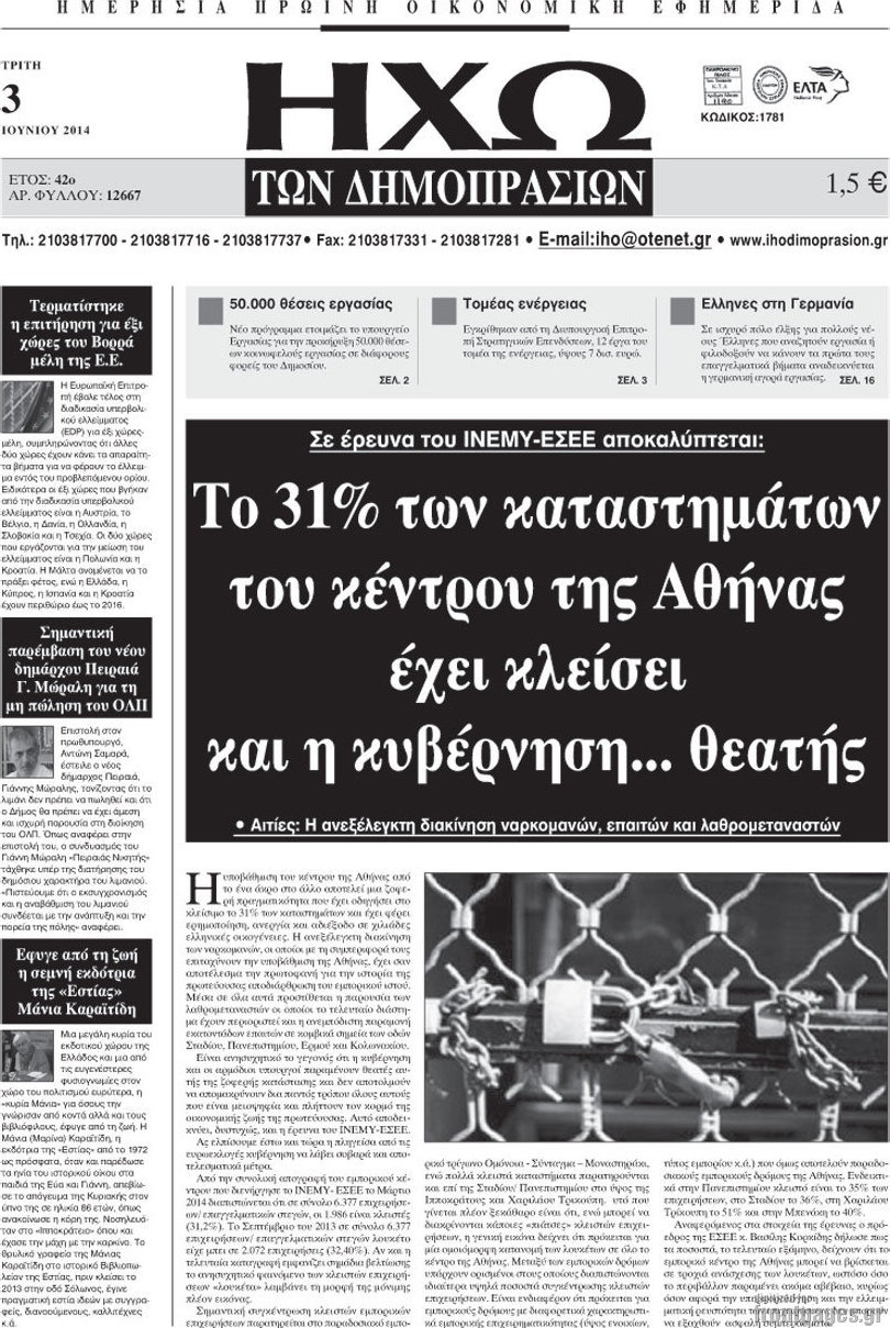 Οι oικονομικές εφημερίδες Enikos Newsroom 08:55, Τρίτη 03 Ιουνίου 2014 Media Οι oικονομικές εφημερίδες Διαβάστε τα πρωτοσέλιδα των οικονομικών εφημερίδων: ` ΕΦΗΜΕΡΙΔΑ ΟΙΚΟΝΟΜΙΚΕΣ ΕΦΗΜΕΡΙΔΕΣ ΠΡΩΤΟΣΕΛΙΔΑ Μοιράσου το: σχολίασε κι εσύ (0 σχόλια) Ακολουθήστε το enikos.gr στο Google News και μάθετε πρώτοι όλες τις ειδήσεις Δείτε όλες τις τελευταίες ειδήσεις από την Ελλάδα και τον Κόσμο στο enikos.gr Ειδήσεις Ροή Ειδήσεων 1 ώρα πριν Αυξάνουν την πίεση προς την κυβέρνηση οι αγρότες: Κλείνουν παρακαμπτήριους και ανοίγουν διόδια – Τι θα γίνει τις γιορτές 53 λεπτά πριν Φοινικούντα: Το Σάββατο απολογείται ο 30χρονος γιος γνωστού επιχειρηματία της Πλάκας που παραδόθηκε – Όσα είπε στους αστυνομικούς και ο ρόλος του στο έγκλημα 35 λεπτά πριν Μπορεί ο Μαδούρο να αντέξει τον αποκλεισμό του Τραμπ; Τι θα χρειαστεί η Ουάσινγκτον για να τον ανατρέψει 2 ώρες πριν Δημοσκόπηση Metron Analysis: Στις 10 μονάδες η διαφορά ΝΔ-ΠΑΣΟΚ, στην 3η θέση η Πλεύση Ελευθερίας – 8 στους 10 στηρίζουν τον αγώνα των αγροτών 2 ώρες πριν Πρίγκιπας Ουίλιαμ – Κέιτ: Η νέα οικογενειακή φωτογραφία για τις Χριστουγεννιάτικες κάρτες του 2025 2 ώρες πριν Ύπνος: Η απλή βραδινή ρουτίνα για να προστατεύσετε τα μαλλιά σας από το κρύο κατά τη διάρκεια του χειμώνα 3 ώρες πριν Manifesting: Πώς να συναντήσετε τον σύντροφο της ζωής σας, ανάλογα με τον μήνα γέννησής σας 2 ημέρες πριν 20 χρόνια τα Χριστούγεννα ξεκινούν στα Public με μεγάλη ποικιλία σε δώρα! 39 λεπτά πριν Αρχαιολόγοι ανακάλυψαν ρωμαϊκά τεχνουργήματα από μια πόλη που δεν υπήρξε ποτέ – Τα τρία εντυπωσιακά κτίρια και ο αμφορέας με τις… σαρδέλες 4 λεπτά πριν Αθηνά Μαξίμου: Η τρυφερή ανάρτηση για τα γενέθλια του Αιμίλιου Χειλάκη – «Είναι η εκλεκτική συγγένειά μου, η επιλογή και η ευθύνη μου» 19 λεπτά πριν Παναθηναϊκός – Χάποελ Τελ Αβίβ 93-82: Με… φόρα από την Κωνσταντινούπολη 35 λεπτά πριν Μπορεί ο Μαδούρο να αντέξει τον αποκλεισμό του Τραμπ; Τι θα χρειαστεί η Ουάσινγκτον για να τον ανατρέψει 39 λεπτά πριν Αρχαιολόγοι ανακάλυψαν ρωμαϊκά τεχνουργήματα από μια πόλη που δεν υπήρξε ποτέ – Τα τρία εντυπωσιακά κτίρια και ο αμφορέας με τις… σαρδέλες 40 λεπτά πριν Στο ΟΑΚΑ για το «Παναθηναϊκός – Χάποελ» η Κίμπερλι Γκίλφοϊλ – ΦΩΤΟ ENIKOS NETWORK Σε περίοδο αυξημένης δραστηριότητας η γρίπη στην Ελλάδα-Μέτρα προστασίας από τον ΕΟΔΥ Σκέφτεστε συνέχεια συζητήσεις που έχετε κάνει; Τι σημαίνει αυτό, σύμφωνα με ειδικό Στεγαστικό: Τι λέει η ΠΟΜΙΔΑ για τα νέα μέτρα που ανακοίνωσε ο Κυριάκος Μητσοτάκης Λαγκάρντ: Αισιόδοξη για την ανάπτυξη της Ευρωζώνης, αβέβαιη για τον πληθωρισμό Χαρτογραφώντας το «σημείο χωρίς επιστροφή»: Για πρώτη φορά αποκαλύπτεται με λεπτομέρεια το ακανθώδες όριο της ατμόσφαιρας τ... Η Google καταργεί τη λειτουργία «dark web report» – Πώς θα μπορούν οι χρήστες να διαγράφουν τα δεδομένα τους περισσότερα 17:45 , Πέμπτη 18 Δεκεμβρίου 2025 ROUK ZOUK: Εορταστικό επεισόδιο με καλεσμένους τους πρωταγωνιστές του «Γιατί ρε πατέρα» Το Σάββατο 20 Δεκεμβρίου στις 21:00, η Ζέτα Μακρυπούλια υποδέχεται εκλεκτούς ηθοποιούς που όλο... 17:20 , Πέμπτη 18 Δεκεμβρίου 2025 Άγιος έρωτας: Η Χριστίνα εξομολογείται στον πατέρα Νικόλαο, απόψε στις 21:00 στον Alpha Η Νότα αποφασίζει να εκδικηθεί τον Πέτρο και τον Στέφανο, για χάρη του Λούη, όμως τα πράγματα ... 16:50 , Πέμπτη 18 Δεκεμβρίου 2025 Να μ’ αγαπάς: Ζωή και Φωτεινή συμφιλιώνονται ως μάνα με κόρη, απόψε στις 20:00 Η ταυτότητα του Άγγελου αποκαλύπτεται στο νέο επεισόδιο της σειράς “Να μ’ αγαπάς... 15:52 , Πέμπτη 18 Δε