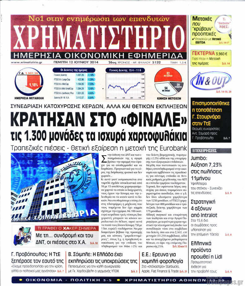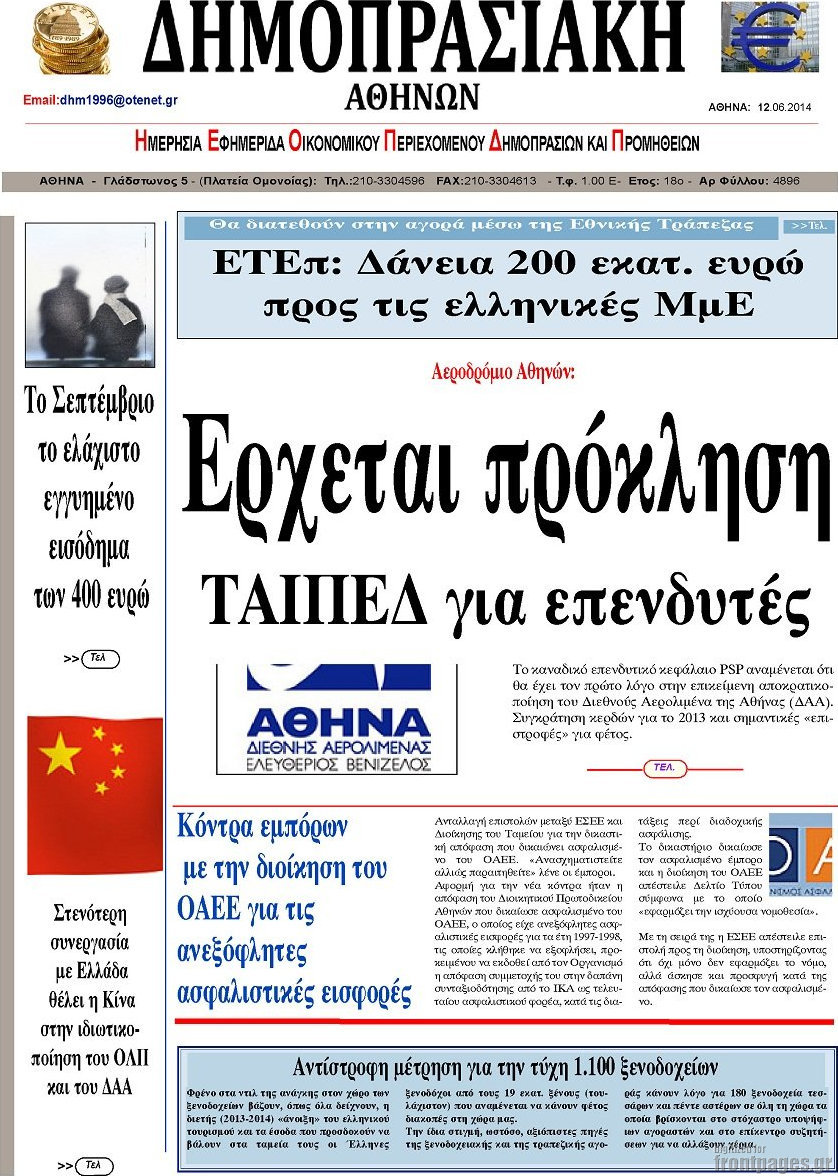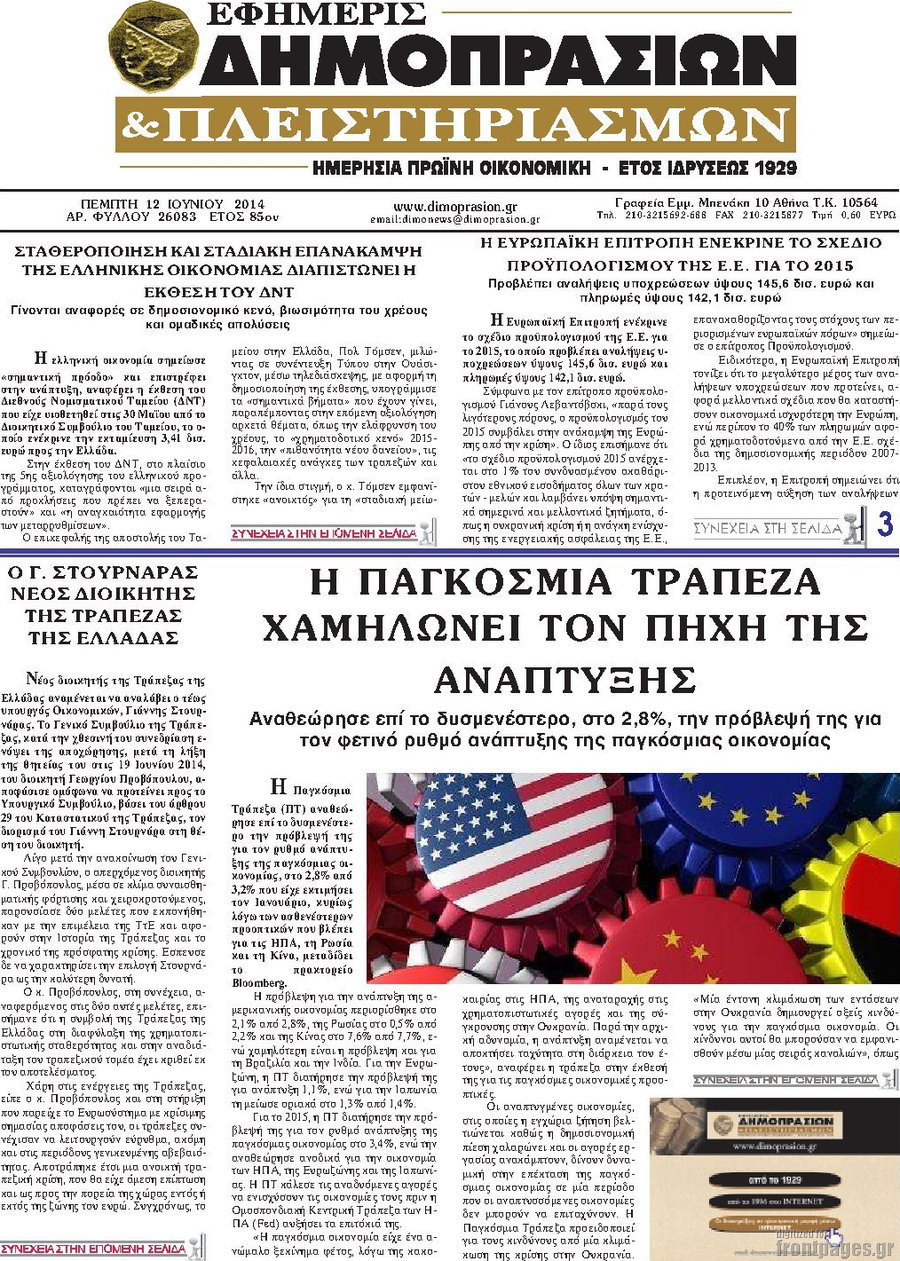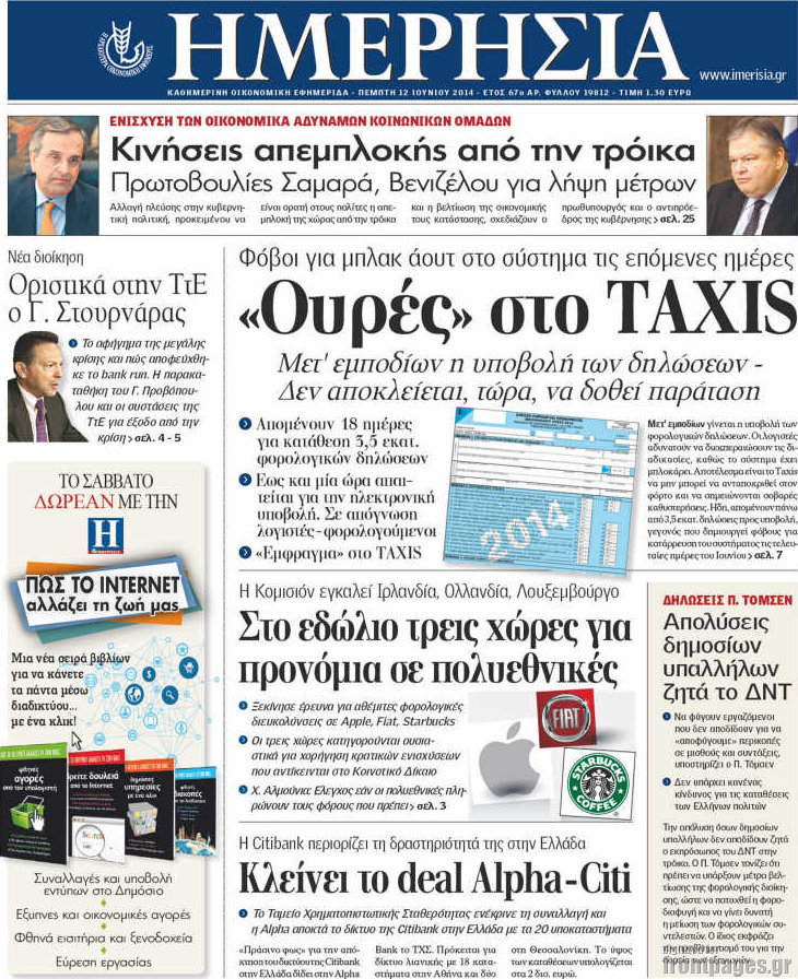 Οι oικονομικές εφημερίδες Enikos Newsroom 08:46, Πέμπτη 12 Ιουνίου 2014 Media Οι oικονομικές εφημερίδες Διαβάστε τα πρωτοσέλιδα των οικονομικών εφημερίδων: ΕΦΗΜΕΡΙΔΕΣ ΟΙΚΟΝΟΜΙΚΕΣ ΕΦΗΜΕΡΙΔΕΣ ΠΡΩΤΟΣΕΛΙΔΑ Μοιράσου το: σχολίασε κι εσύ (0 σχόλια) Ακολουθήστε το enikos.gr στο Google News και μάθετε πρώτοι όλες τις ειδήσεις Δείτε όλες τις τελευταίες ειδήσεις από την Ελλάδα και τον Κόσμο στο enikos.gr Ειδήσεις Ροή Ειδήσεων 8 ώρες πριν Μητσοτάκης: Αναγκαία η μεταρρύθμιση του πρωτογενούς τομέα – Τα 6 νέα μέτρα για το στεγαστικό και οι αναφορές σε «Ιθάκη» και «πολιτικούς του καναπέ» 7 ώρες πριν Δάνεια σε ελβετικό φράγκο: Τα βασικά σημεία της ρύθμισης – ανάσας για 40.000 δανειολήπτες – Αναλυτικός οδηγός με ερωτήσεις και απαντήσεις 7 ώρες πριν Κυψέλη: Εξιτήριο πήρε η 14χρονη μαθήτρια που μαχαιρώθηκε από την 16χρονη σε σχολείο – «Θέλω να βοηθήσω το παιδί, έχει μπλέξει με κακές παρέες» 7 ώρες πριν Τραμπ: Γιατί κατέθεσε τώρα την αγωγή κατά του BBC – Πώς η κίνησή του εξυπηρετεί το νέο δόγμα του για «αντίσταση» στην Ευρώπη, υπέρ των συντηρητικών 8 ώρες πριν ΟΠΕΚΕΠΕ – Παράνομες επιδοτήσεις: Ελεύθεροι με περιοριστικούς όρους και οι 7 κατηγορούμενοι που απολογήθηκαν σήμερα 7 ώρες πριν Ανακαλύφθηκε βυθισμένη πέτρινη κατασκευή ανοιχτά της Κριμαίας – Αποτελεί μέρος αρχαίας ελληνικής αποικίας 8 ώρες πριν Ύπνος: Αυτό μπορεί να είναι το χειρότερο λάθος για το βιολογικό ρολόι σας, σύμφωνα με ειδικό 9 ώρες πριν Αριθμολογία: Οι άνθρωποι που έχουν γεννηθεί αυτές τις 3 ημερομηνίες, προσελκύουν μεγάλη τύχη πριν από το τέλος του 2025 11 ώρες πριν Οι 7 συμπεριφορές που μαρτυρούν ότι ένας άνδρας επενδύει μακροπρόθεσμα σε μια σχέση 2 λεπτά πριν Οι πολιτικές εφημερίδες 17/12/2025 11 λεπτά πριν Τα ζώδια σήμερα, Τετάρτη 17 Δεκεμβρίου: Κριοί, η αυτοπεποίθησή σας ενισχύεται 18 λεπτά πριν Εφημερεύοντα φαρμακεία σε Αθήνα και Θεσσαλονίκη (17/12) 24 λεπτά πριν Κόστα Ρίκα: Το Κογκρέσο απέρριψε το αίτημα για άρση της ασυλίας του προέδρου Τσάβες 32 λεπτά πριν Κολομβία: Νεκροί τέσσερις αστυνομικοί σε βομβιστικές επιθέσεις ανταρτών ENIKOS NETWORK Αίτημα ΙΣΑ για την εξαίρεση των προσωπικών γιατρών από τις κατ’ οίκον επισκέψεις Η σκανδιναβική μέθοδος στον ύπνο που μπορεί να σώσει έναν γάμο Πιερρακάκης: Ο προϋπολογισμός συμβάλλει ουσιαστικά στην ενίσχυση της αγοραστικής δύναμης της πλειονότητας των εργαζομένων e-ΕΦΚΑ: Παρατείνεται η προθεσμία για την υποβολή ΑΠΔ – Ποιους αφορά Σύγχρονος Νοστράδαμος: Προειδοποιεί για «μεγάλο γεγονός» τους επόμενους μήνες που θα συγκλονίσει τη Βρετανία και τον κόσμο Τεστ παρατηρητικότητας: Μπορείτε να βρείτε τις 3 διαφορές στις εικόνες με έναν πιγκουίνο σε 14 δευτερόλεπτα περισσότερα 05:38 , Τετάρτη 17 Δεκεμβρίου 2025 Οι πολιτικές εφημερίδες 17/12/2025 Διαβάστε τα πρωτοσέλιδα από τις πολιτικές εφημερίδες, σήμερα 17/12/2025. 20:06 , Τρίτη 16 Δεκεμβρίου 2025 Ο ΣΚΑΙ καταγγέλλει τον ΕΚΚΟΜΕΔ Επιστολή με την οποία καταγράφει την έντονη διαμαρτυρία του προς τον διευθύνοντα σύμβουλο του... 17:40 , Τρίτη 16 Δεκεμβρίου 2025 Eurovision: Στις 4 Ιανουαρίου αποκαλύπτονται τα 28 τραγούδια του ελληνικού τελικού Η αγωνία τελειώνει, η γιορτή της Eurovision αρχίζει στην ΕΡΤ από τις πρώτες ημέρες της νέας χρ... 17:09 , Τρίτη 16 Δεκεμβρίου 2025 Alter Ego Media: Βαθύτατη θλίψη και ειλικρινή συλλυπητήρια για την απώλεια της Ειρήνης Μαρινάκη Τη βαθύτατη θλίψη και τα ειλικρινή συλλυπητήριά της εκφράζει η Alter Ego Media για τον θάνατο ... ΤΕΛΕΥΤΑΙΕΣ ΕΙΔΗΣΕΙΣ 2 λεπτά πριν Οι πολιτικές εφημ