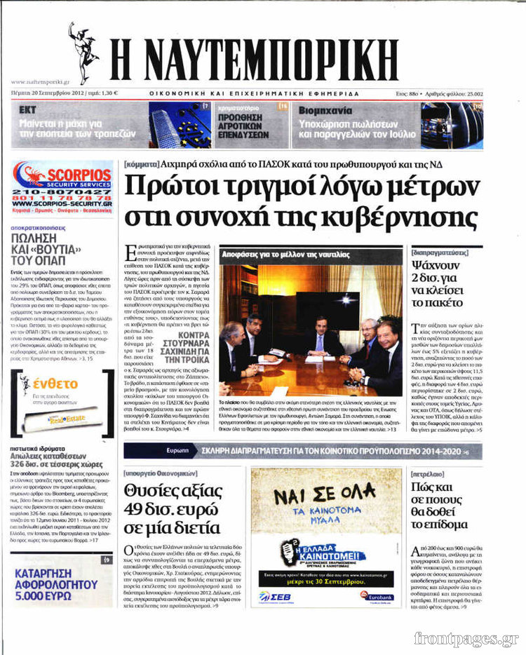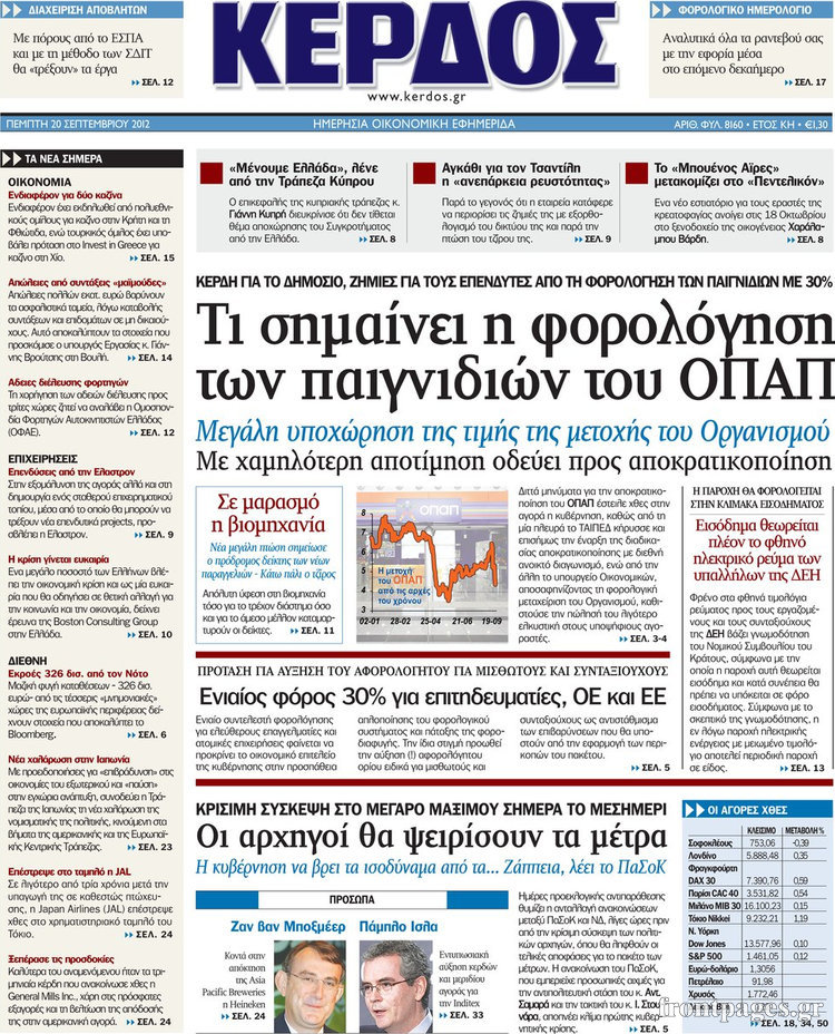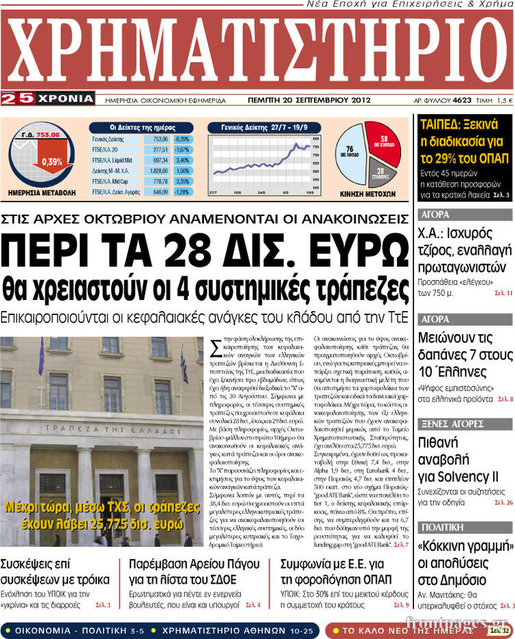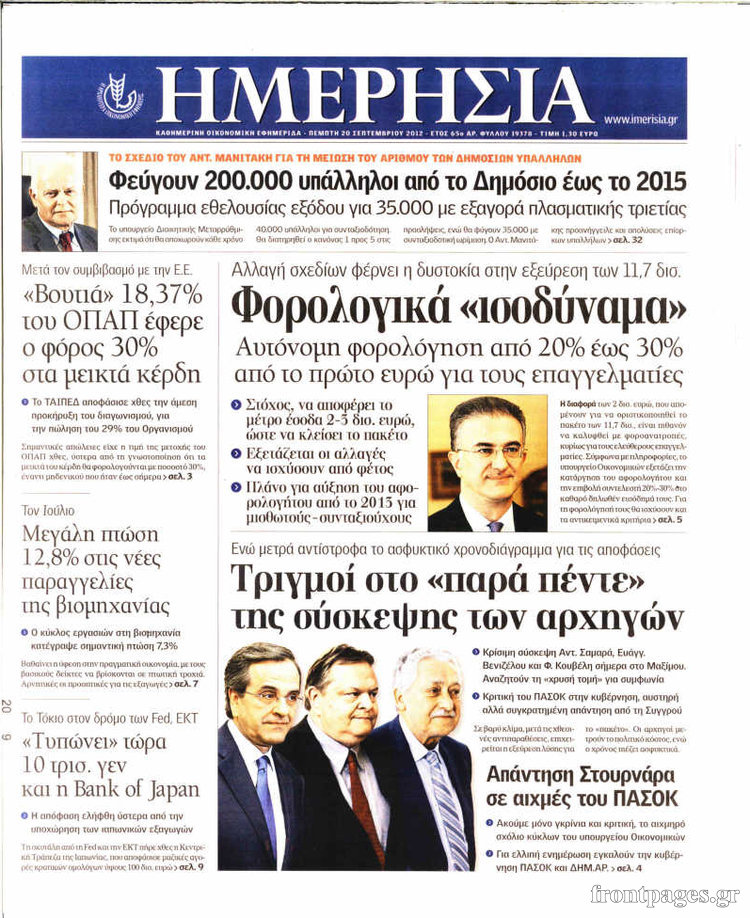 Τα σημερινά πρωτοσέλιδα των οικονομικών εφημερίδων.