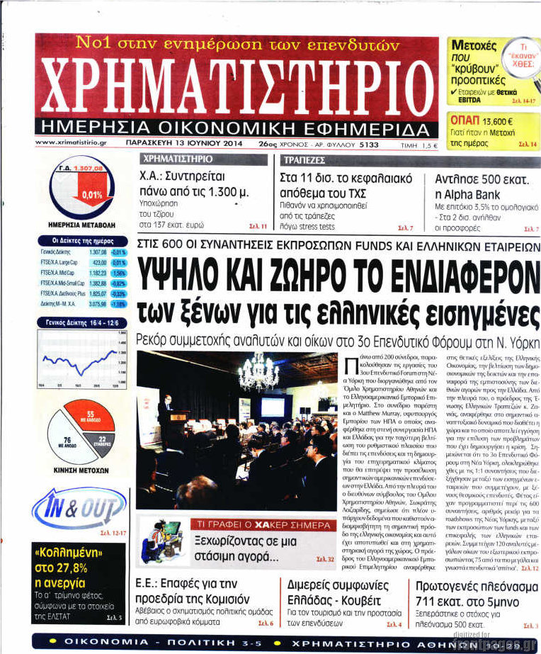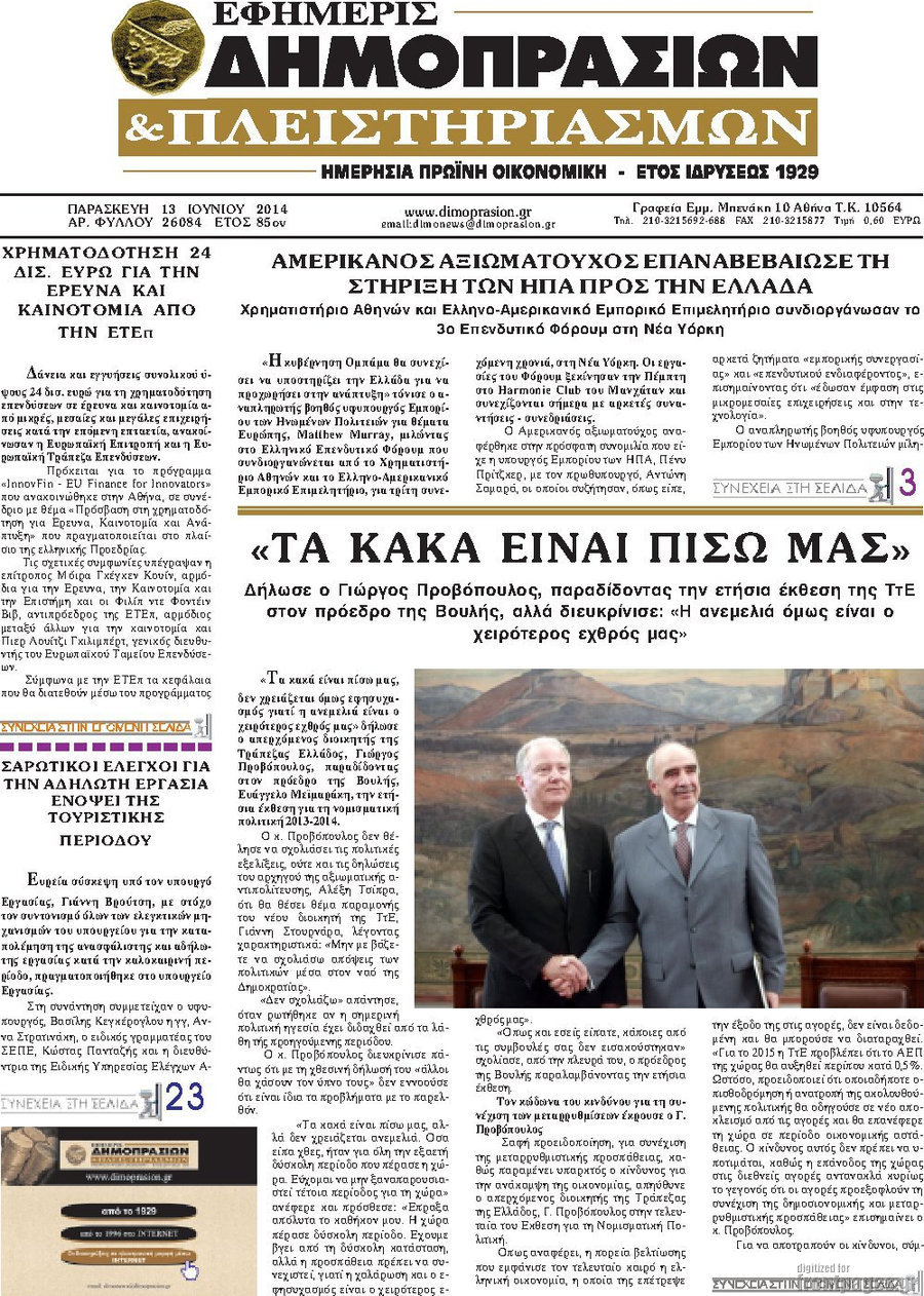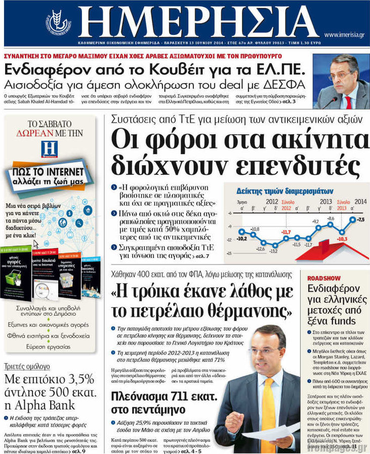 Οι oικονομικές εφημερίδες Enikos Newsroom 08:37, Παρασκευή 13 Ιουνίου 2014 Media Οι oικονομικές εφημερίδες Διαβάστε τα πρωτοσέλιδα των οικονομικών εφημερίδων: ΕΦΗΜΕΡΙΔΕΣ ΟΙΚΟΝΟΜΙΚΕΣ ΕΦΗΜΕΡΙΔΕΣ ΠΡΩΤΟΣΕΛΙΔΑ Μοιράσου το: σχολίασε κι εσύ (0 σχόλια) Ακολουθήστε το enikos.gr στο Google News και μάθετε πρώτοι όλες τις ειδήσεις Δείτε όλες τις τελευταίες ειδήσεις από την Ελλάδα και τον Κόσμο στο enikos.gr Ειδήσεις Ροή Ειδήσεων 8 ώρες πριν Μητσοτάκης: Αναγκαία η μεταρρύθμιση του πρωτογενούς τομέα – Τα 6 νέα μέτρα για το στεγαστικό και οι αναφορές σε «Ιθάκη» και «πολιτικούς του καναπέ» 8 ώρες πριν Δάνεια σε ελβετικό φράγκο: Τα βασικά σημεία της ρύθμισης – ανάσας για 40.000 δανειολήπτες – Αναλυτικός οδηγός με ερωτήσεις και απαντήσεις 7 ώρες πριν Κυψέλη: Εξιτήριο πήρε η 14χρονη μαθήτρια που μαχαιρώθηκε από την 16χρονη σε σχολείο – «Θέλω να βοηθήσω το παιδί, έχει μπλέξει με κακές παρέες» 7 ώρες πριν Τραμπ: Γιατί κατέθεσε τώρα την αγωγή κατά του BBC – Πώς η κίνησή του εξυπηρετεί το νέο δόγμα του για «αντίσταση» στην Ευρώπη, υπέρ των συντηρητικών 8 ώρες πριν ΟΠΕΚΕΠΕ – Παράνομες επιδοτήσεις: Ελεύθεροι με περιοριστικούς όρους και οι 7 κατηγορούμενοι που απολογήθηκαν σήμερα 7 ώρες πριν Ανακαλύφθηκε βυθισμένη πέτρινη κατασκευή ανοιχτά της Κριμαίας – Αποτελεί μέρος αρχαίας ελληνικής αποικίας 8 ώρες πριν Ύπνος: Αυτό μπορεί να είναι το χειρότερο λάθος για το βιολογικό ρολόι σας, σύμφωνα με ειδικό 9 ώρες πριν Αριθμολογία: Οι άνθρωποι που έχουν γεννηθεί αυτές τις 3 ημερομηνίες, προσελκύουν μεγάλη τύχη πριν από το τέλος του 2025 11 ώρες πριν Οι 7 συμπεριφορές που μαρτυρούν ότι ένας άνδρας επενδύει μακροπρόθεσμα σε μια σχέση 19 δευτερόλεπτα πριν Υγεία του εντέρου: Προσθέστε 1 superfood στα scrambled eggs για καλύτερη πέψη και ευεξία 6 λεπτά πριν Σαν σήμερα 17 Δεκεμβρίου: Τα σημαντικότερα γεγονότα της ημέρας 12 λεπτά πριν Οι οικονομικές εφημερίδες 17/12/2025 17 λεπτά πριν Οι αθλητικές εφημερίδες 17/12/2025 22 λεπτά πριν Οι πολιτικές εφημερίδες 17/12/2025 ENIKOS NETWORK Αίτημα ΙΣΑ για την εξαίρεση των προσωπικών γιατρών από τις κατ’ οίκον επισκέψεις Η σκανδιναβική μέθοδος στον ύπνο που μπορεί να σώσει έναν γάμο Πιερρακάκης: Ο προϋπολογισμός συμβάλλει ουσιαστικά στην ενίσχυση της αγοραστικής δύναμης της πλειονότητας των εργαζομένων e-ΕΦΚΑ: Παρατείνεται η προθεσμία για την υποβολή ΑΠΔ – Ποιους αφορά Σύγχρονος Νοστράδαμος: Προειδοποιεί για «μεγάλο γεγονός» τους επόμενους μήνες που θα συγκλονίσει τη Βρετανία και τον κόσμο Τεστ παρατηρητικότητας: Μπορείτε να βρείτε τις 3 διαφορές στις εικόνες με έναν πιγκουίνο σε 14 δευτερόλεπτα περισσότερα 05:48 , Τετάρτη 17 Δεκεμβρίου 2025 Οι οικονομικές εφημερίδες 17/12/2025 Διαβάστε τα πρωτοσέλιδα από τις οικονομικές εφημερίδες, σήμερα 17/12/2025. 05:43 , Τετάρτη 17 Δεκεμβρίου 2025 Οι αθλητικές εφημερίδες 17/12/2025 Διαβάστε τα πρωτοσέλιδα από τις αθλητικές εφημερίδες, σήμερα 17/12/2025. 05:38 , Τετάρτη 17 Δεκεμβρίου 2025 Οι πολιτικές εφημερίδες 17/12/2025 Διαβάστε τα πρωτοσέλιδα από τις πολιτικές εφημερίδες, σήμερα 17/12/2025. 20:06 , Τρίτη 16 Δεκεμβρίου 2025 Ο ΣΚΑΙ καταγγέλλει τον ΕΚΚΟΜΕΔ Επιστολή με την οποία καταγράφει την έντονη διαμαρτυρία του προς τον διευθύνοντα σύμβουλο του... ΤΕΛΕΥΤΑΙΕΣ ΕΙΔΗΣΕΙΣ 6 λεπτά πριν Σαν σήμερα 17 Δεκεμβρίου: Τα σημαντικότερα γεγονότα... 12 λεπτά πριν Οι οικονομικές εφημερίδες 17/12/2025 17 λεπτά πριν Οι αθλητικές εφημερίδες 17/12/2025 22 λεπτά πριν Οι πολιτικές εφημερίδες 17/12/2025 30 λεπτά πριν Τα ζώδια σήμερα, Τετάρτη 17 Δεκεμβρ